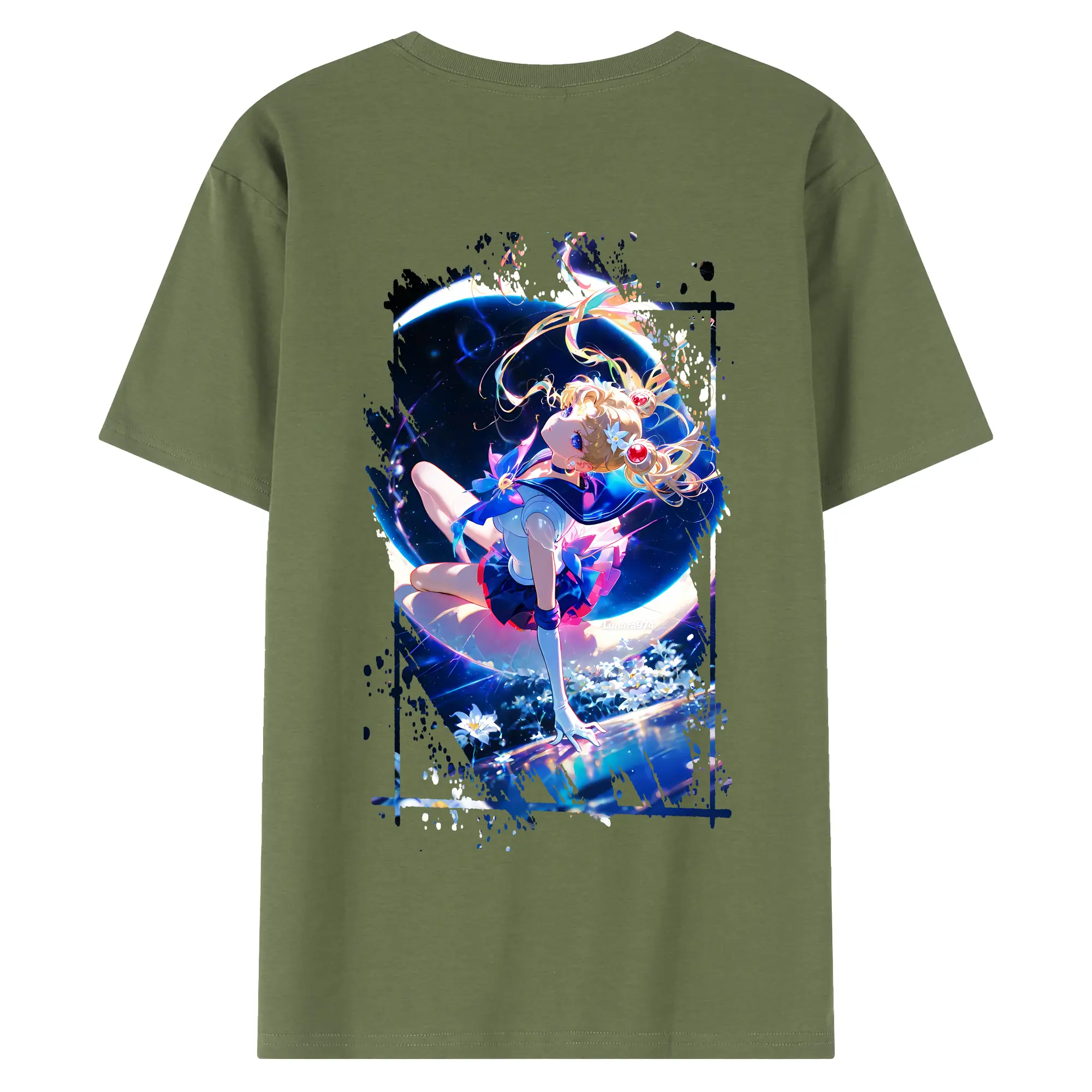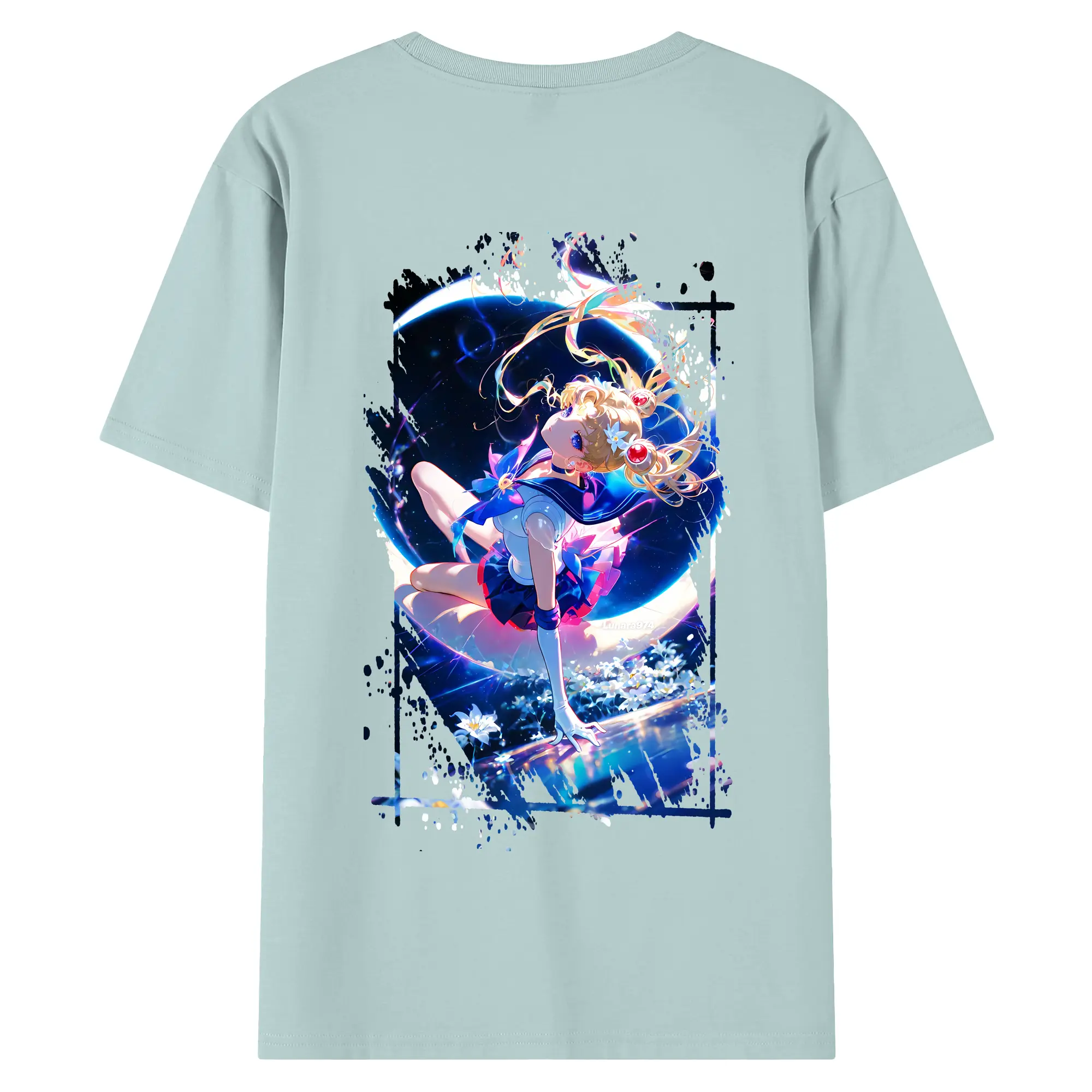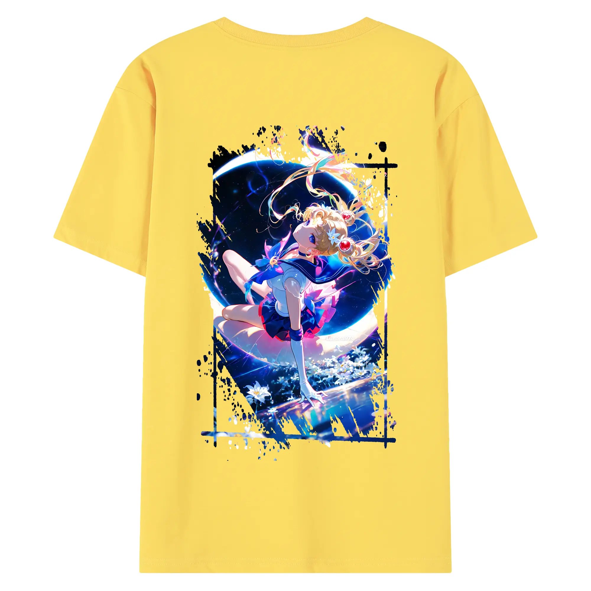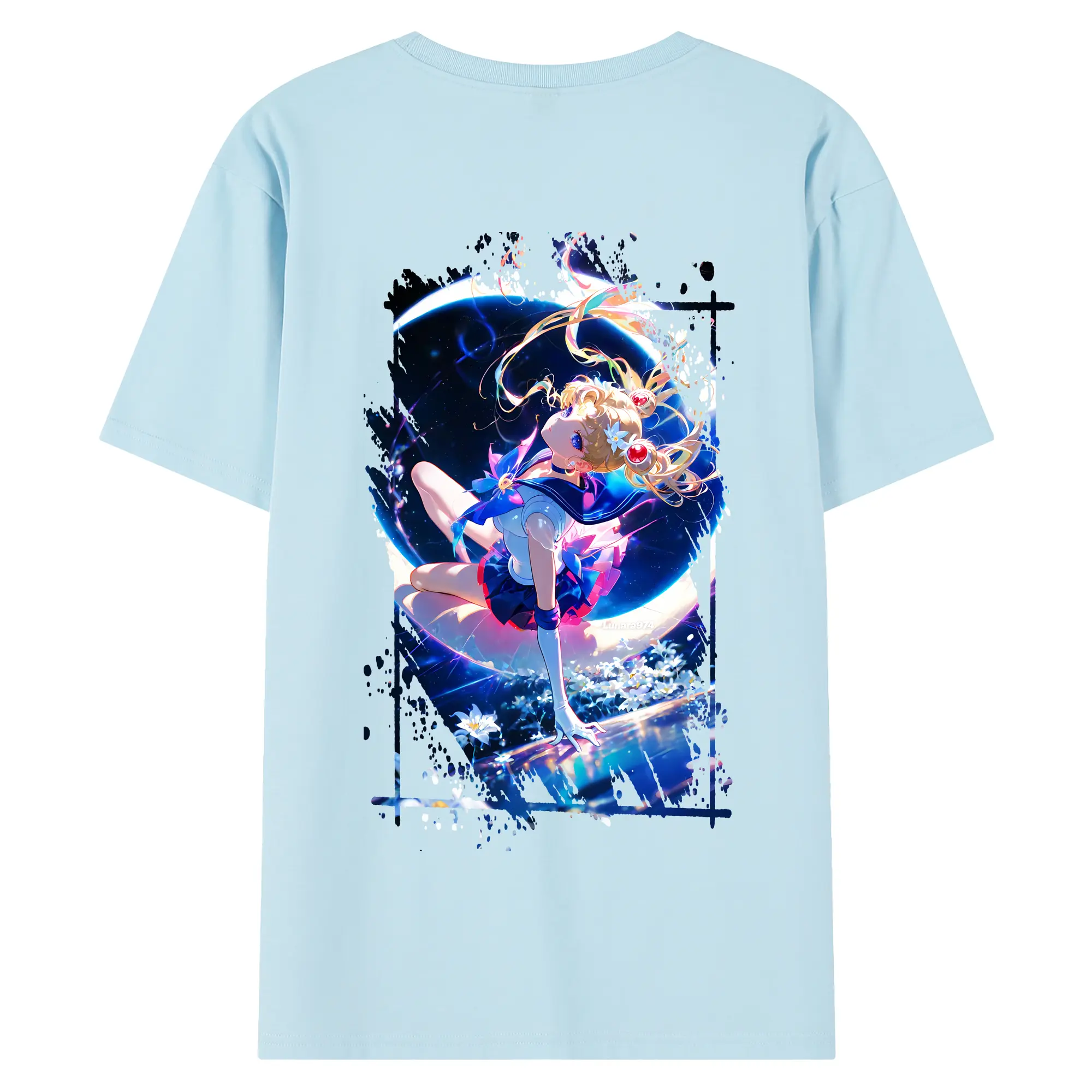 美少女戦士セーラームーン グッズ 月野 うさぎ - 綿100% 半袖Tシャツ ・ フロントプリント ・ 快適 通気性 ・ 日常使い 散歩 スポーツ用