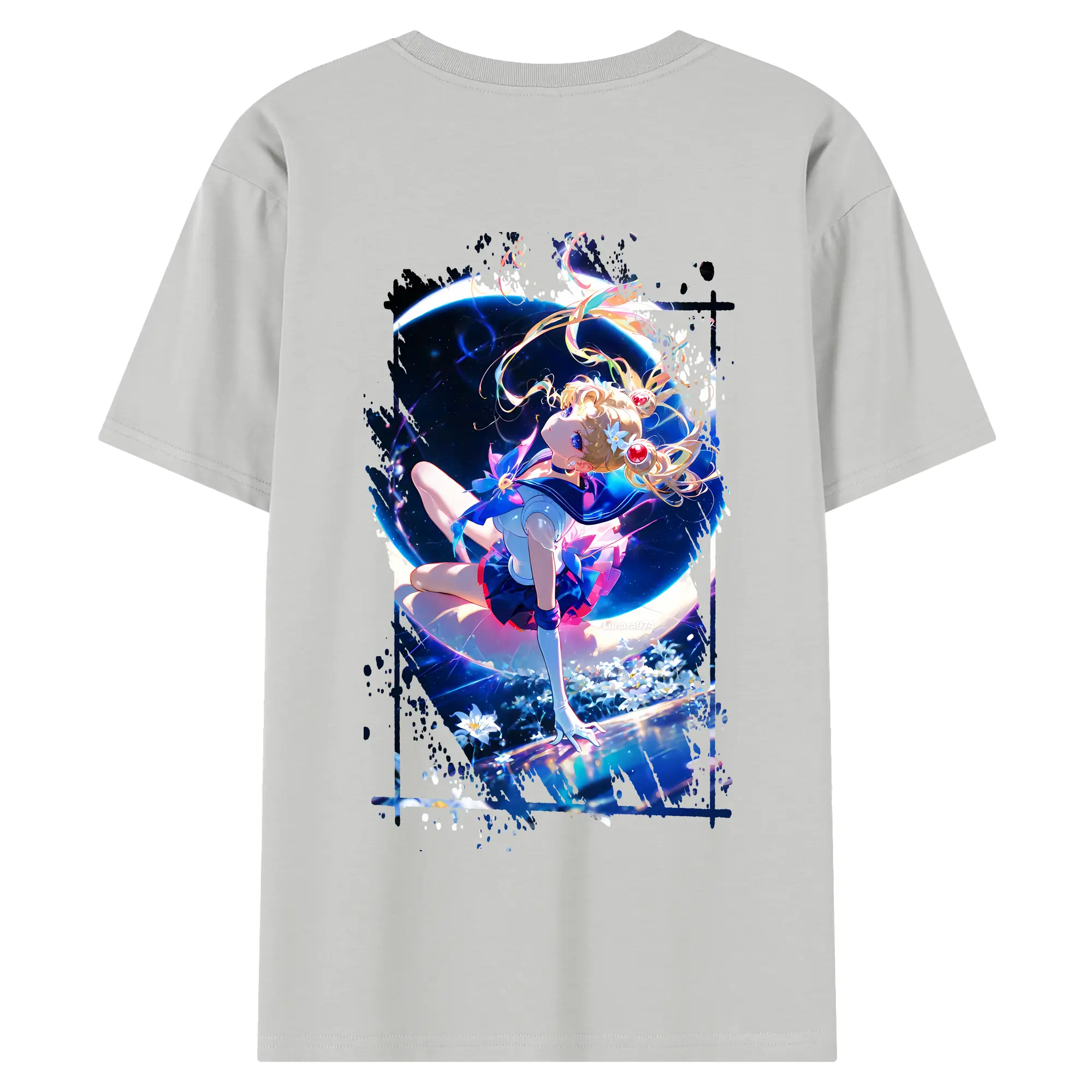 美少女戦士セーラームーン グッズ 月野 うさぎ - 綿100% ヴィンテージ風 半袖Tシャツ ・ 背面プリント ・ 柔らか肌触り ・ 通気性 快適 ・ スポーツ カジュアル 外出用