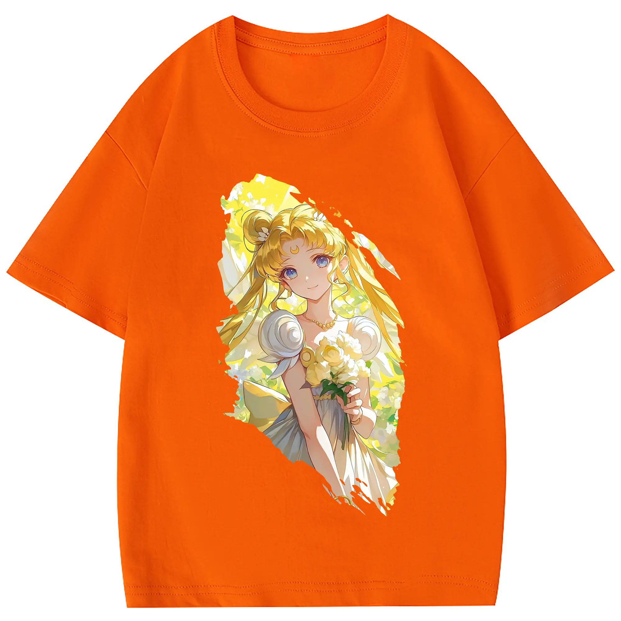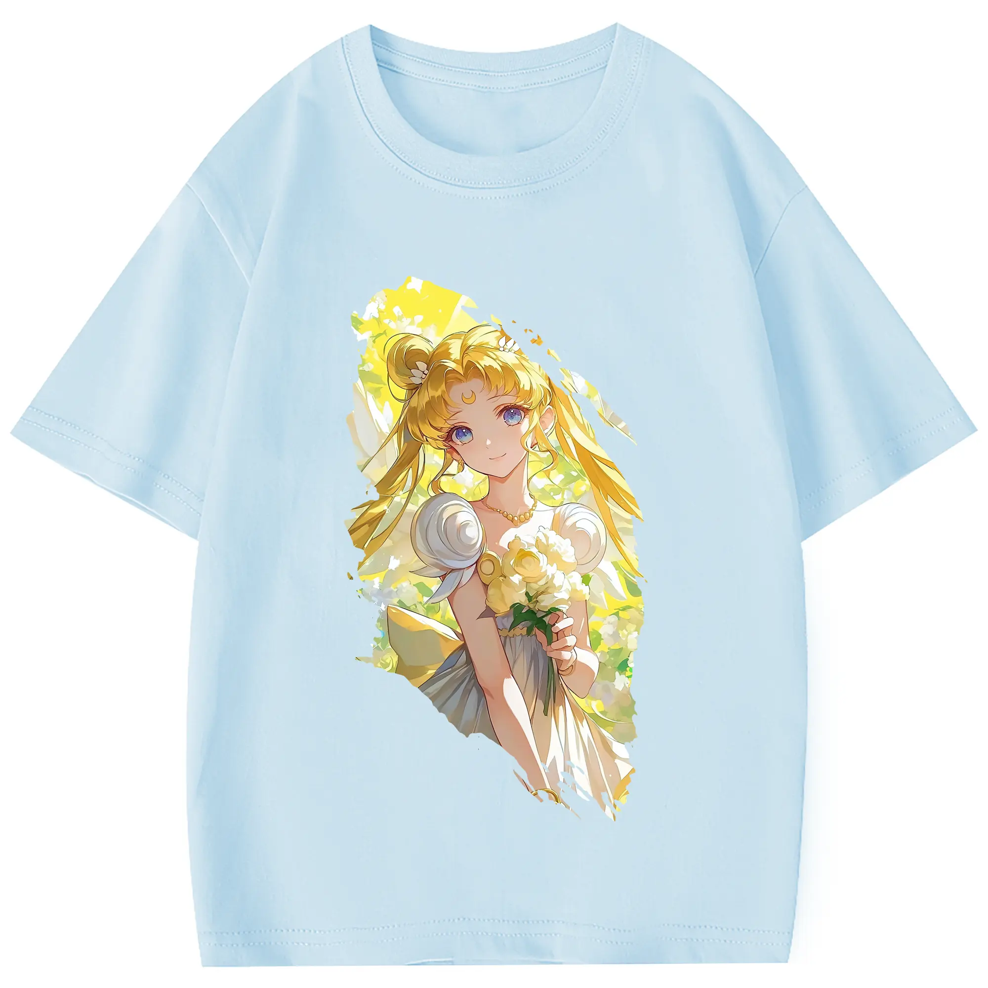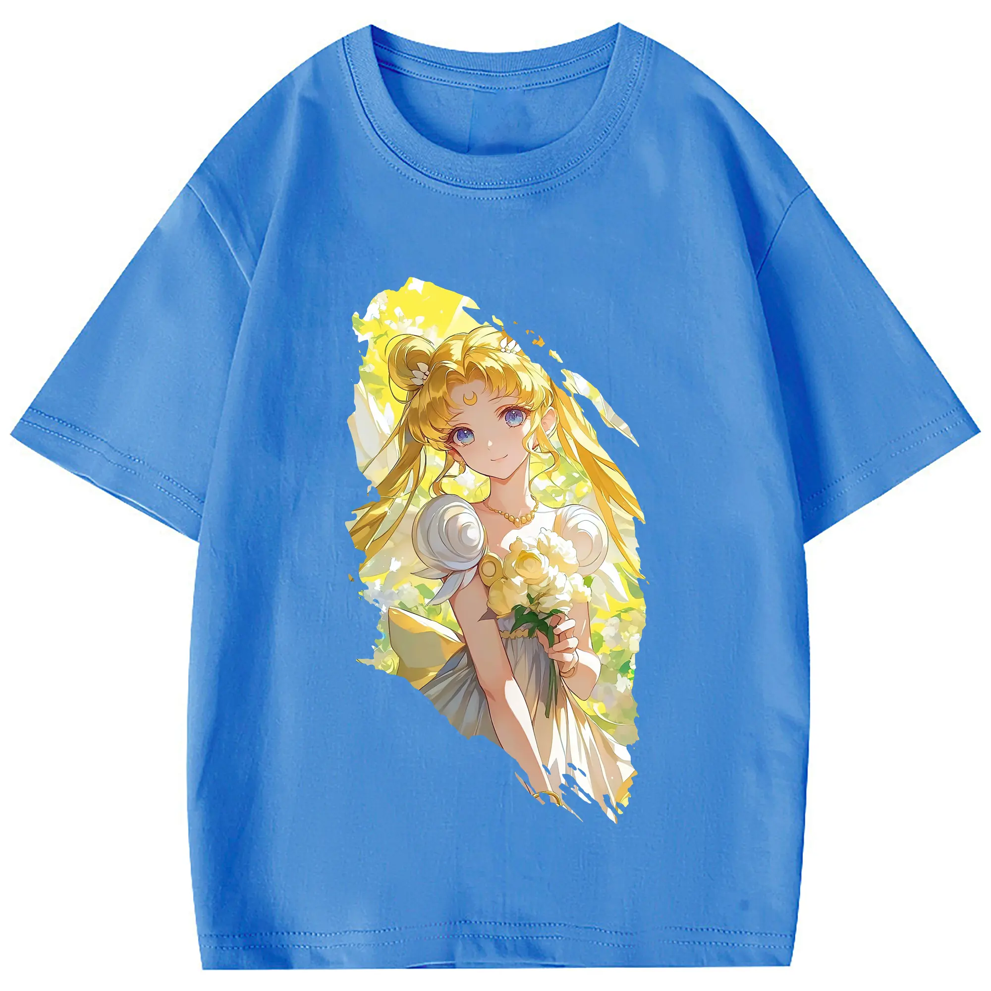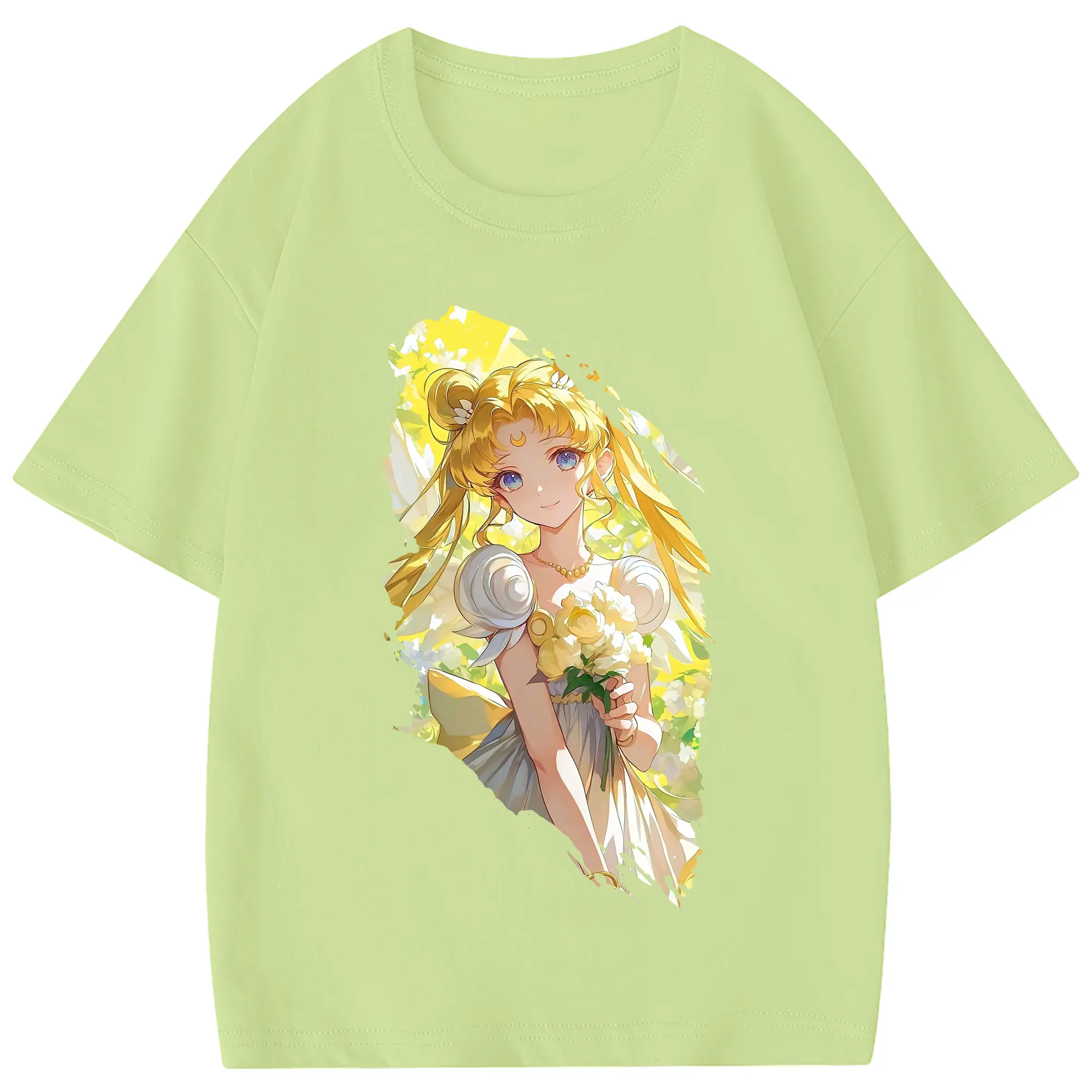 美少女戦士セーラームーン グッズ 月野 うさぎ - 綿100% 半袖Tシャツ ・ フロントプリント ・ 快適 通気性 ・ 日常使い 散歩 スポーツ用