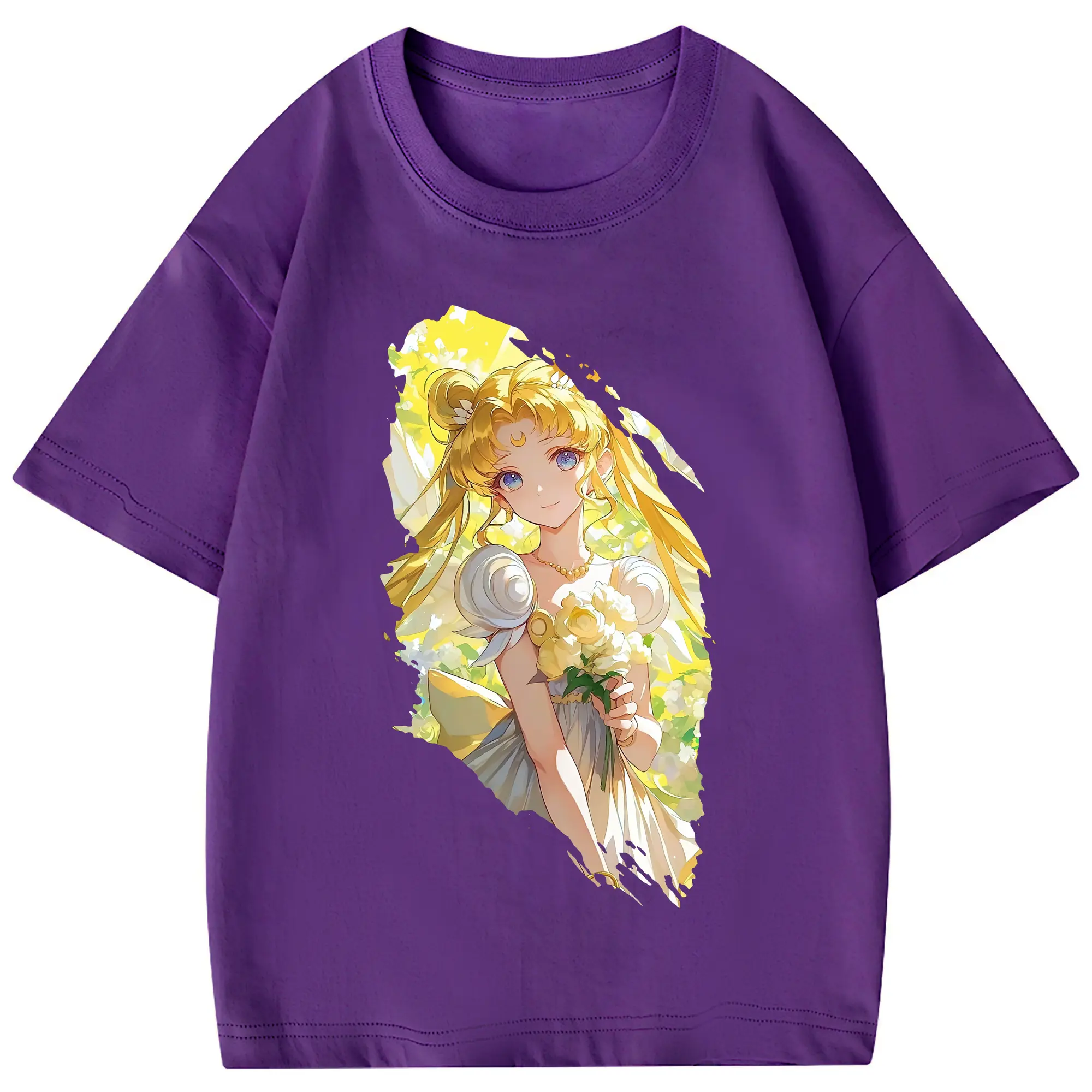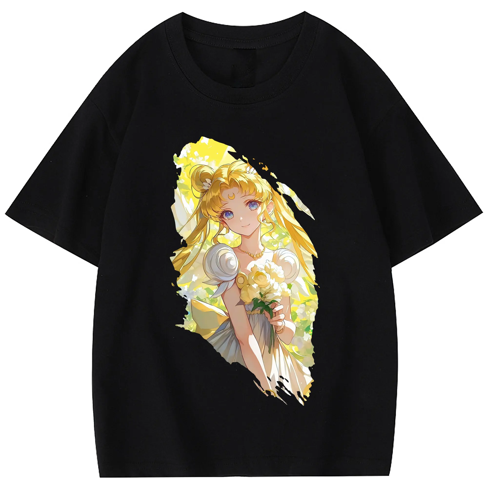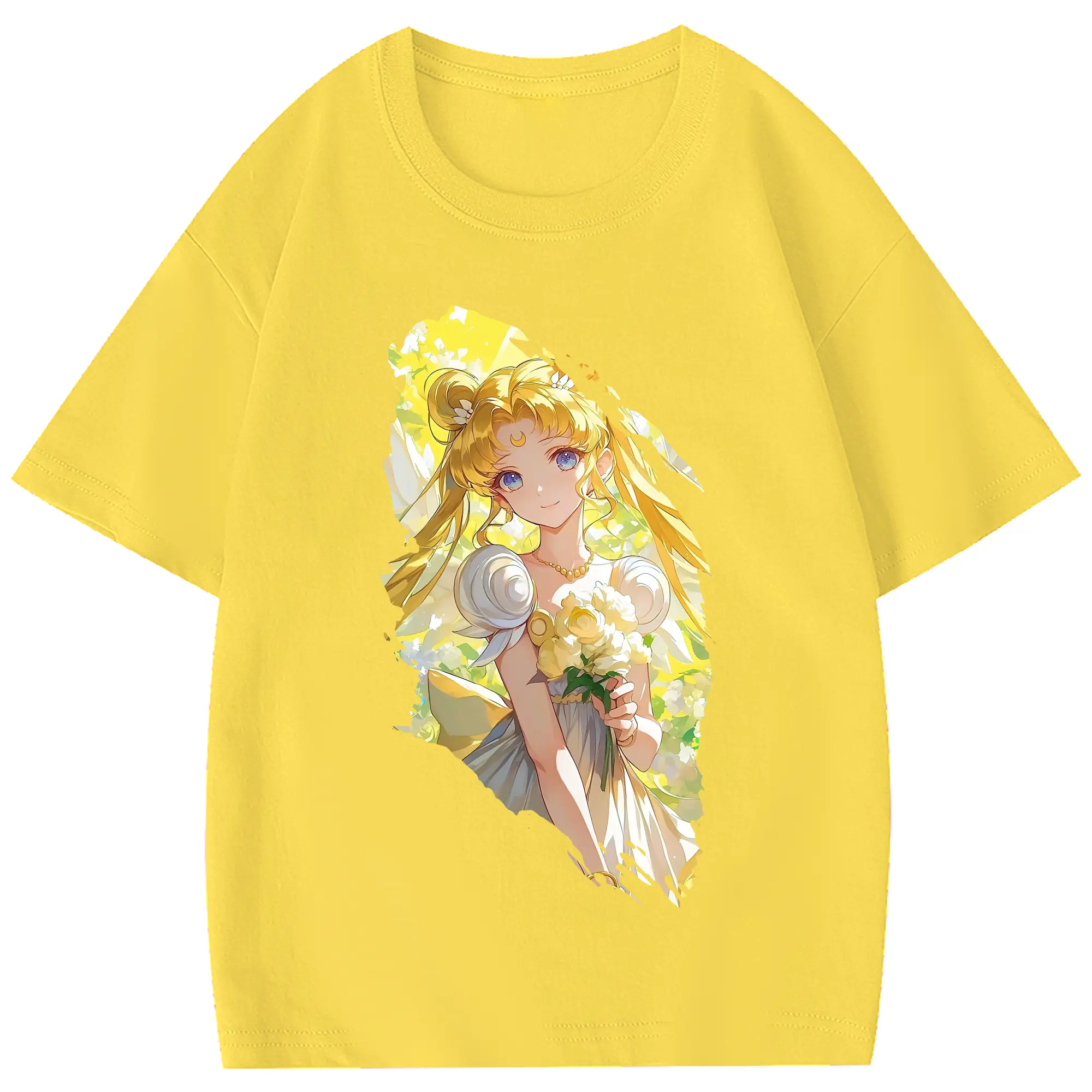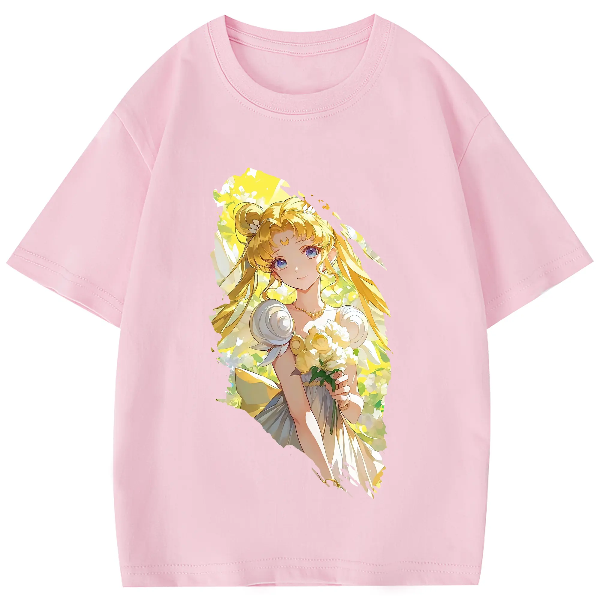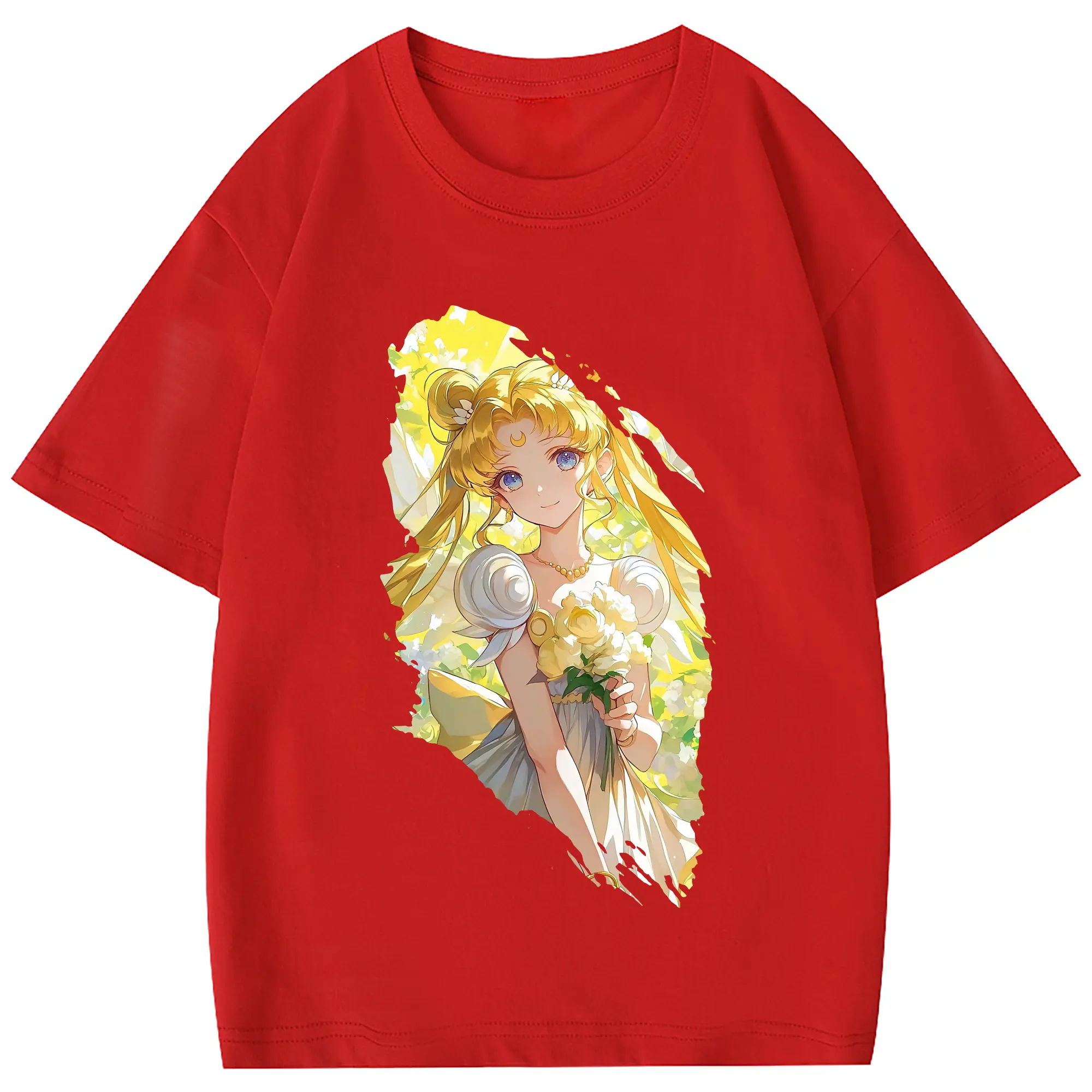 美少女戦士セーラームーン グッズ 月野 うさぎ - 綿100% 半袖Tシャツ ・ フロントプリント ・ 快適 通気性 ・ 日常使い 散歩 スポーツ用