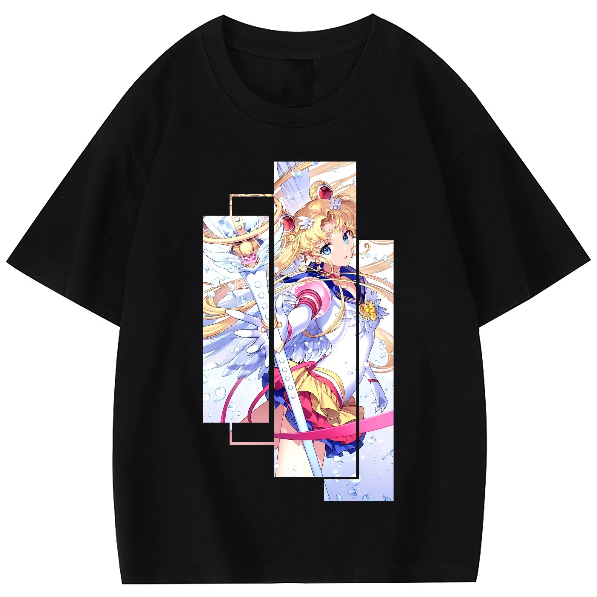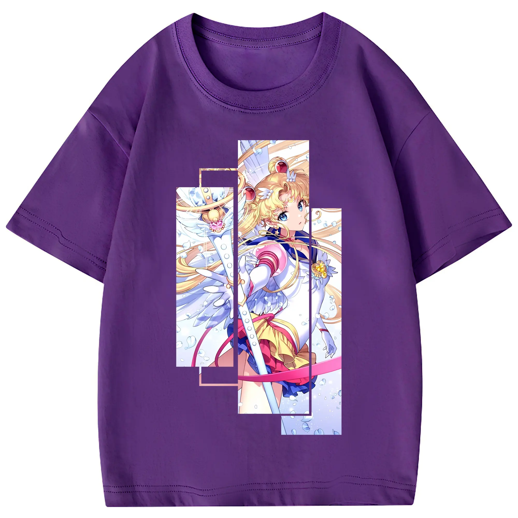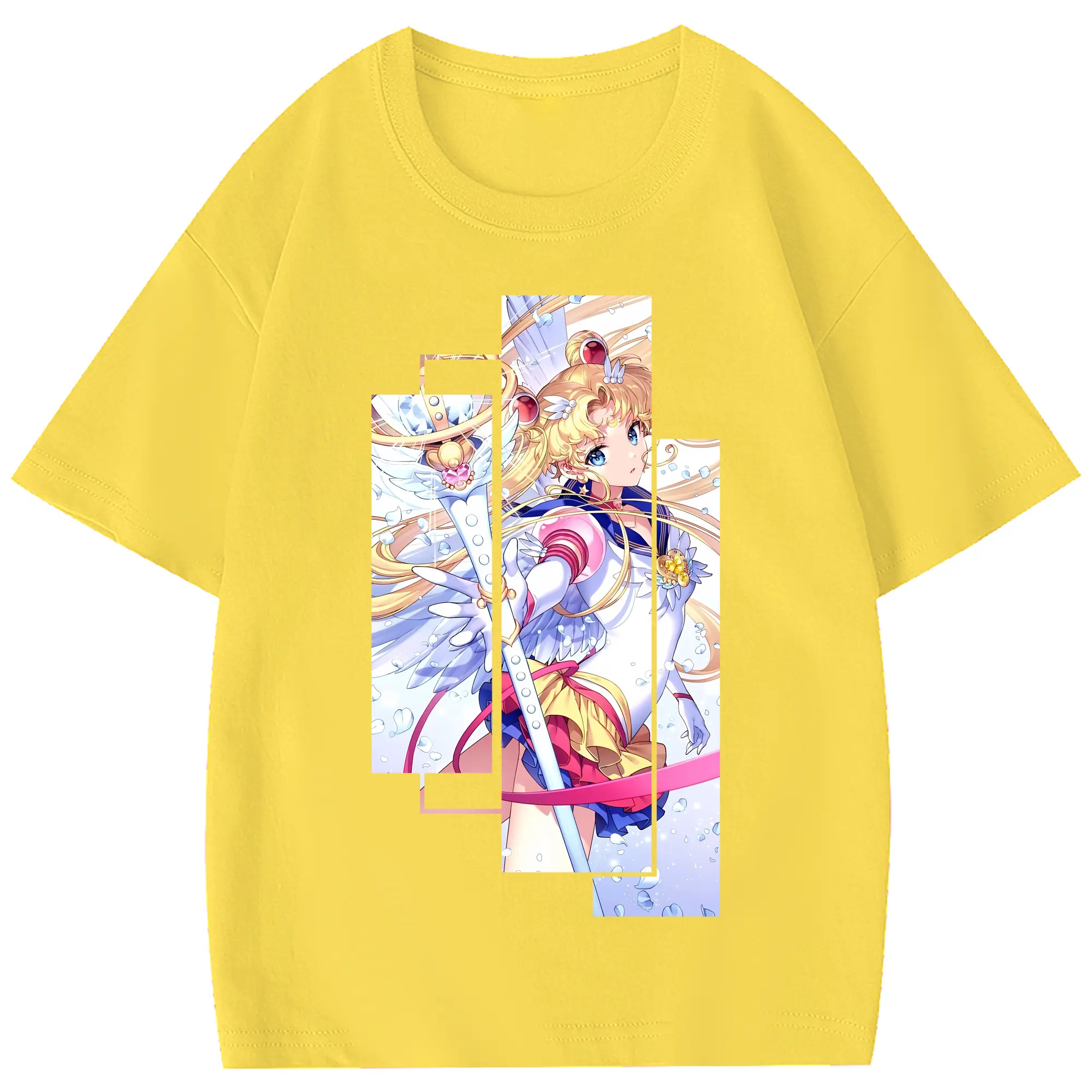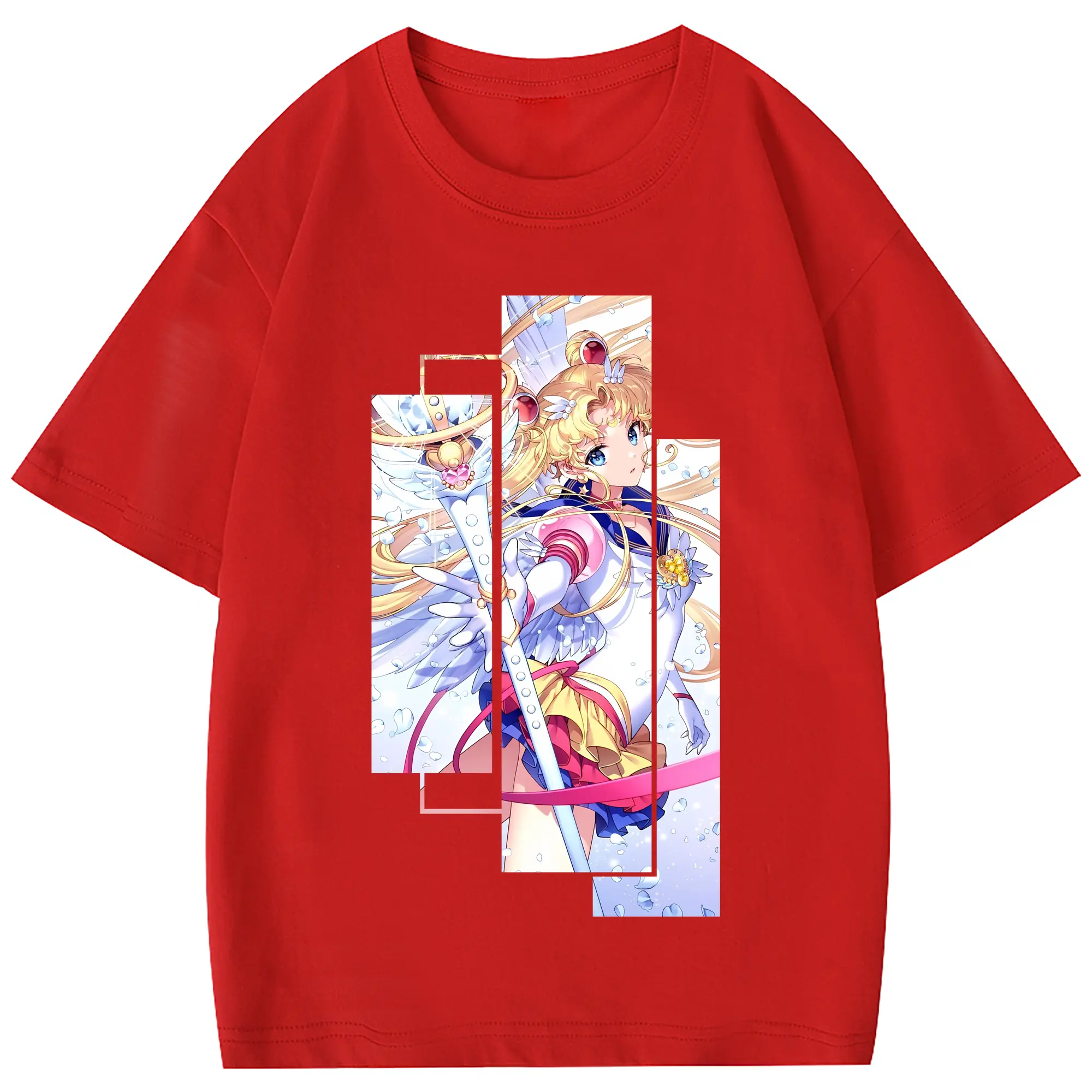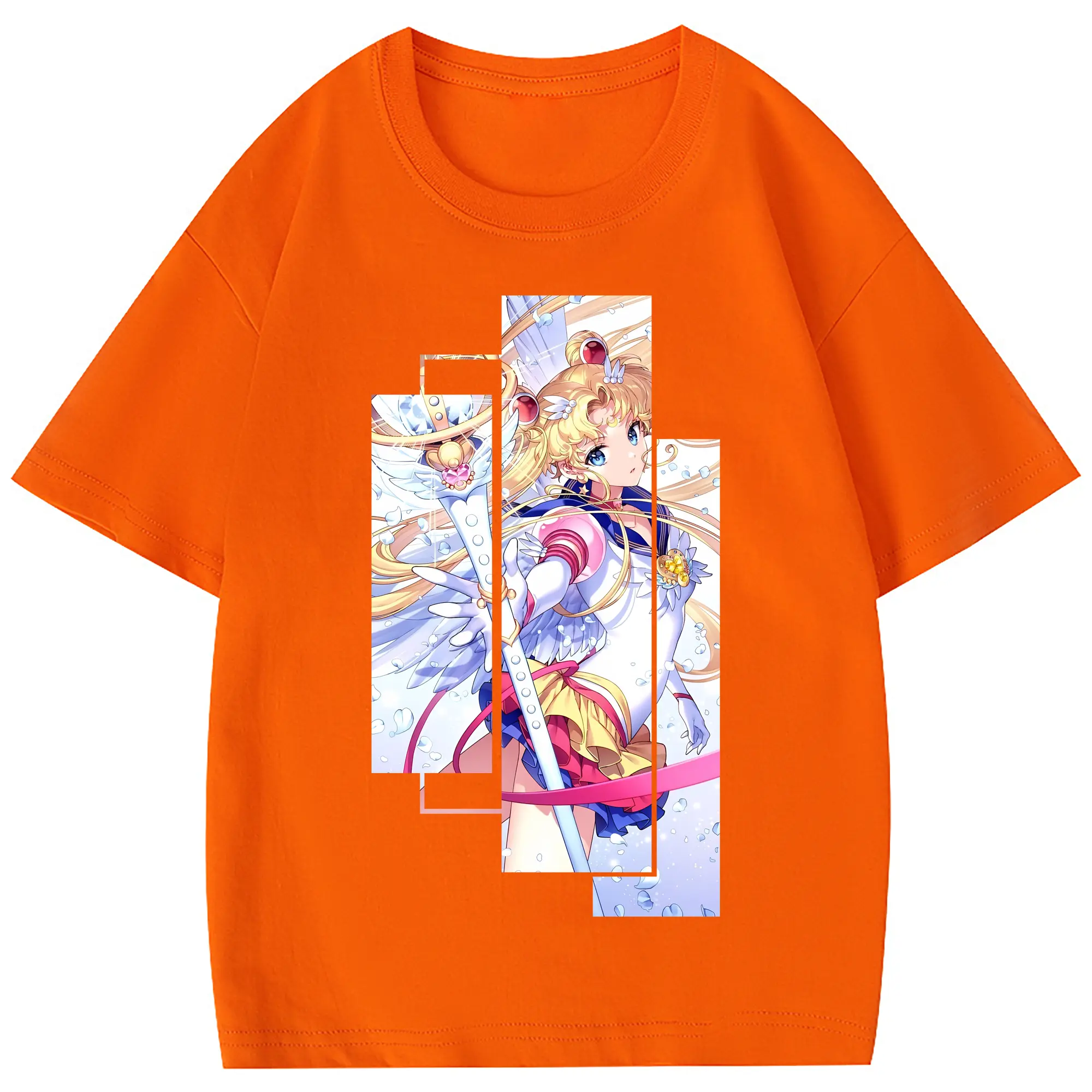 美少女戦士セーラームーン グッズ 月野 うさぎ - 綿100% 半袖Tシャツ ・ フロントプリント ・ 快適 通気性 ・ 日常使い 散歩 スポーツ用