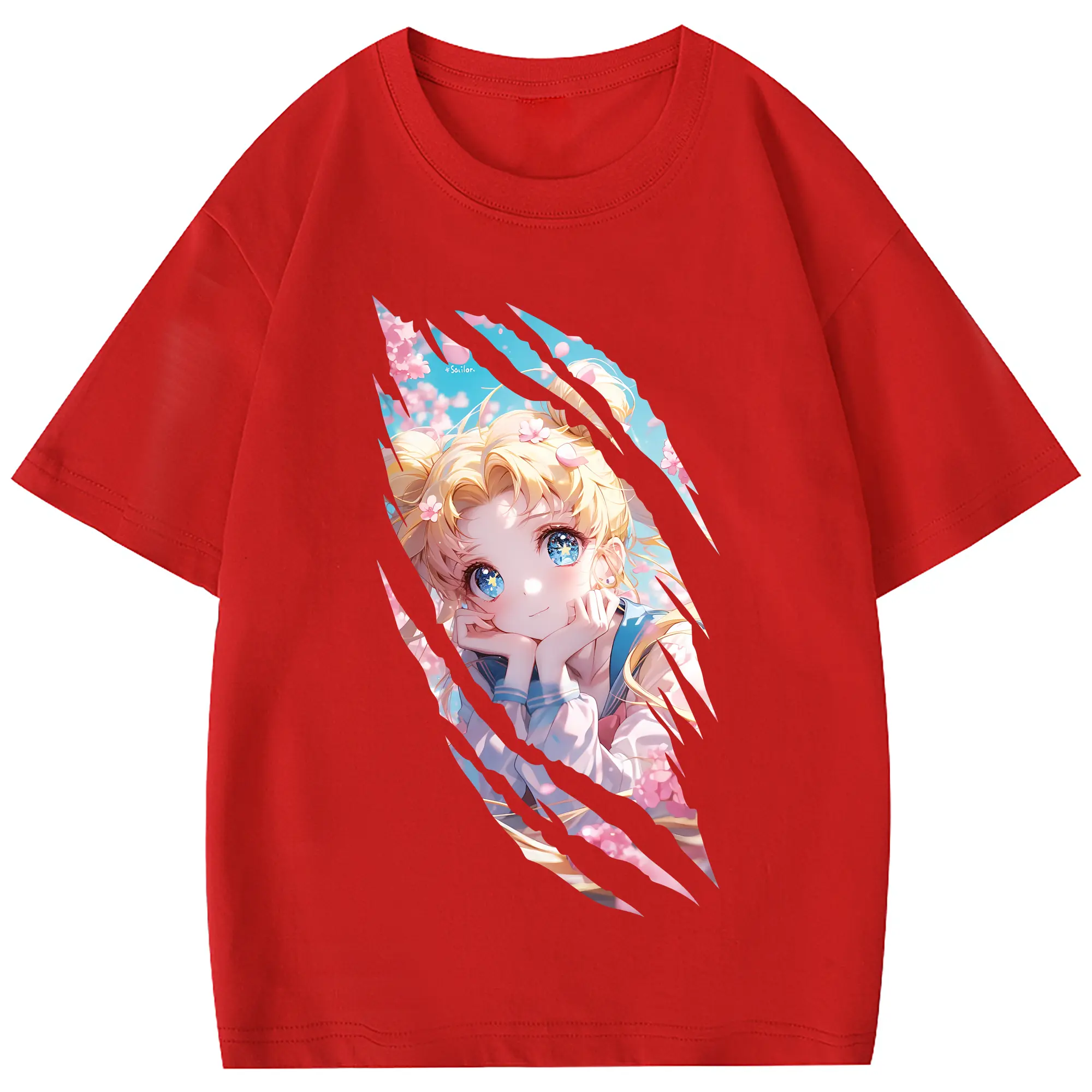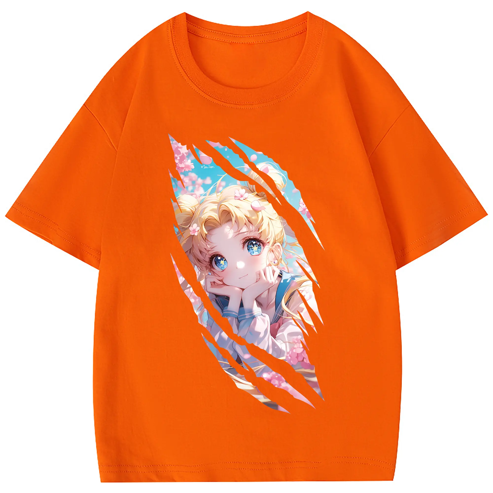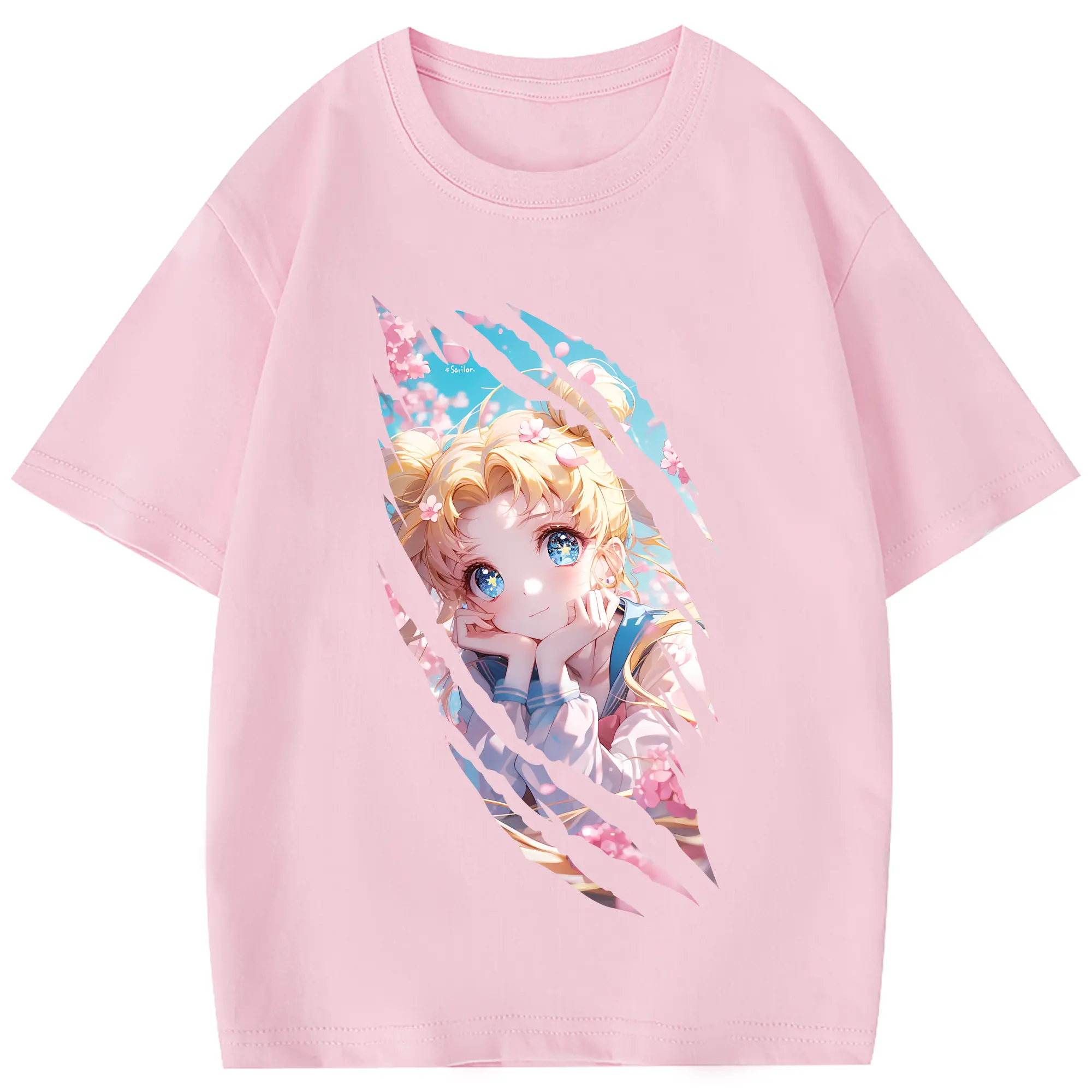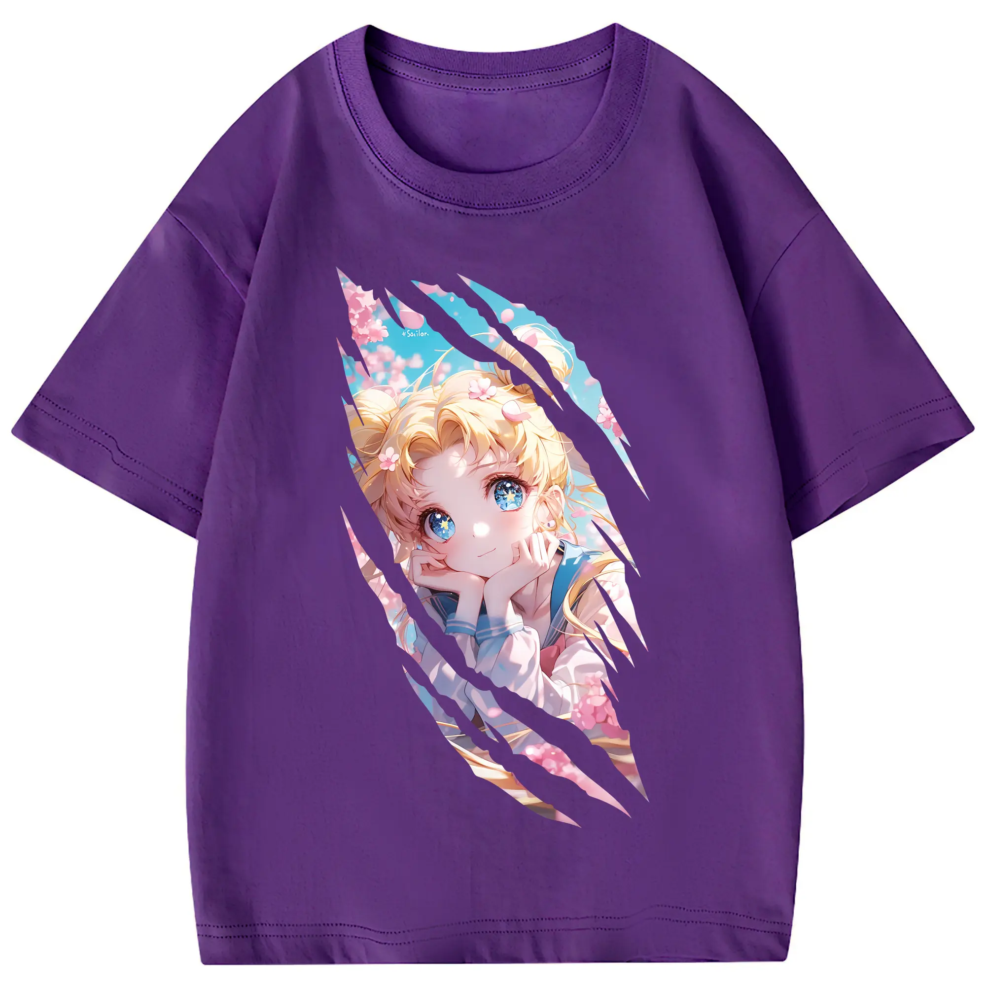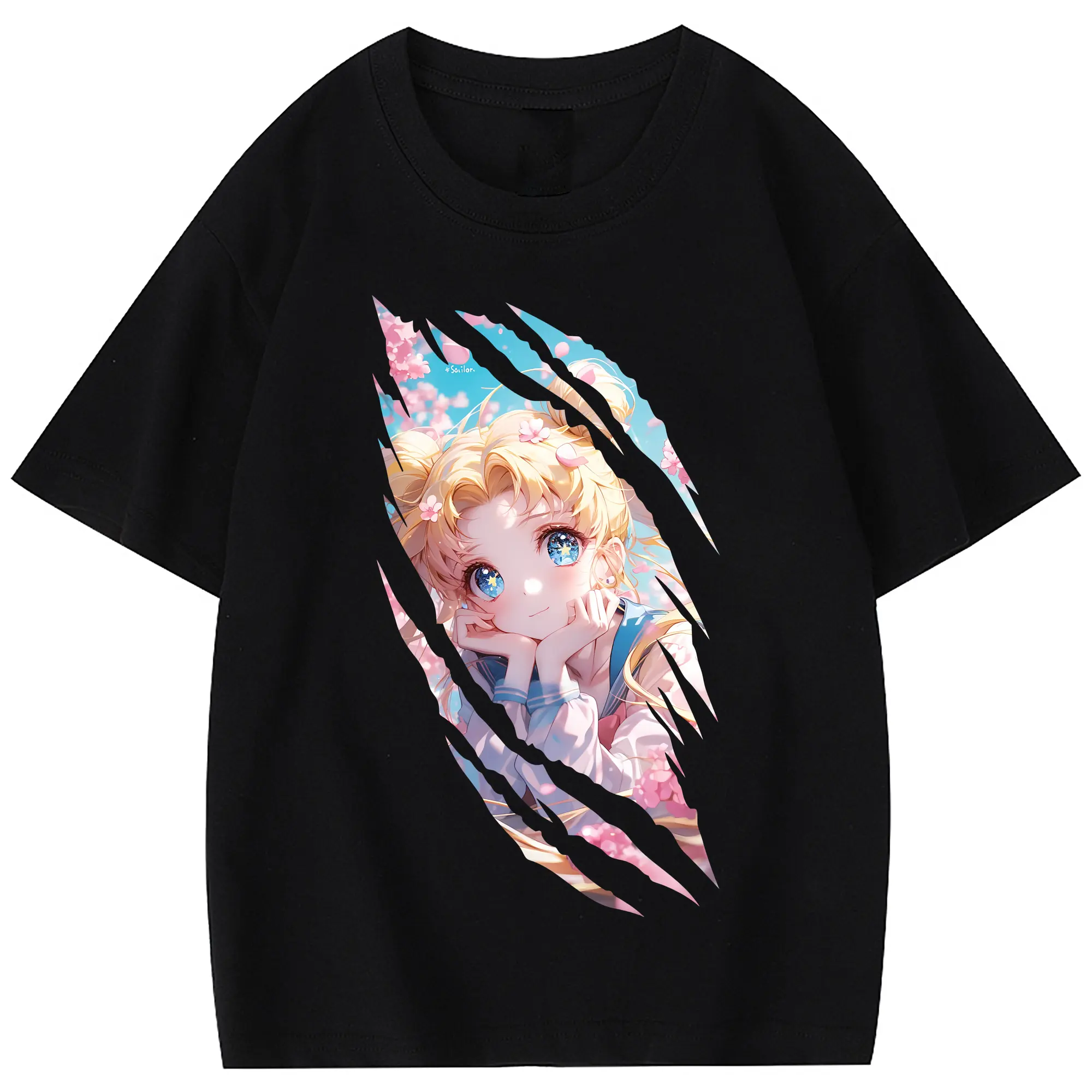 美少女戦士セーラームーン グッズ 月野 うさぎ - 綿100% 半袖Tシャツ ・ バックプリント ・ 快適 通気性 ・ 日常使い 散歩 スポーツ用