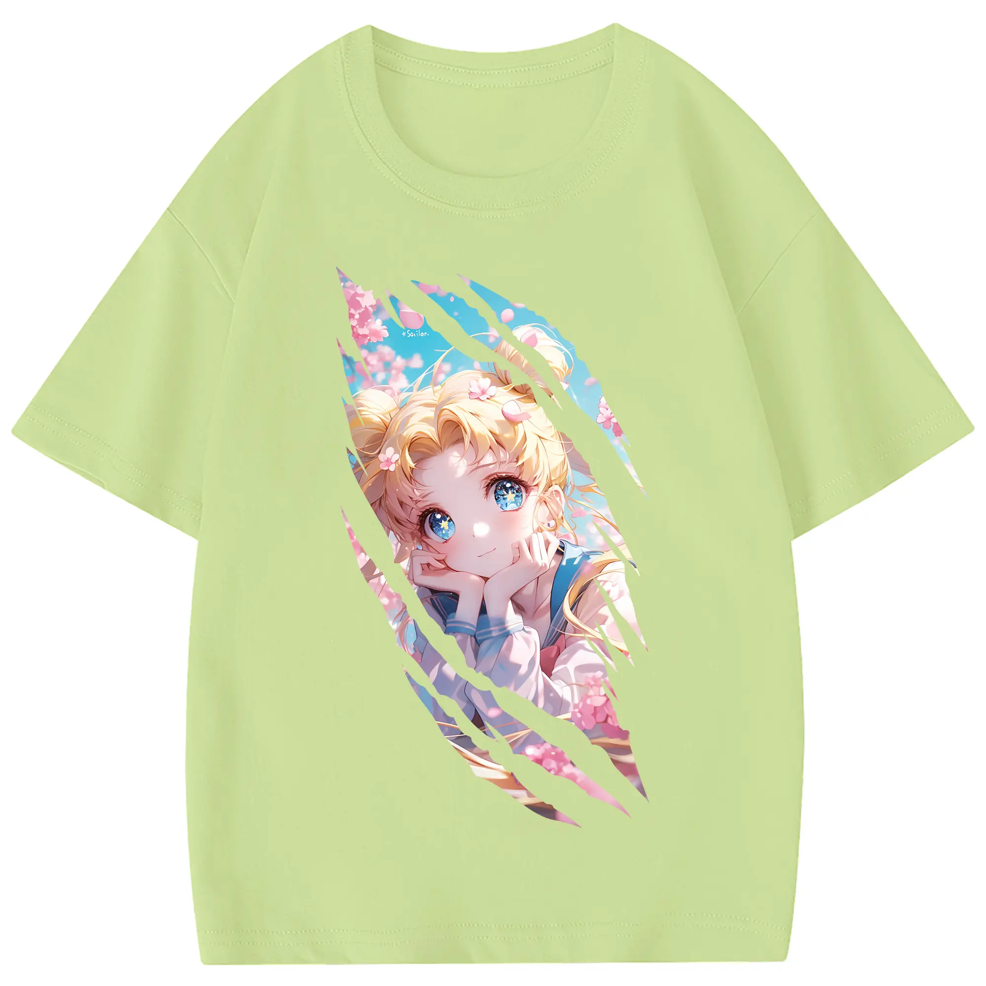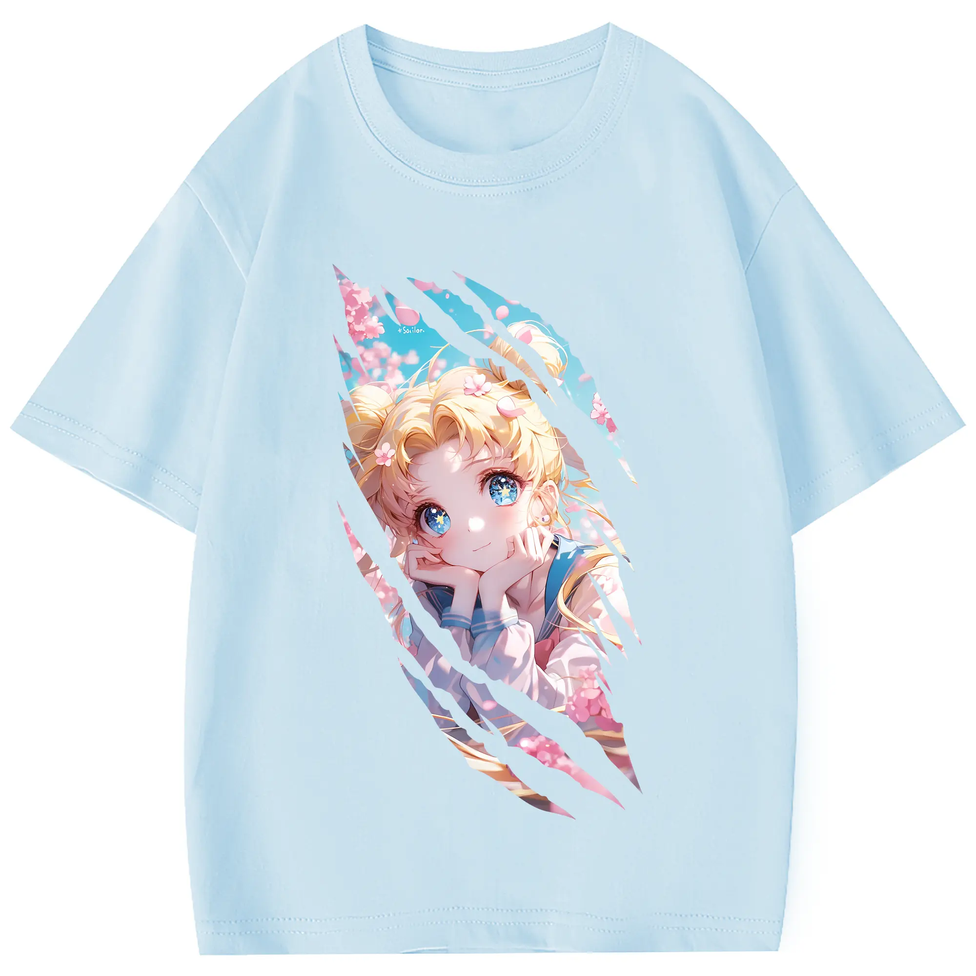 美少女戦士セーラームーン グッズ 月野 うさぎ - 綿100% 半袖Tシャツ ・ フロントプリント ・ 快適 通気性 ・ 日常使い 散歩 スポーツ用
