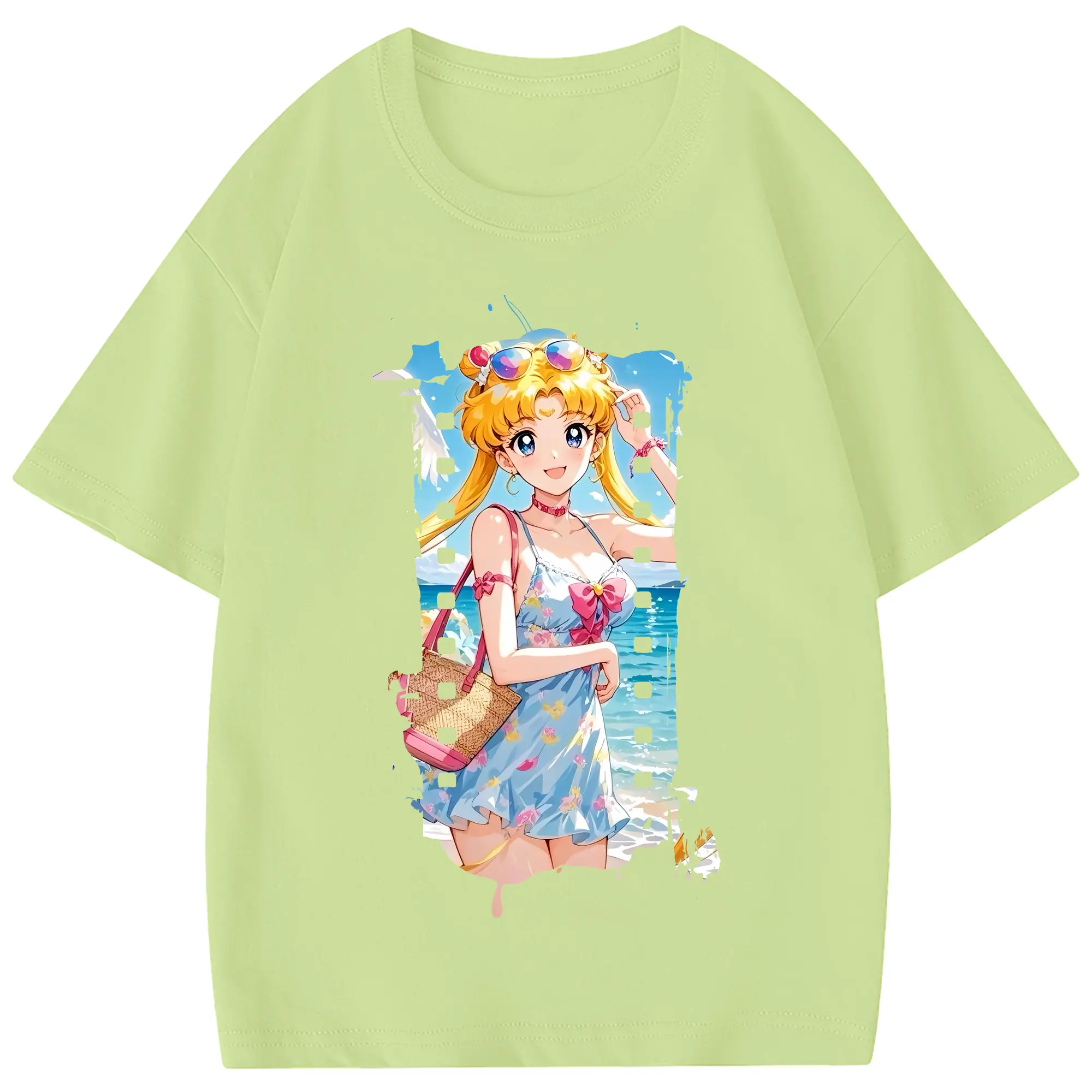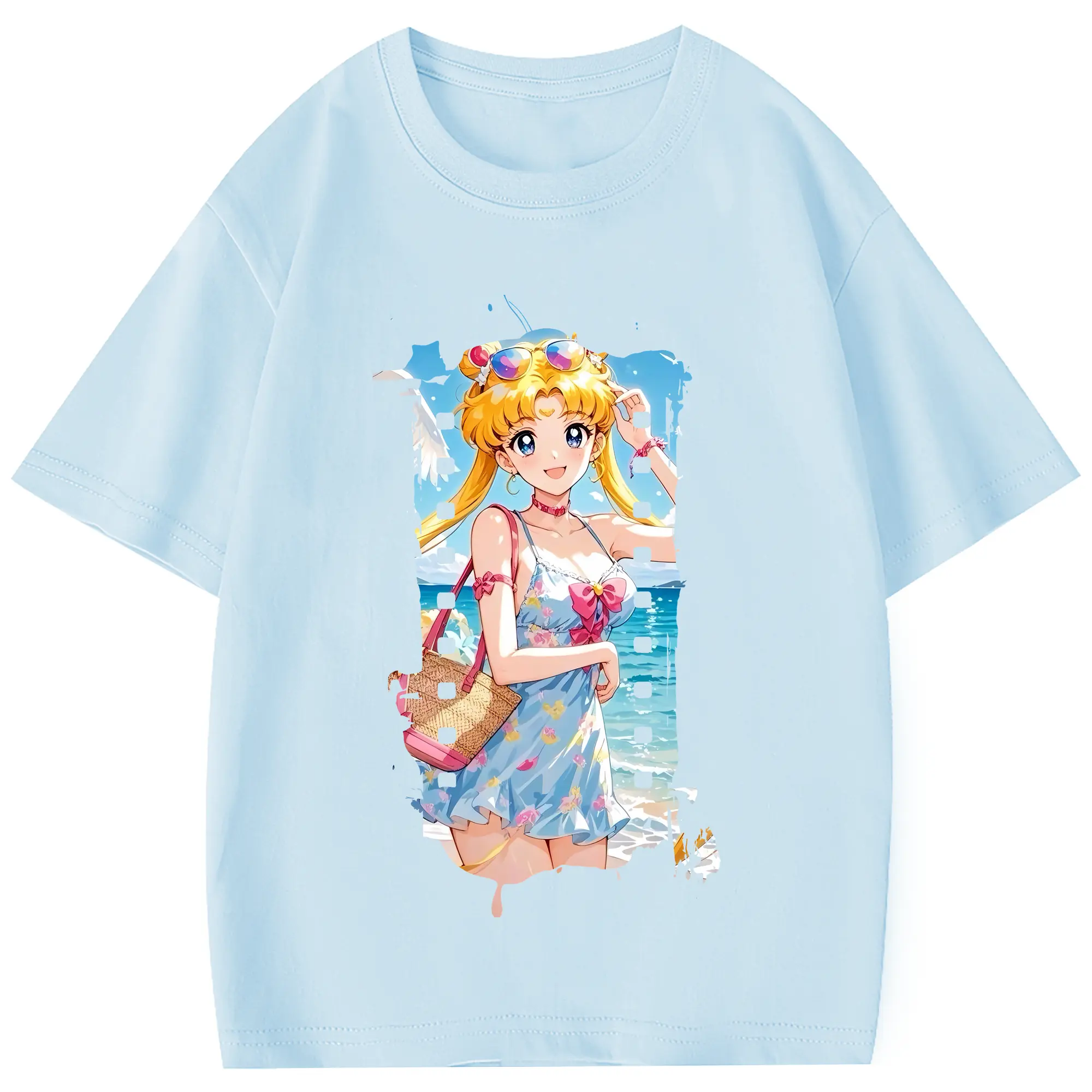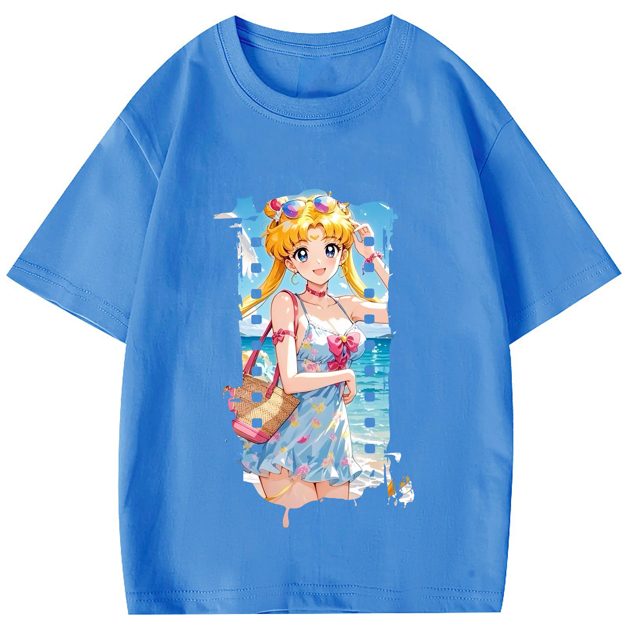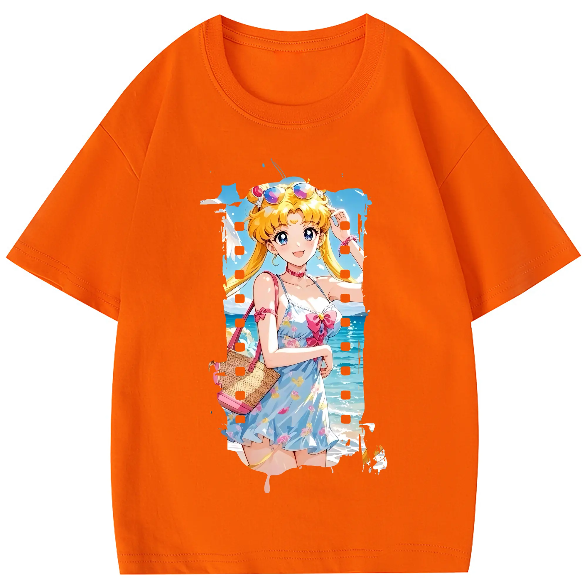美少女戦士セーラームーン グッズ 月野 うさぎ - 綿100% 半袖Tシャツ ・ フロントプリント ・ 快適 通気性 ・ 日常使い 散歩 スポーツ用