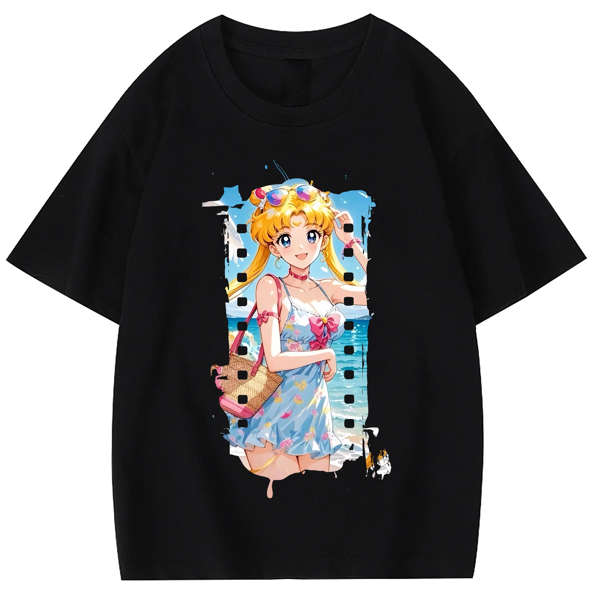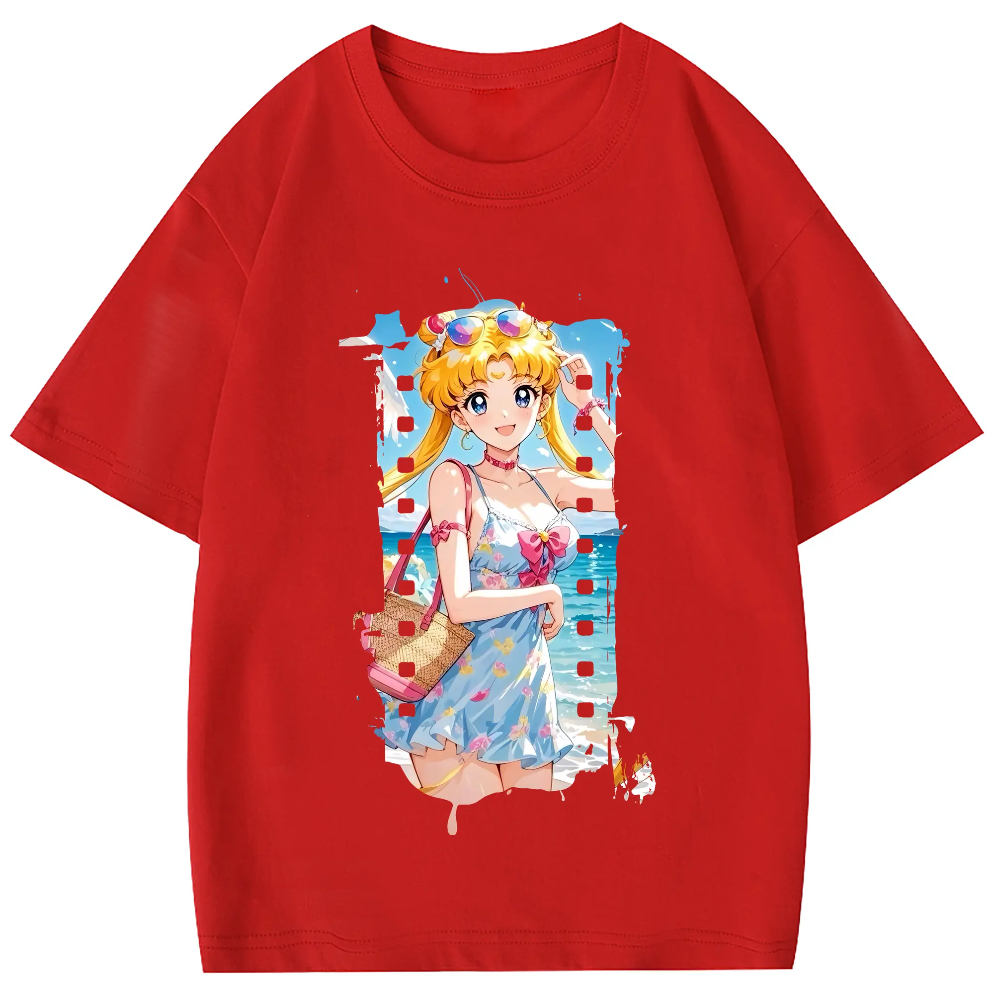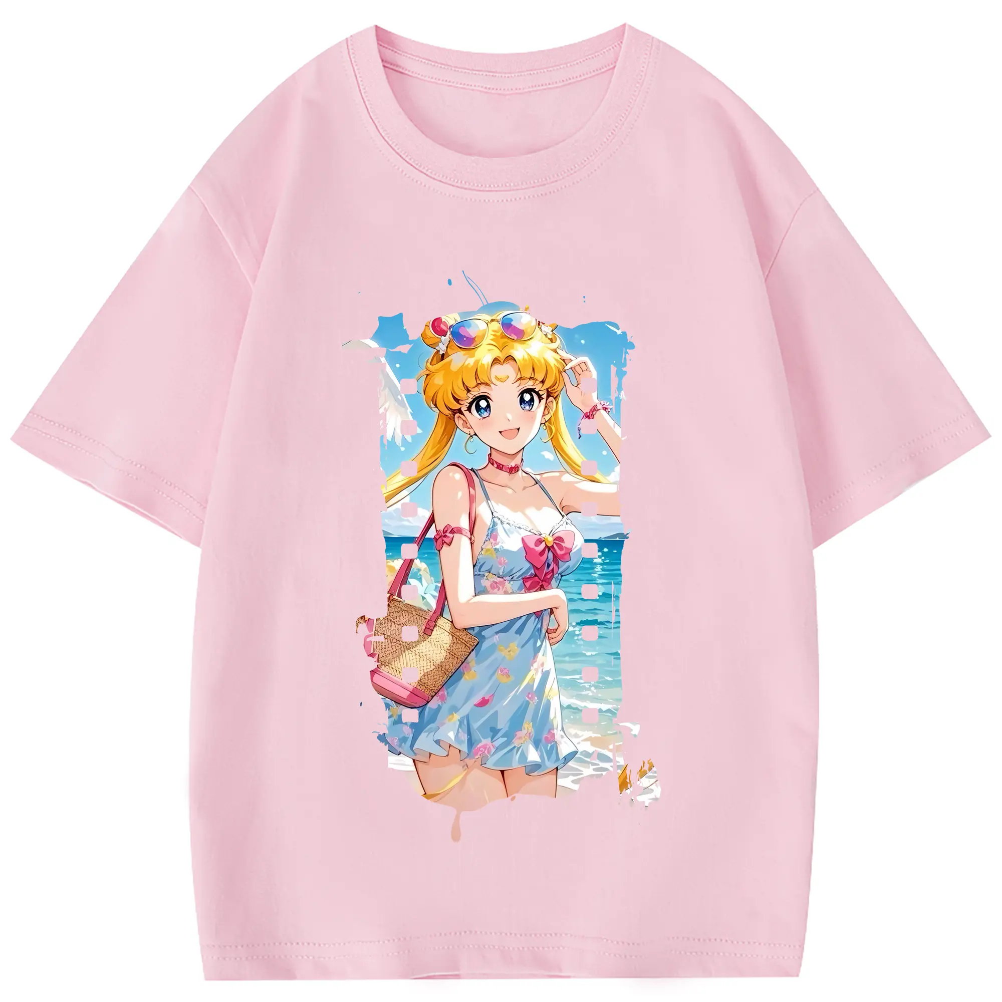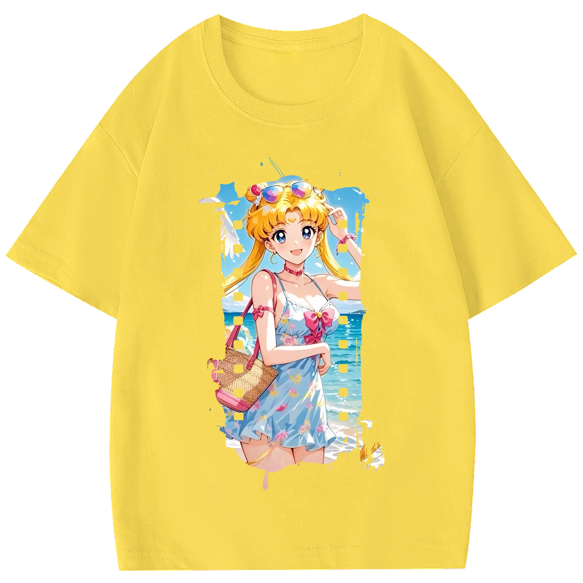 美少女戦士セーラームーン グッズ 月野 うさぎ - 綿100% 半袖Tシャツ ・ フロントプリント ・ 快適 通気性 ・ 日常使い 散歩 スポーツ用