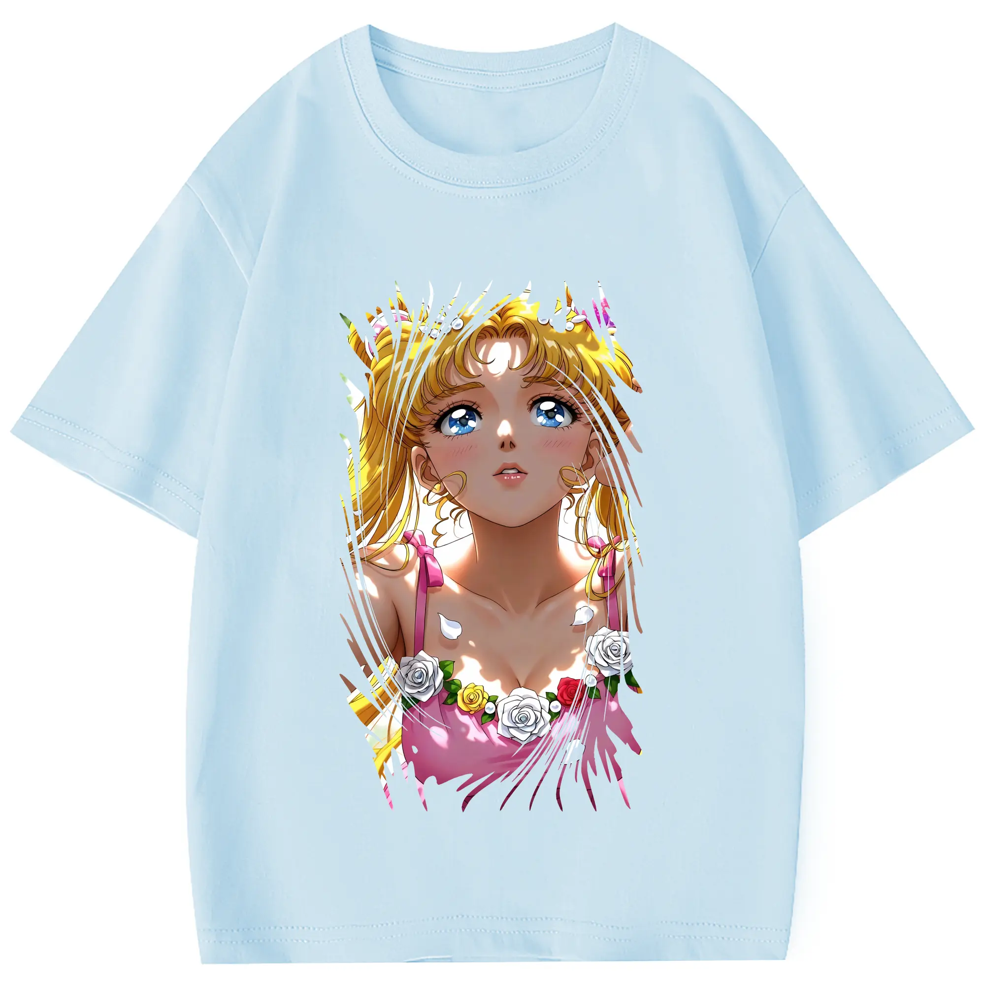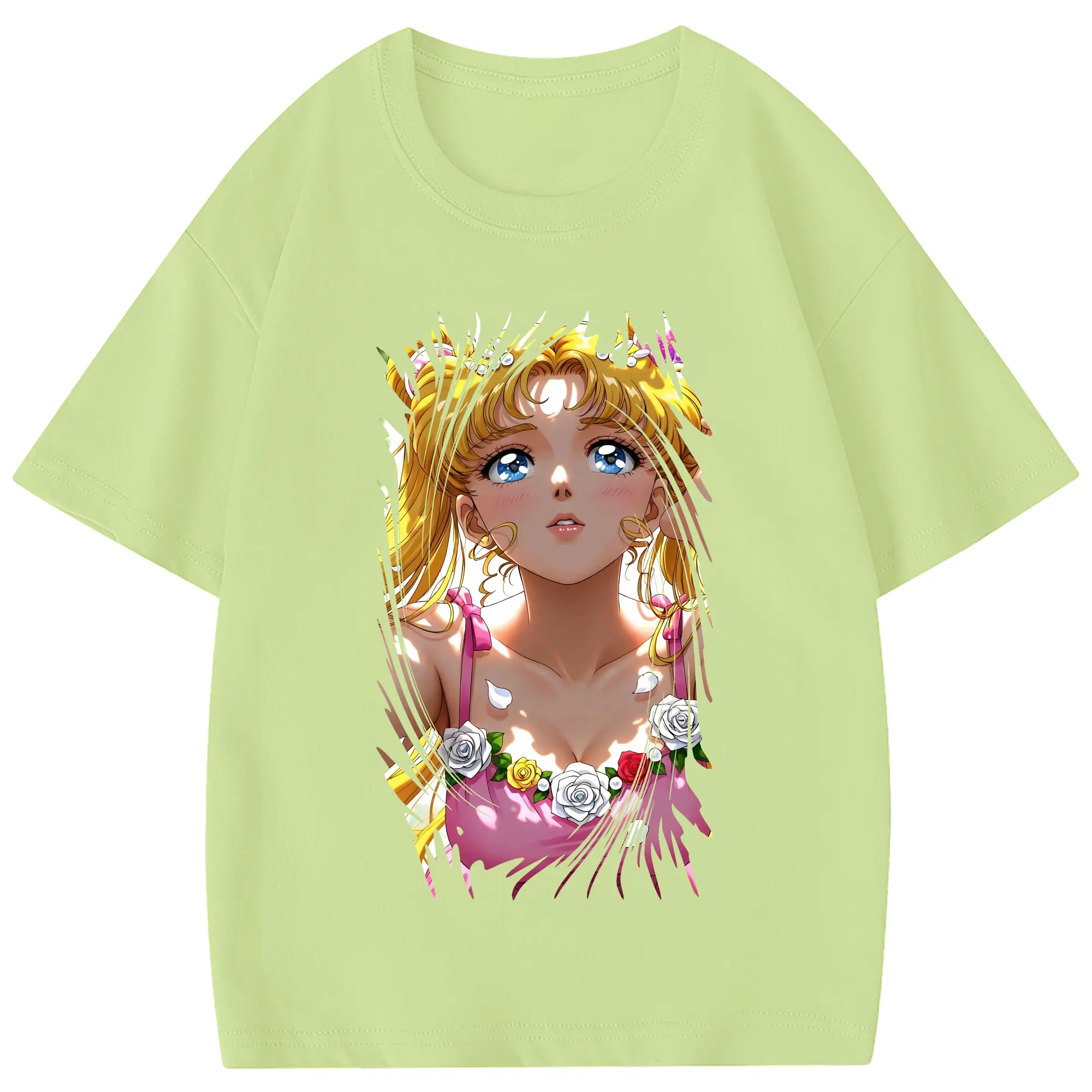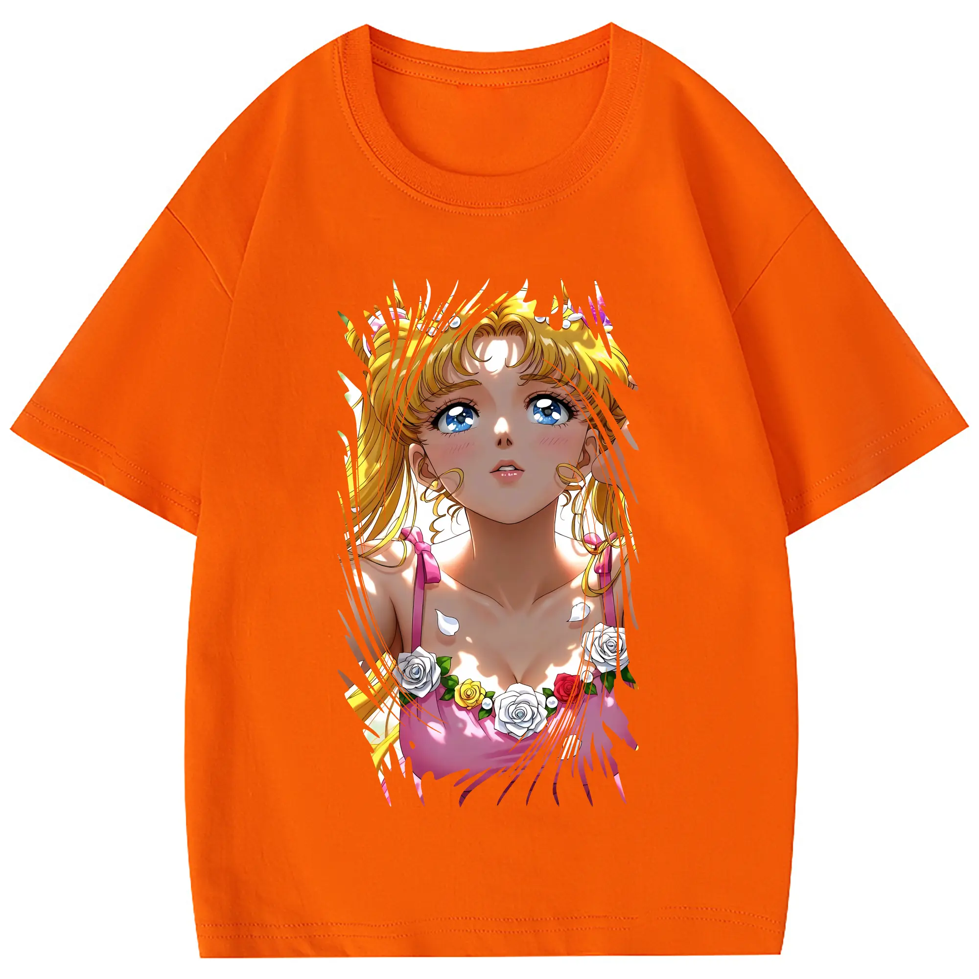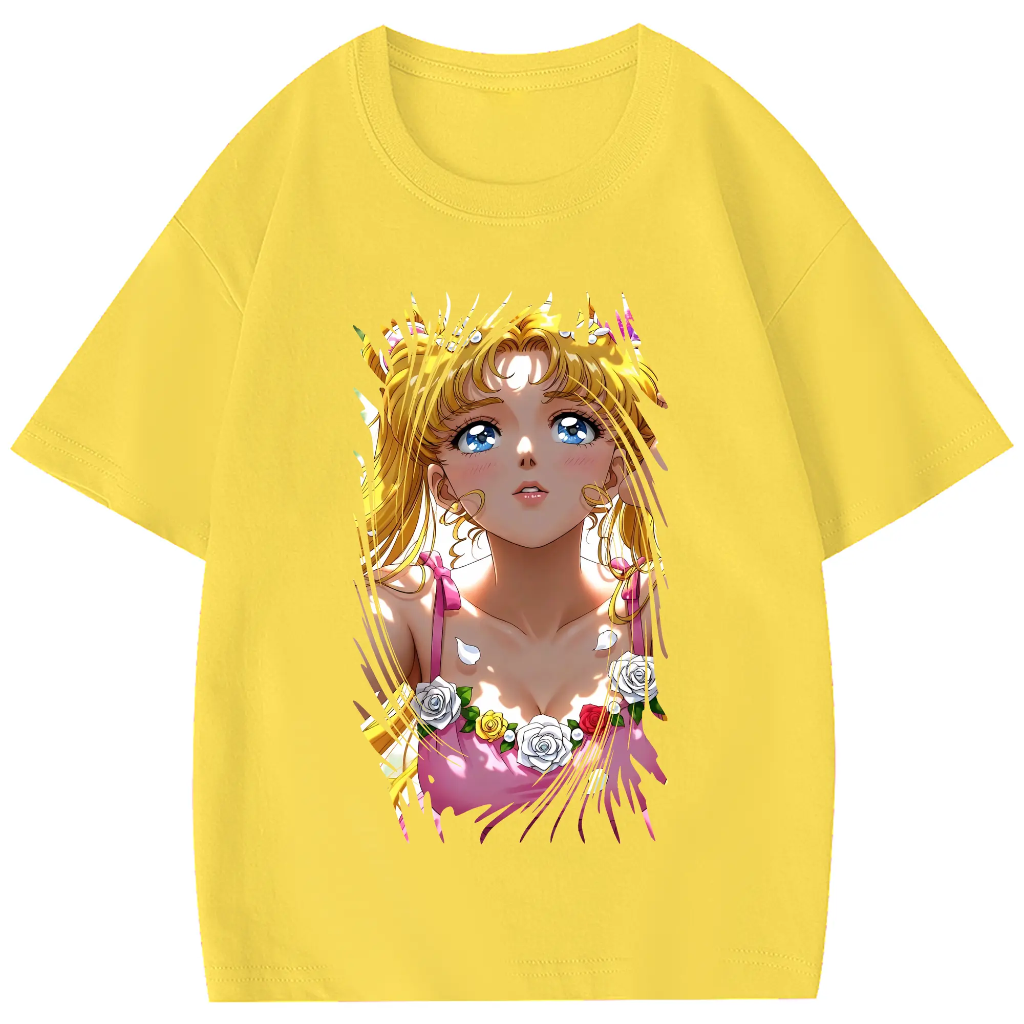 美少女戦士セーラームーン グッズ 月野 うさぎ - 綿100% 半袖Tシャツ ・ フロントプリント ・ 快適 通気性 ・ 日常使い 散歩 スポーツ用
