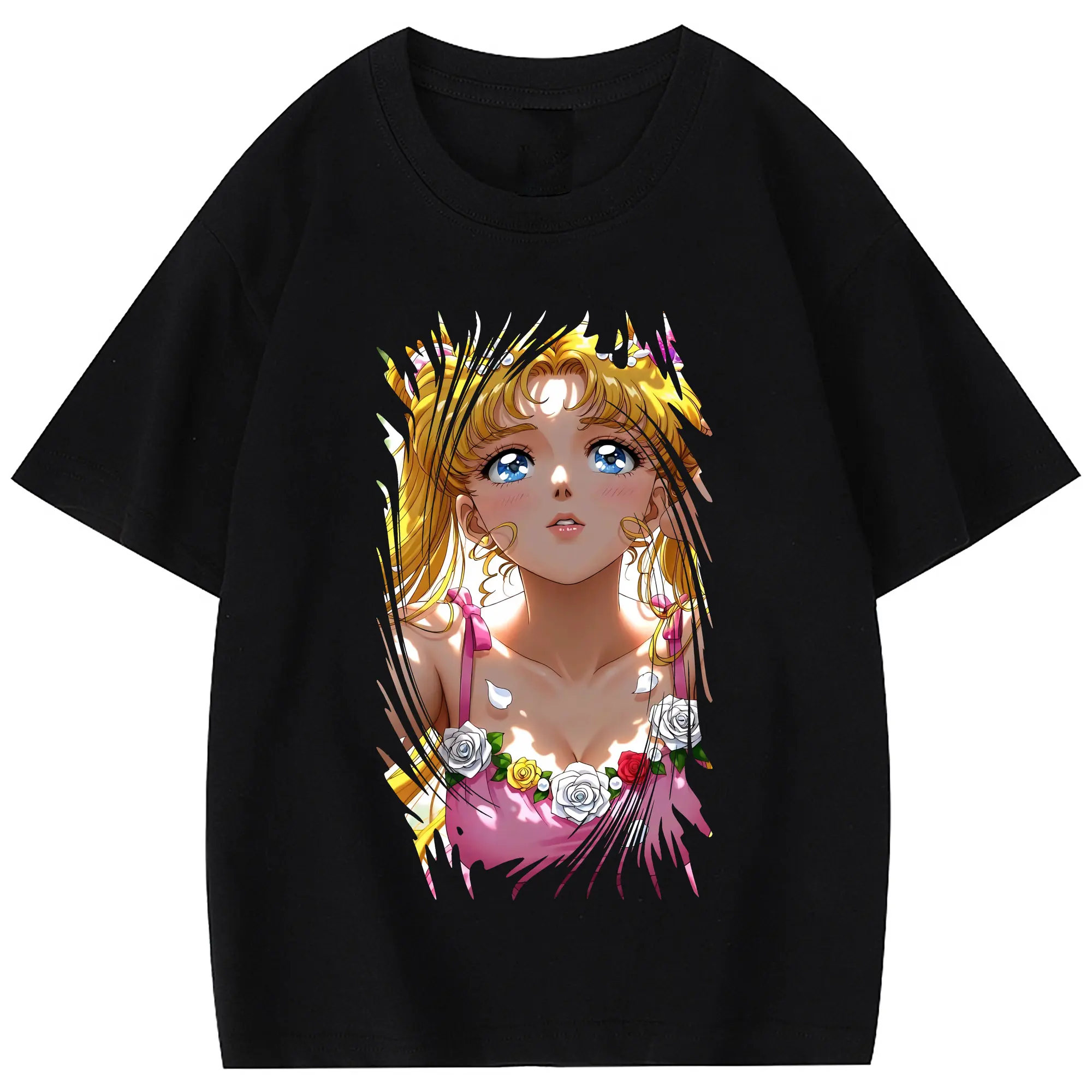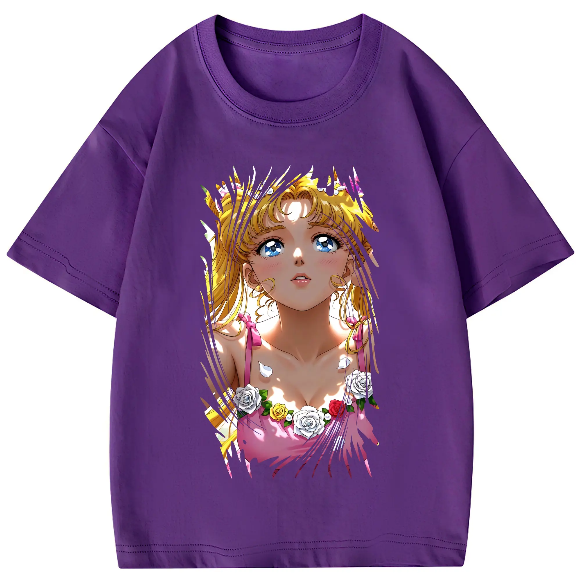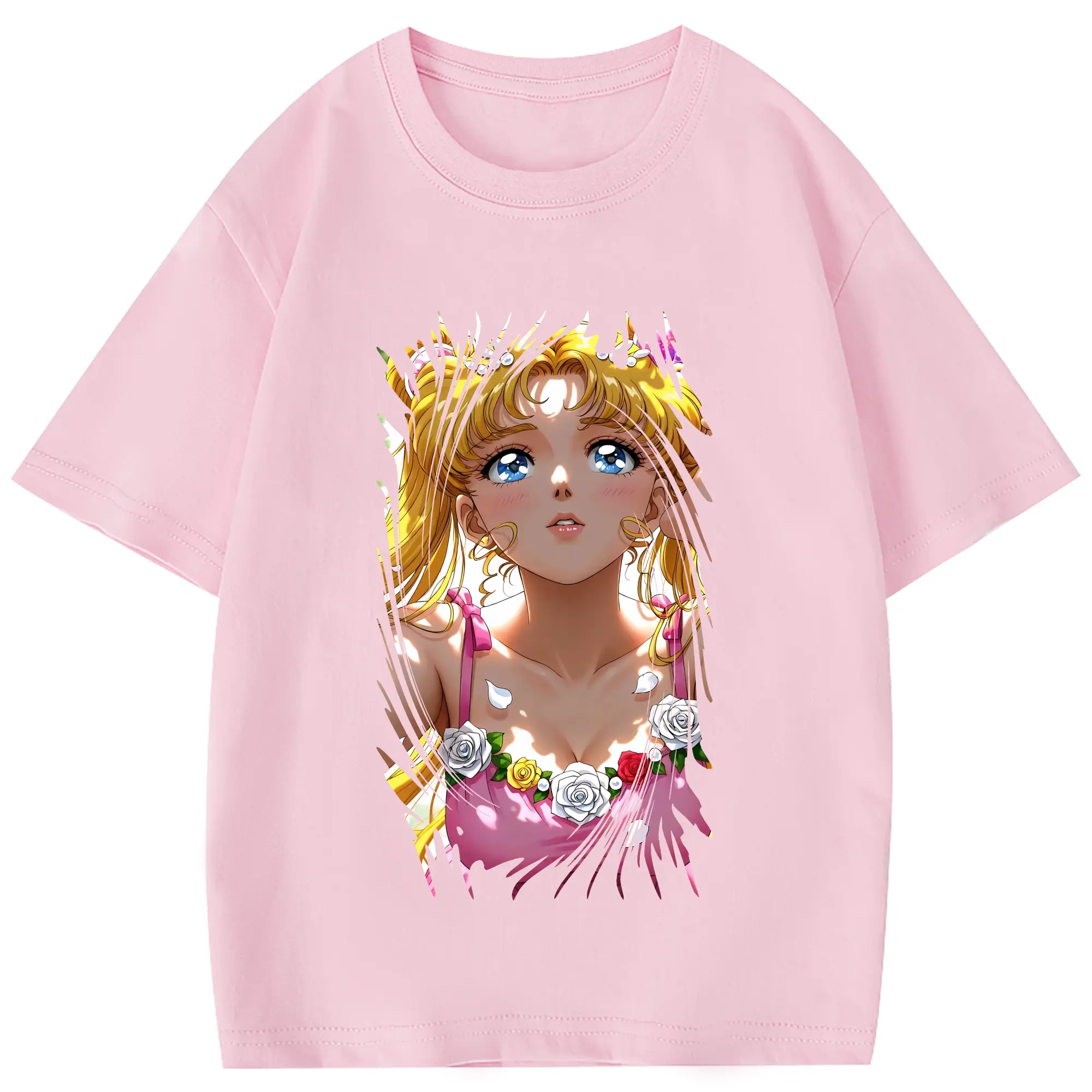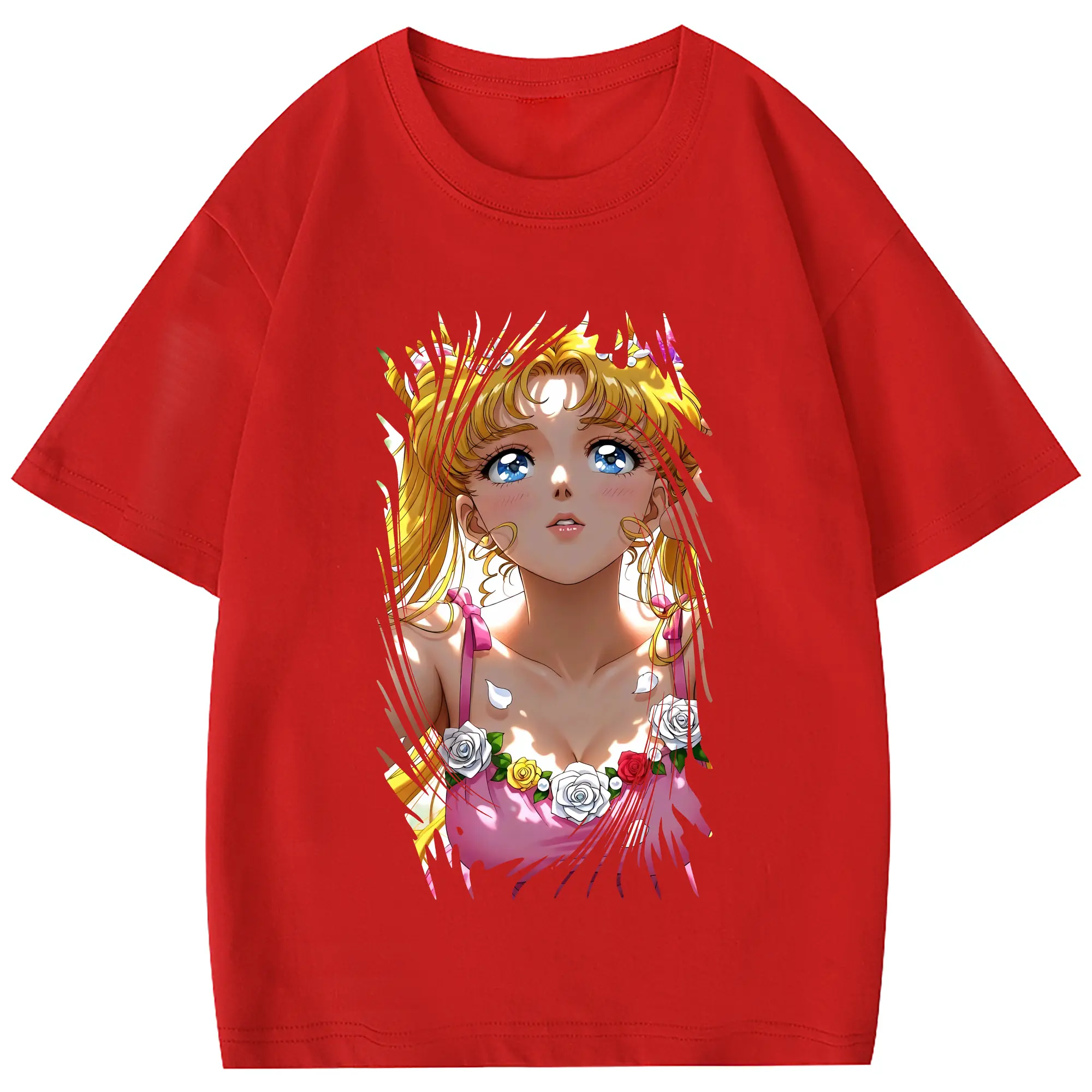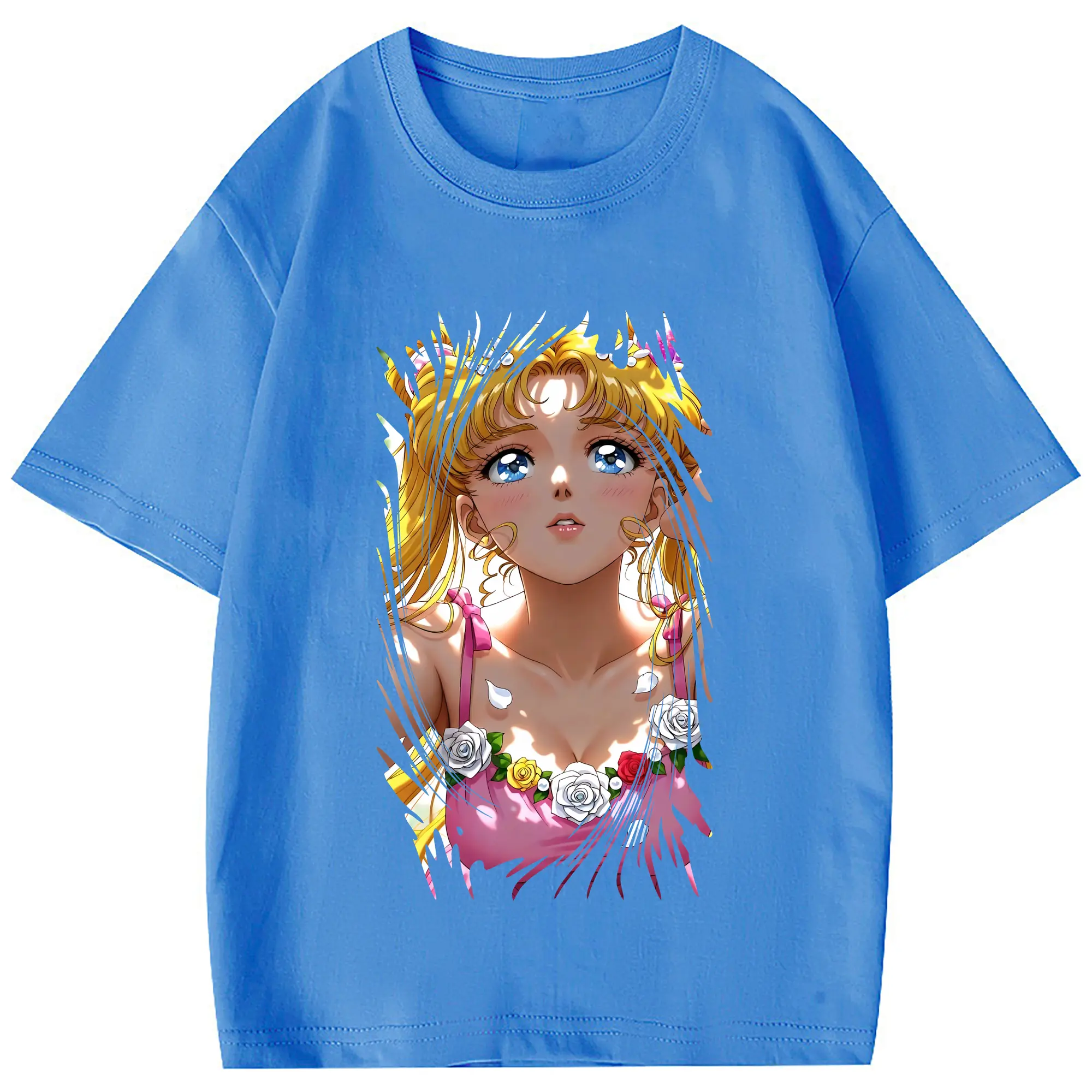 美少女戦士セーラームーン グッズ 月野 うさぎ - 綿100% 半袖Tシャツ ・ フロントプリント ・ 快適 通気性 ・ 日常使い 散歩 スポーツ用