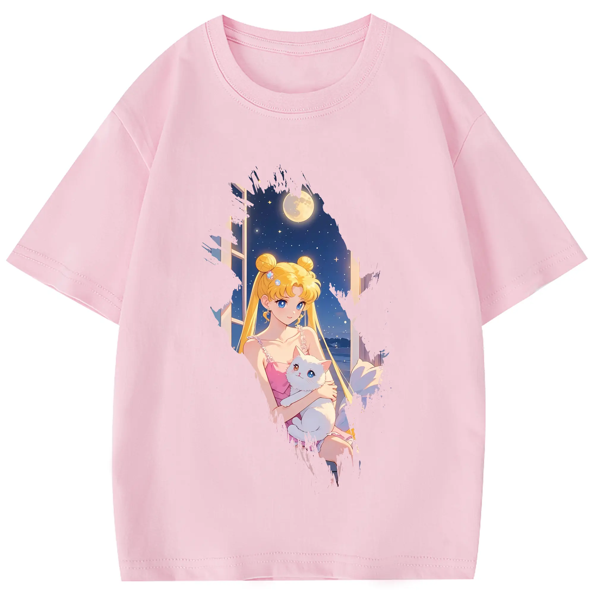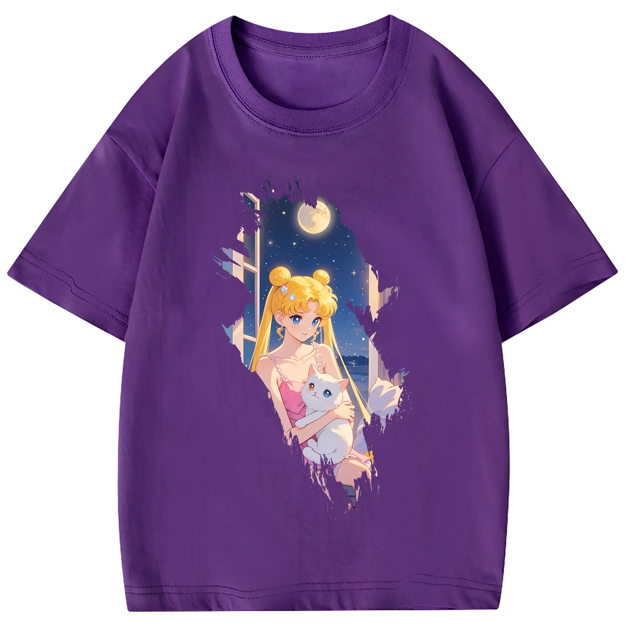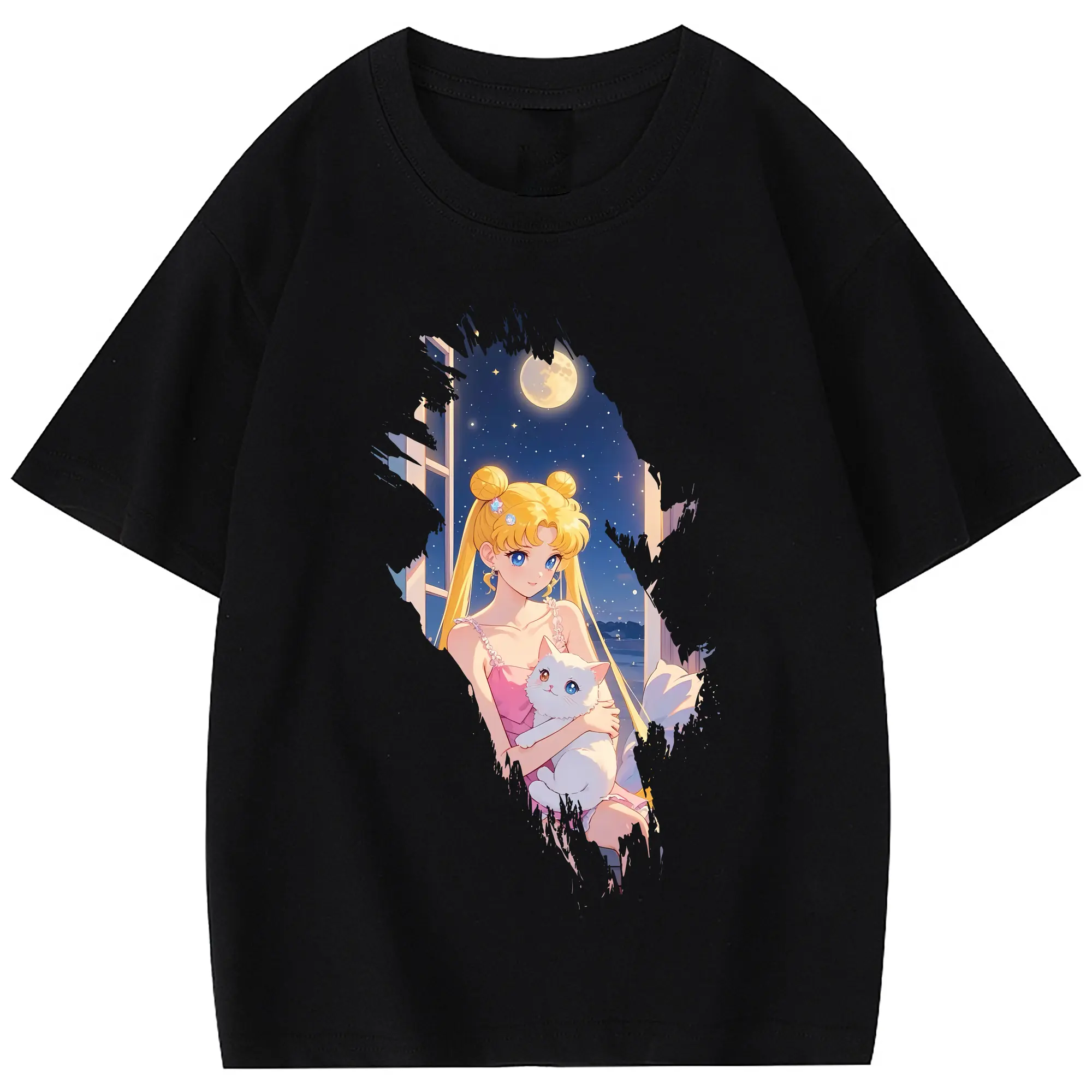 美少女戦士セーラームーン グッズ 月野 うさぎ - 綿100% 半袖Tシャツ ・ バックプリント ・ 快適 通気性 ・ 日常使い 散歩 スポーツ用