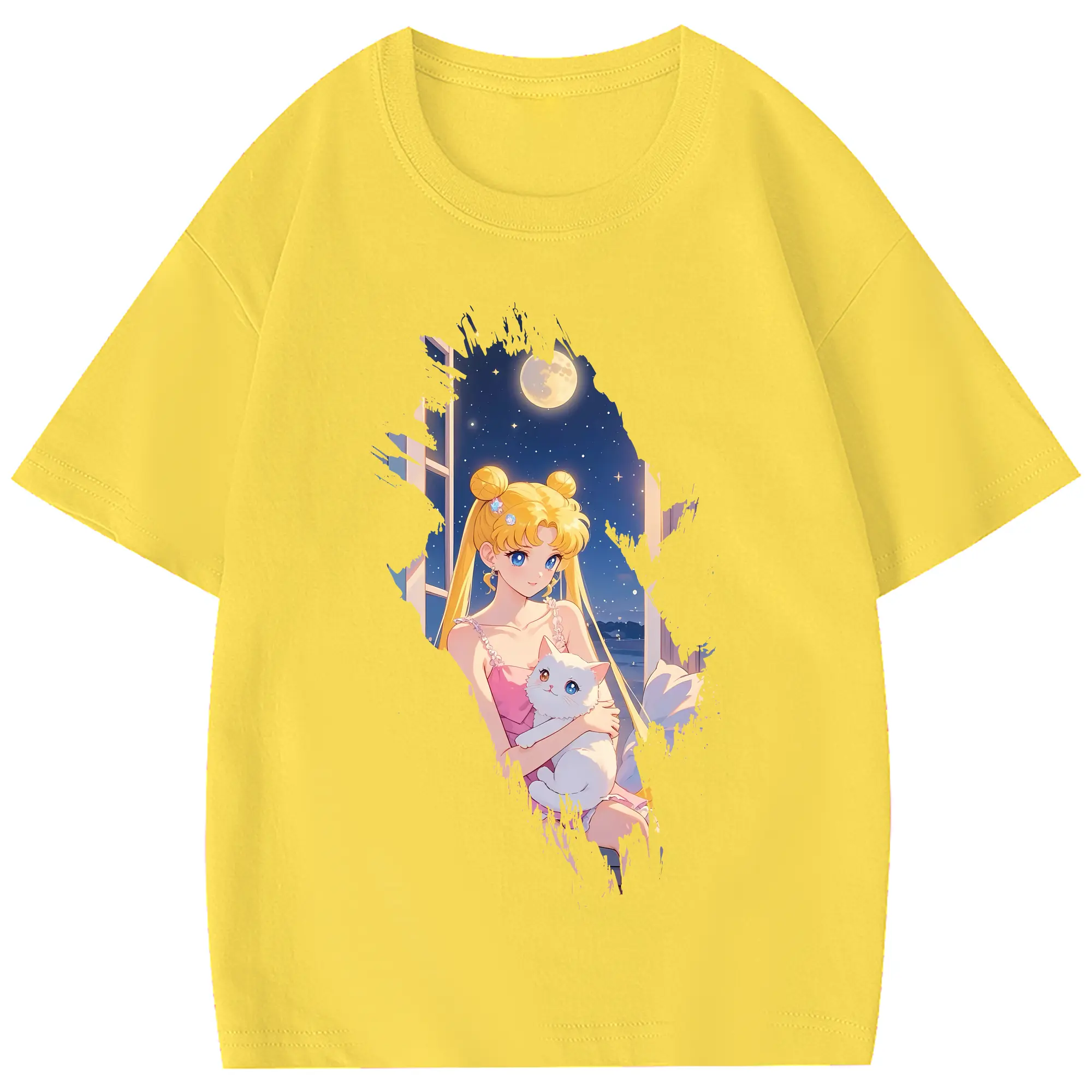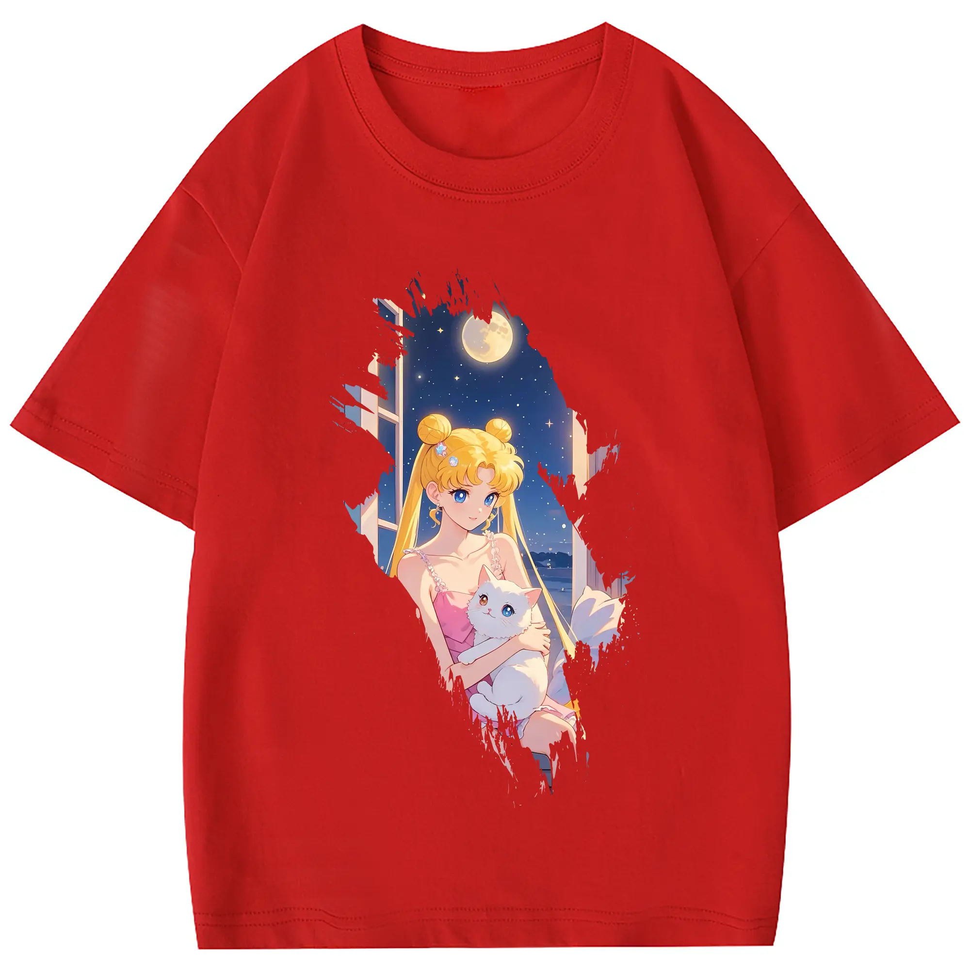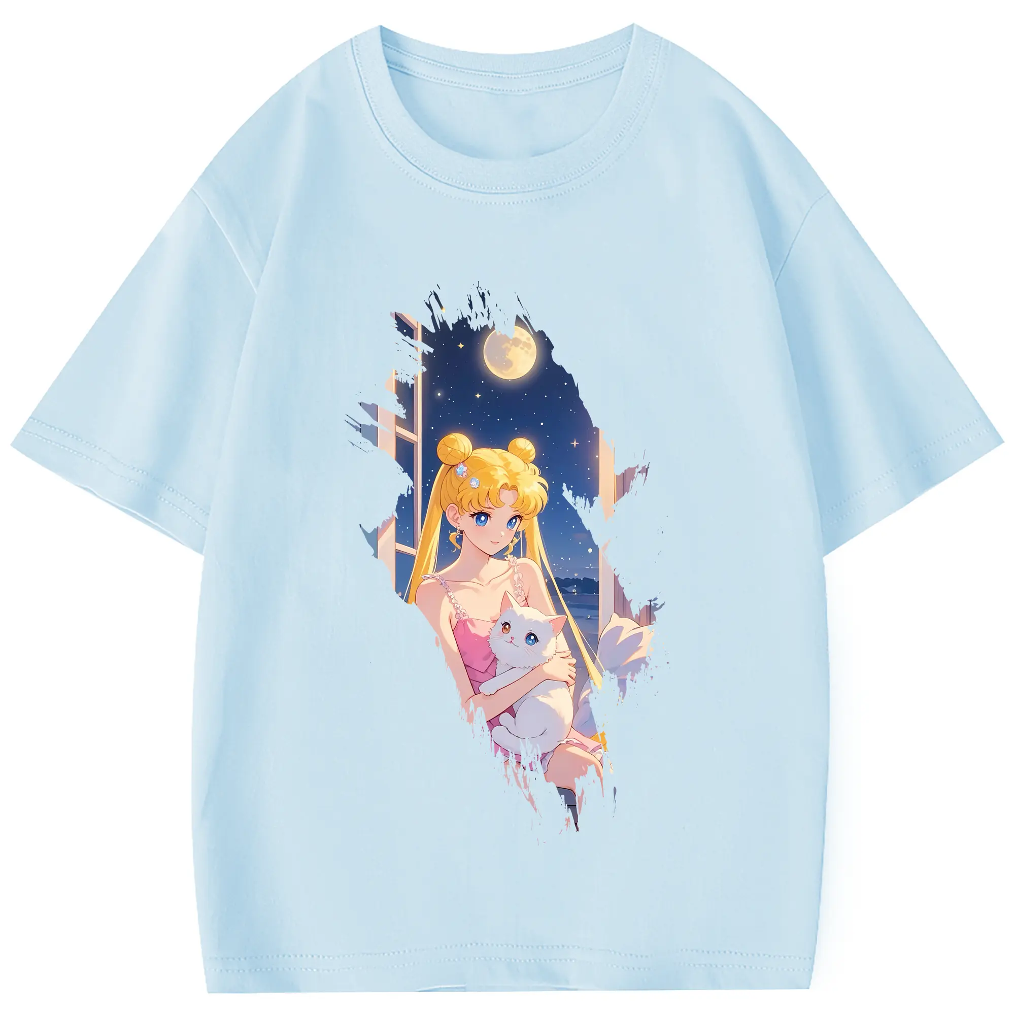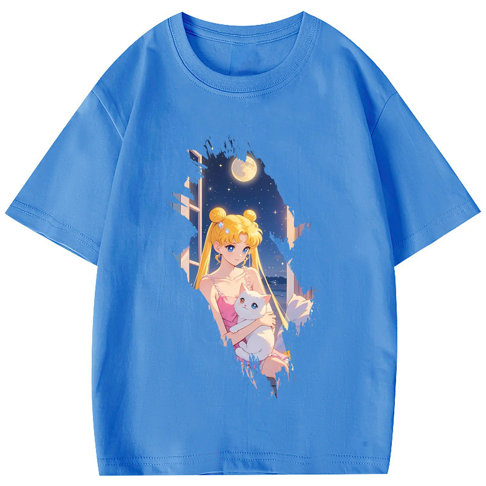 美少女戦士セーラームーン グッズ 月野 うさぎ - 綿100% 半袖Tシャツ ・ フロントプリント ・ 快適 通気性 ・ 日常使い 散歩 スポーツ用