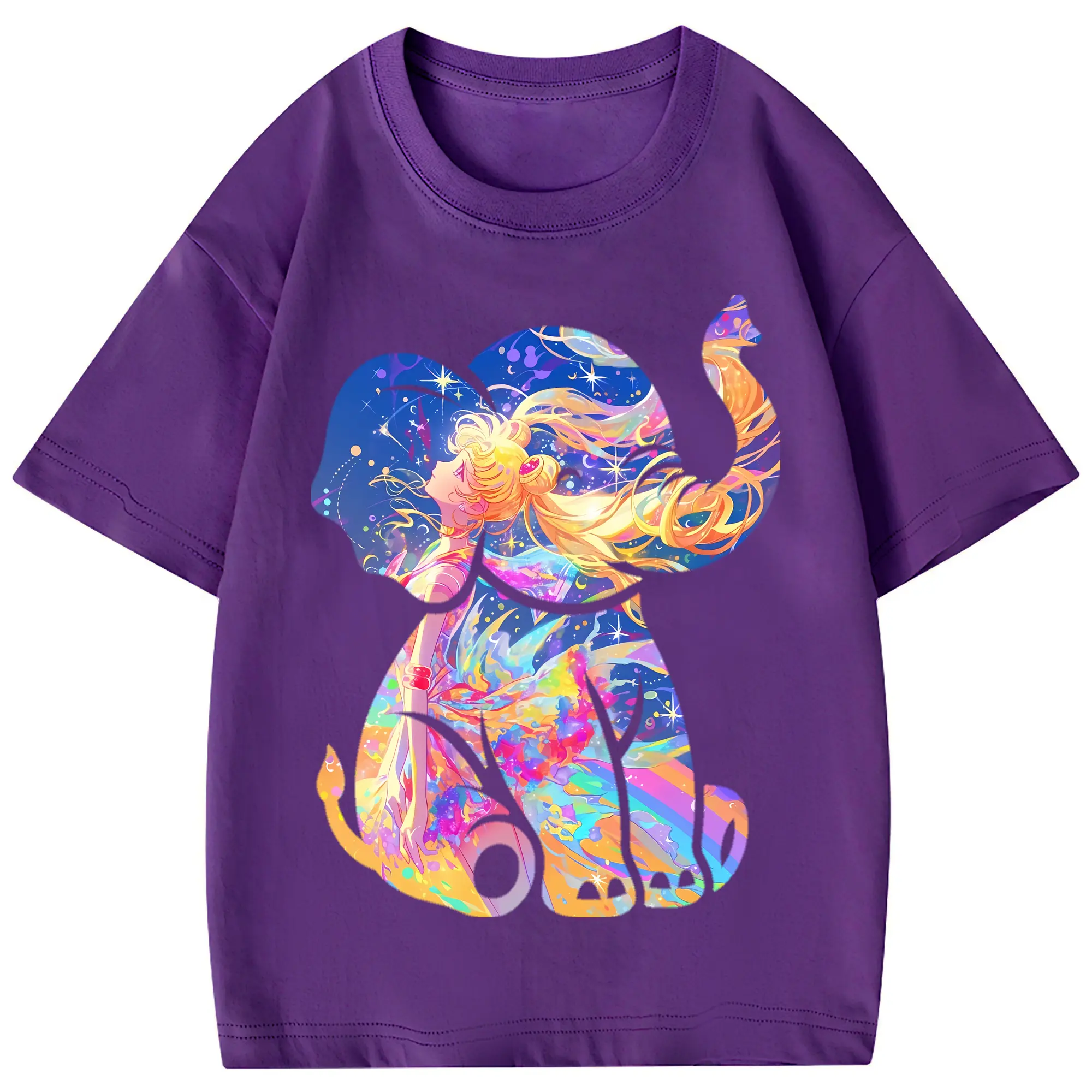 美少女戦士セーラームーン グッズ 月野 うさぎ - 綿100% 半袖Tシャツ ・ バックプリント ・ 快適 通気性 ・ 日常使い 散歩 スポーツ用