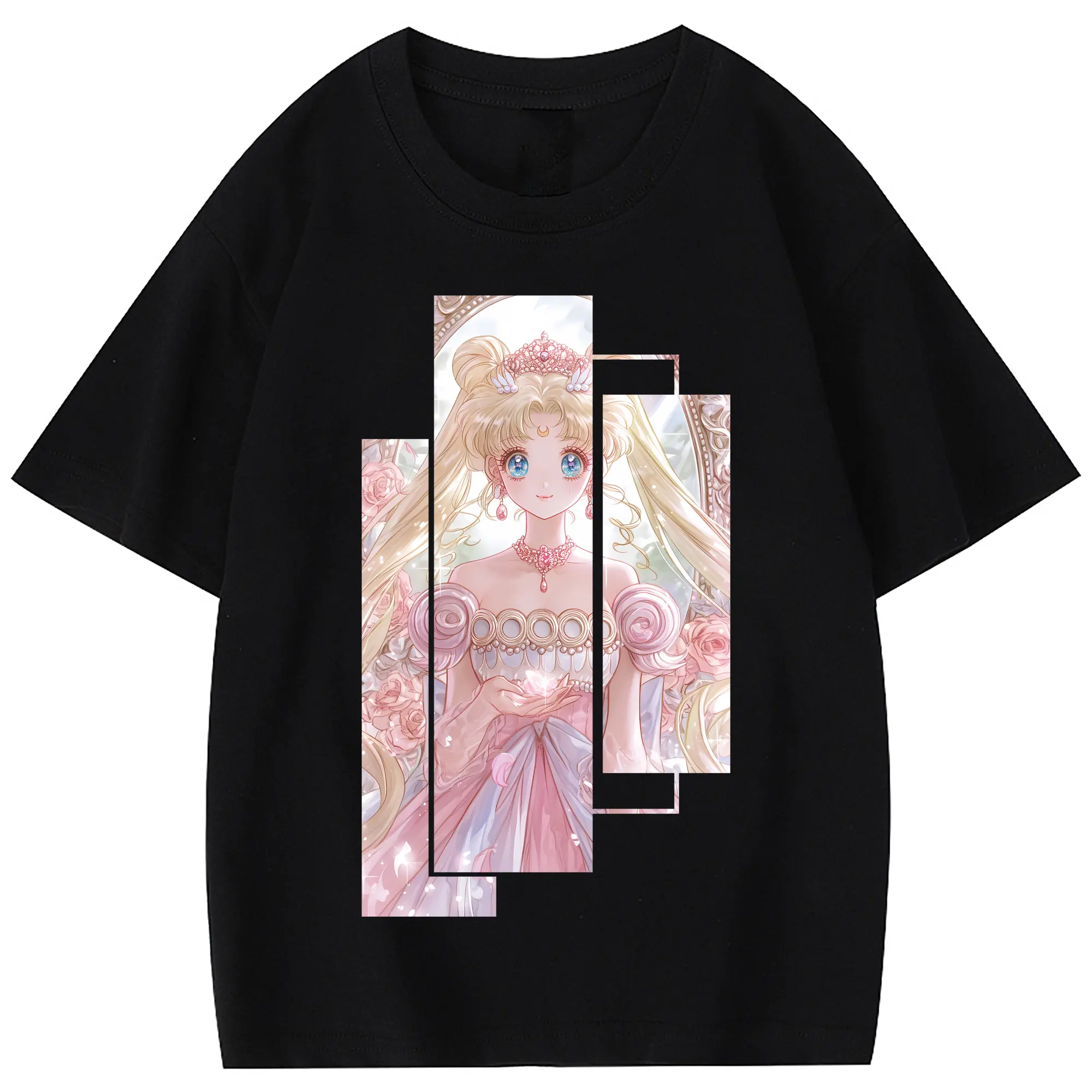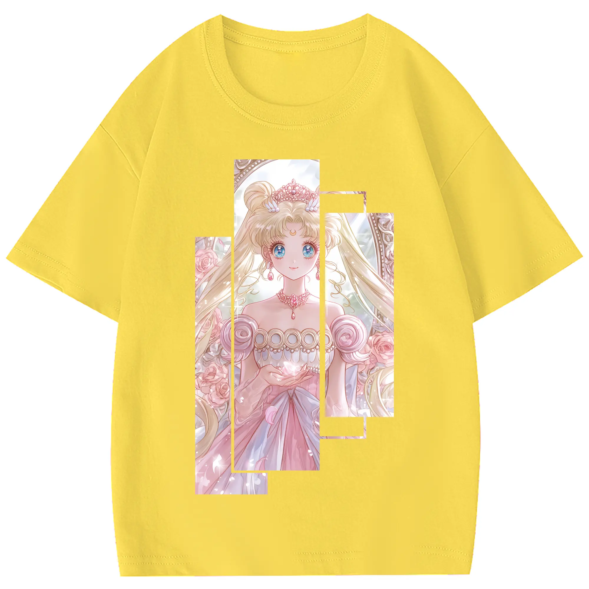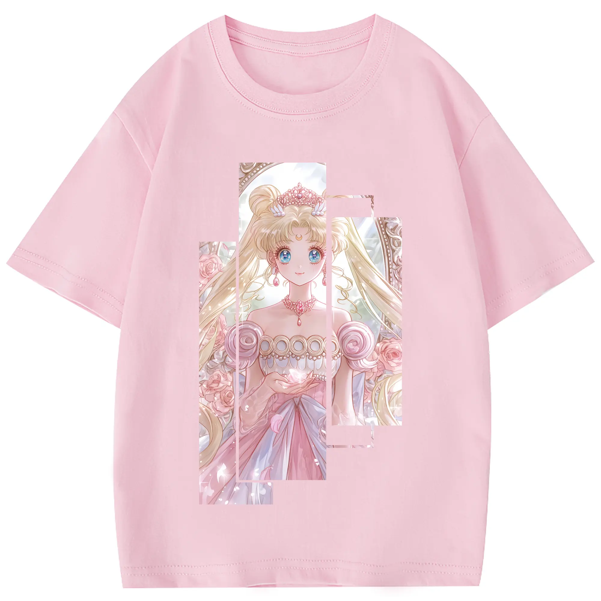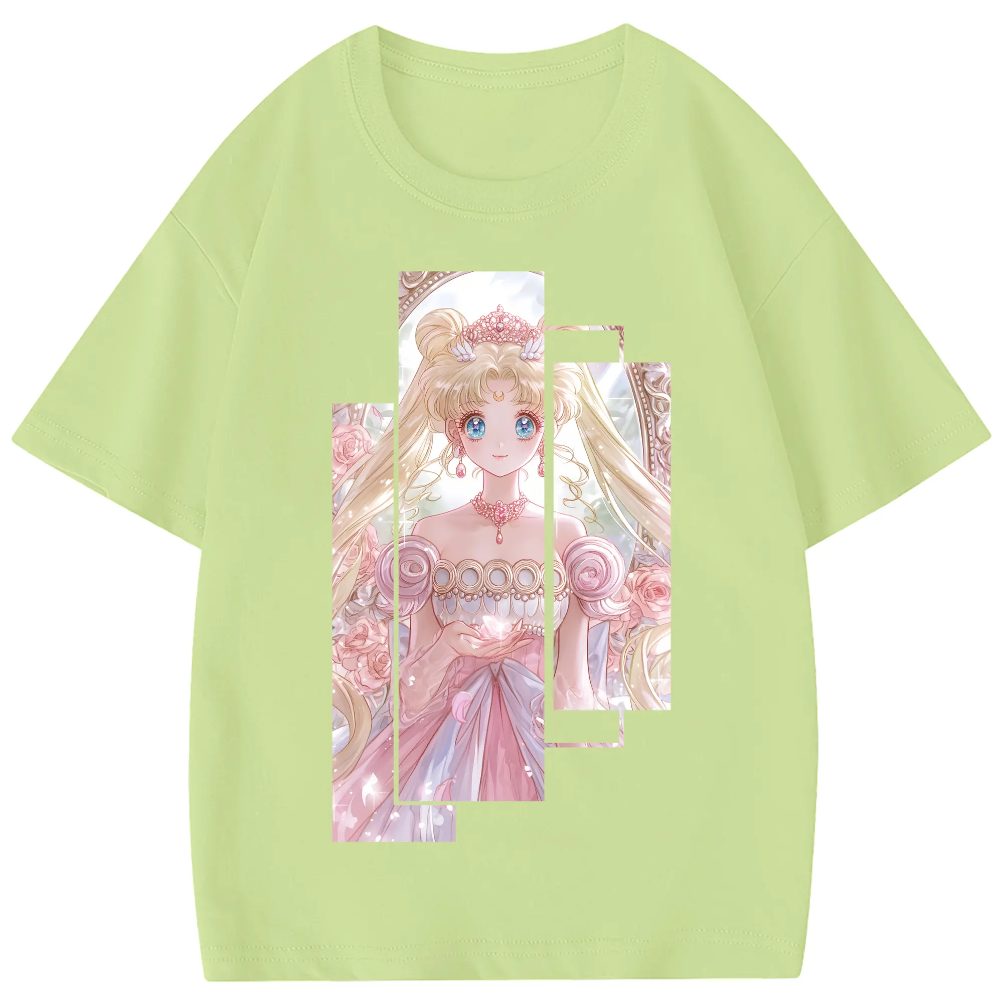美少女戦士セーラームーン グッズ 月野 うさぎ - 綿100% 半袖Tシャツ ・ フロントプリント ・ 快適 通気性 ・ 日常使い 散歩 スポーツ用
