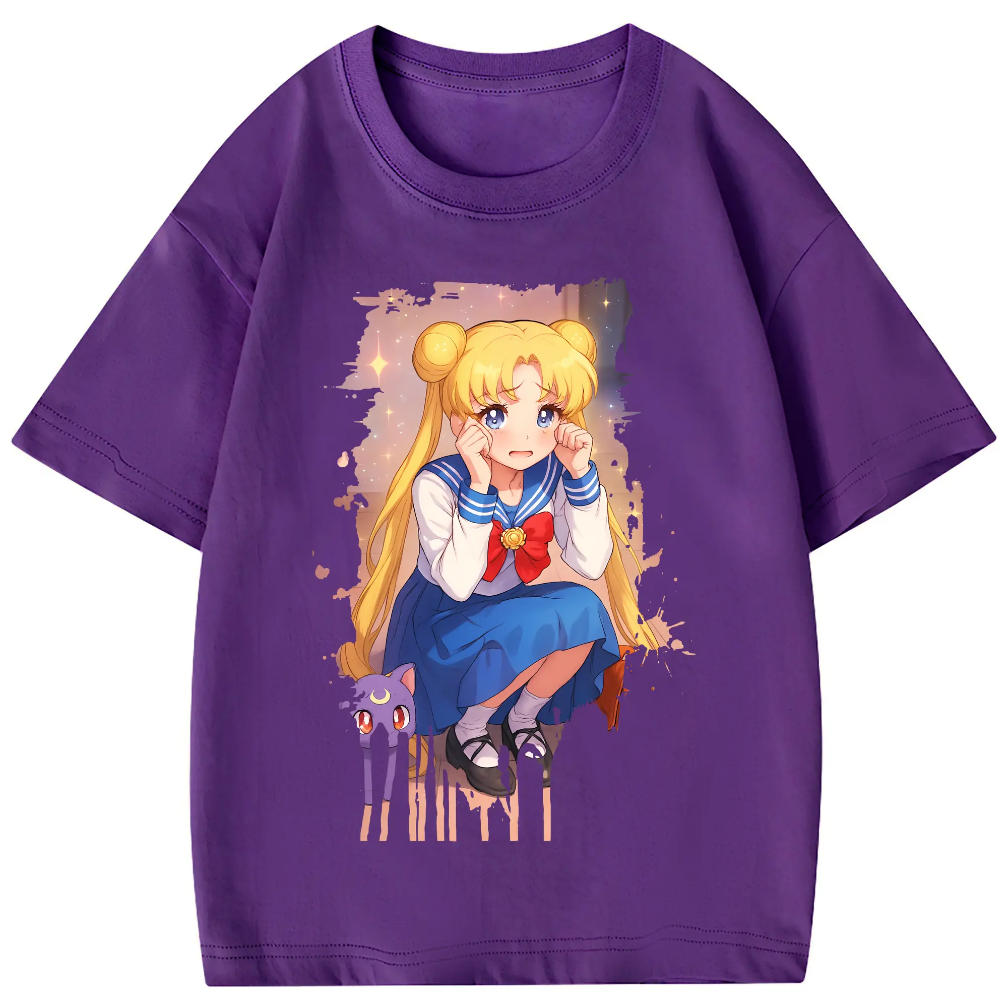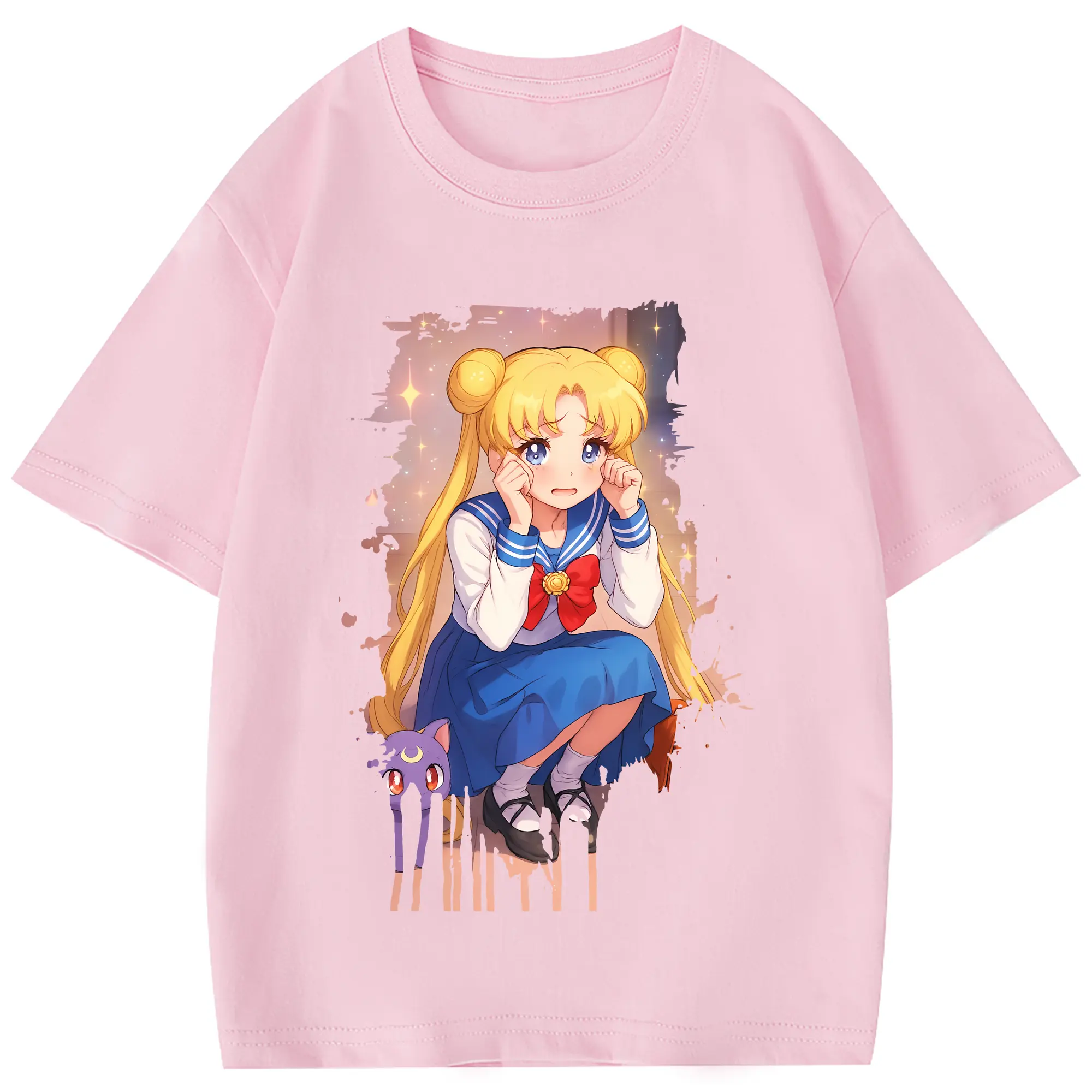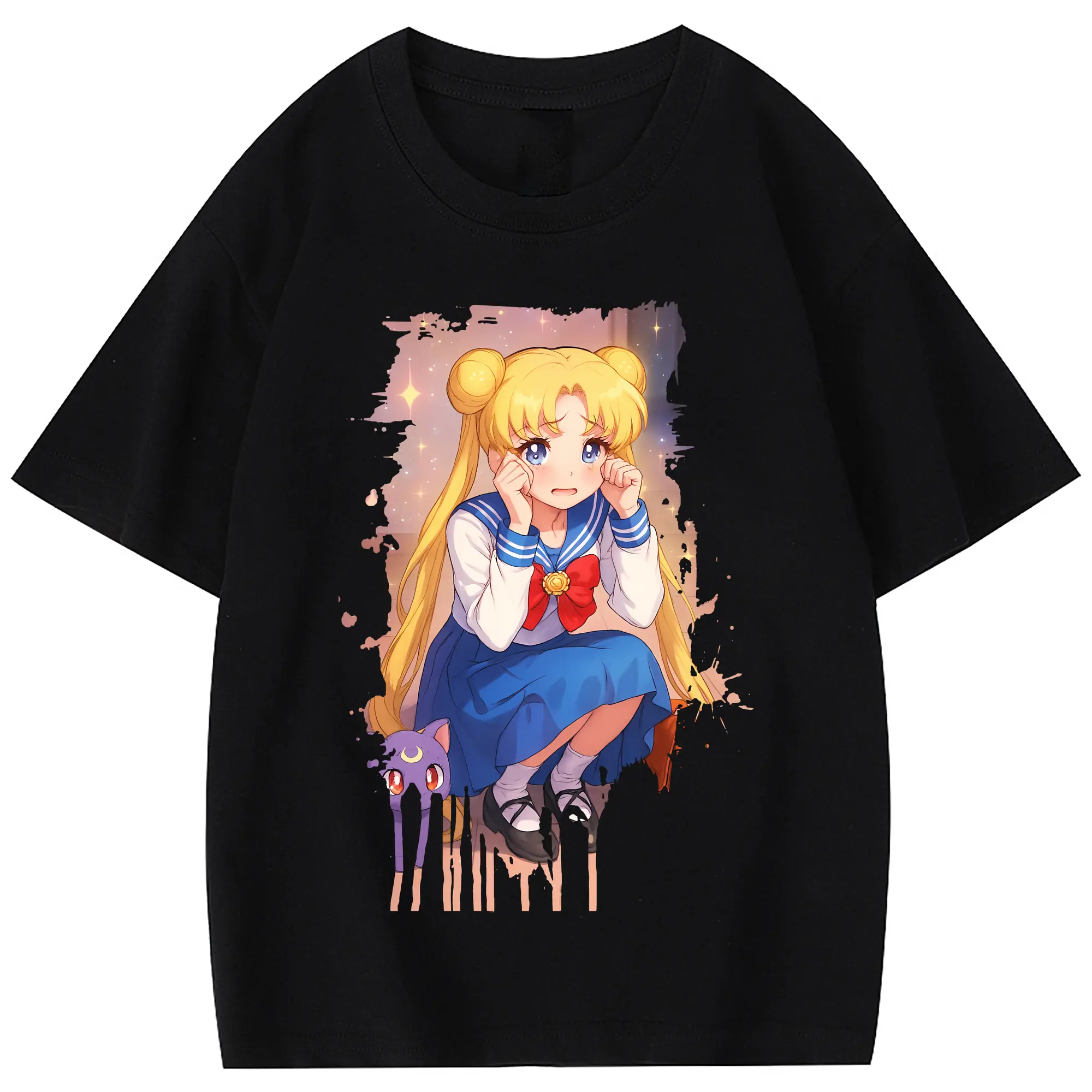 美少女戦士セーラームーン グッズ 月野 うさぎ - 綿100% 半袖Tシャツ ・ バックプリント ・ 快適 通気性 ・ 日常使い 散歩 スポーツ用
