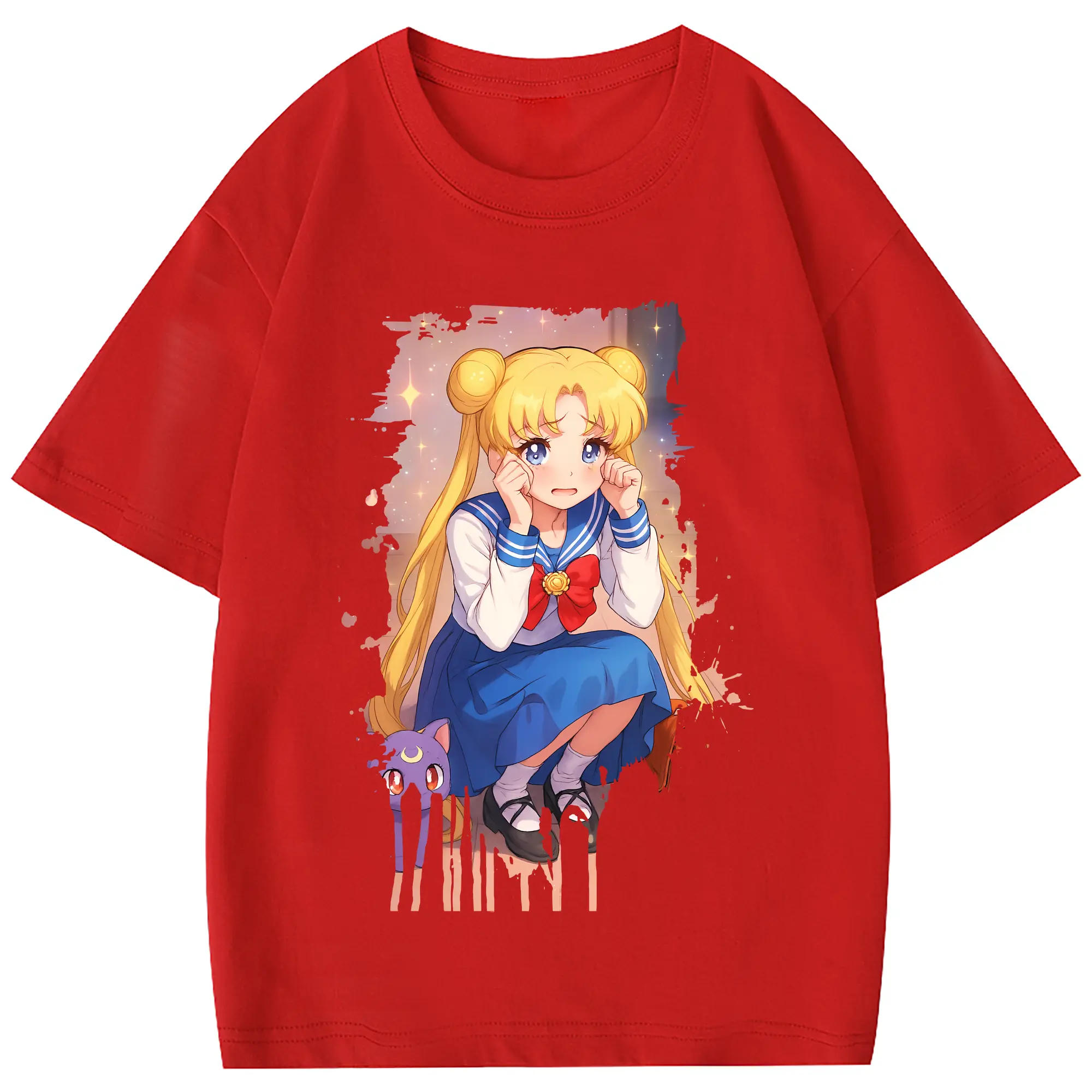 美少女戦士セーラームーン グッズ 月野 うさぎ - 綿100% 半袖Tシャツ ・ フロントプリント ・ 快適 通気性 ・ 日常使い 散歩 スポーツ用