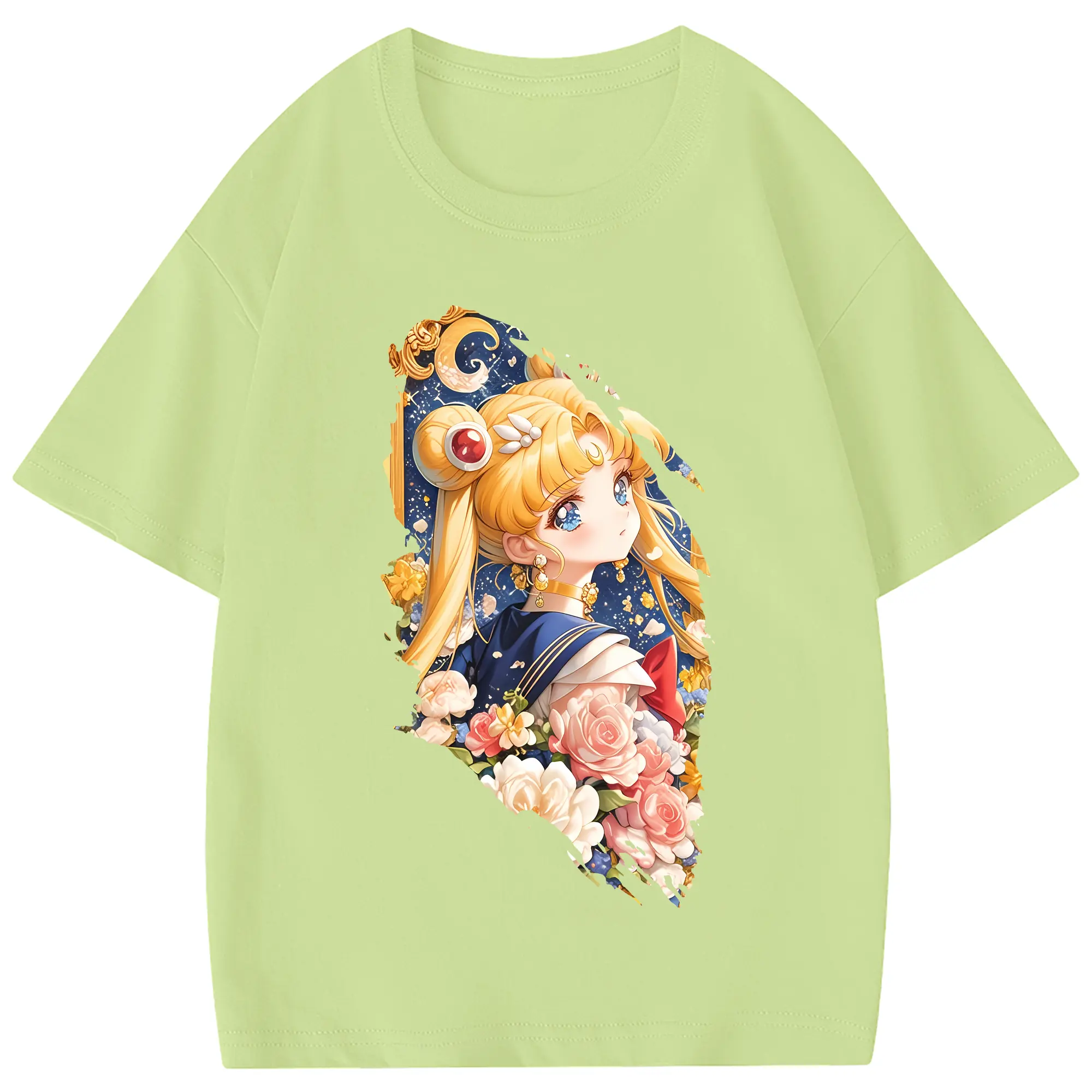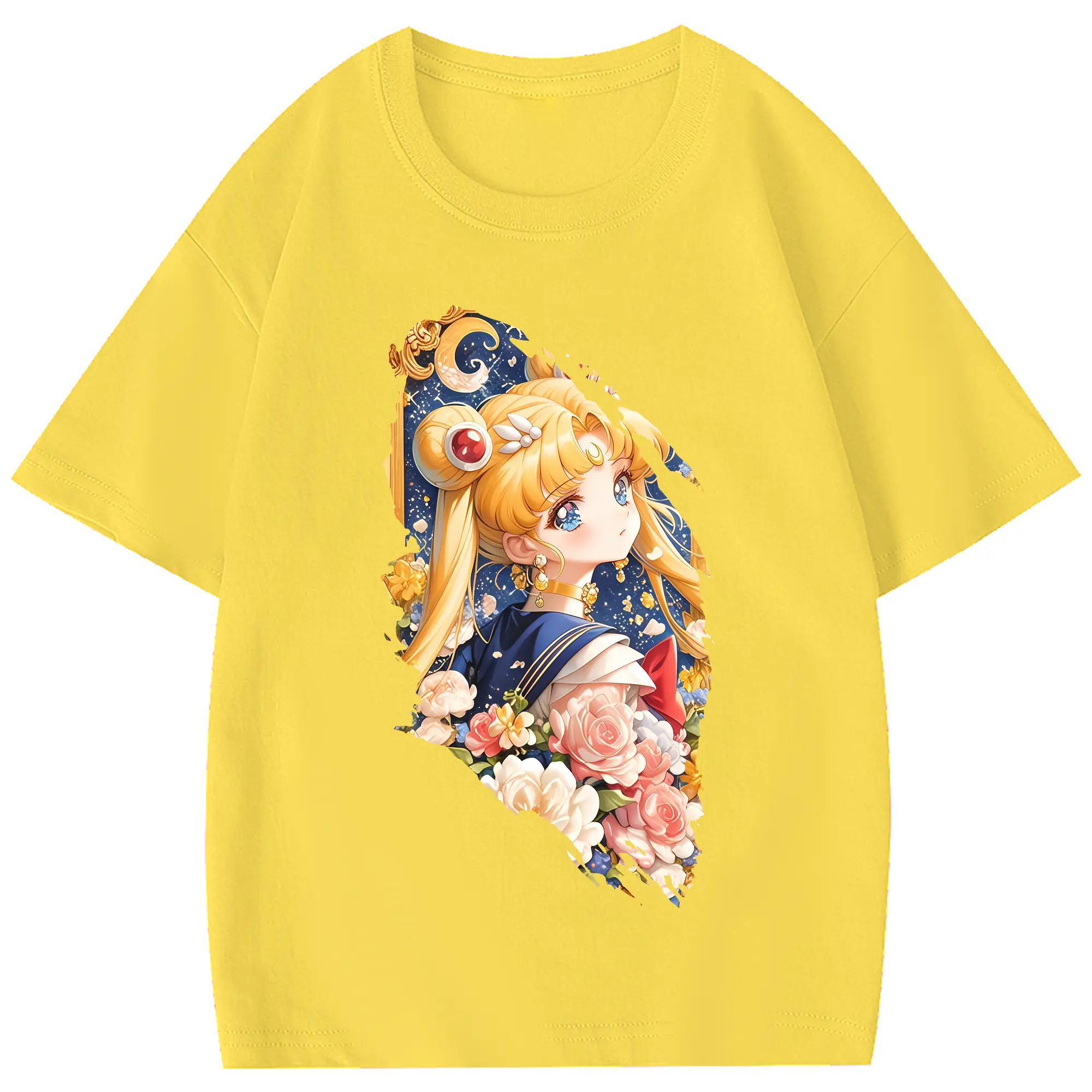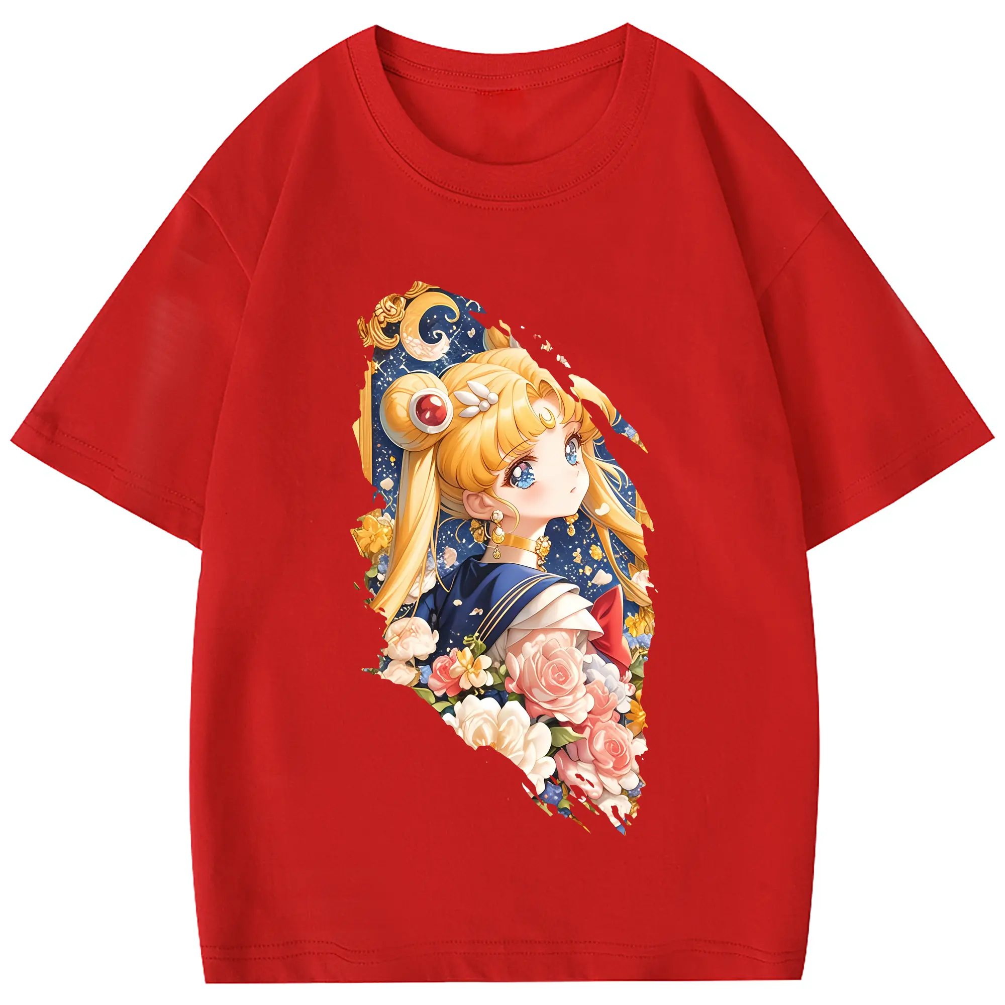 美少女戦士セーラームーン グッズ 月野 うさぎ - 綿100% 半袖Tシャツ ・ フロントプリント ・ 快適 通気性 ・ 日常使い 散歩 スポーツ用