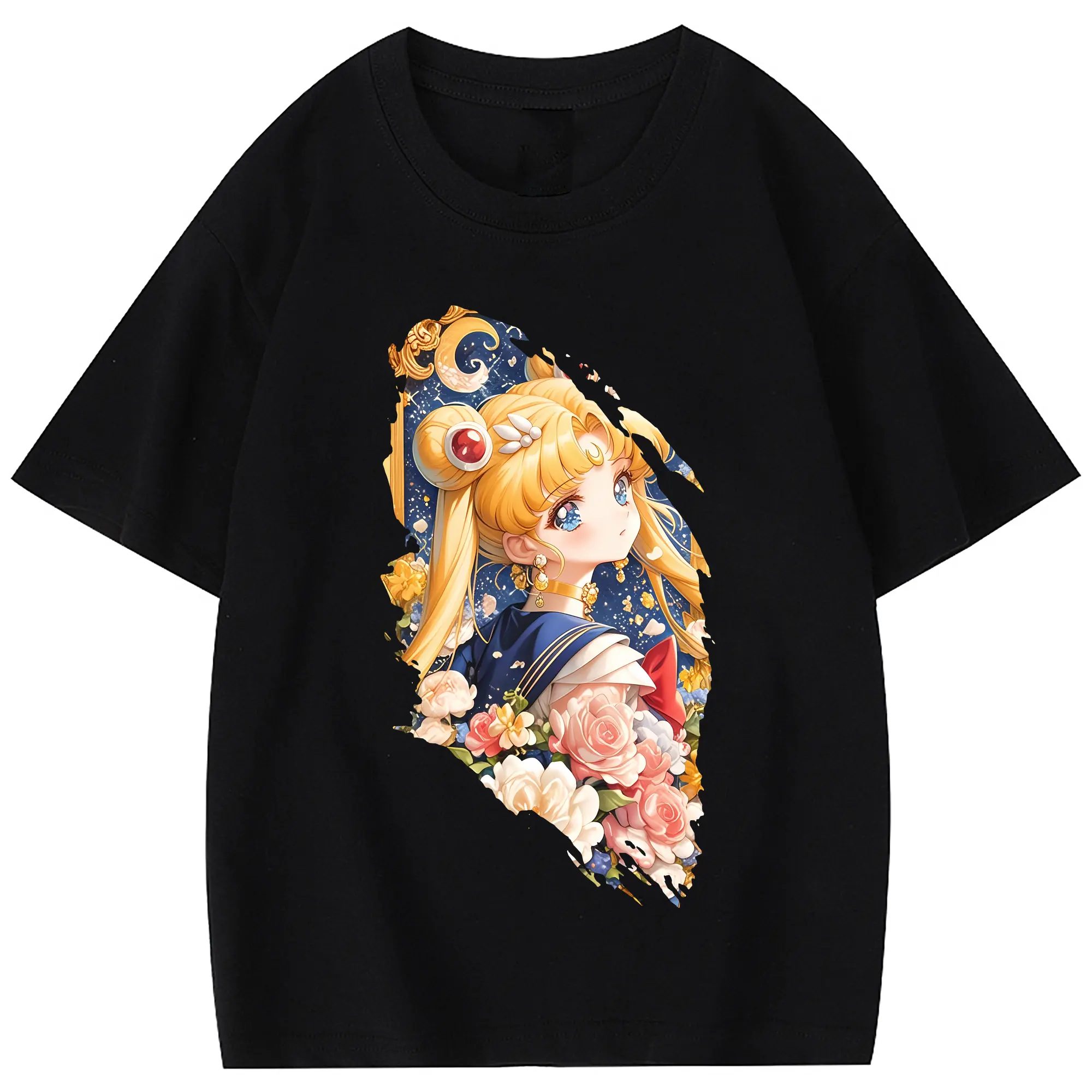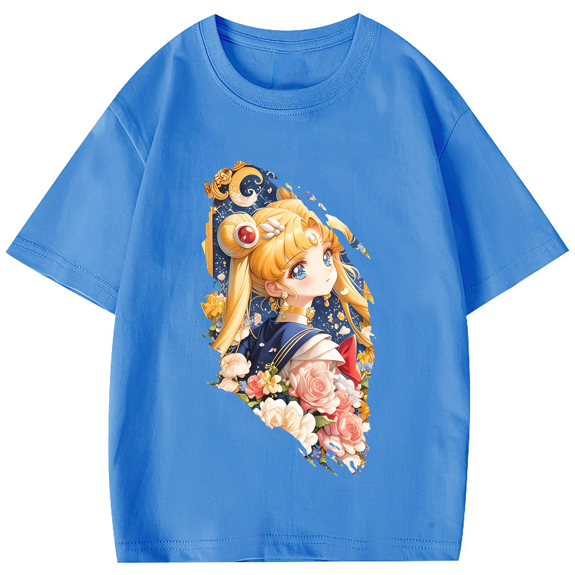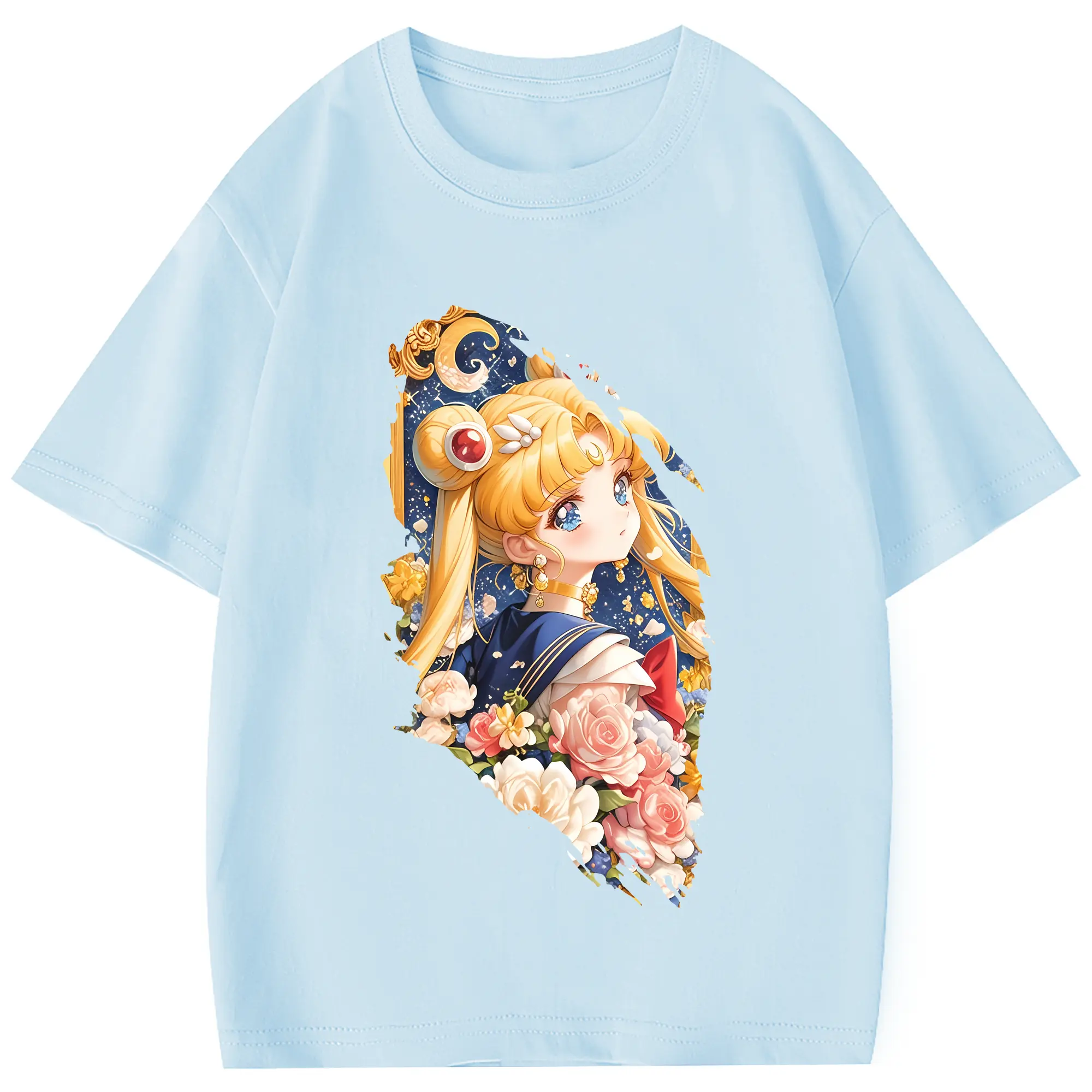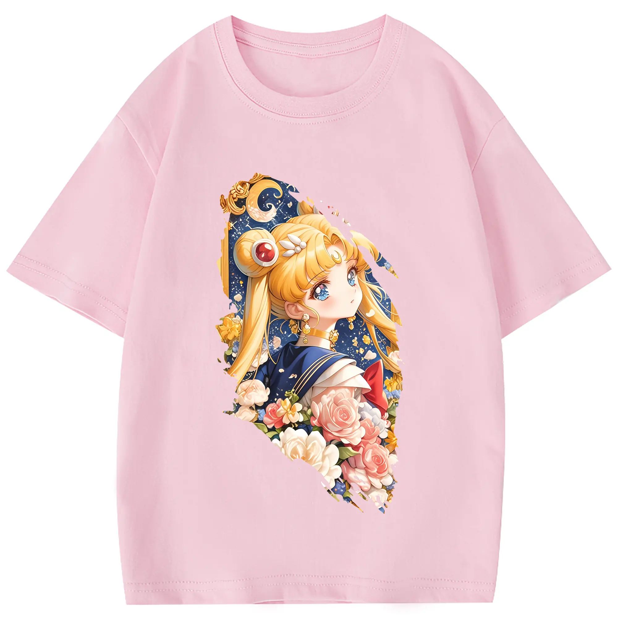 美少女戦士セーラームーン グッズ 月野 うさぎ - 綿100% 半袖Tシャツ ・ フロントプリント ・ 快適 通気性 ・ 日常使い 散歩 スポーツ用