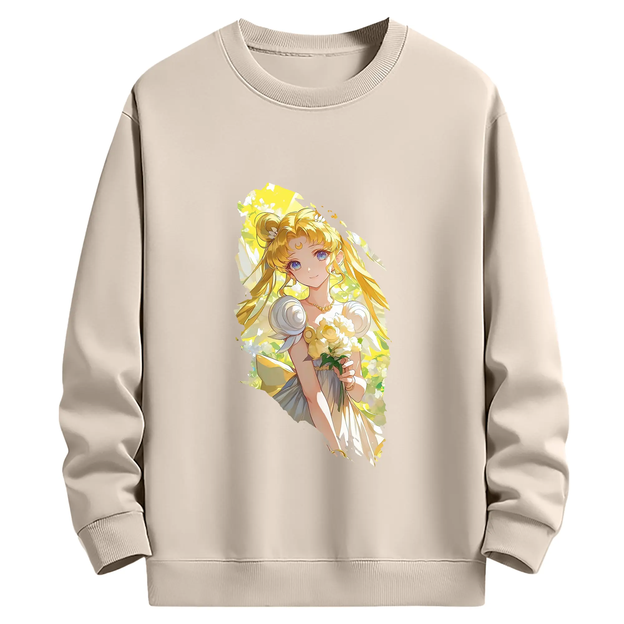 美少女戦士セーラームーン グッズ 月野 うさぎ - 薄手 クルーネック スウェット 裏毛260g · ポリエステル 春秋向け カジュアル 男女兼用 · トレーナー デイリー スポーツ 散歩に最適