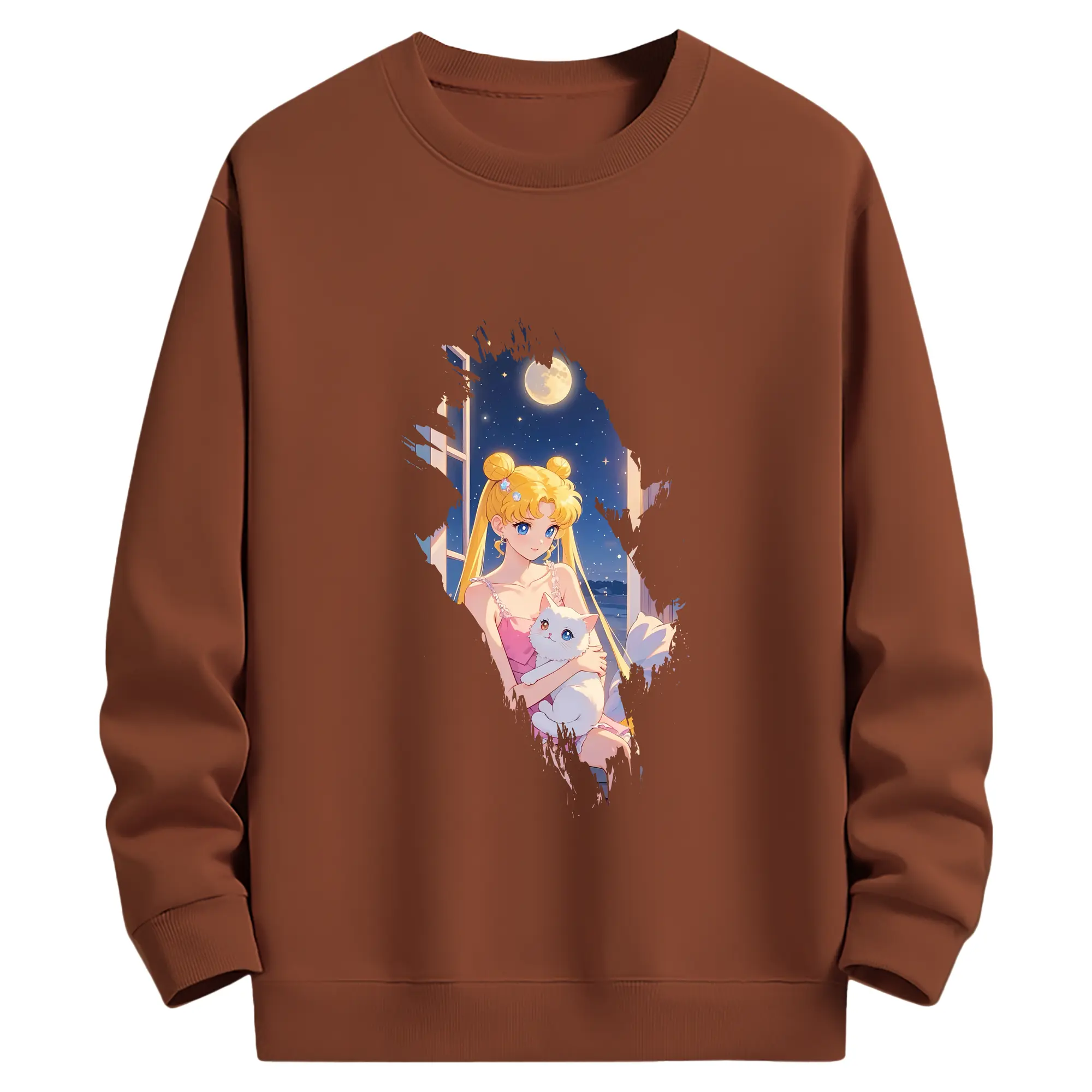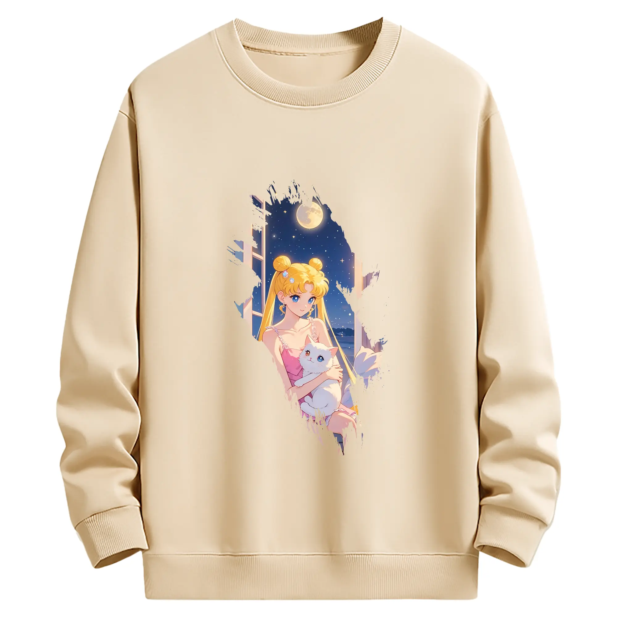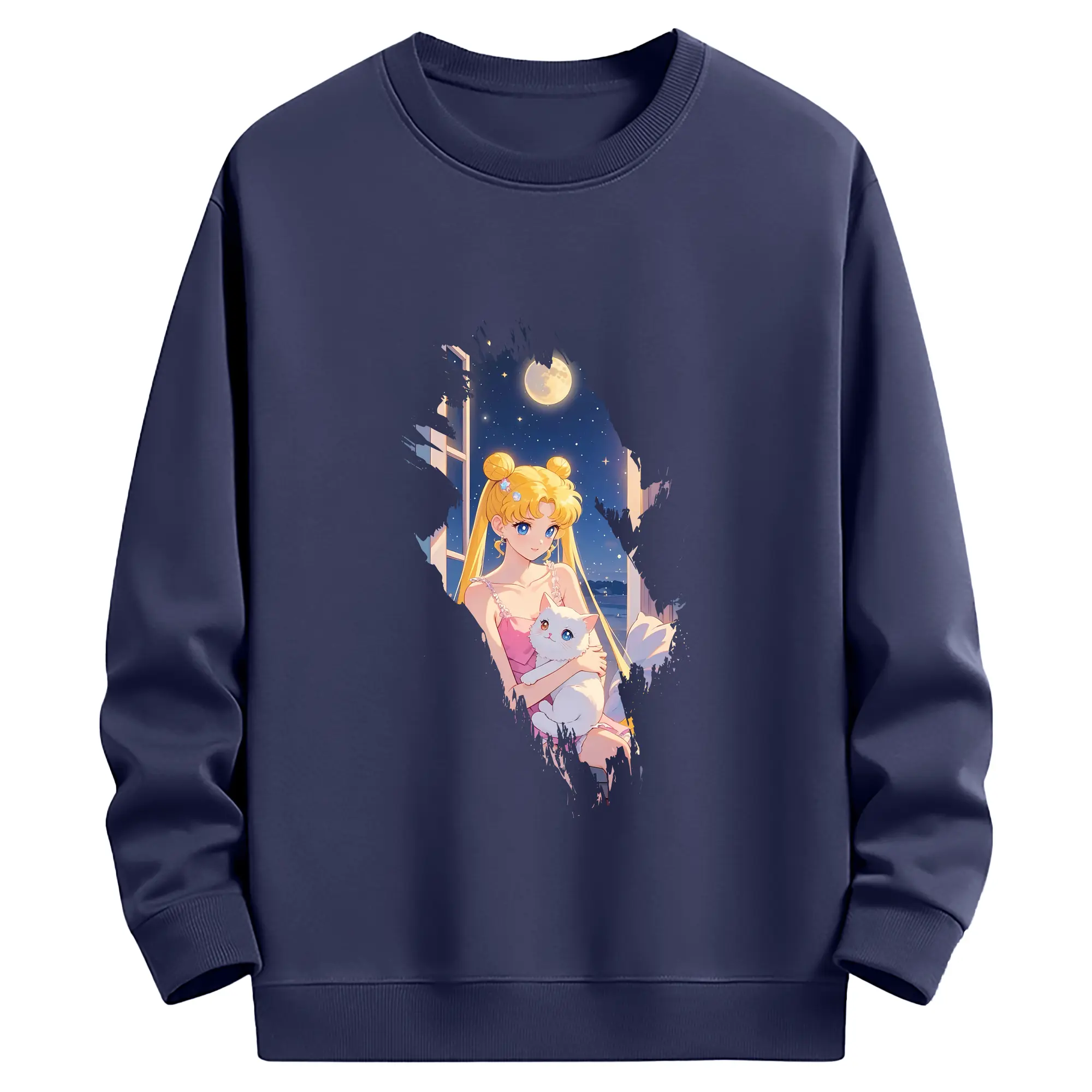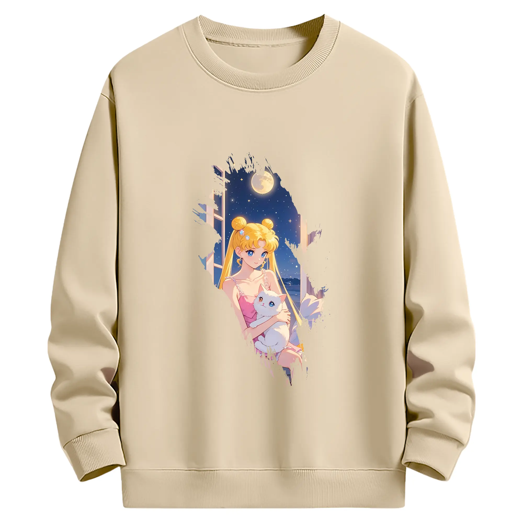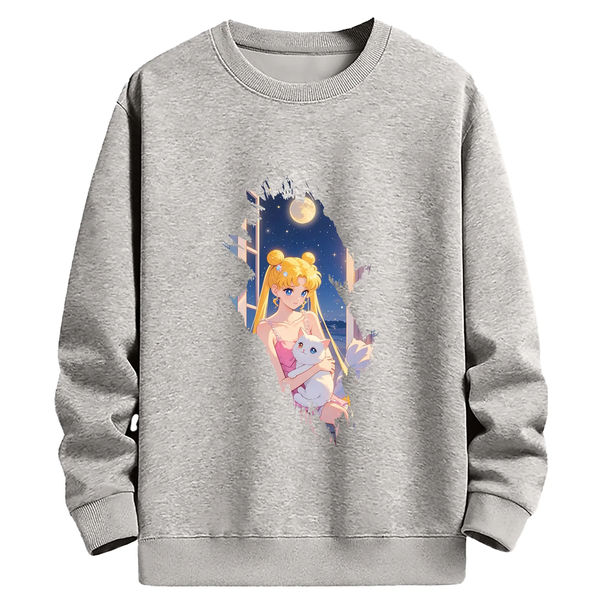美少女戦士セーラームーン グッズ 月野 うさぎ - 薄手 クルーネック スウェット 裏毛260g · ポリエステル 春秋向け カジュアル 男女兼用 · トレーナー デイリー スポーツ 散歩に最適