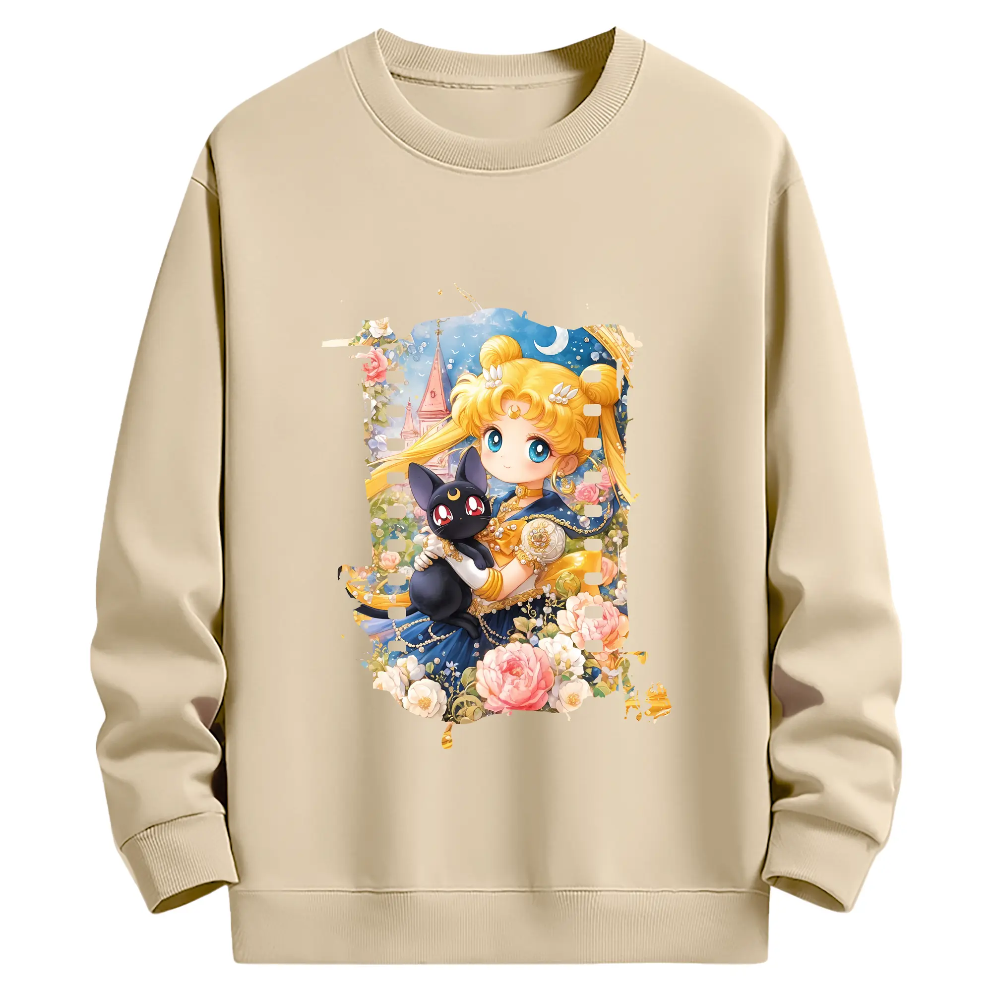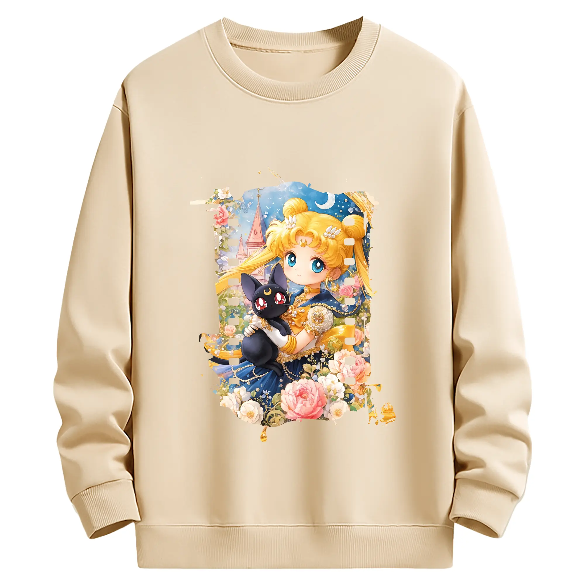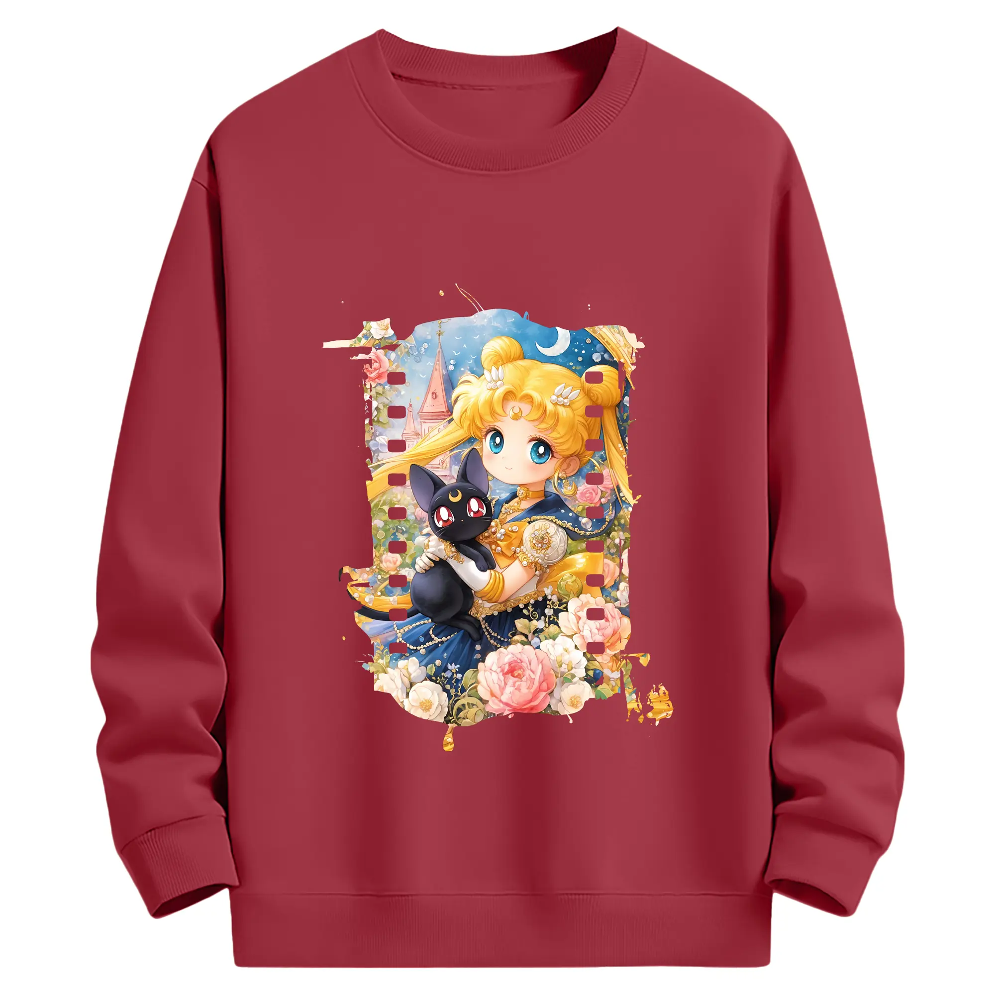 美少女戦士セーラームーン グッズ 月野 うさぎ - 薄手 クルーネック スウェット 裏毛260g · ポリエステル 春秋向け カジュアル 男女兼用 · トレーナー デイリー スポーツ 散歩に最適