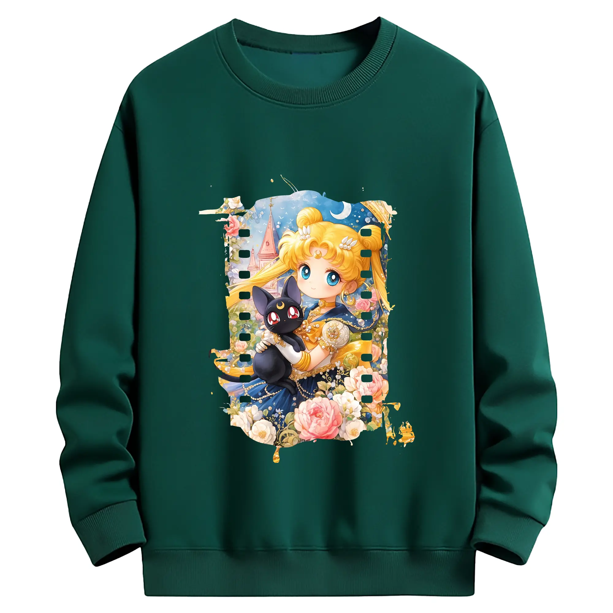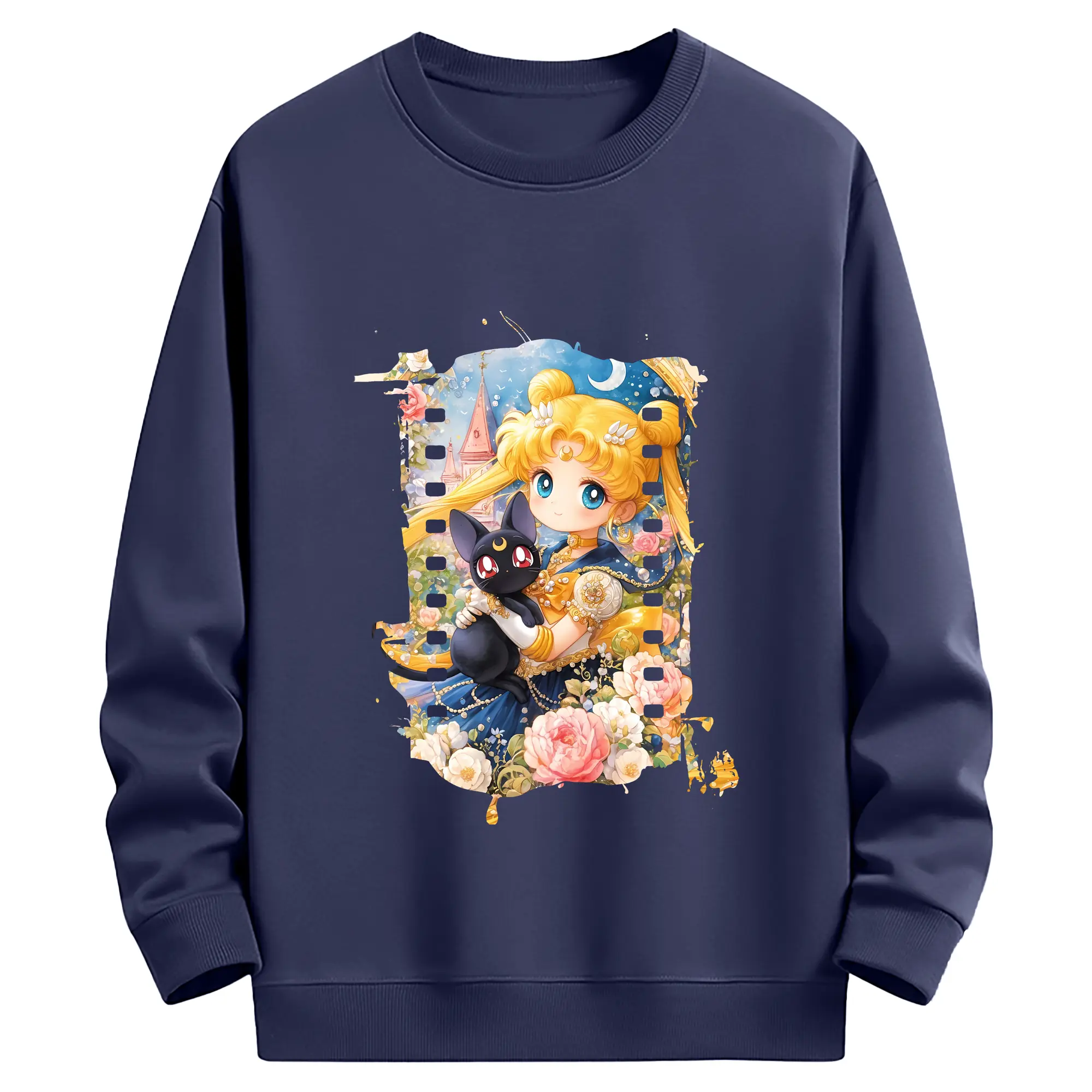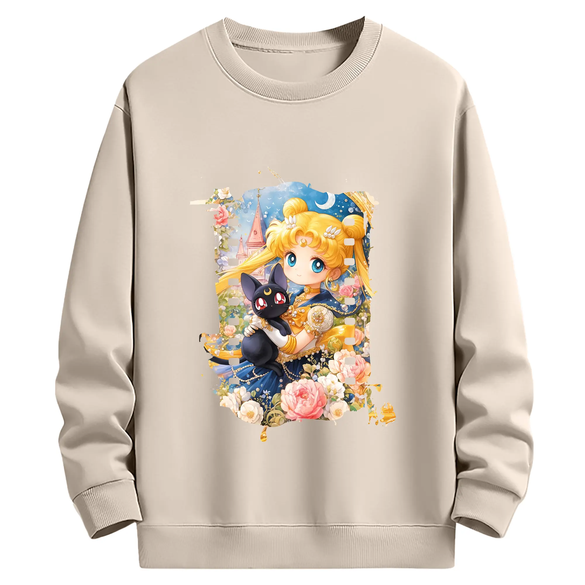 美少女戦士セーラームーン グッズ 月野 うさぎ - 薄手 クルーネック スウェット 裏毛260g · ポリエステル 春秋向け カジュアル 男女兼用 · トレーナー デイリー スポーツ 散歩に最適