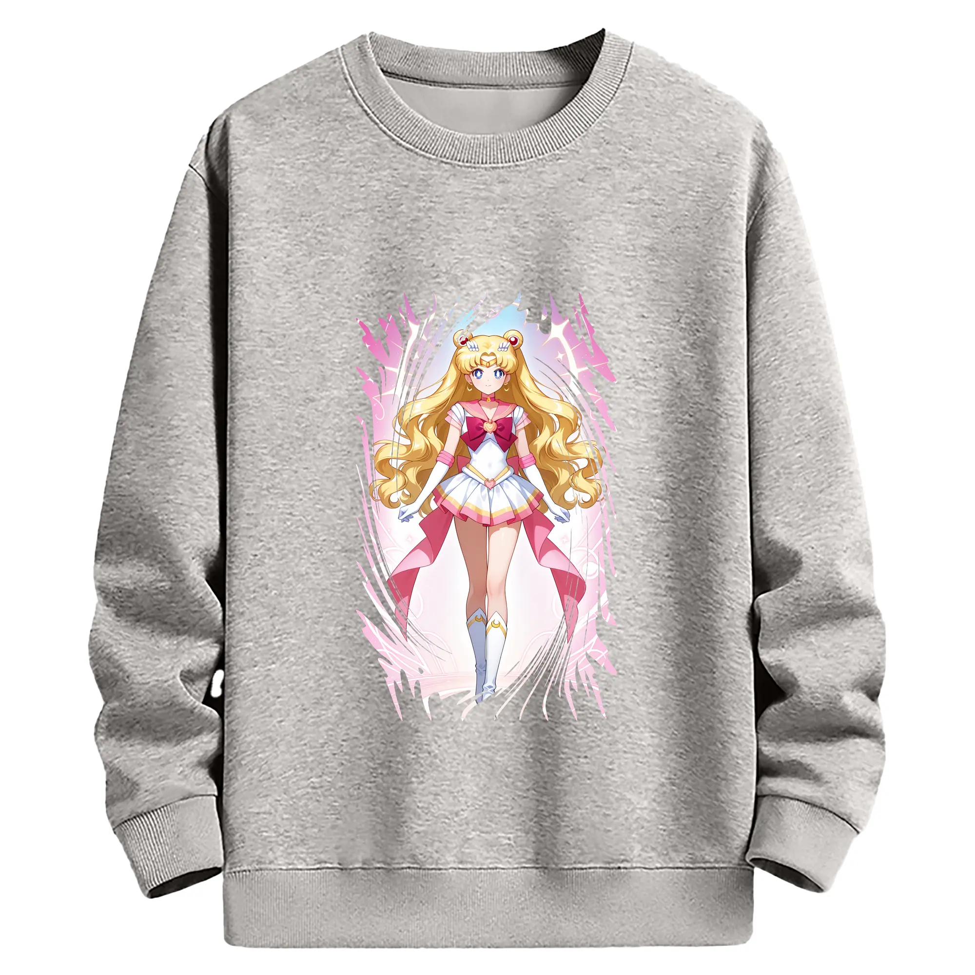 美少女戦士セーラームーン グッズ 月野 うさぎ - 薄手 クルーネック スウェット 裏毛260g · ポリエステル 春秋向け カジュアル 男女兼用 · トレーナー デイリー スポーツ 散歩に最適