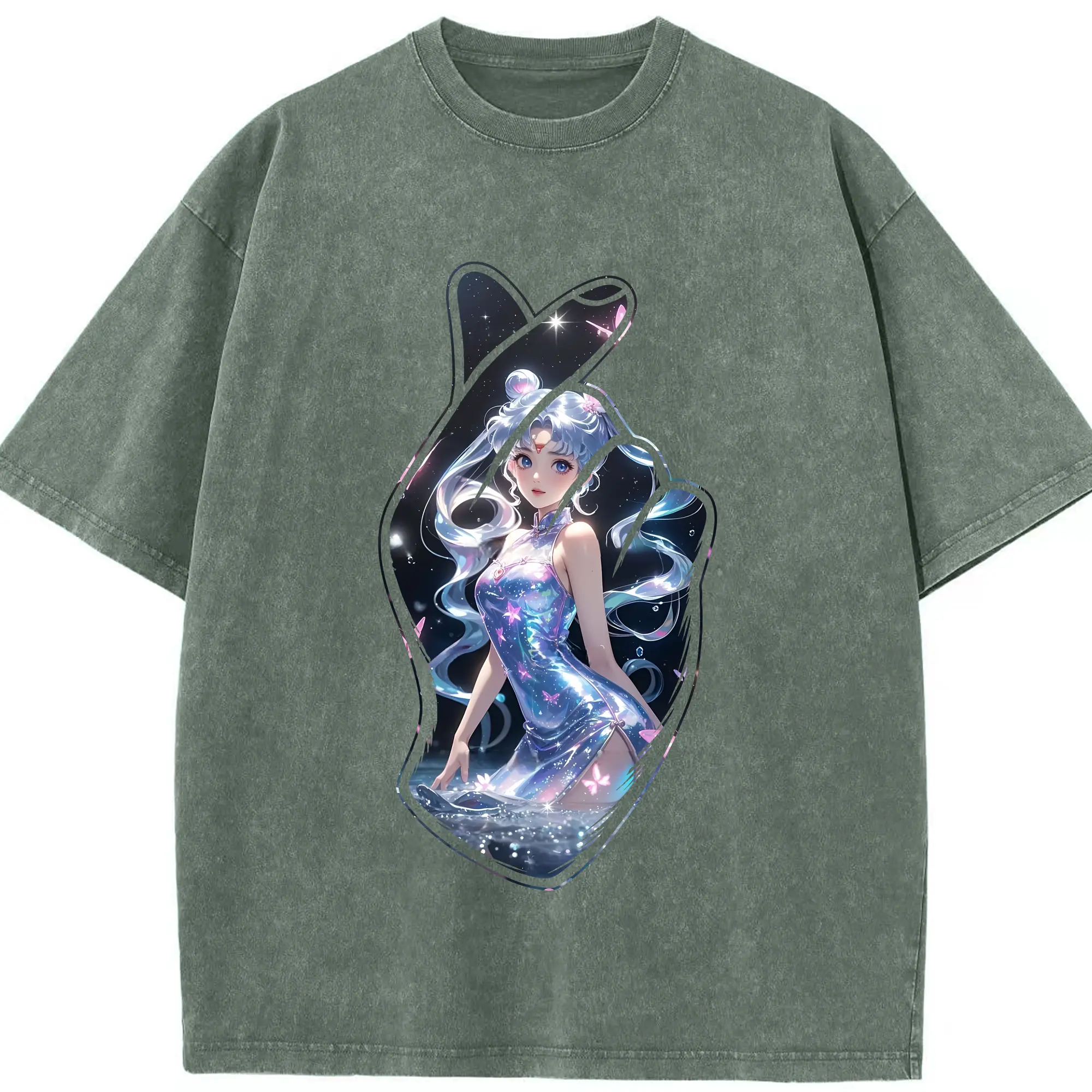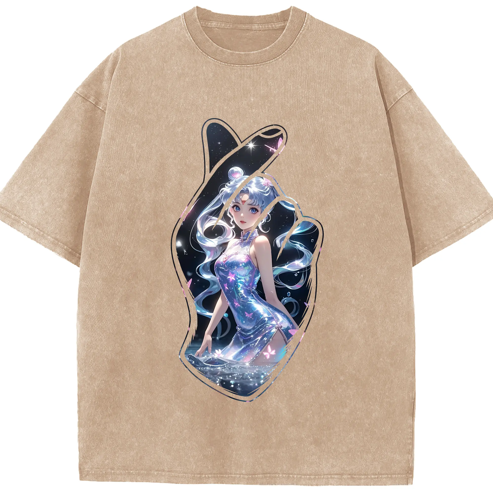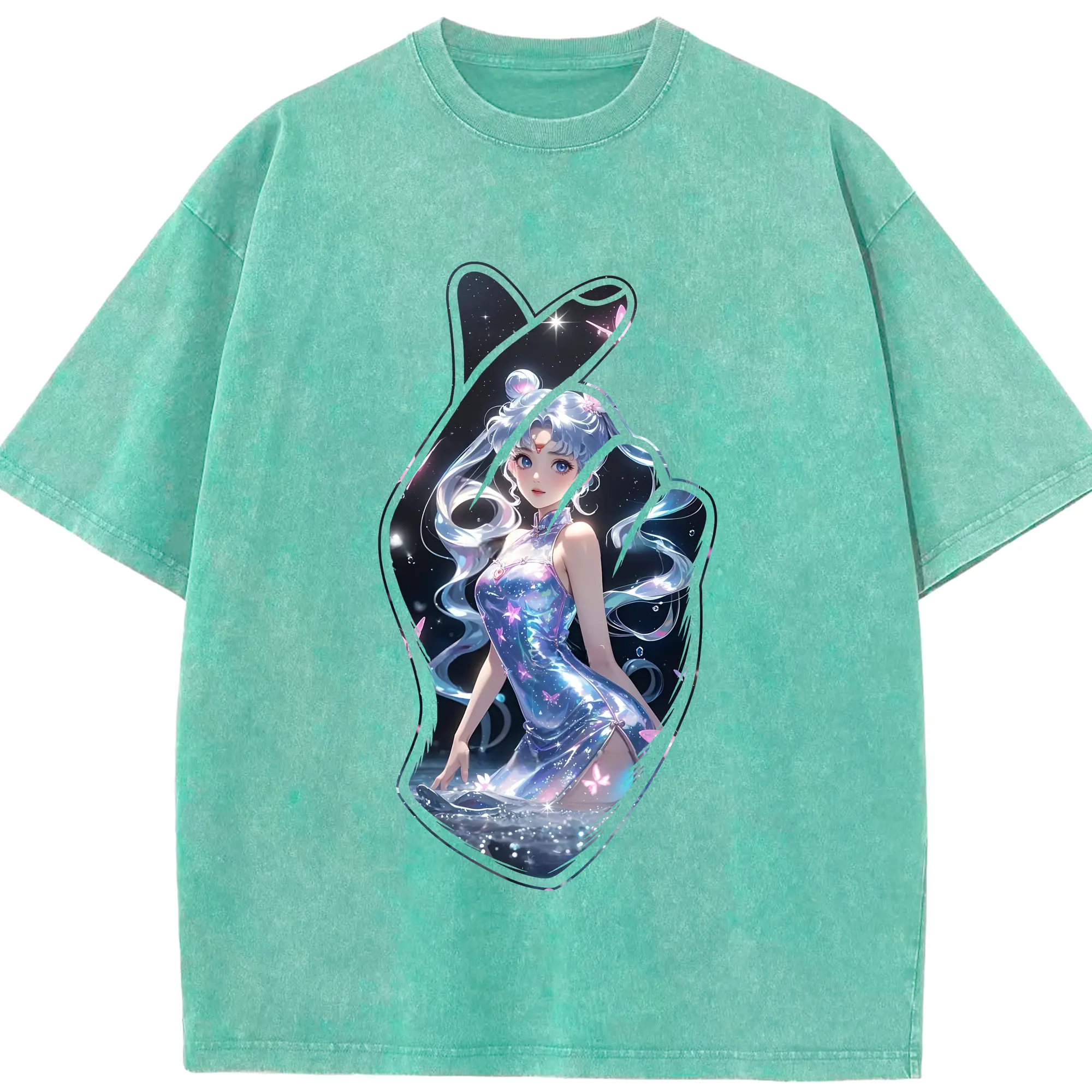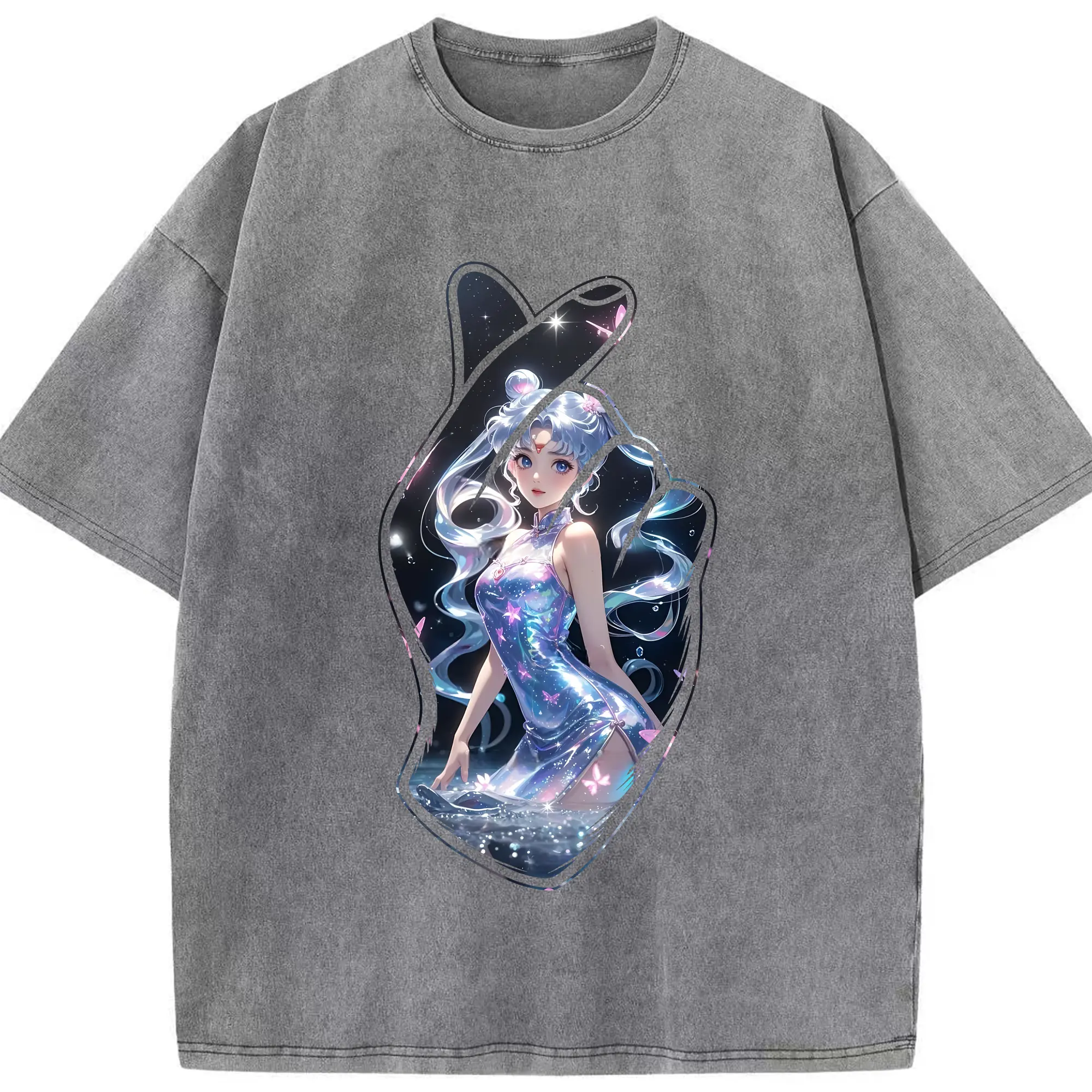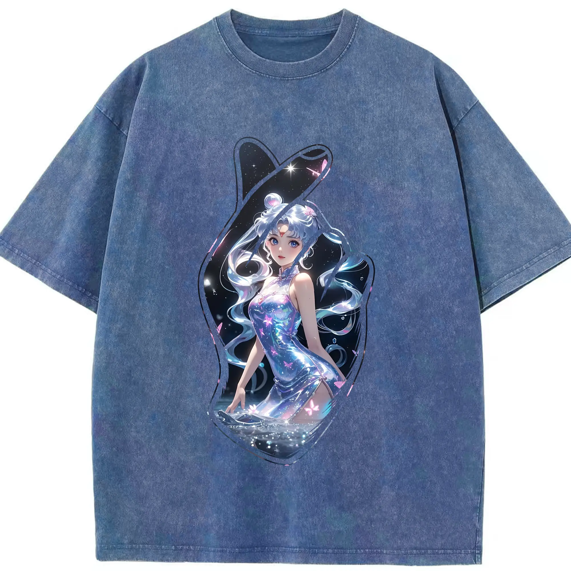 美少女戦士セーラームーン グッズ 月野 うさぎ - 綿100% ヴィンテージ風 半袖Tシャツ ・ 背面プリント ・ 柔らか肌触り ・ 通気性 快適 ・ スポーツ カジュアル 外出用