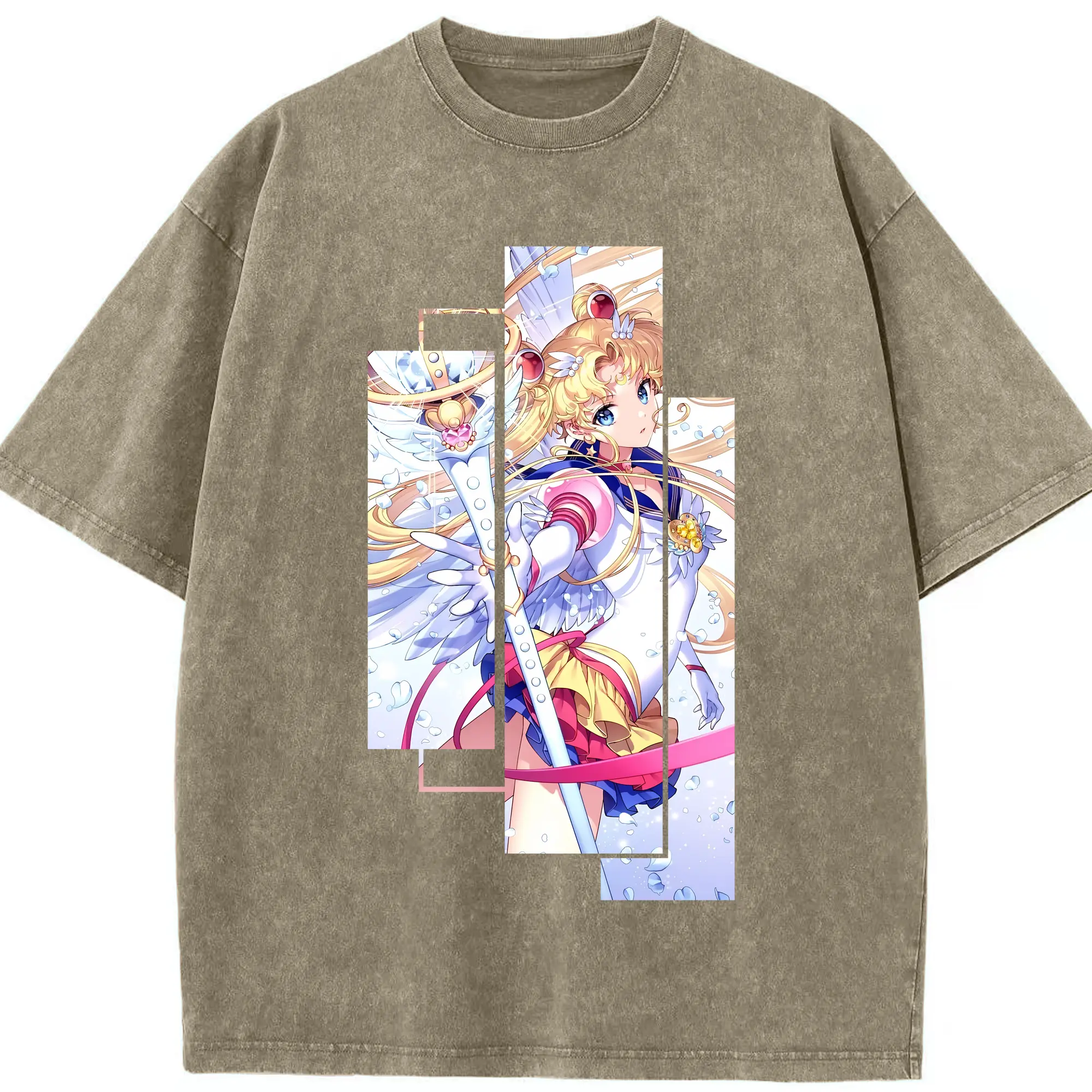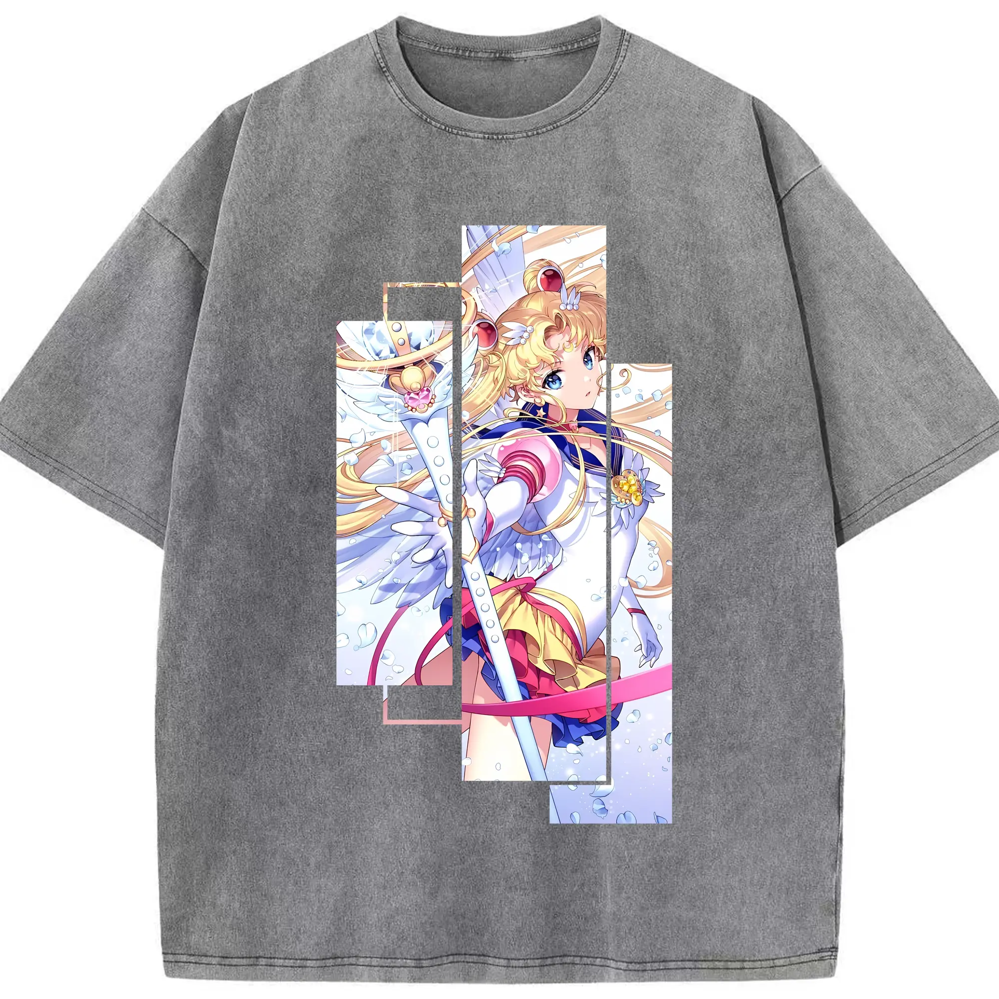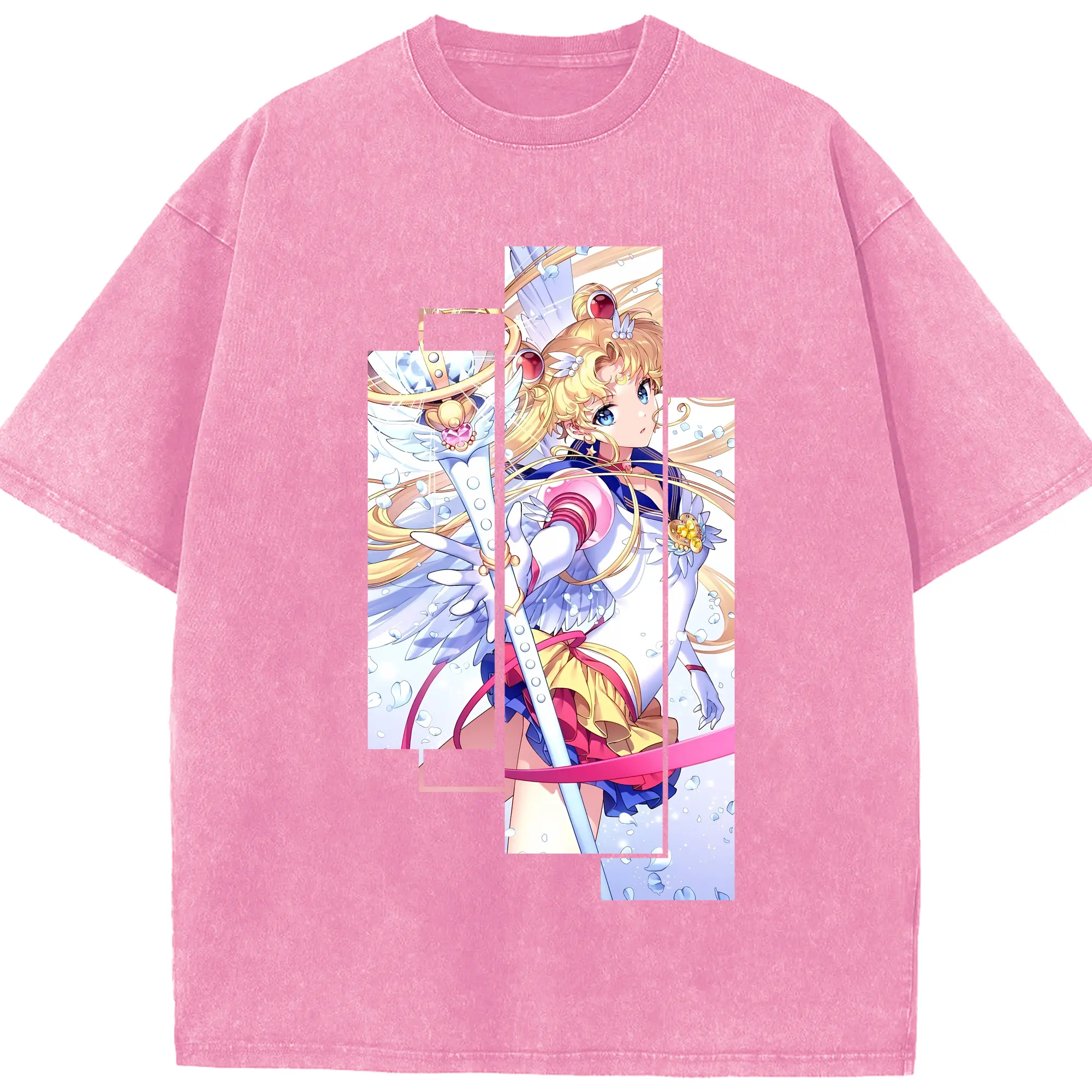 美少女戦士セーラームーン グッズ 月野 うさぎ - 綿100% ヴィンテージ風 半袖Tシャツ ・ 背面プリント ・ 柔らか肌触り ・ 通気性 快適 ・ スポーツ カジュアル 外出用