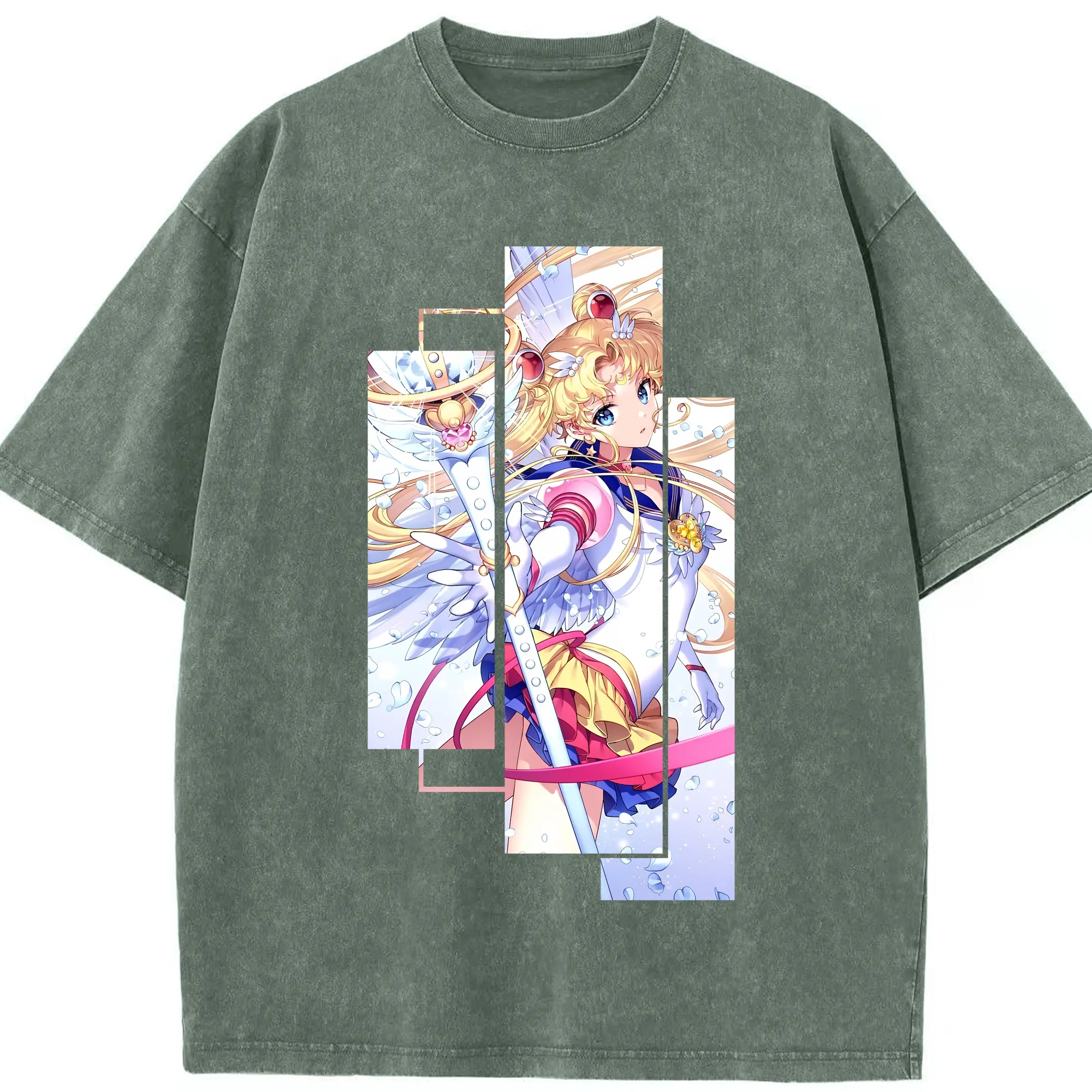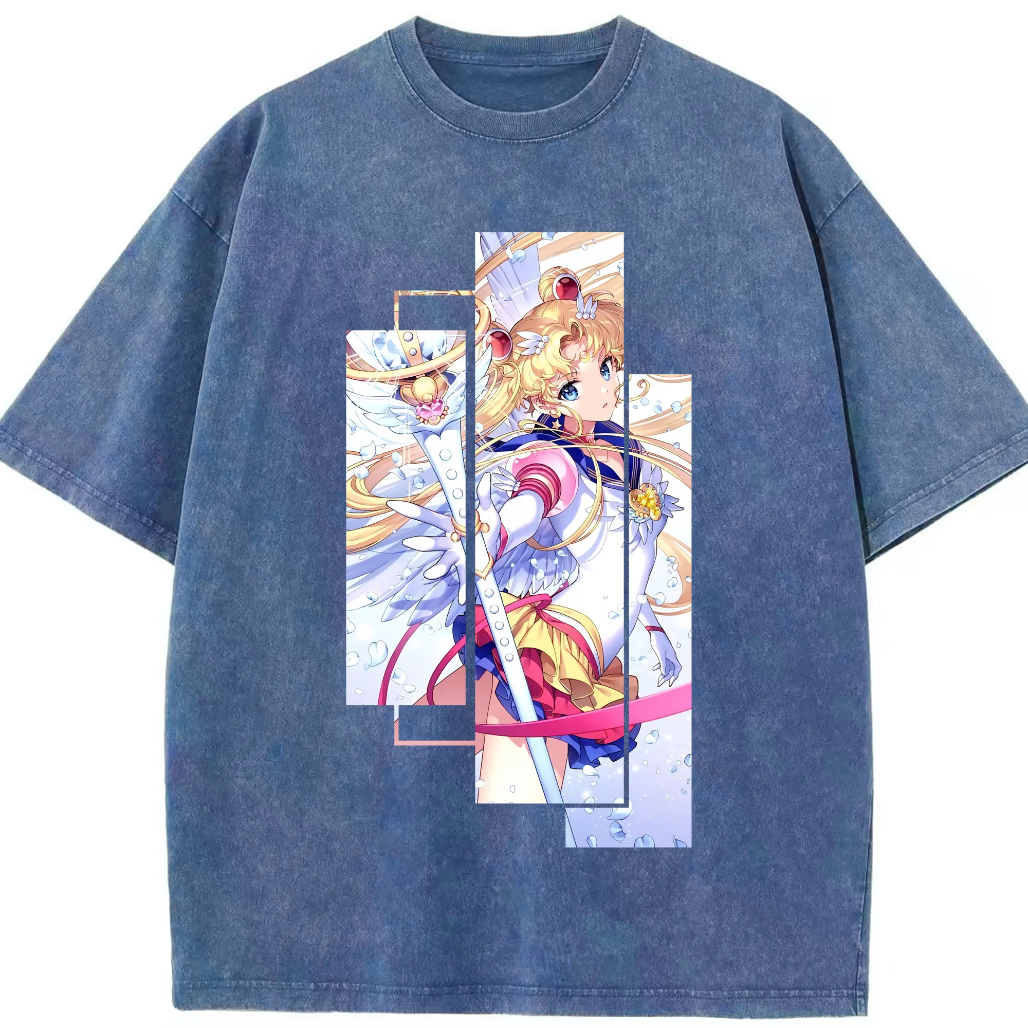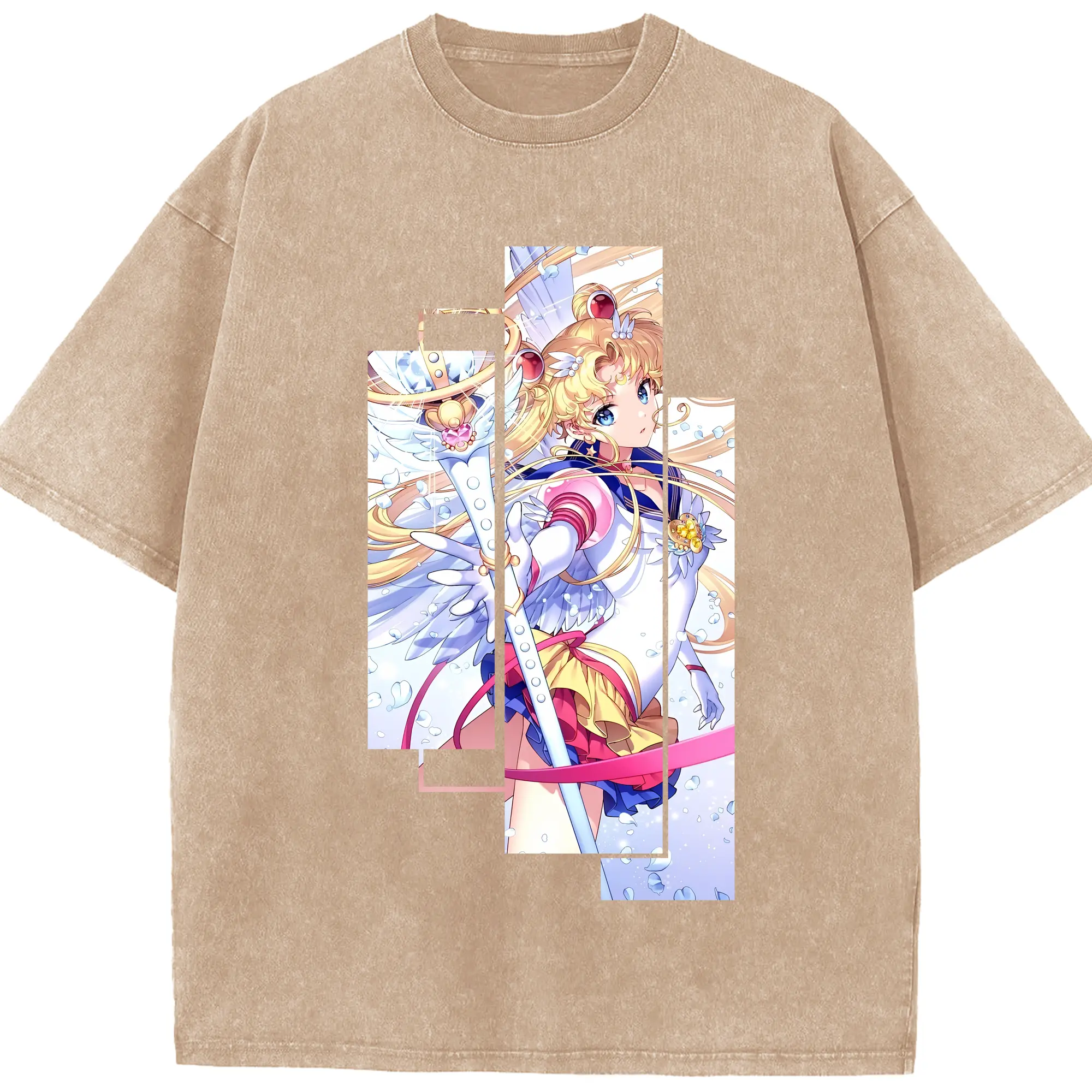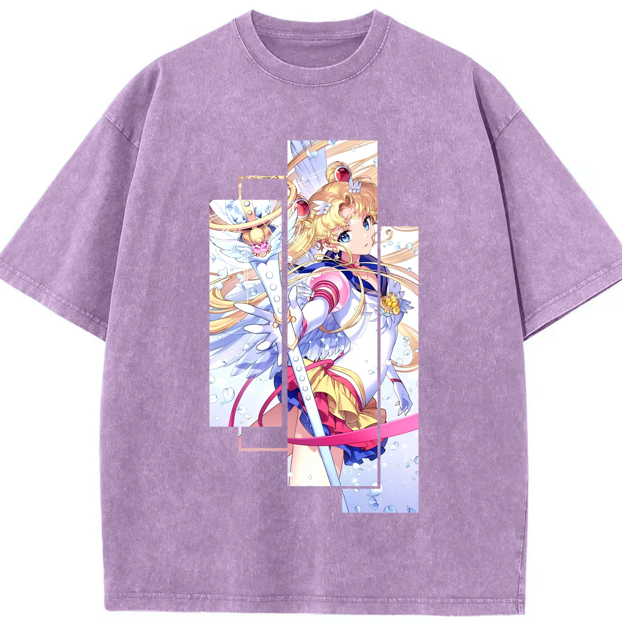美少女戦士セーラームーン グッズ 月野 うさぎ - 綿100% ヴィンテージ風 半袖Tシャツ ・ 背面プリント ・ 柔らか肌触り ・ 通気性 快適 ・ スポーツ カジュアル 外出用