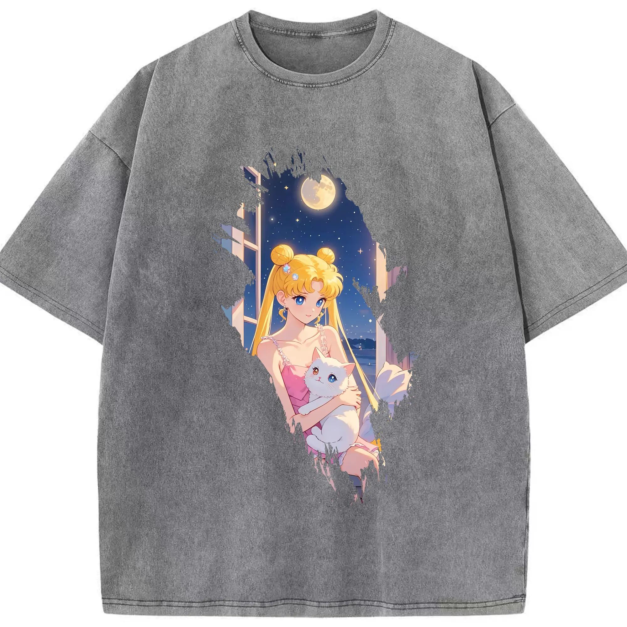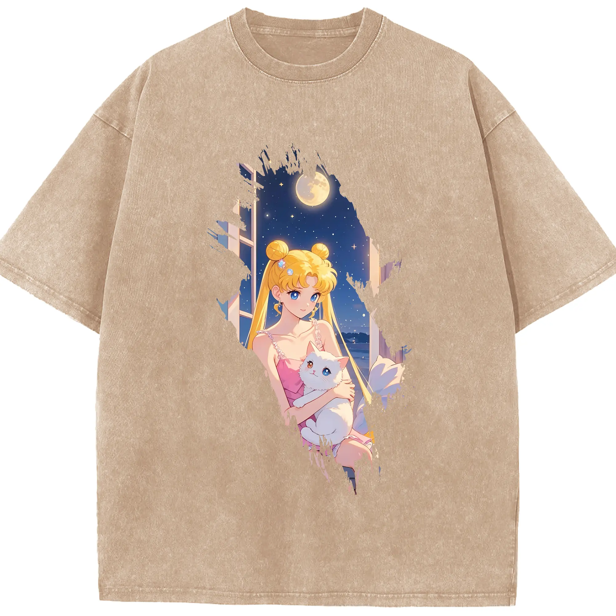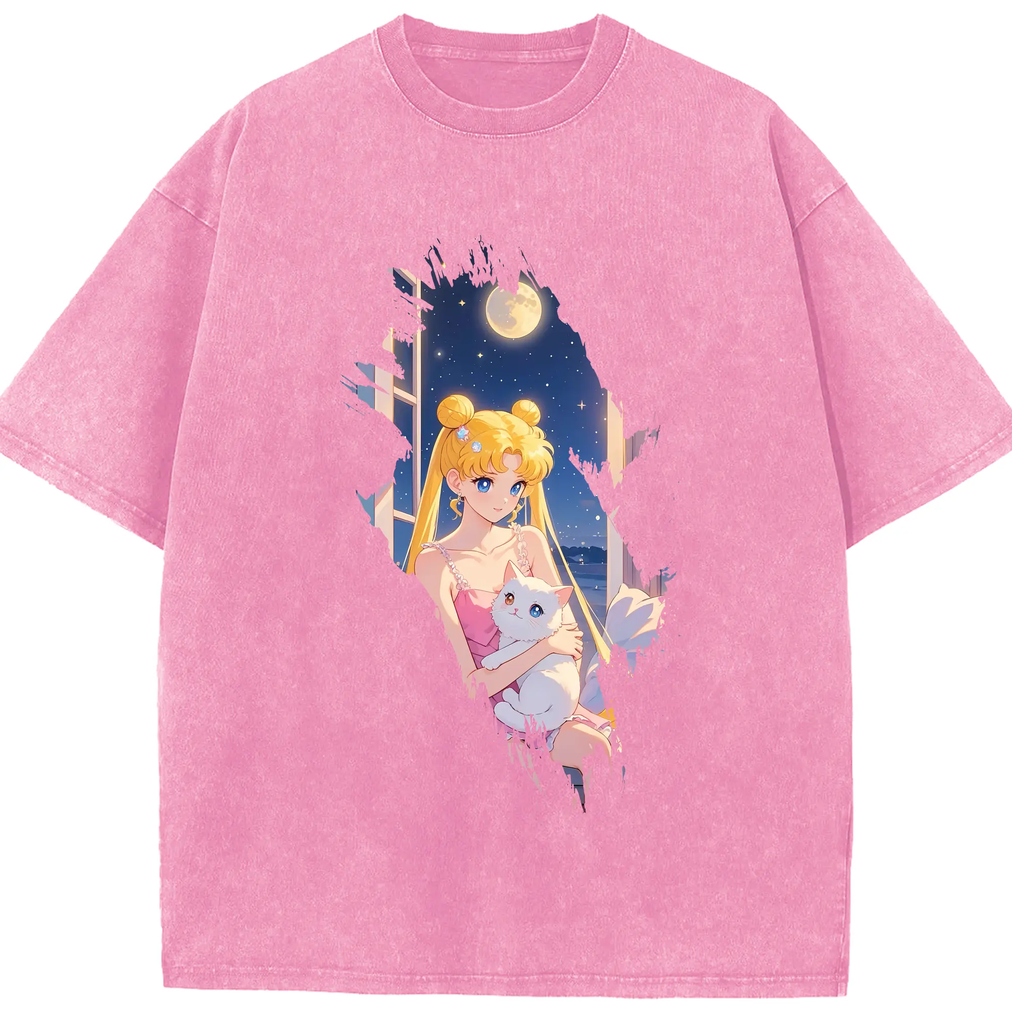 美少女戦士セーラームーン グッズ 月野 うさぎ - 綿100% ヴィンテージ風 半袖Tシャツ ・ 背面プリント ・ 柔らか肌触り ・ 通気性 快適 ・ スポーツ カジュアル 外出用