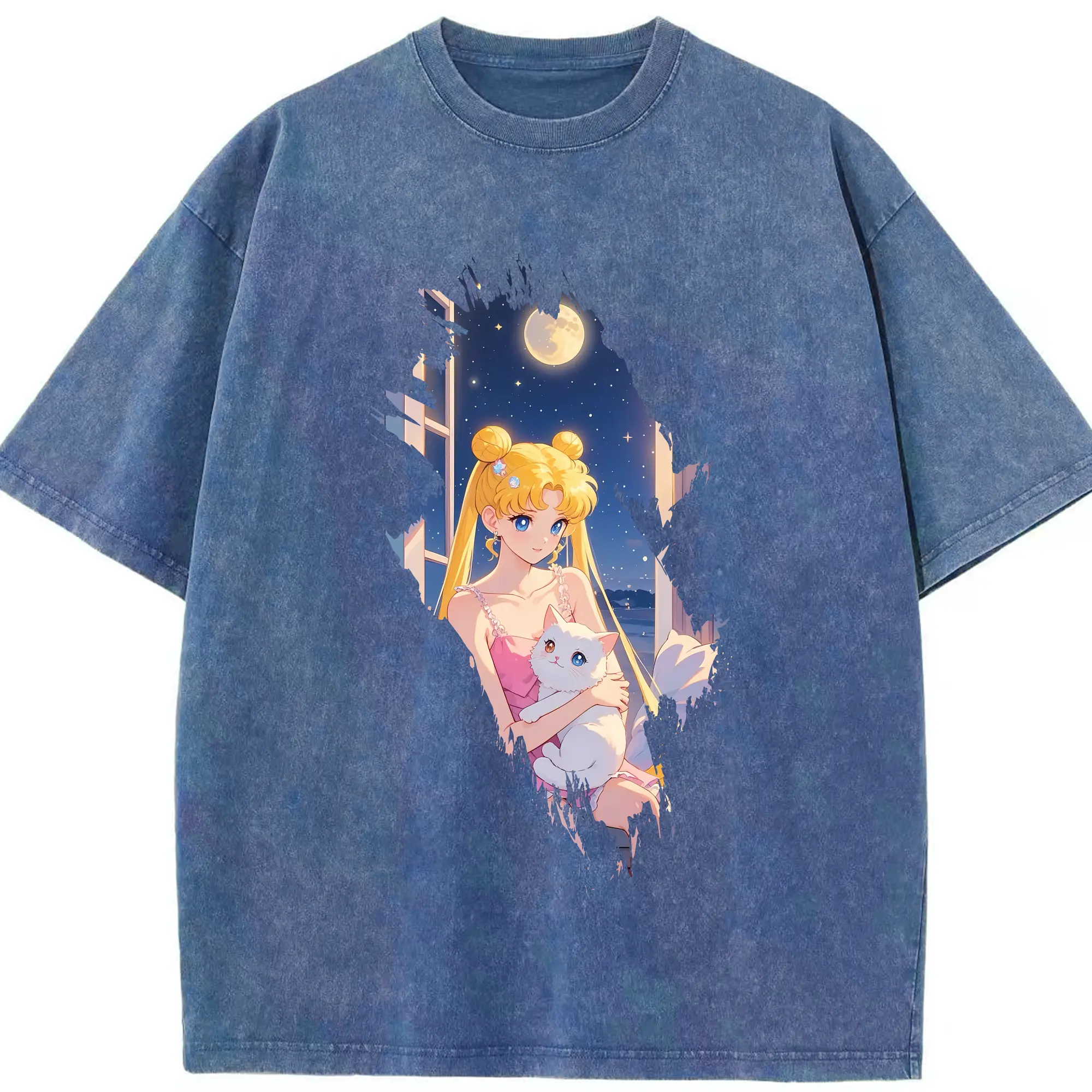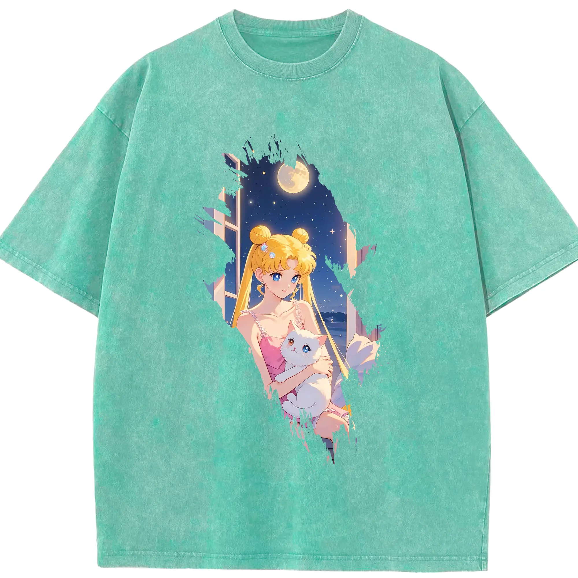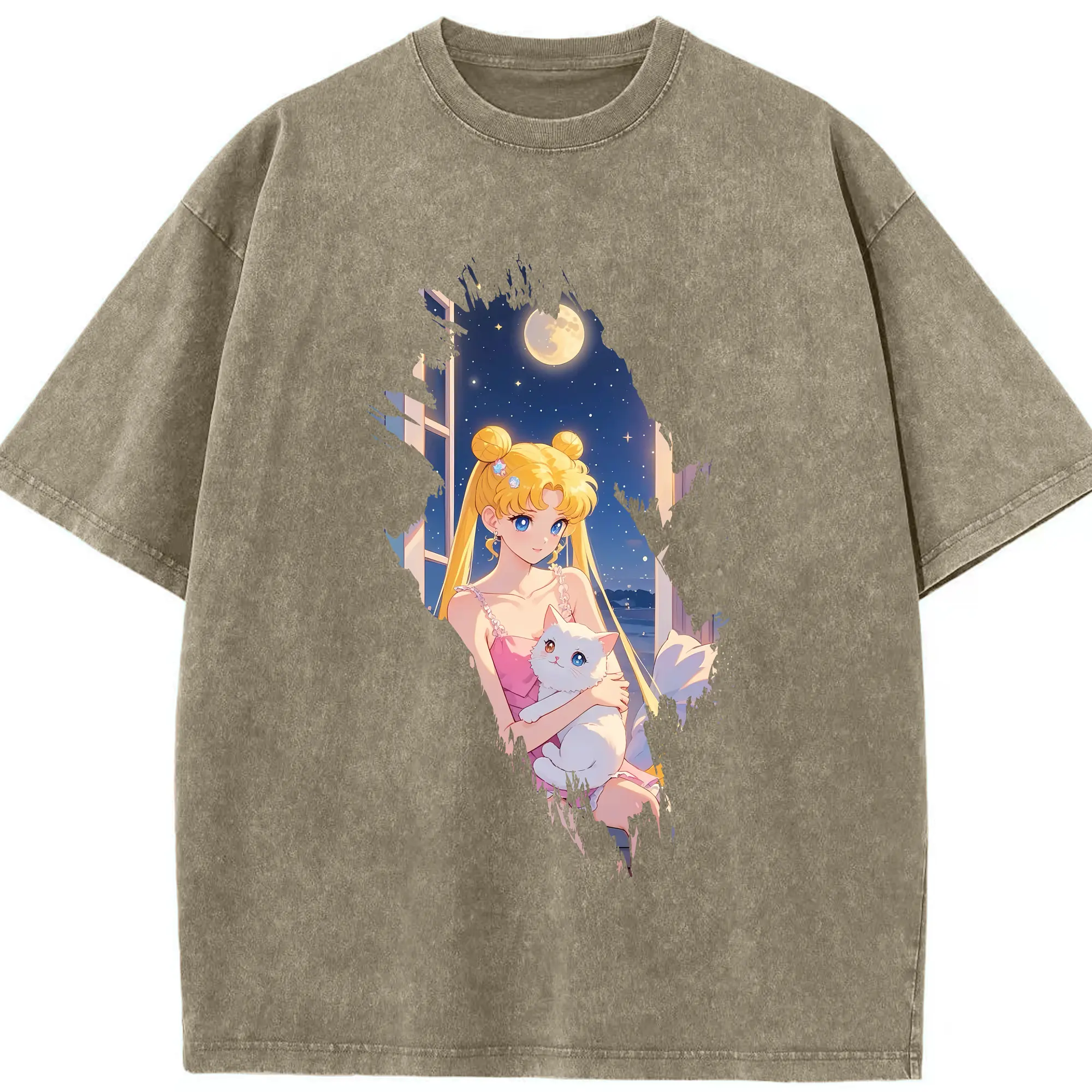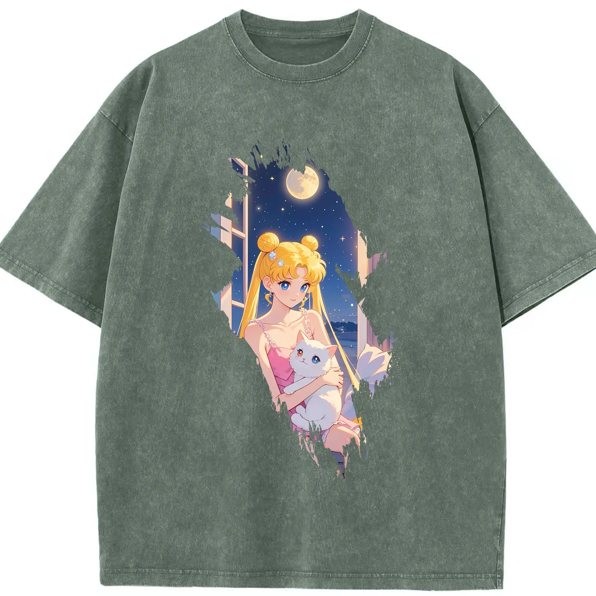 美少女戦士セーラームーン グッズ 月野 うさぎ - 綿100% ヴィンテージ風 半袖Tシャツ ・ 背面プリント ・ 柔らか肌触り ・ 通気性 快適 ・ スポーツ カジュアル 外出用