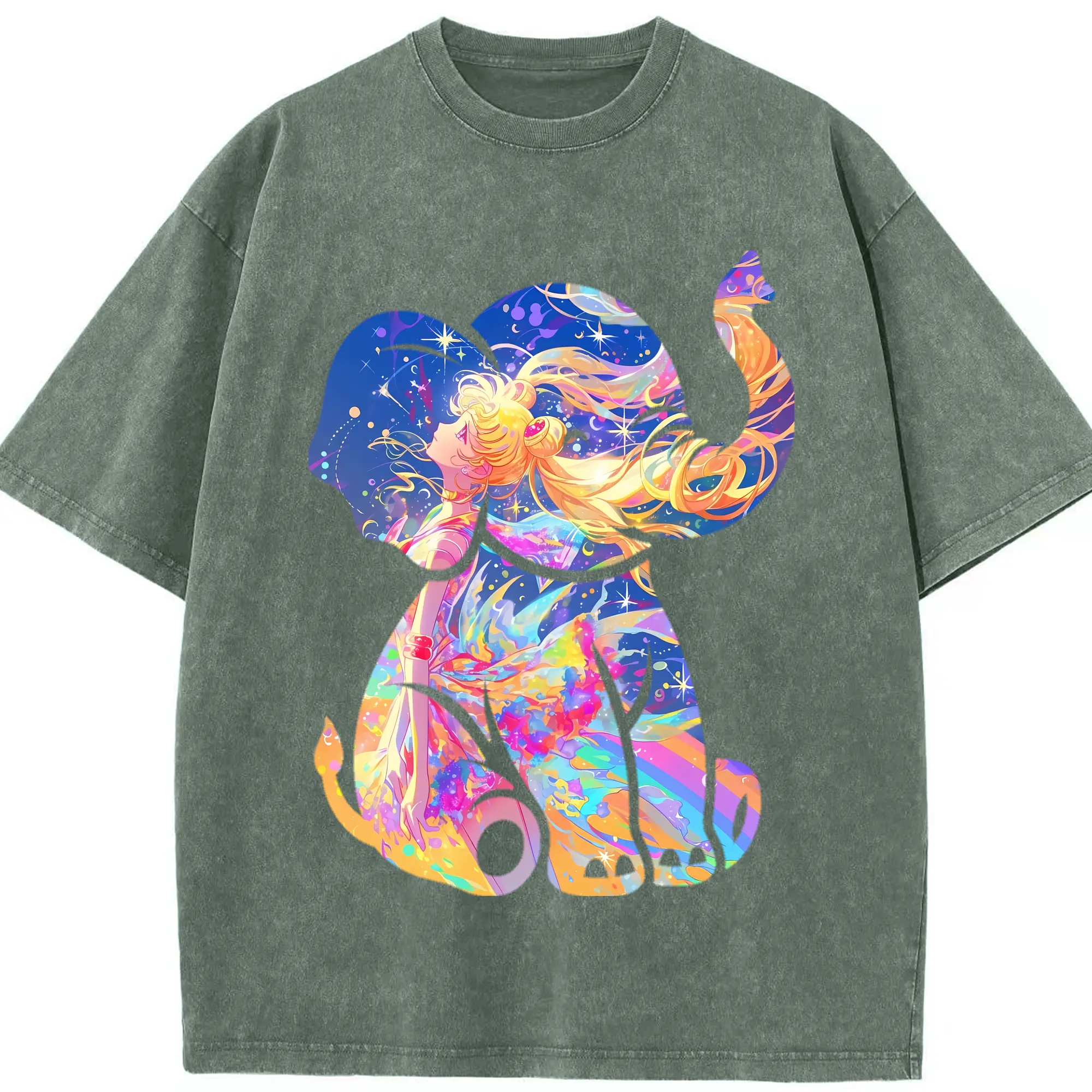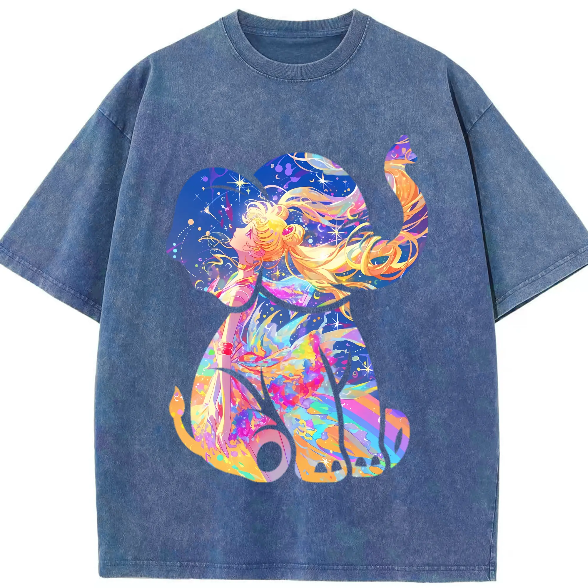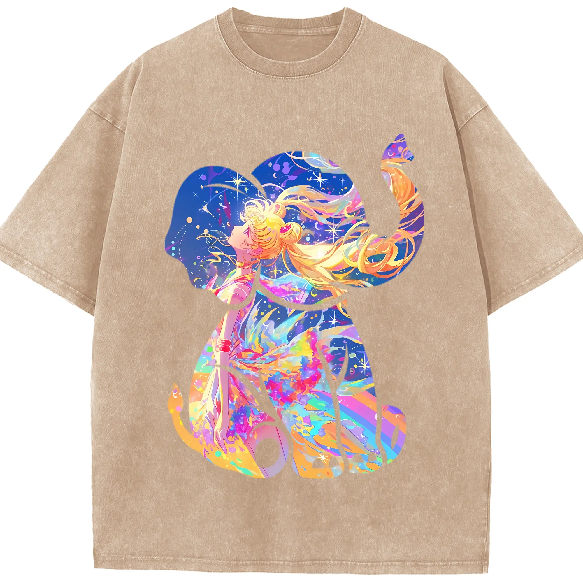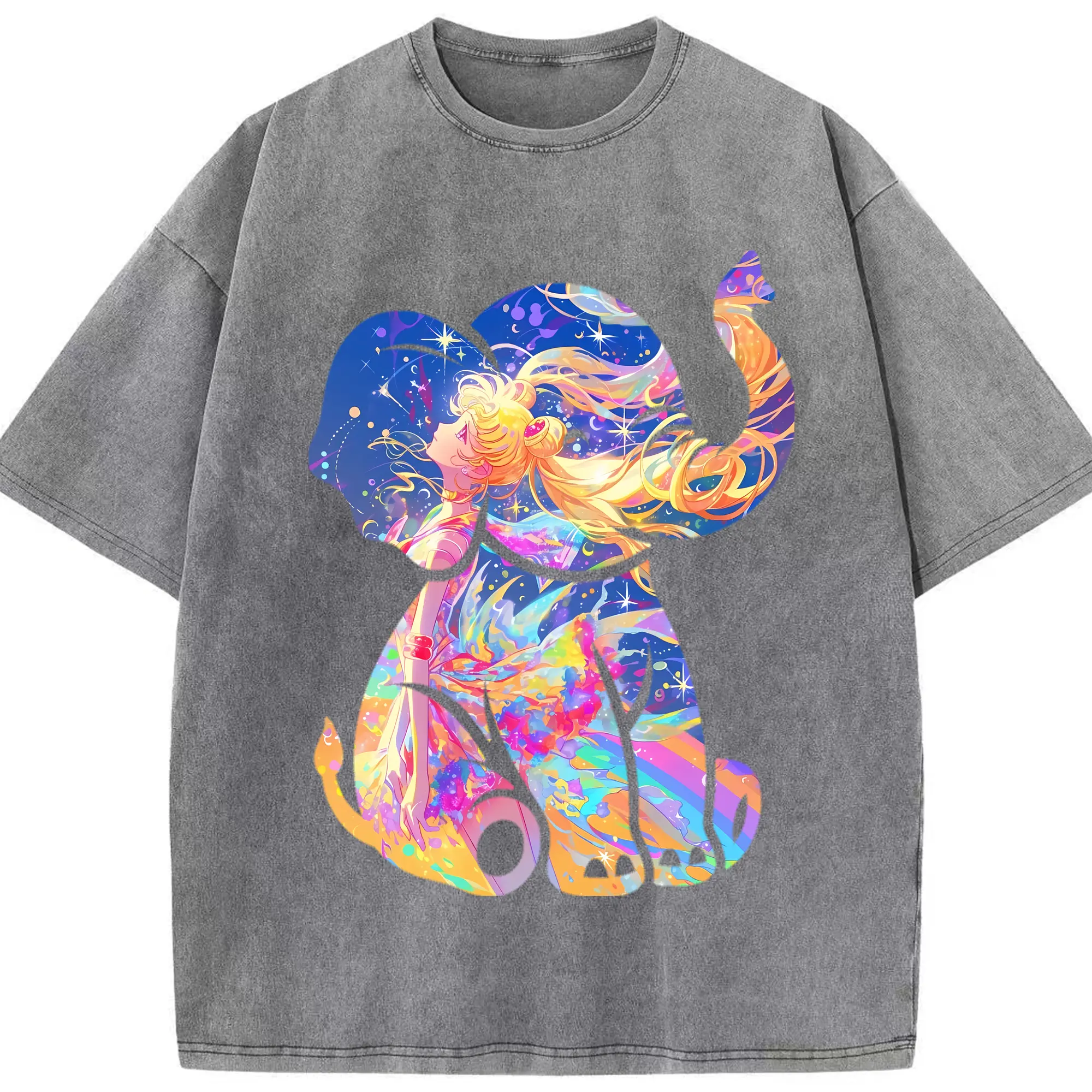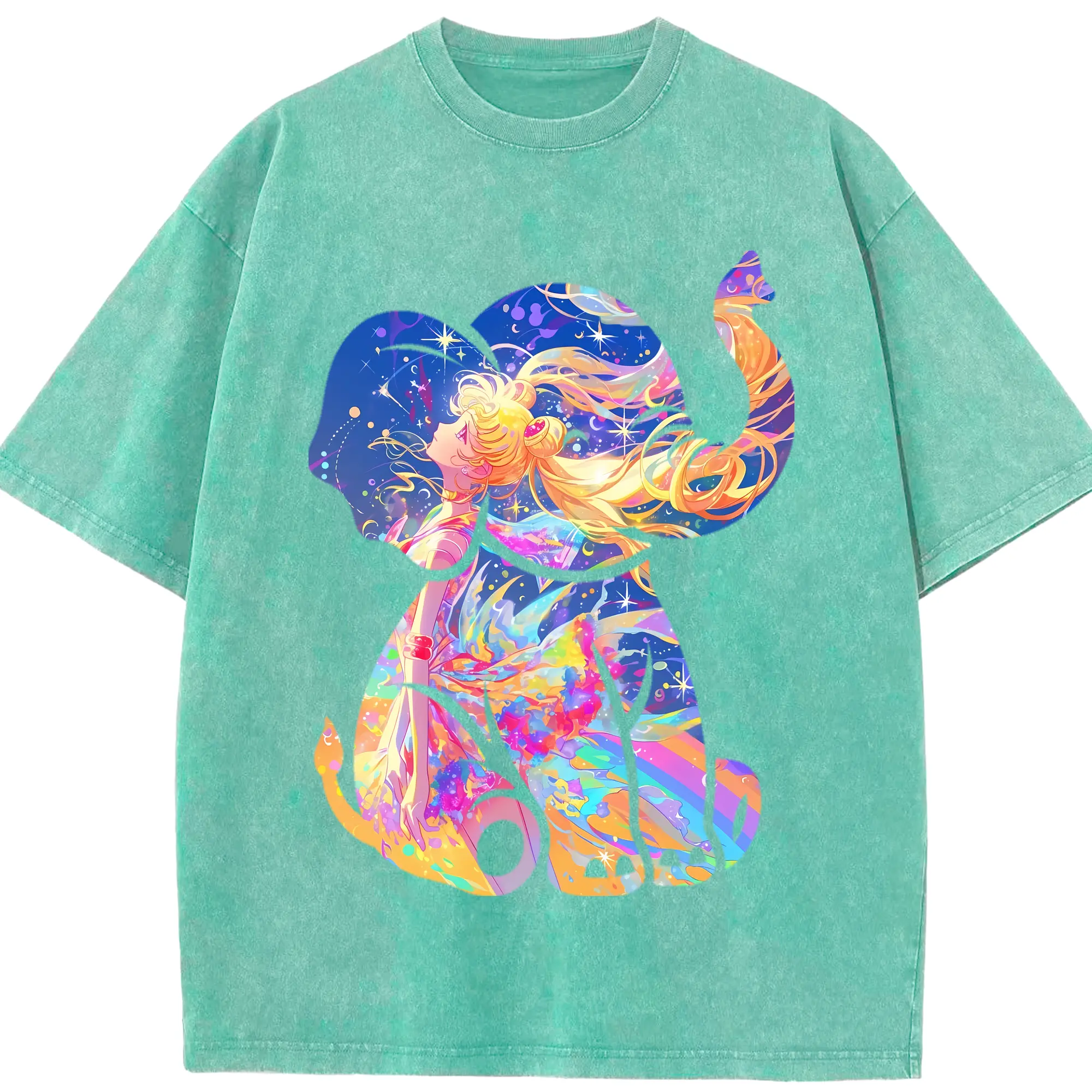 美少女戦士セーラームーン グッズ 月野 うさぎ - 綿100% ヴィンテージ風 半袖Tシャツ ・ 背面プリント ・ 柔らか肌触り ・ 通気性 快適 ・ スポーツ カジュアル 外出用