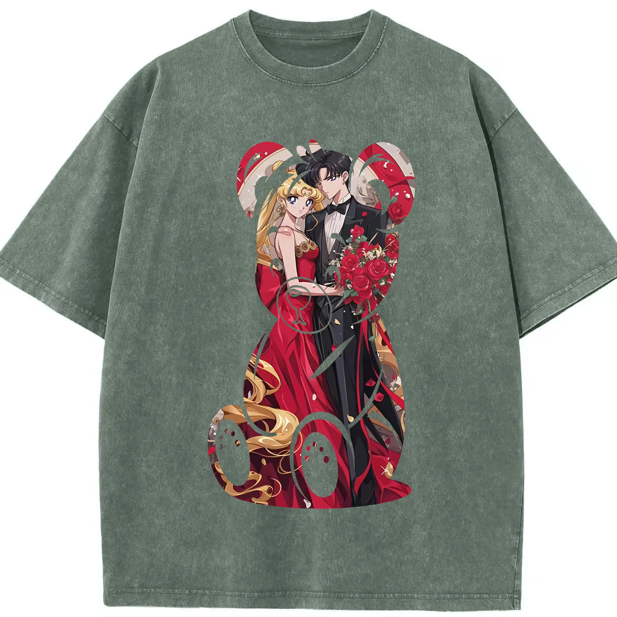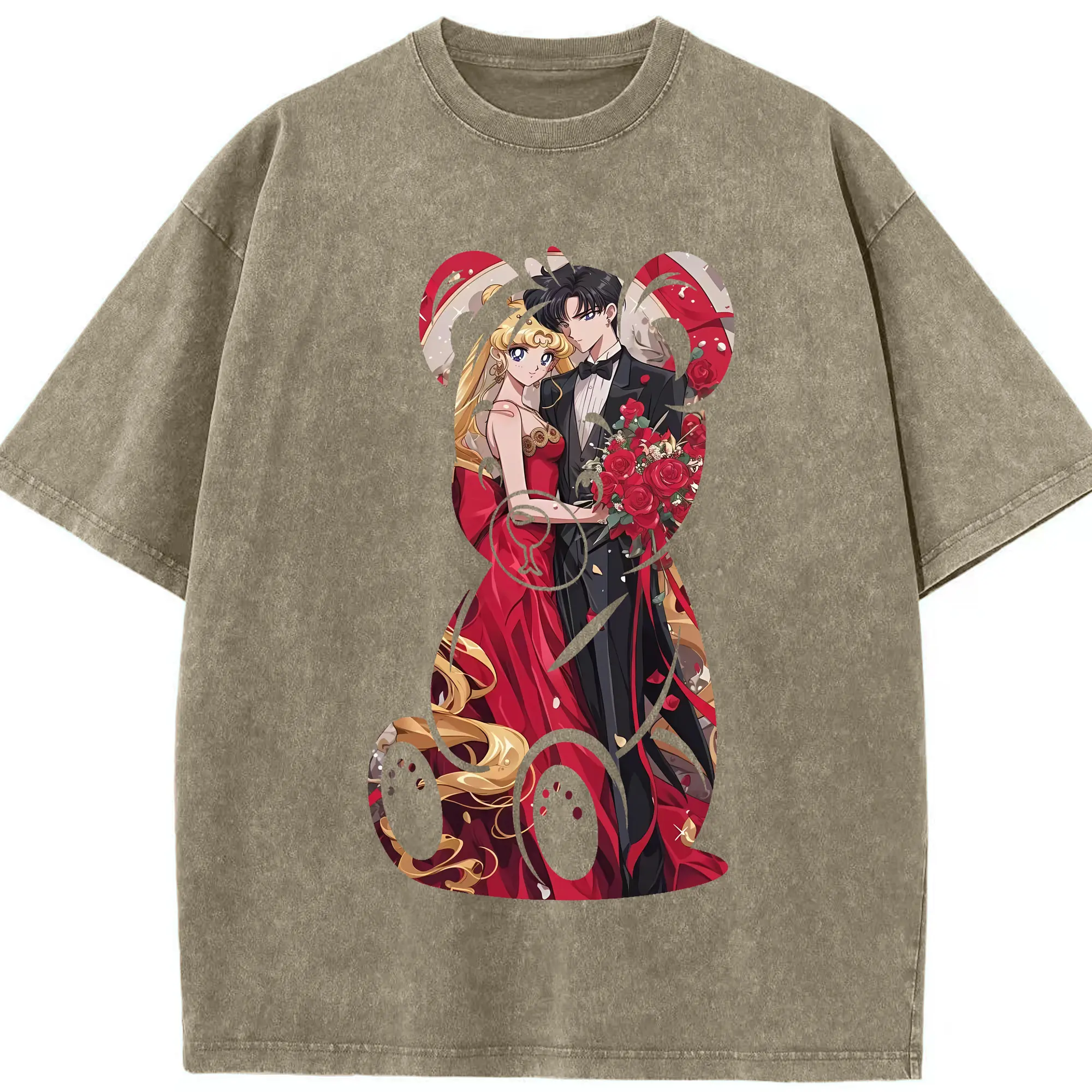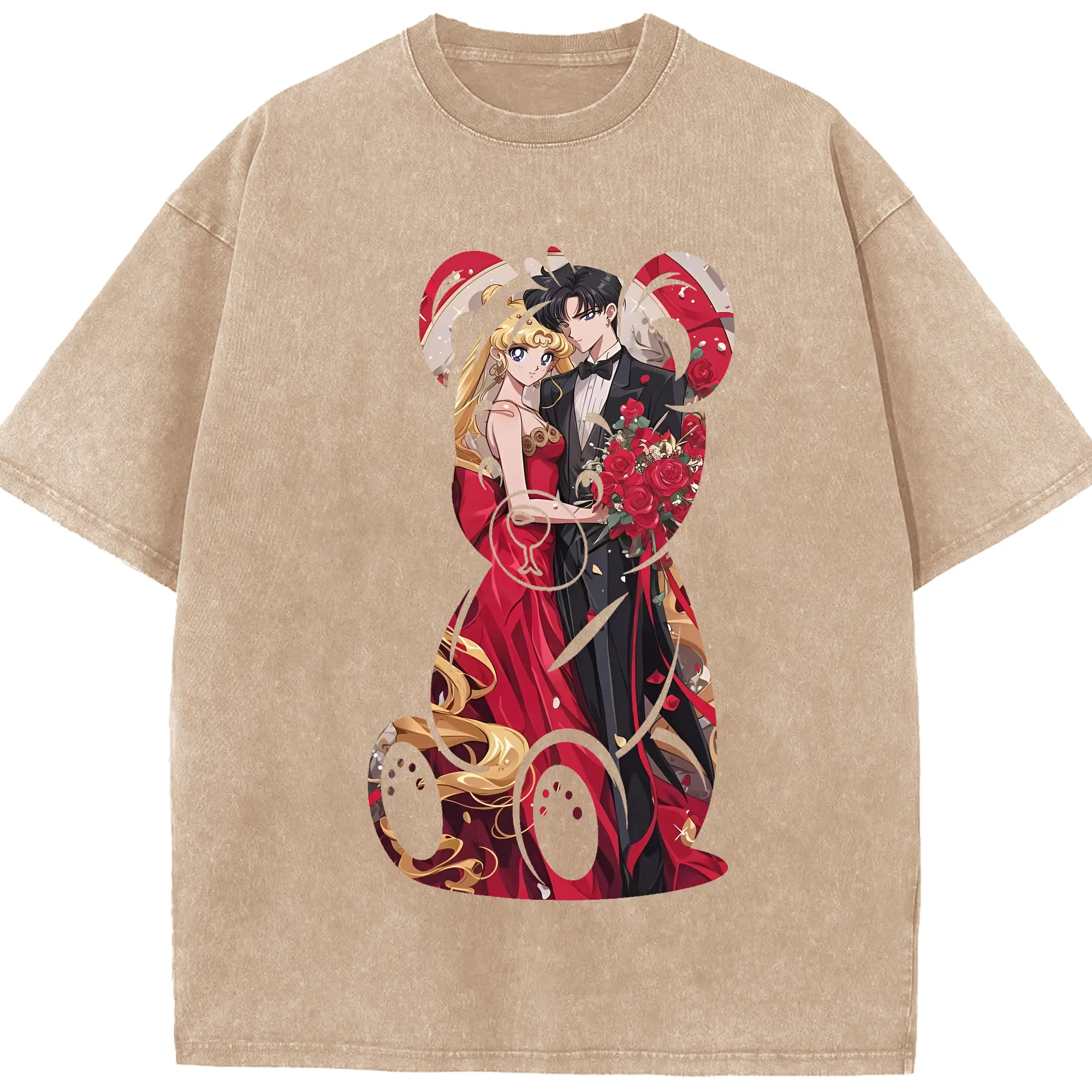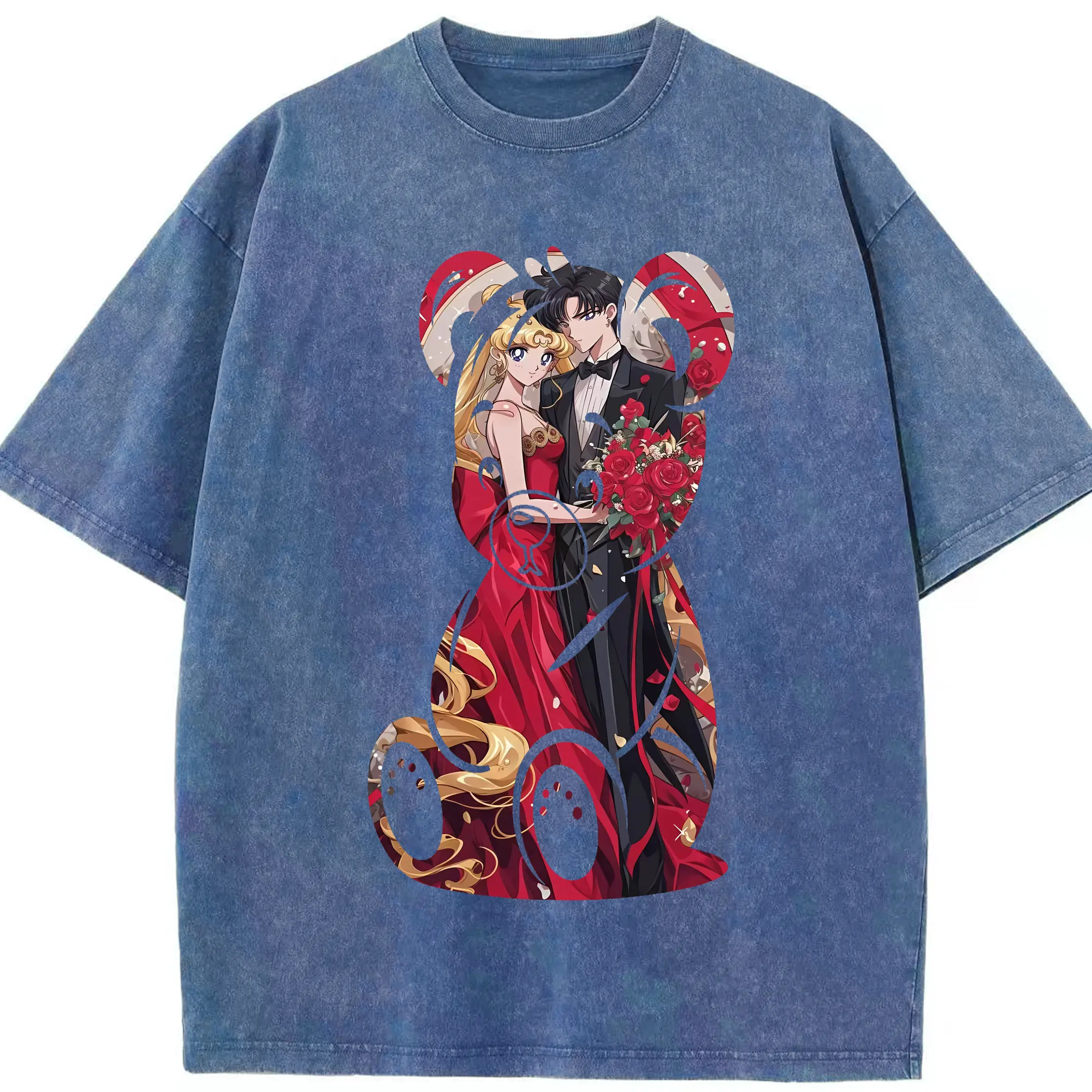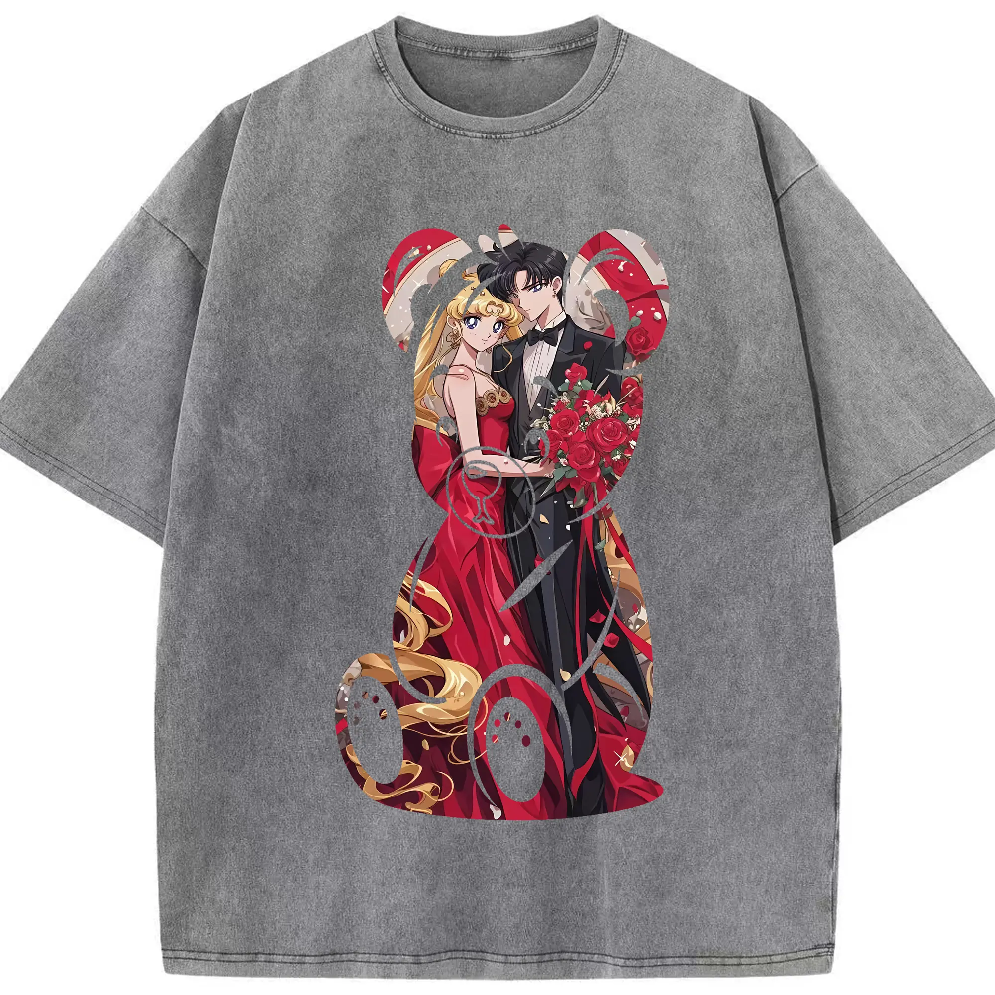 美少女戦士セーラームーン グッズ 月野 うさぎ - 綿100% ヴィンテージ風 半袖Tシャツ ・ 背面プリント ・ 柔らか肌触り ・ 通気性 快適 ・ スポーツ カジュアル 外出用