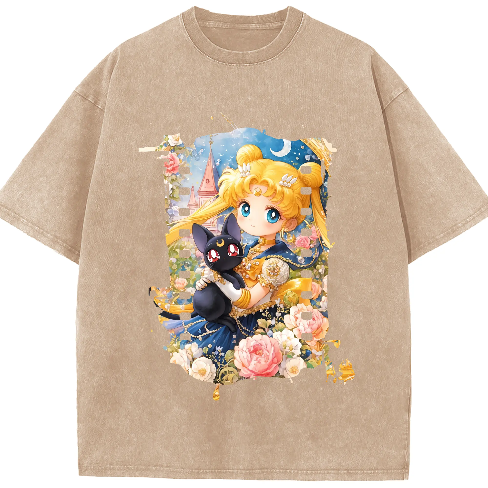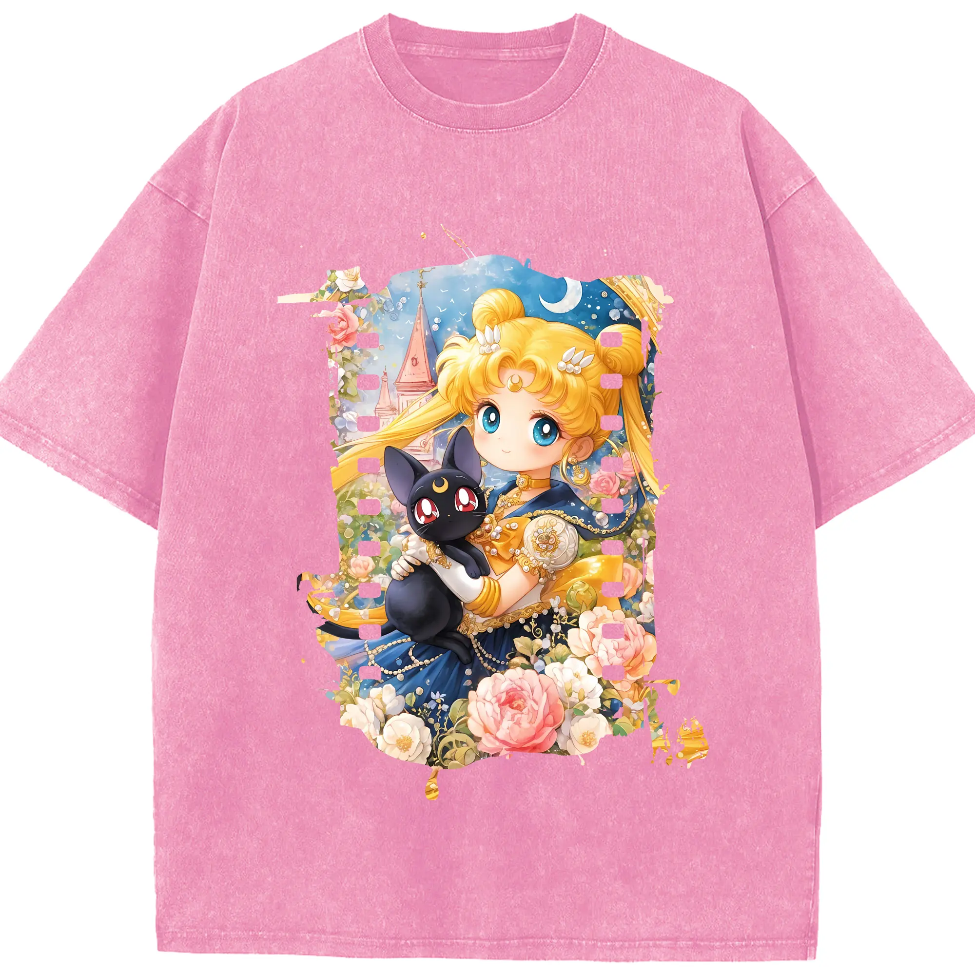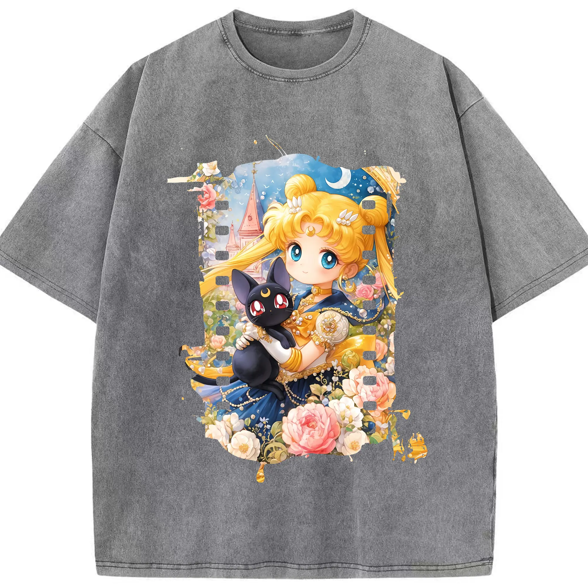 美少女戦士セーラームーン グッズ 月野 うさぎ - 綿100% ヴィンテージ風 半袖Tシャツ ・ 背面プリント ・ 柔らか肌触り ・ 通気性 快適 ・ スポーツ カジュアル 外出用
