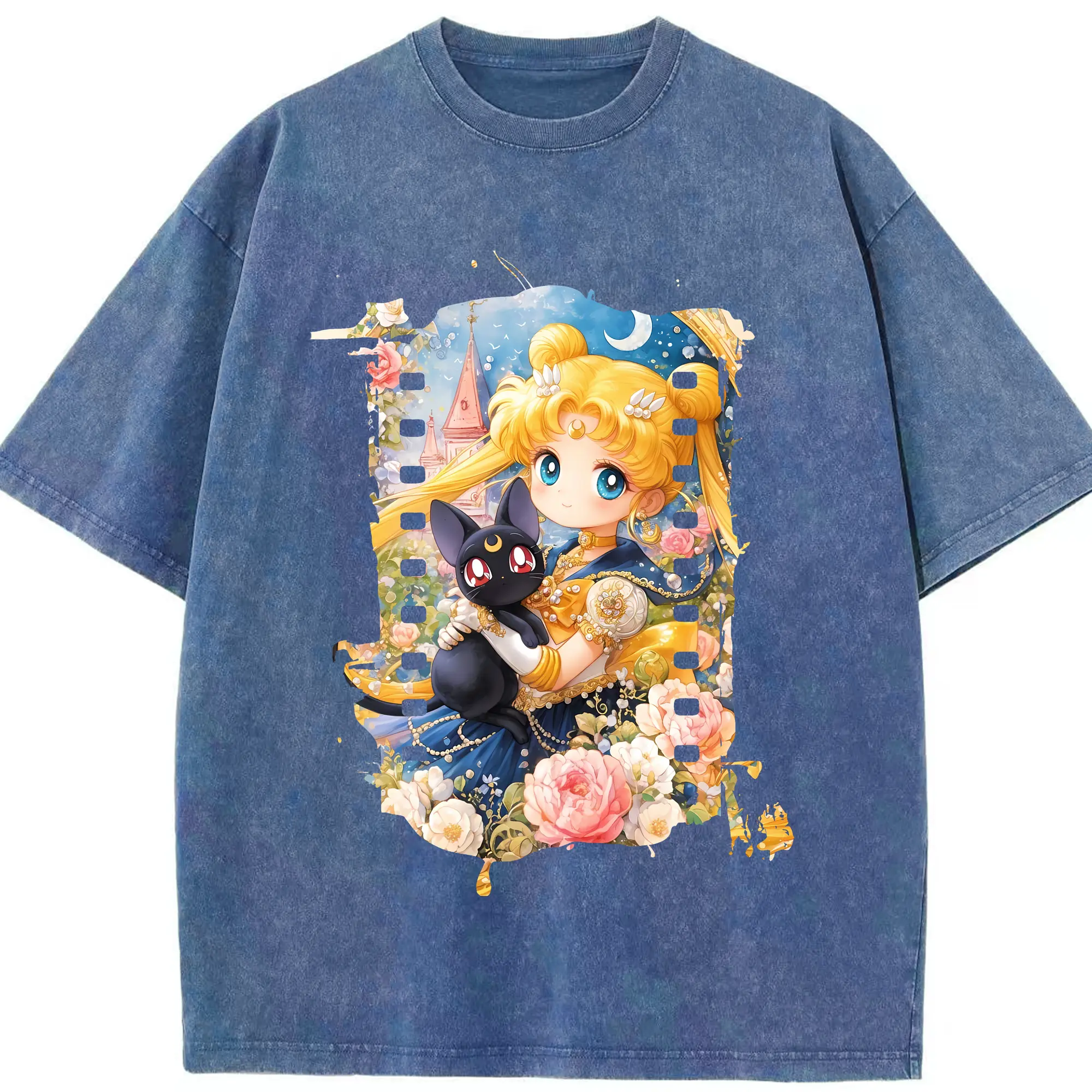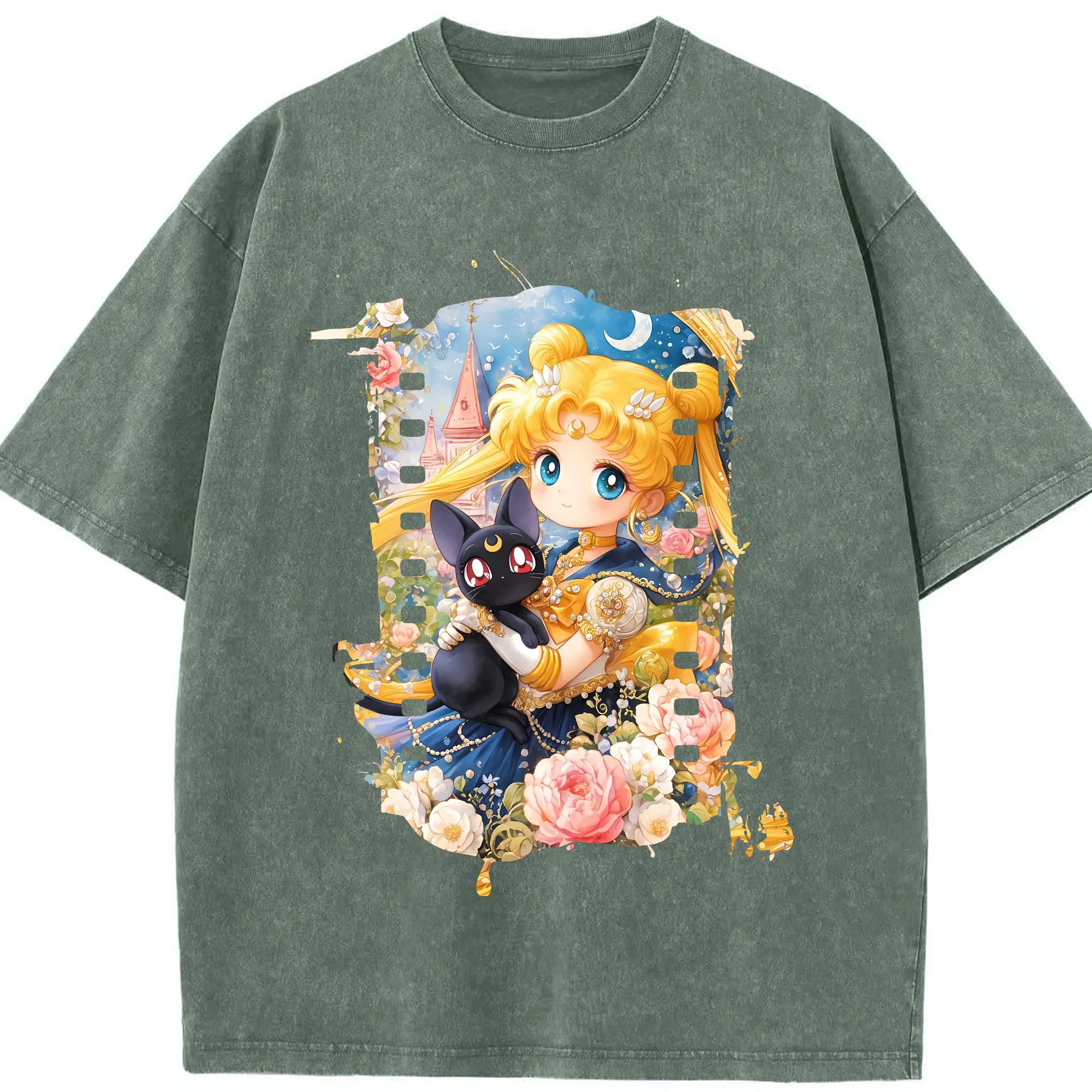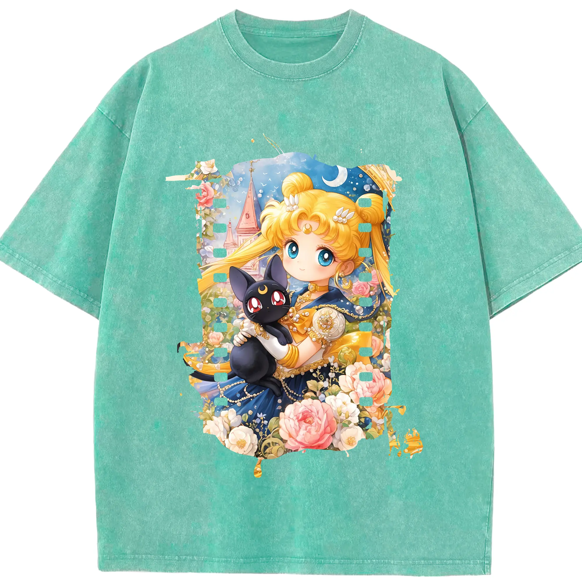 美少女戦士セーラームーン グッズ 月野 うさぎ - 綿100% ヴィンテージ風 半袖Tシャツ ・ 背面プリント ・ 柔らか肌触り ・ 通気性 快適 ・ スポーツ カジュアル 外出用