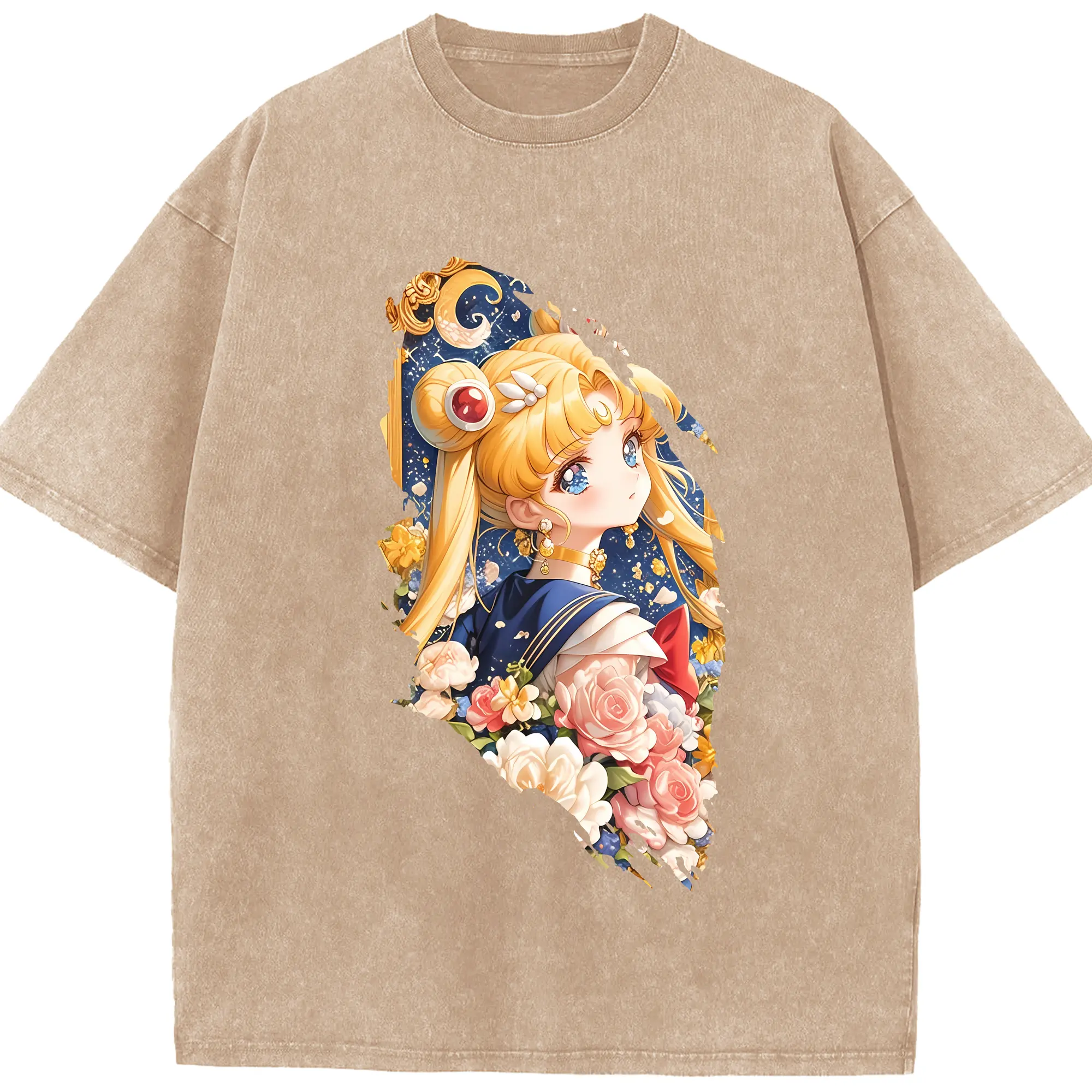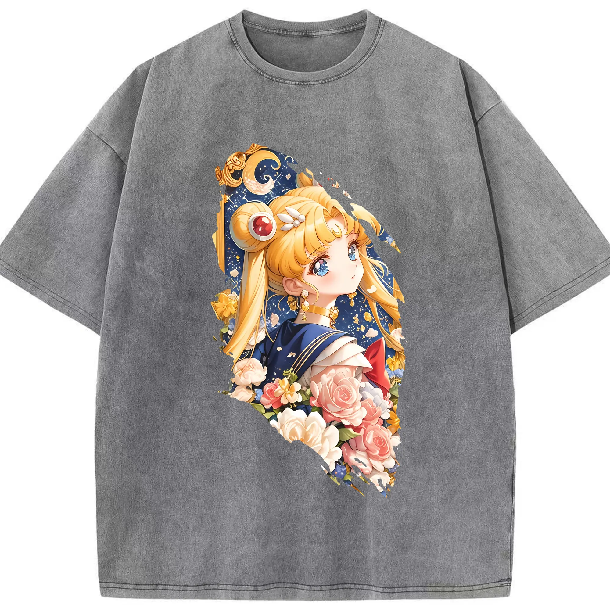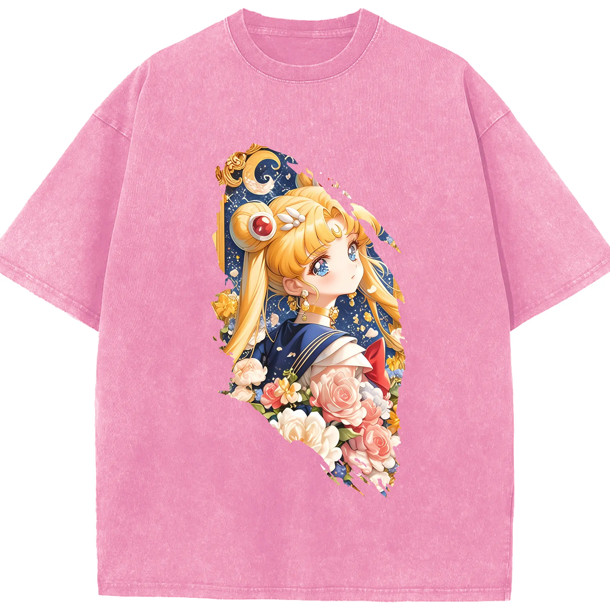 美少女戦士セーラームーン グッズ 月野 うさぎ - 綿100% ヴィンテージ風 半袖Tシャツ ・ 背面プリント ・ 柔らか肌触り ・ 通気性 快適 ・ スポーツ カジュアル 外出用