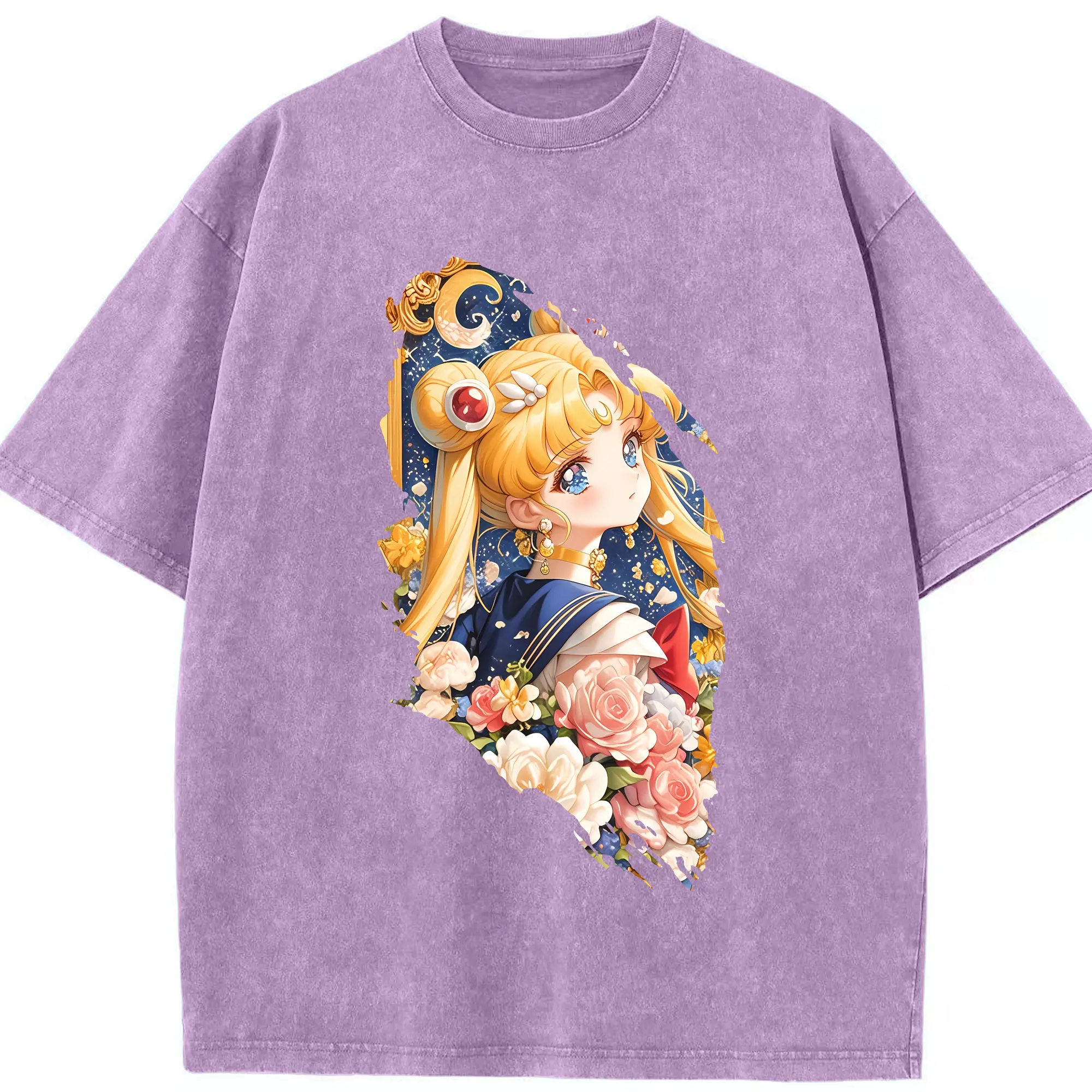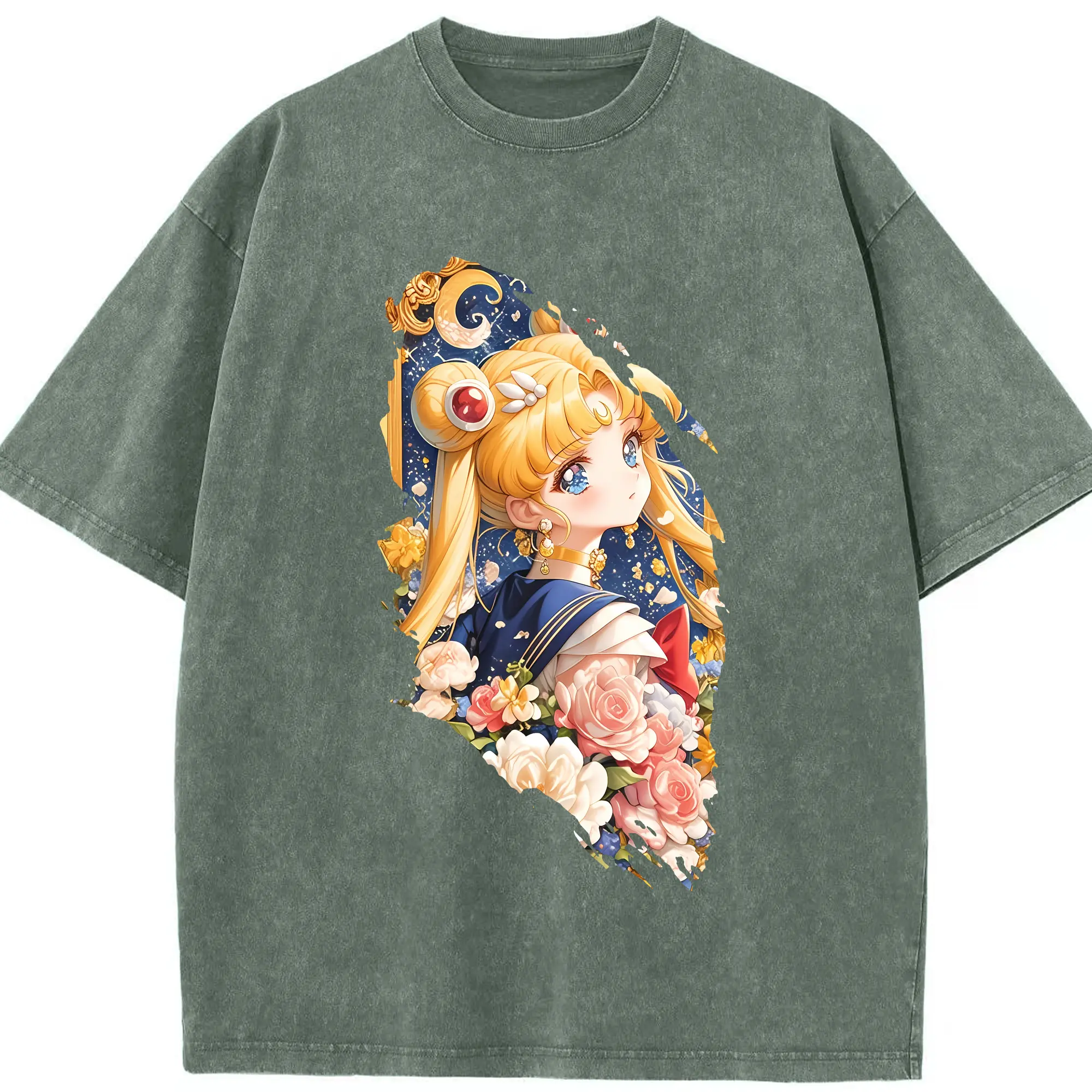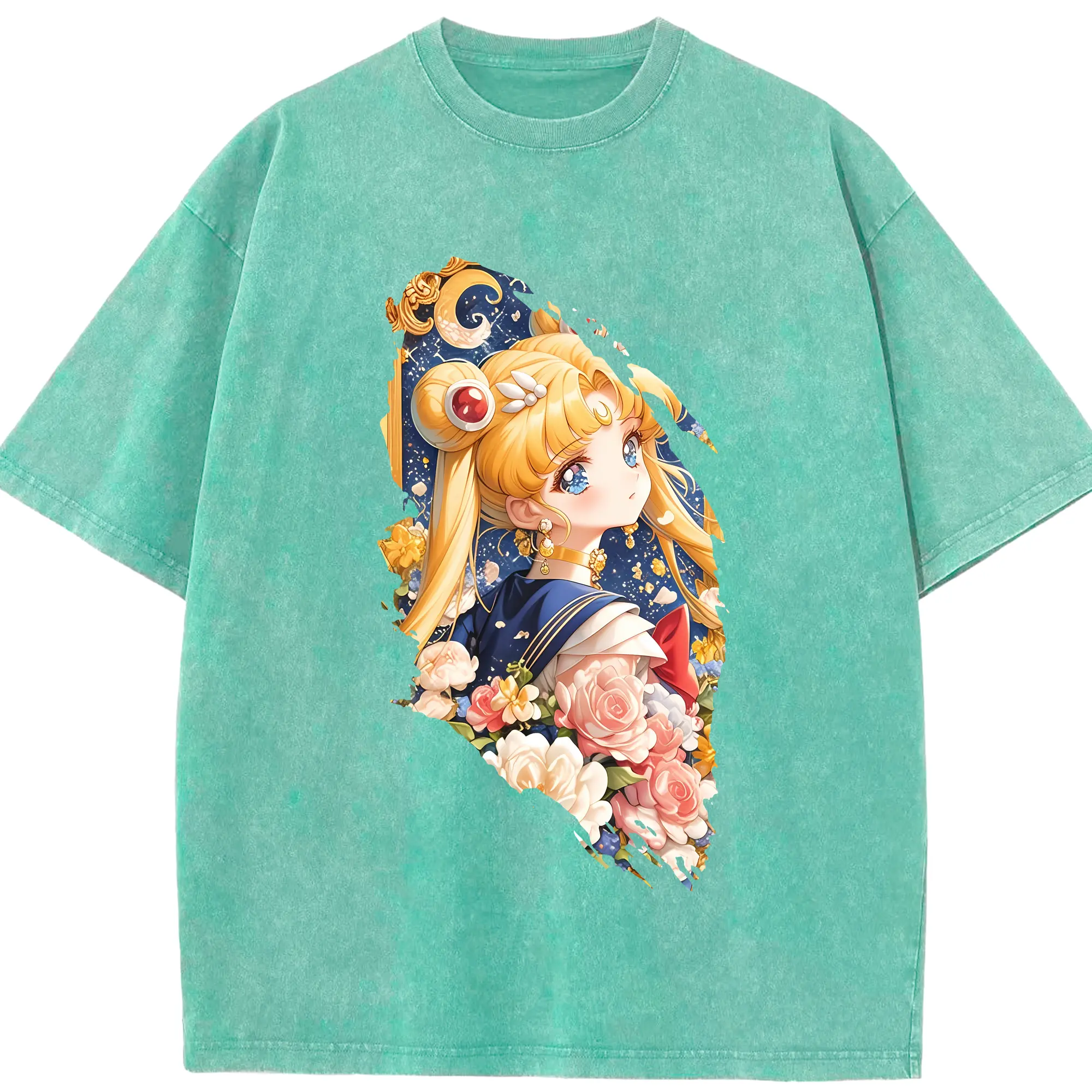 美少女戦士セーラームーン グッズ 月野 うさぎ - 綿100% ヴィンテージ風 半袖Tシャツ ・ 背面プリント ・ 柔らか肌触り ・ 通気性 快適 ・ スポーツ カジュアル 外出用