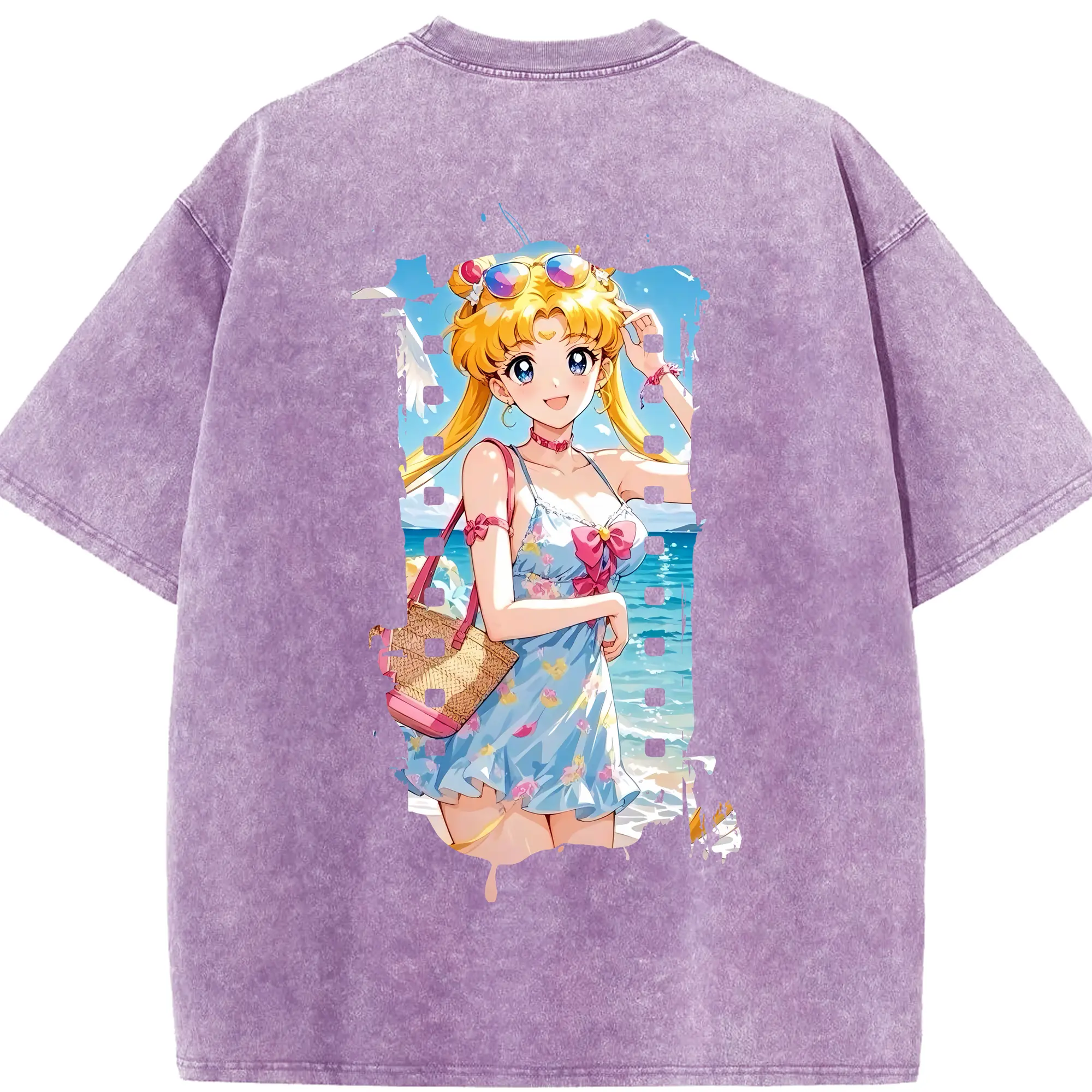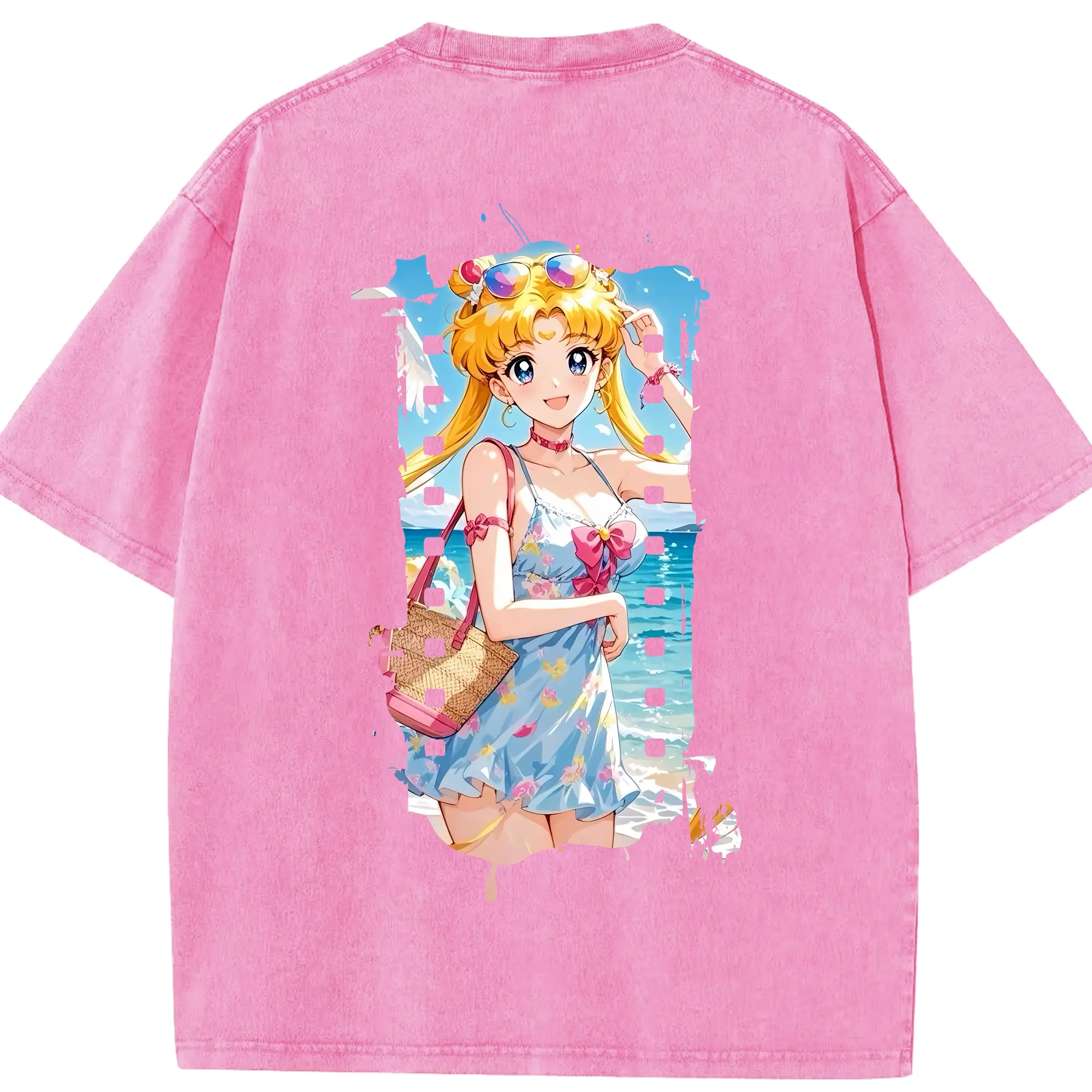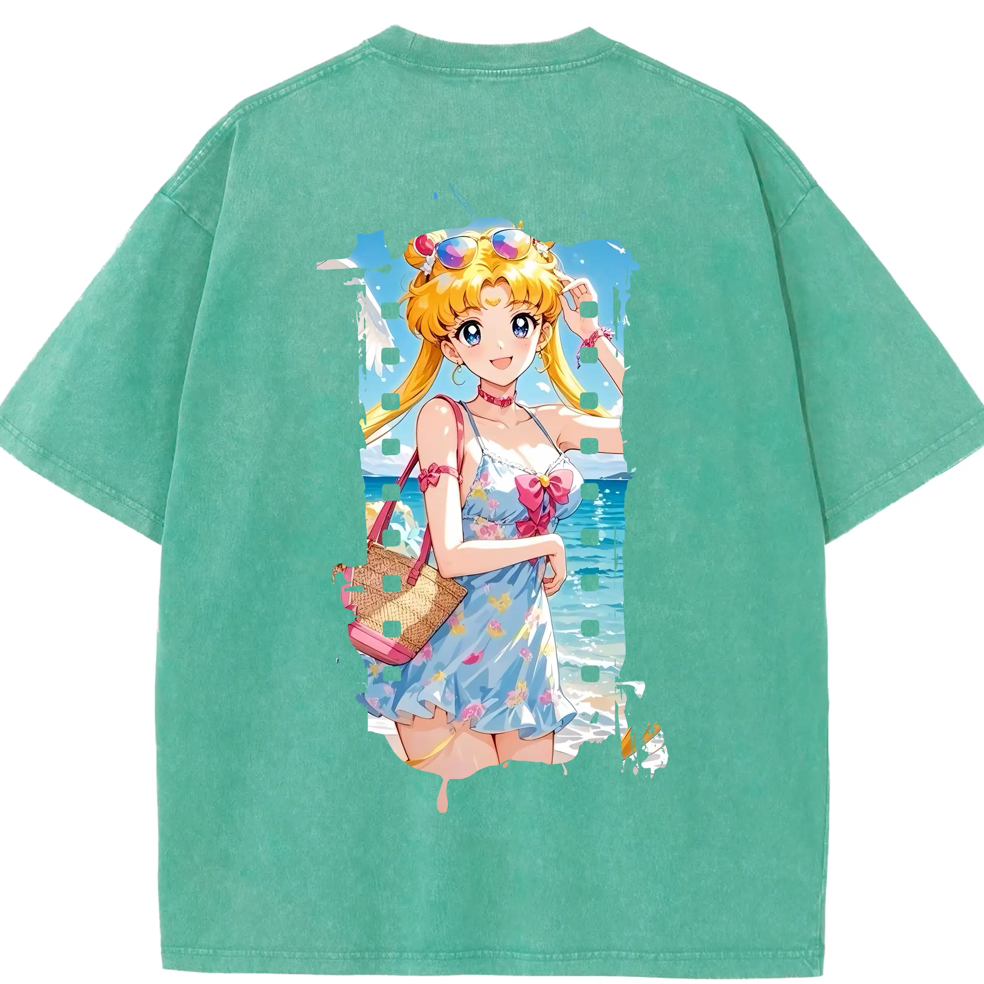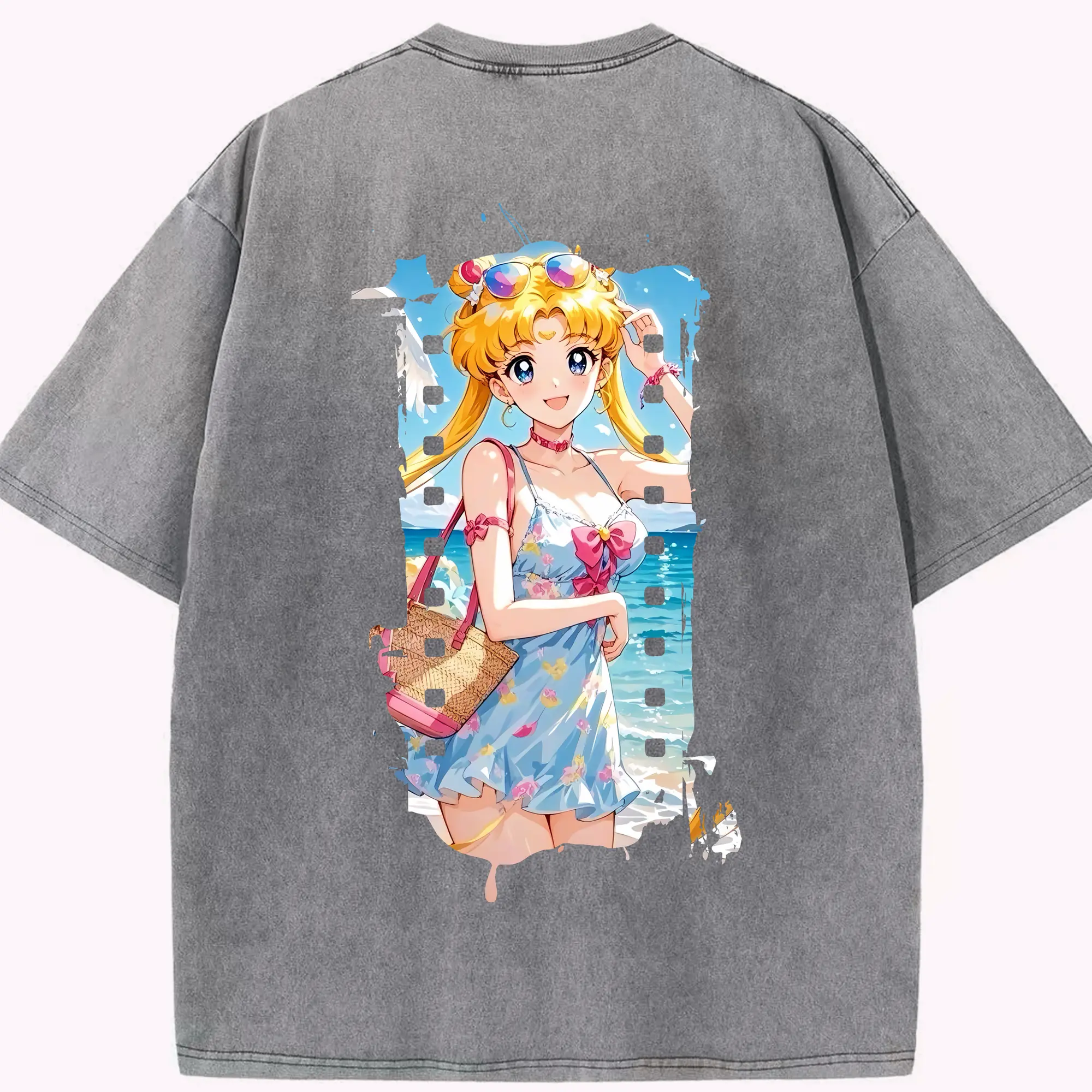 美少女戦士セーラームーン グッズ 月野 うさぎ - 綿100% ヴィンテージ風 半袖Tシャツ ・ フロントプリント ・ 柔らか肌触り ・ 通気性 快適 ・ スポーツ カジュアル 外出用