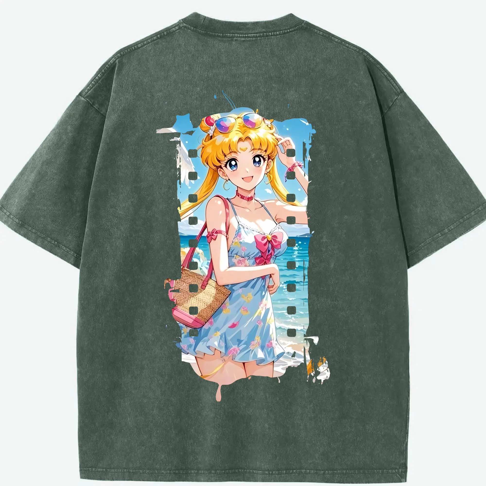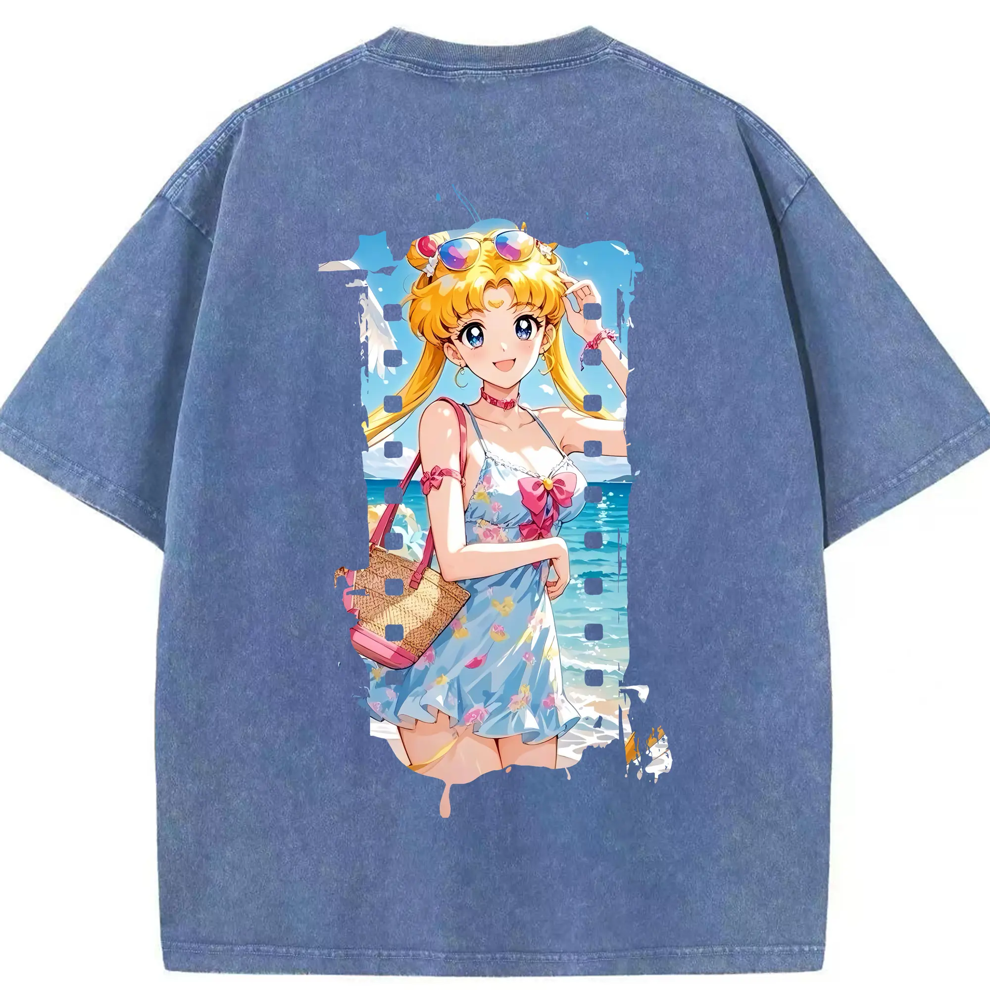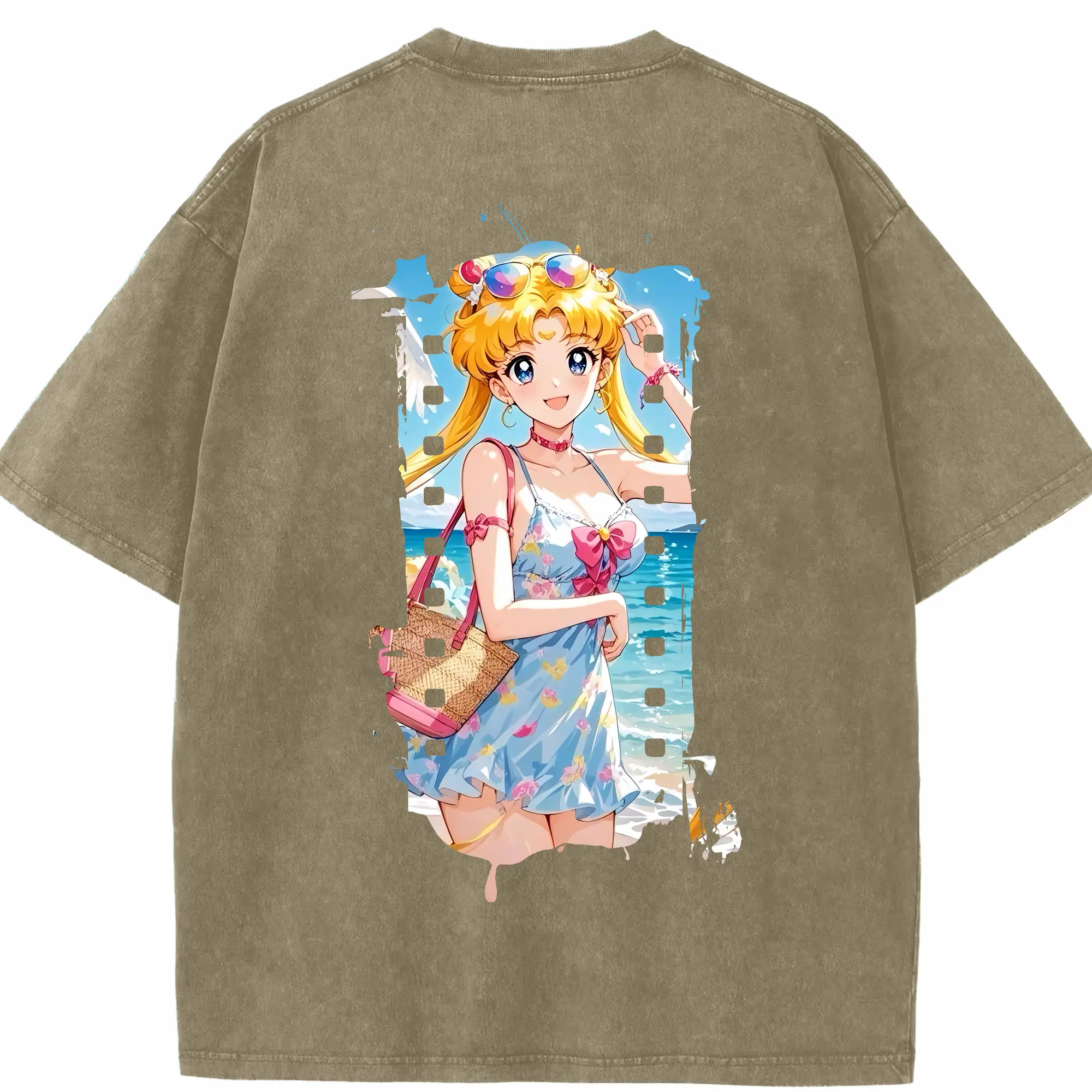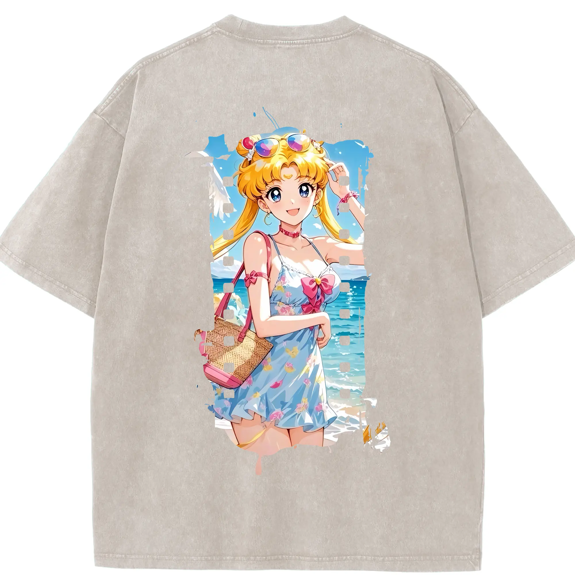 美少女戦士セーラームーン グッズ 月野 うさぎ - 綿100% ヴィンテージ風 半袖Tシャツ ・ フロントプリント ・ 柔らか肌触り ・ 通気性 快適 ・ スポーツ カジュアル 外出用