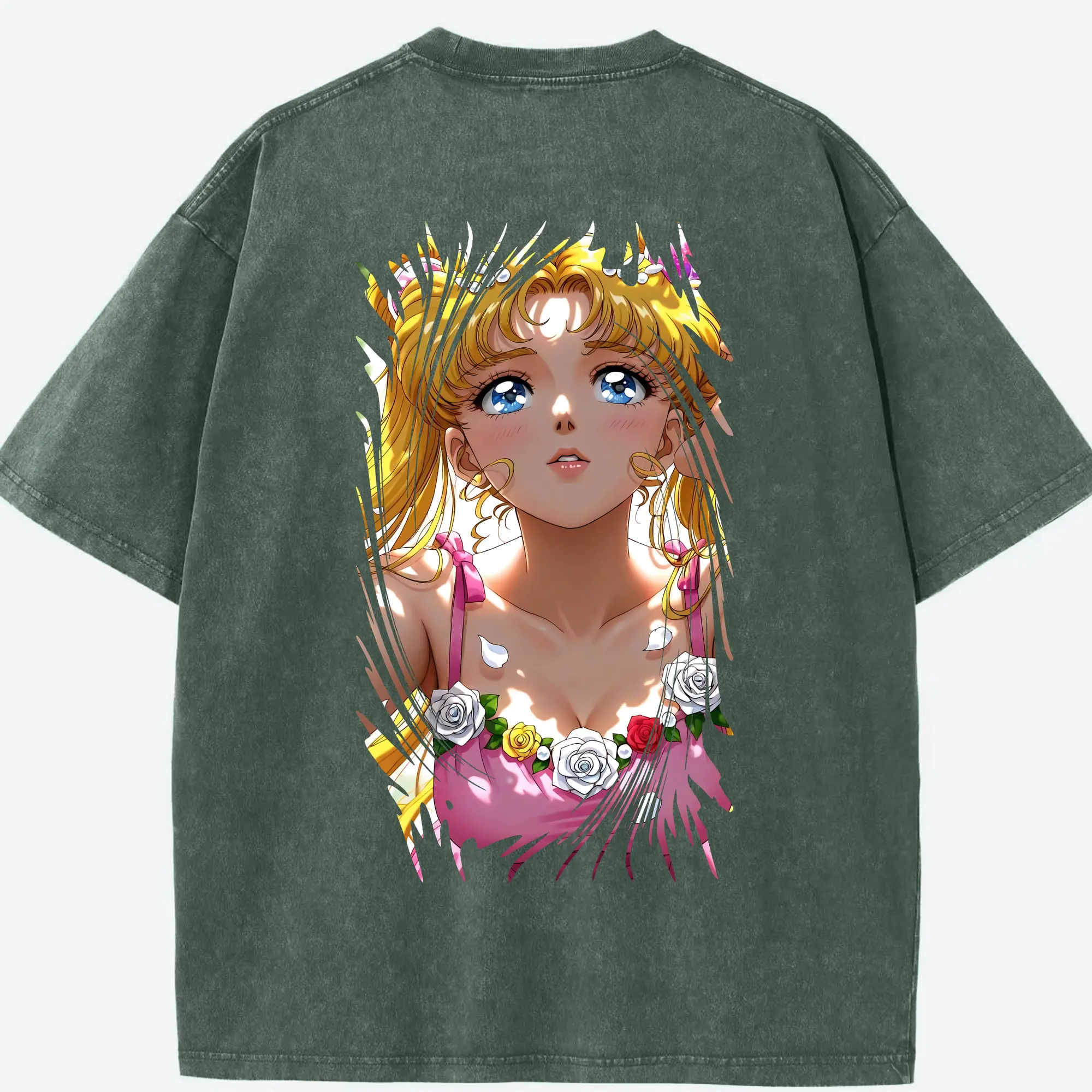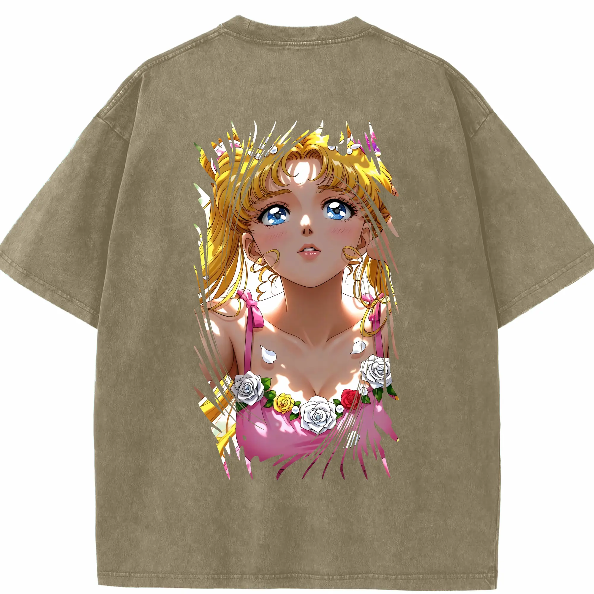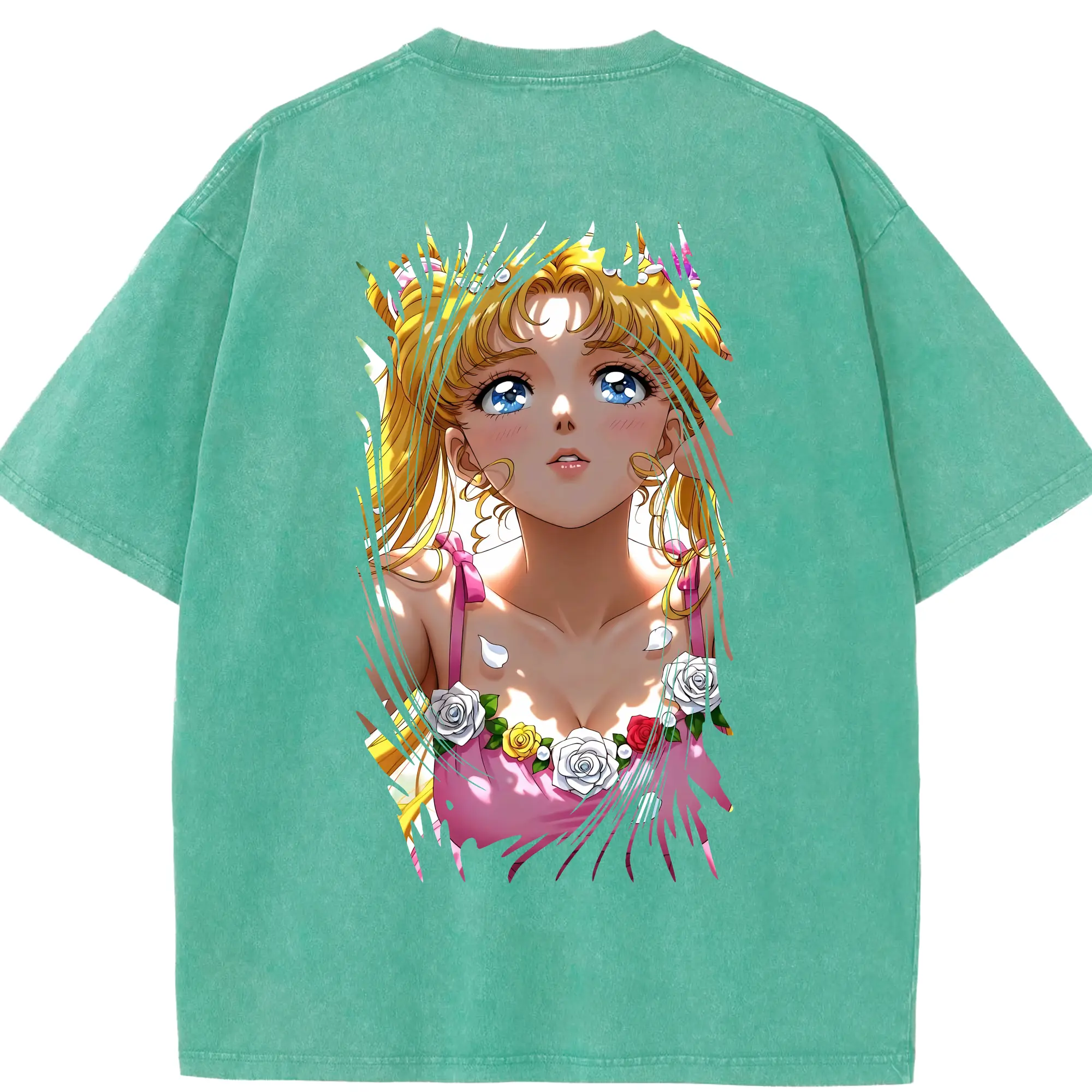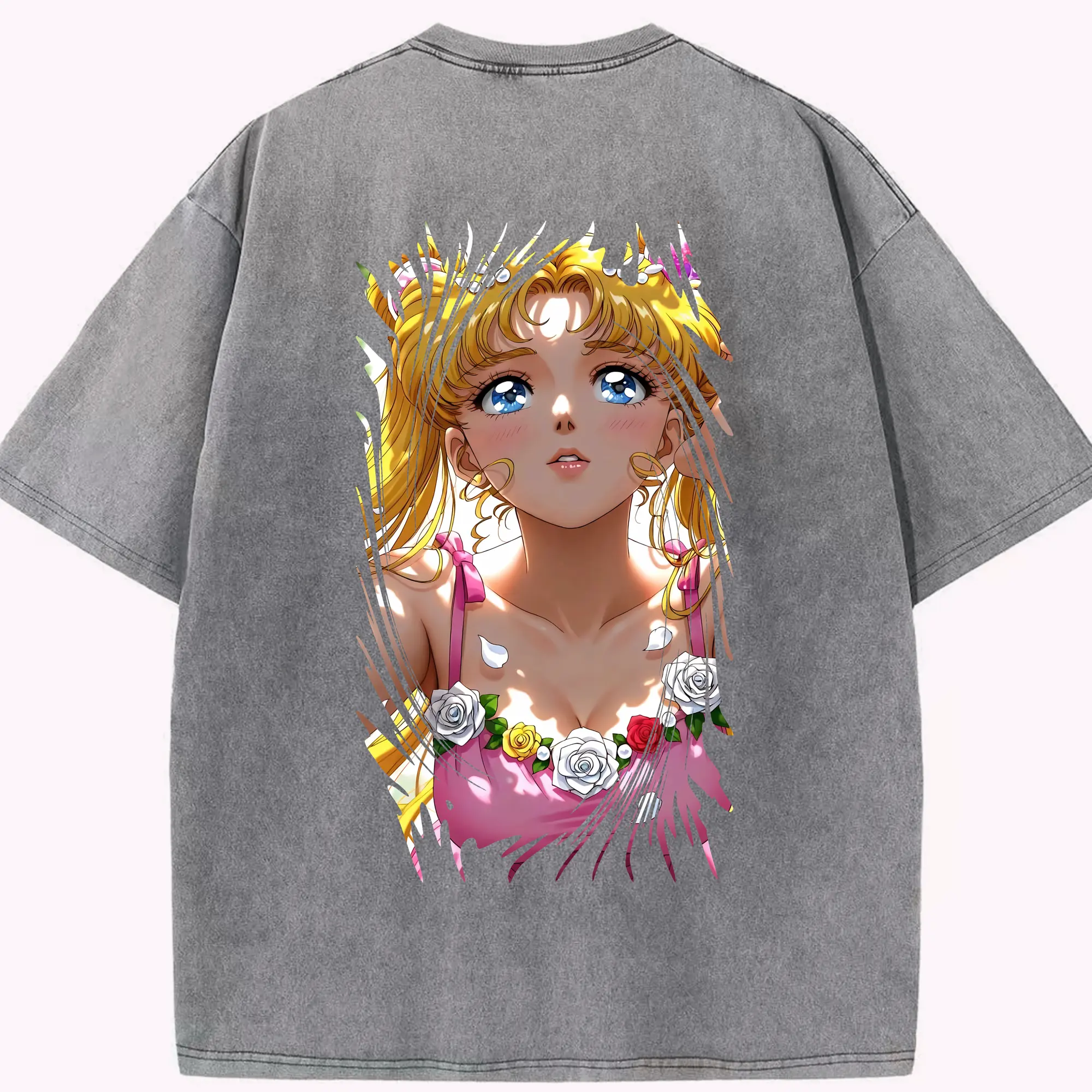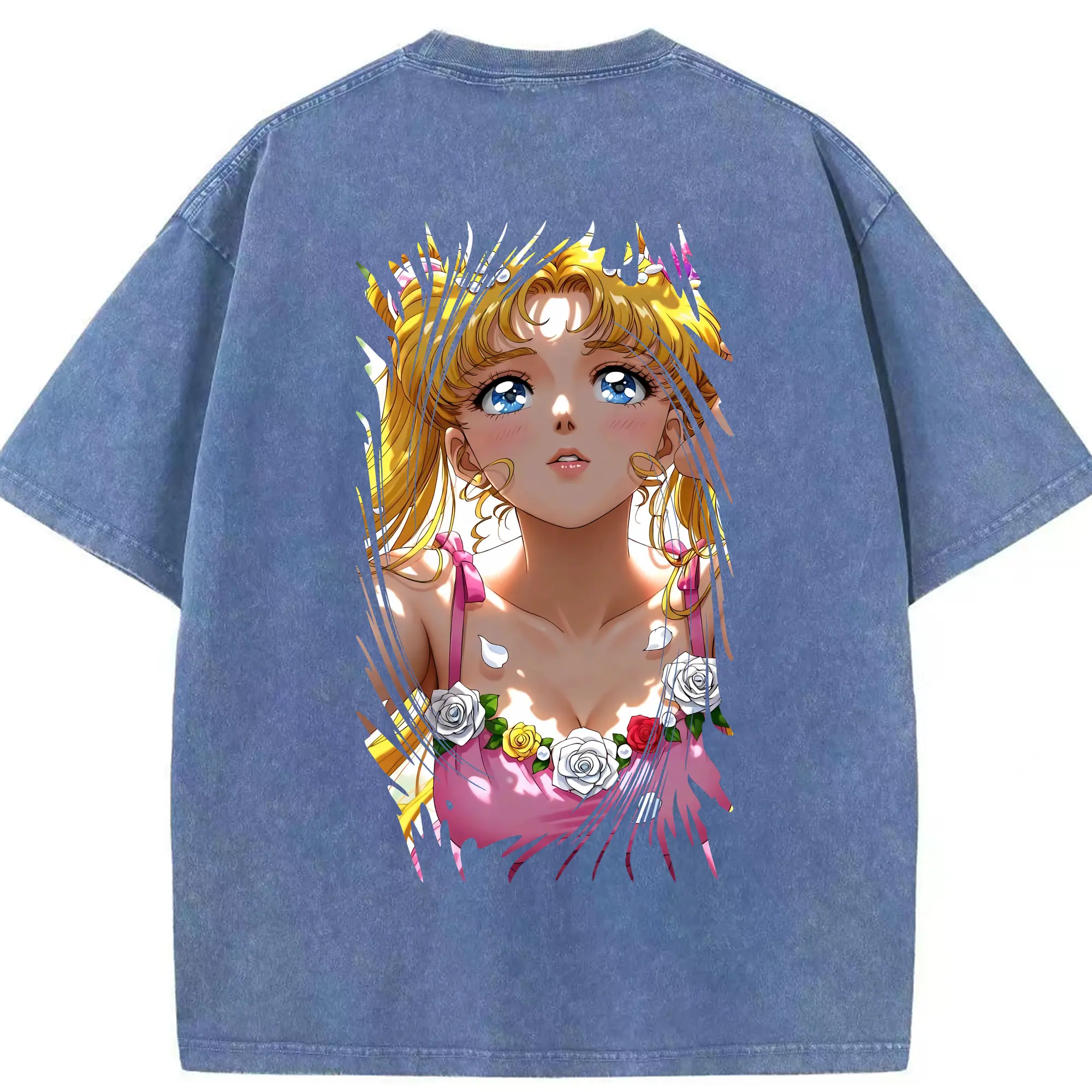 美少女戦士セーラームーン グッズ 月野 うさぎ - 綿100% ヴィンテージ風 半袖Tシャツ ・ フロントプリント ・ 柔らか肌触り ・ 通気性 快適 ・ スポーツ カジュアル 外出用