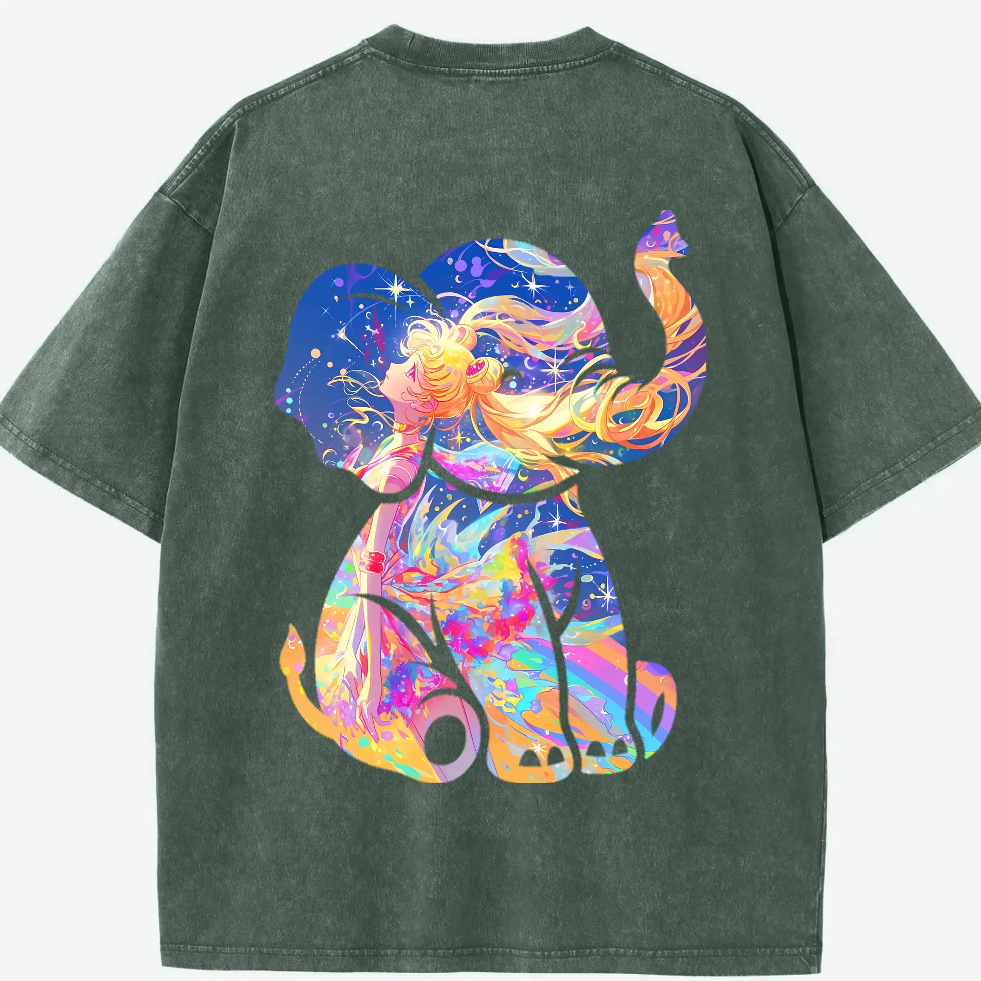 美少女戦士セーラームーン グッズ,ちびうさ - 綿100% ヴィンテージ風 半袖Tシャツ ・ 背面プリント ・ 柔らか肌触り ・ 通気性 快適 ・ スポーツ カジュアル 外出用