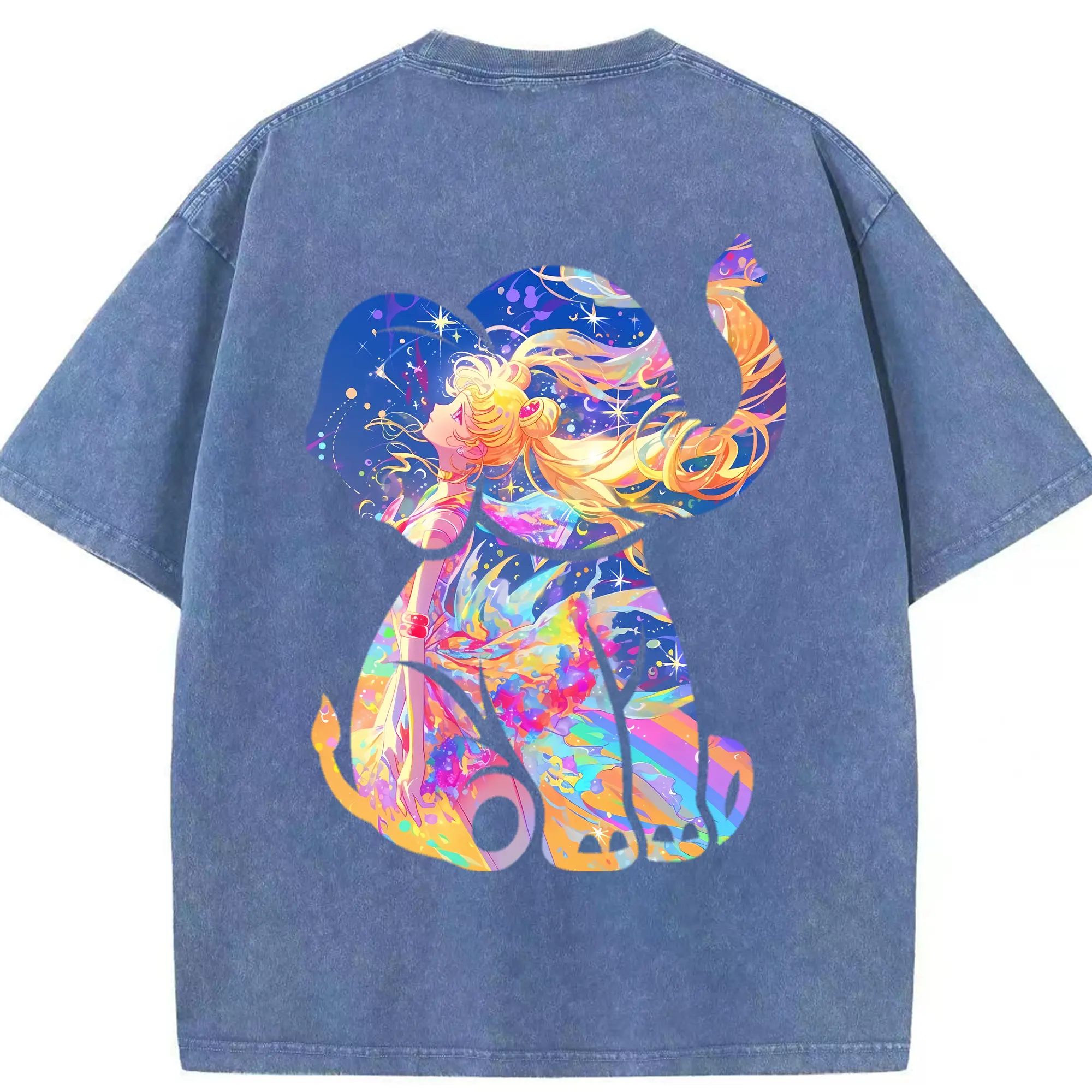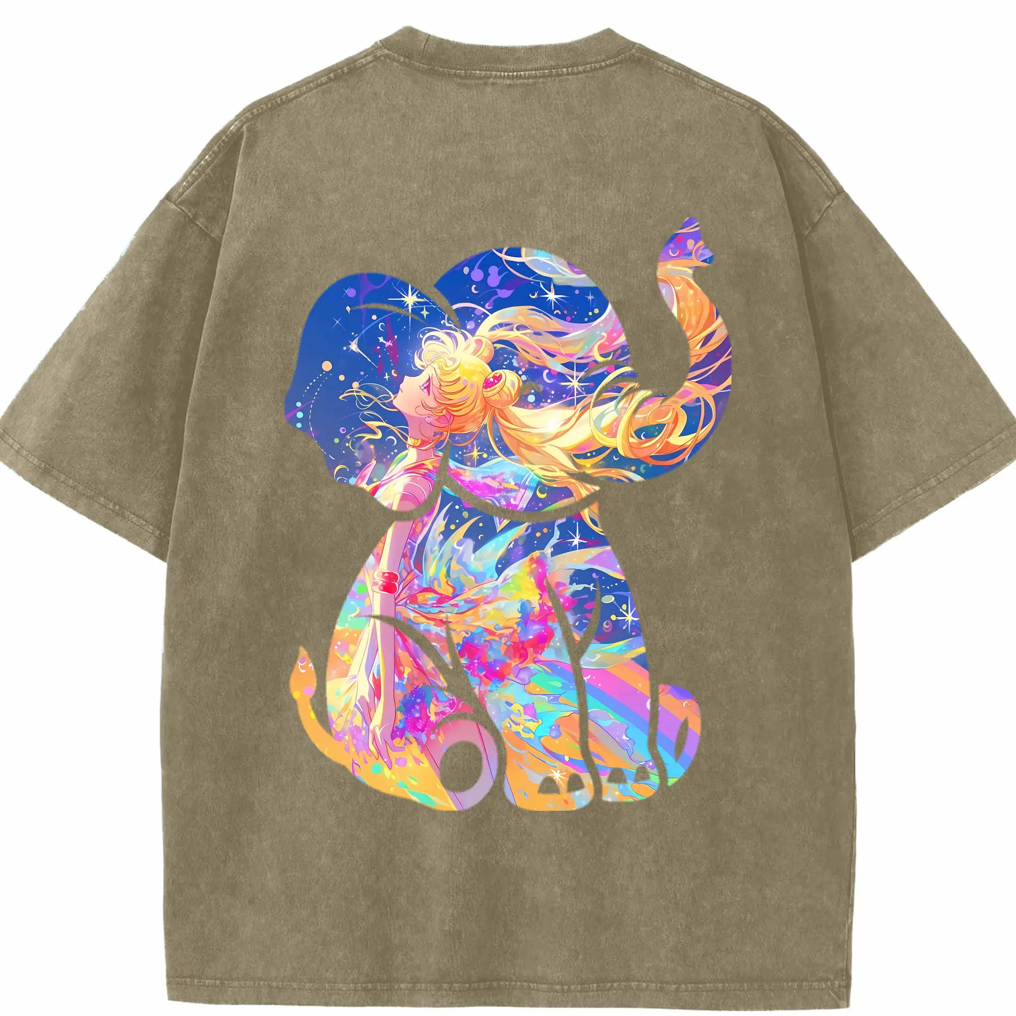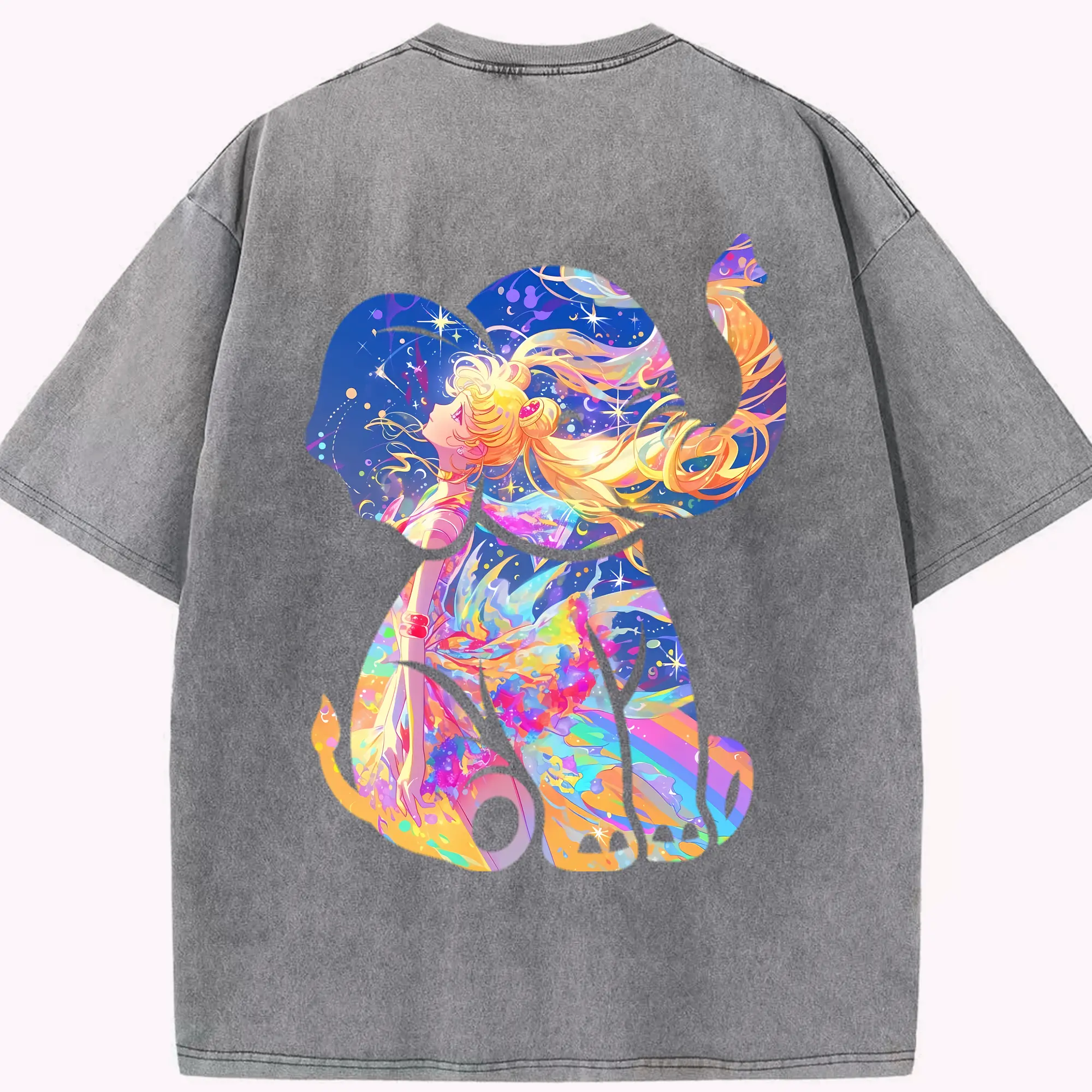 美少女戦士セーラームーン グッズ 月野 うさぎ - 綿100% ヴィンテージ風 半袖Tシャツ ・ フロントプリント ・ 柔らか肌触り ・ 通気性 快適 ・ スポーツ カジュアル 外出用