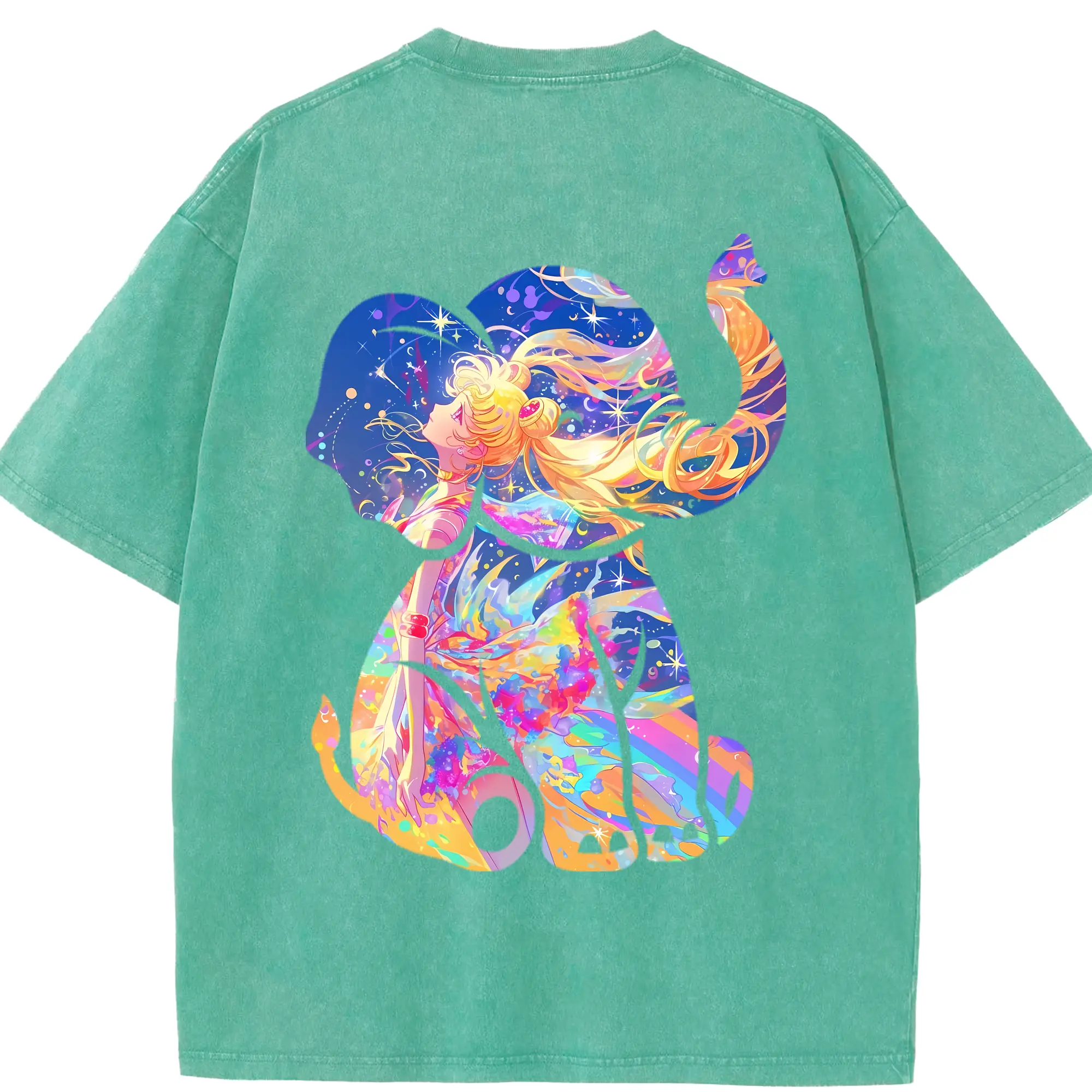 美少女戦士セーラームーン グッズ 月野 うさぎ - 綿100% 半袖Tシャツ ・ バックプリント ・ 快適 通気性 ・ 日常使い 散歩 スポーツ用