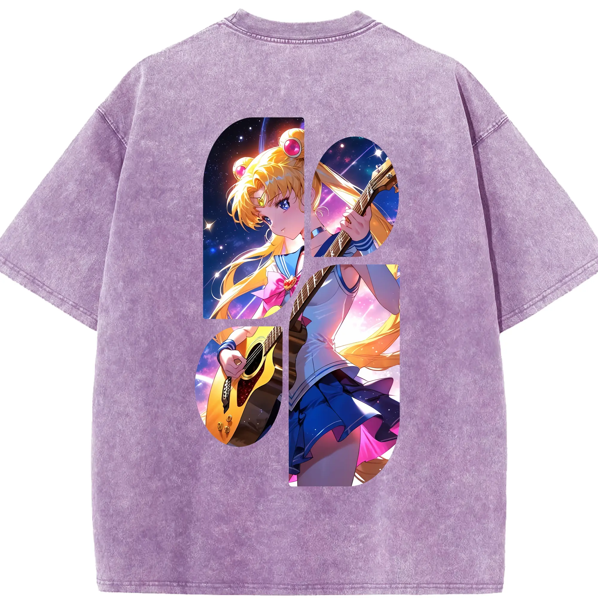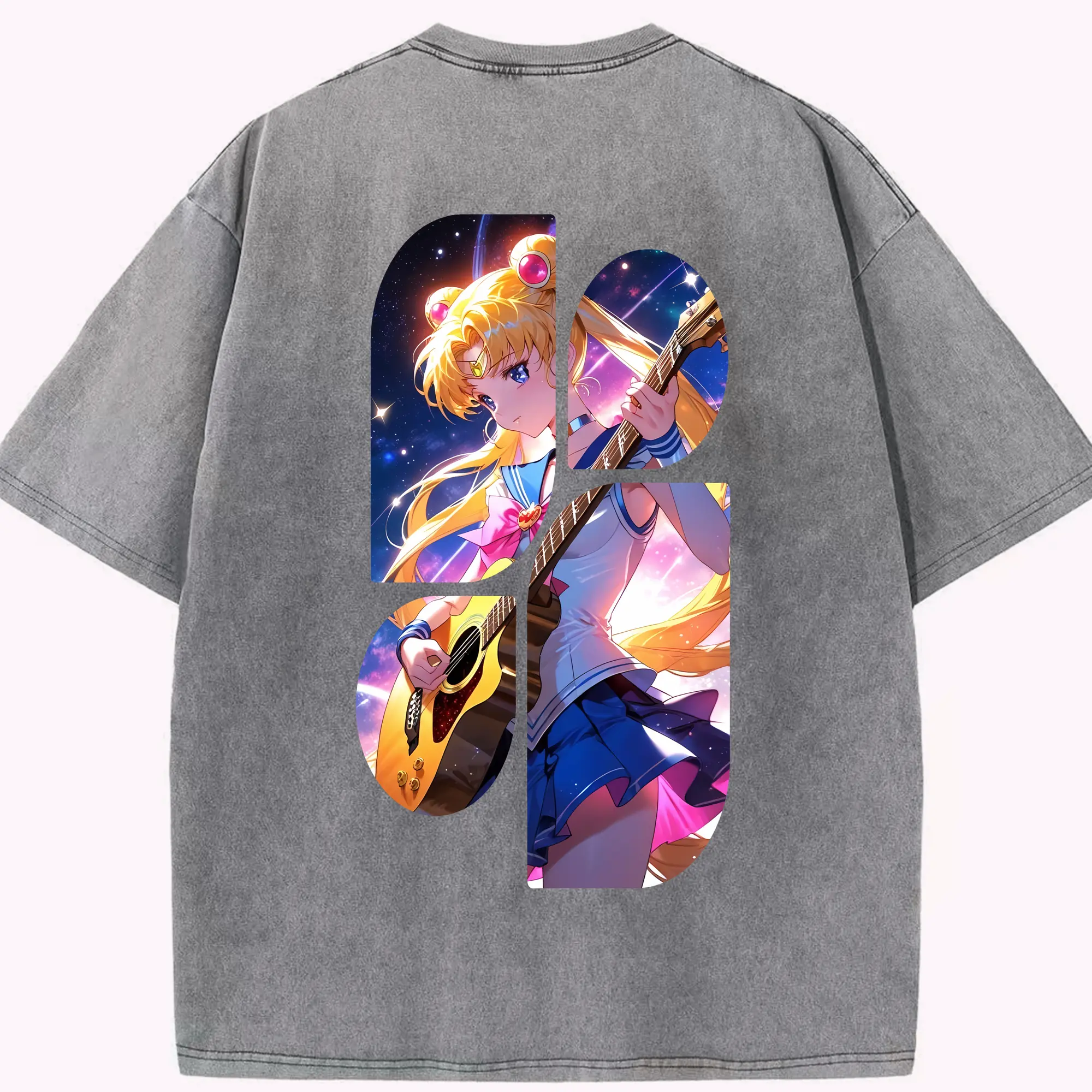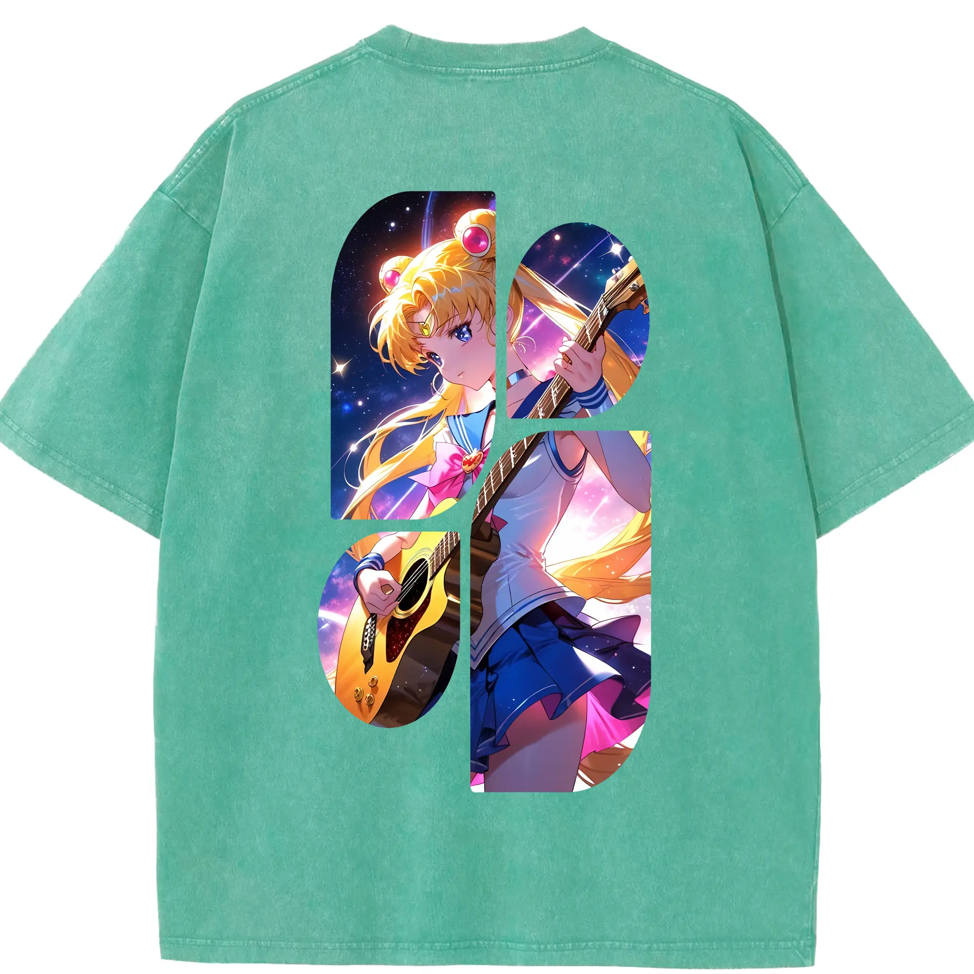 美少女戦士セーラームーン グッズ 月野 うさぎ - 綿100% ヴィンテージ風 半袖Tシャツ ・ フロントプリント ・ 柔らか肌触り ・ 通気性 快適 ・ スポーツ カジュアル 外出用