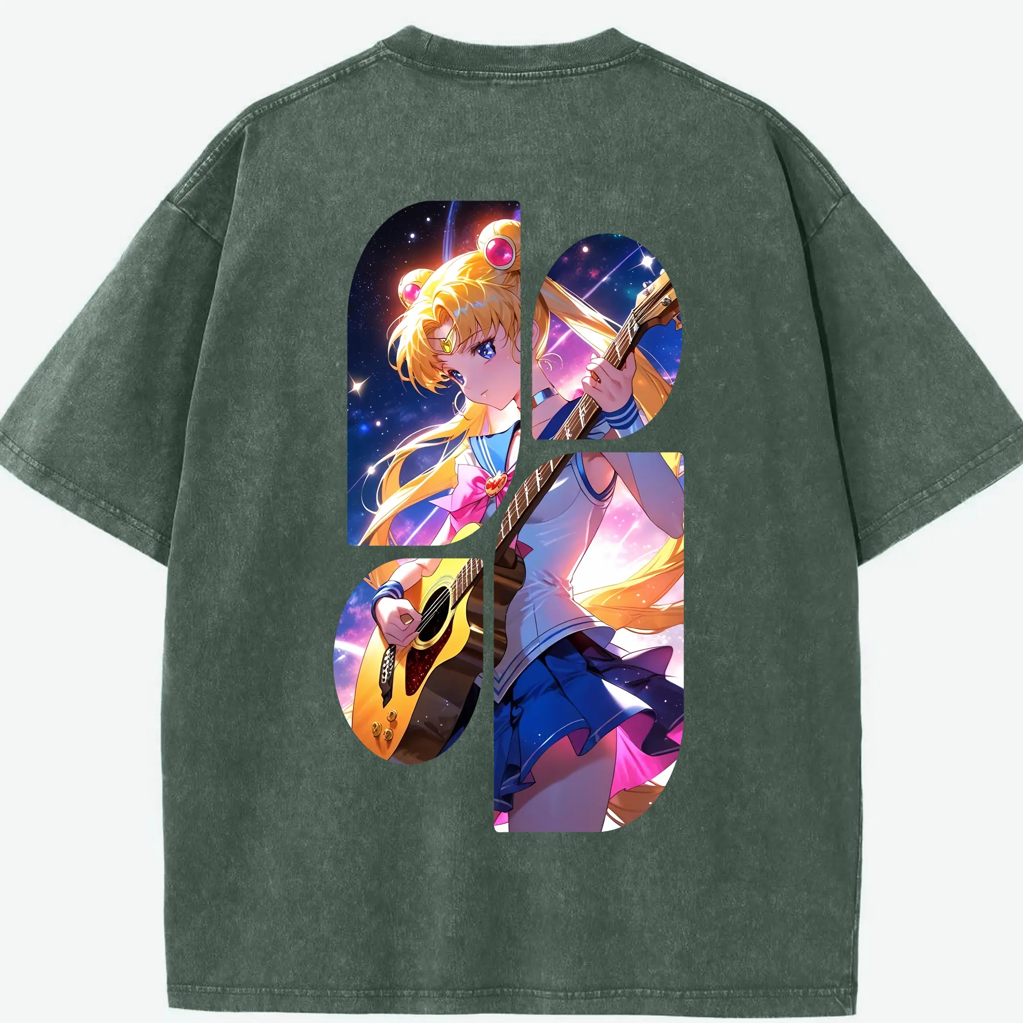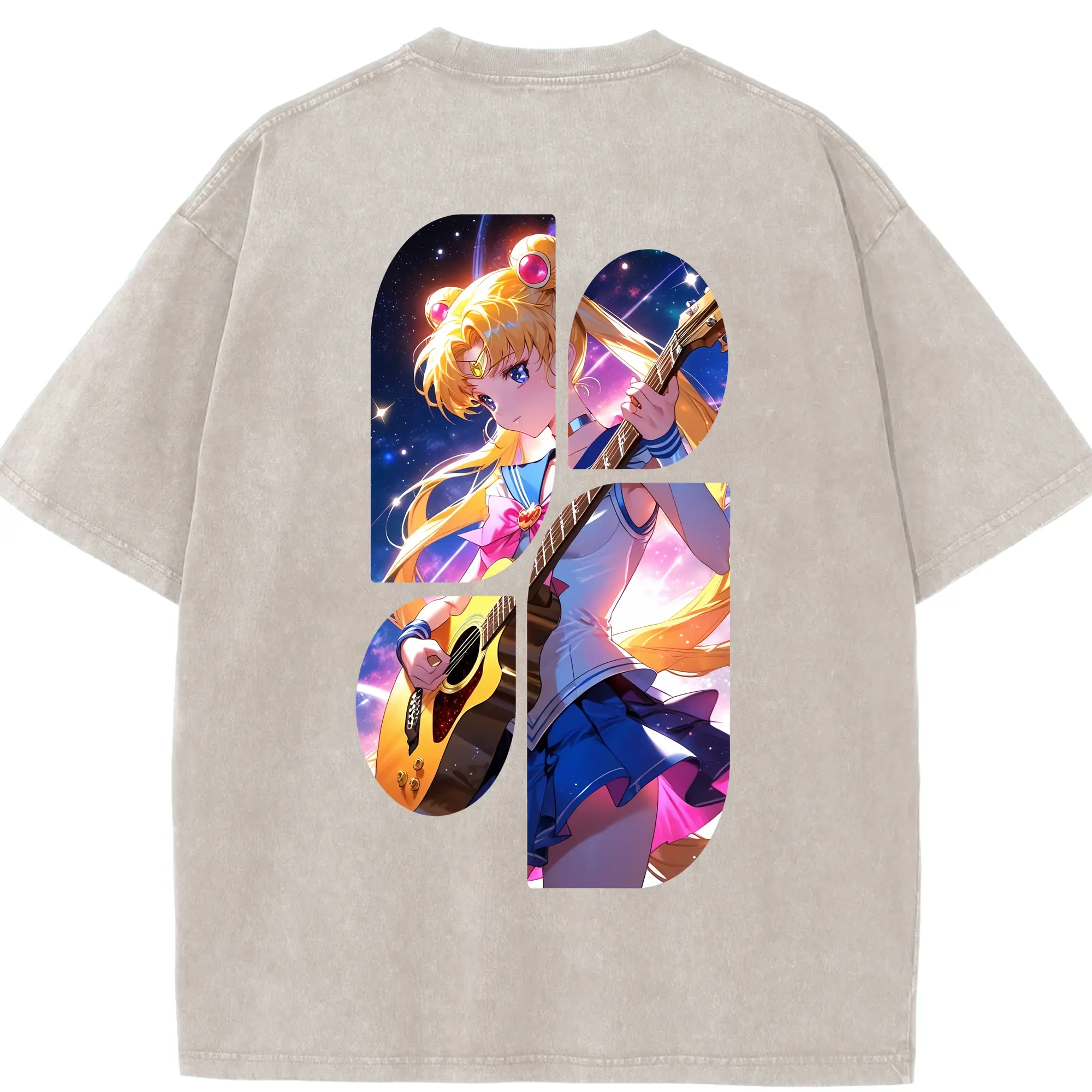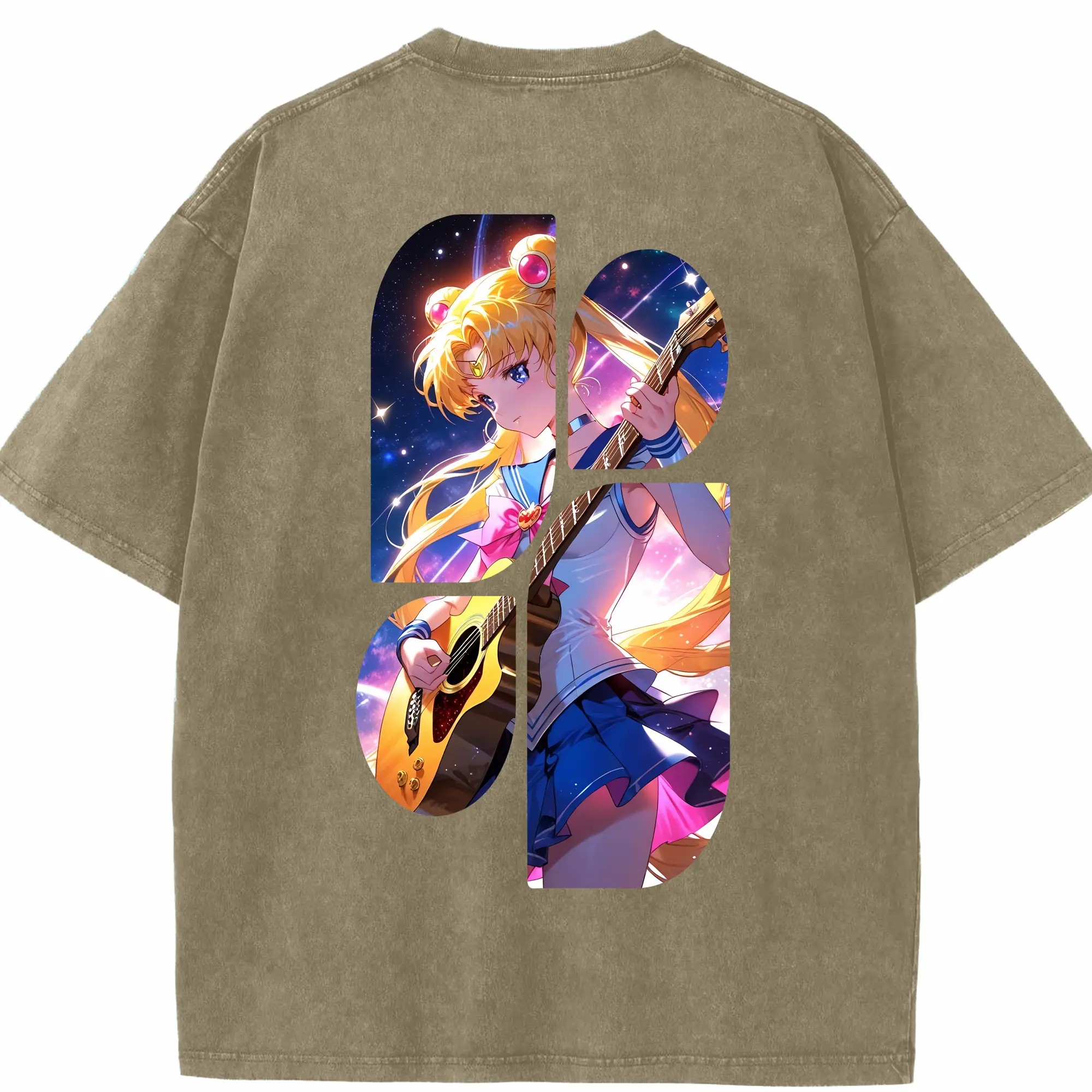 美少女戦士セーラームーン グッズ 月野 うさぎ - 綿100% ヴィンテージ風 半袖Tシャツ ・ フロントプリント ・ 柔らか肌触り ・ 通気性 快適 ・ スポーツ カジュアル 外出用