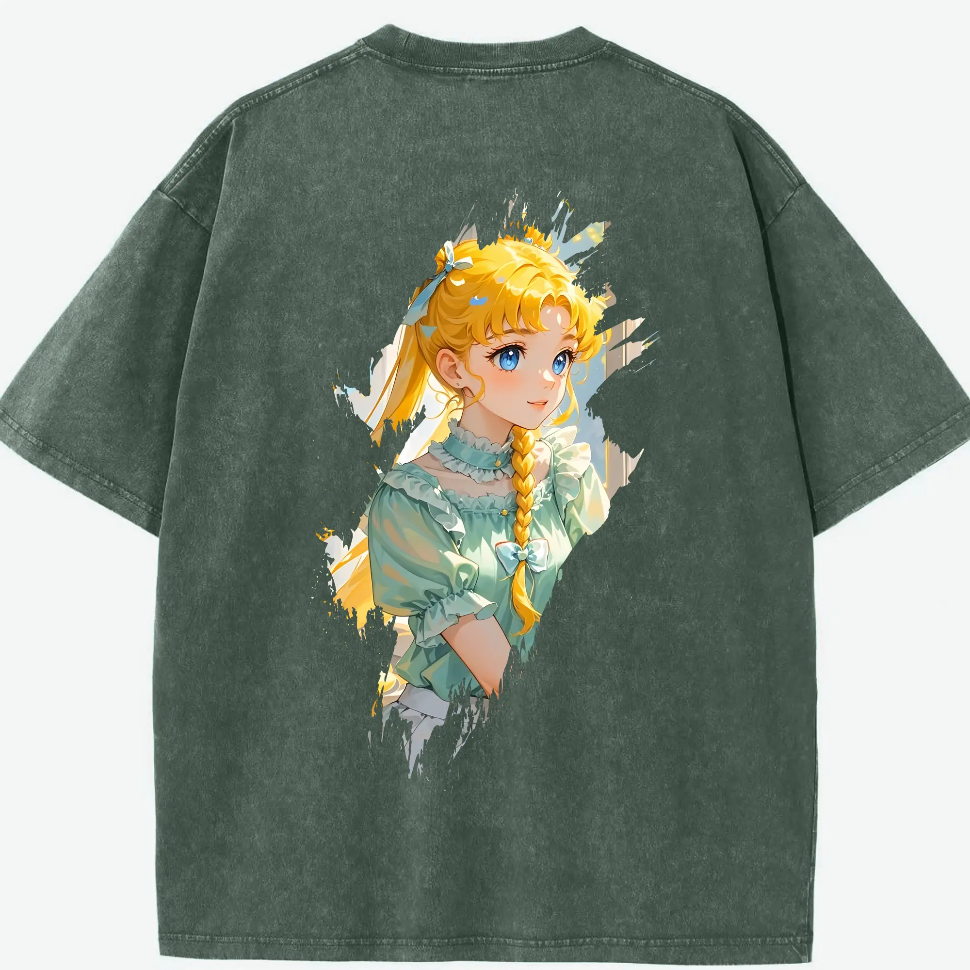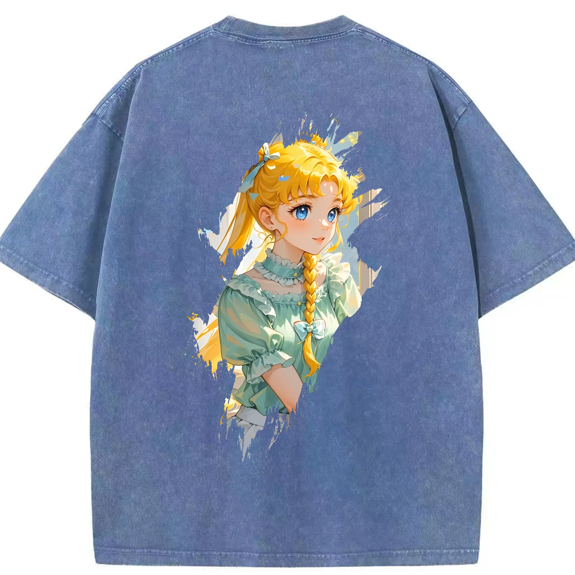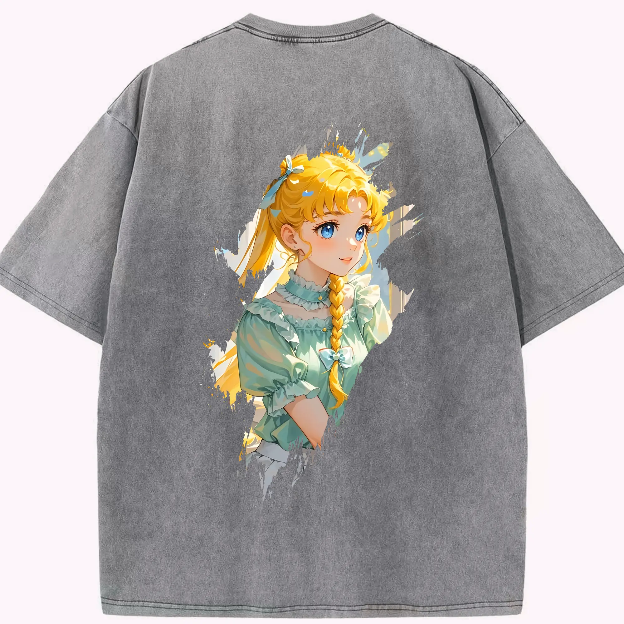美少女戦士セーラームーン グッズ 月野 うさぎ - 綿100% ヴィンテージ風 半袖Tシャツ ・ フロントプリント ・ 柔らか肌触り ・ 通気性 快適 ・ スポーツ カジュアル 外出用