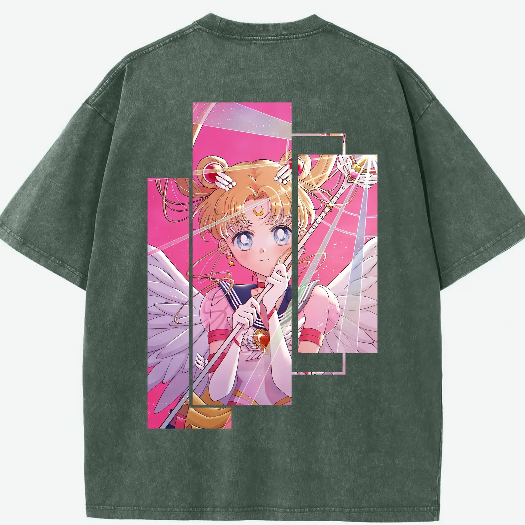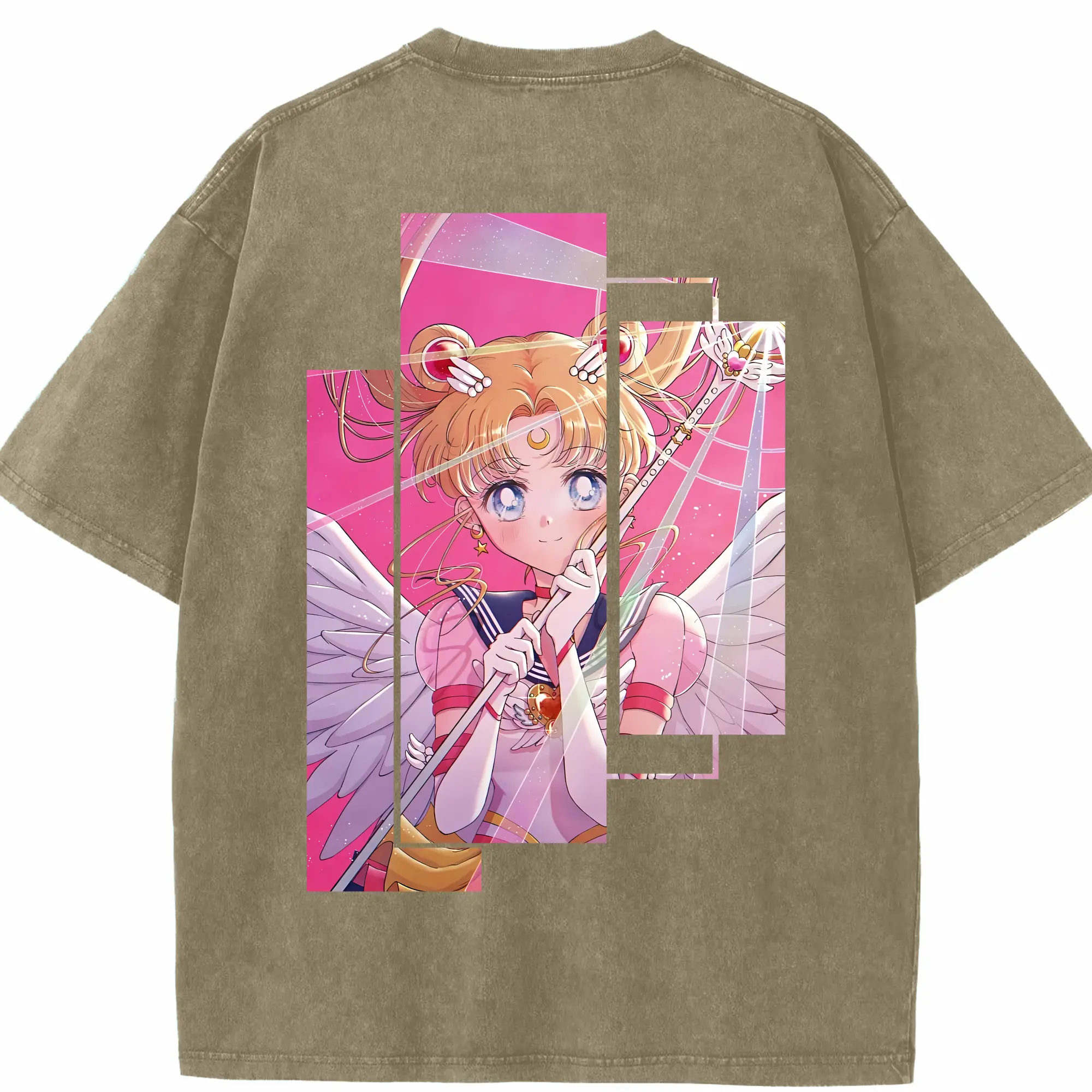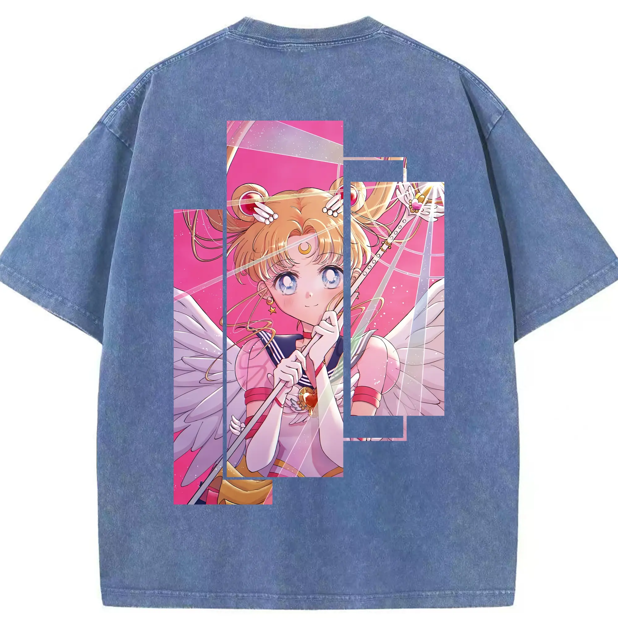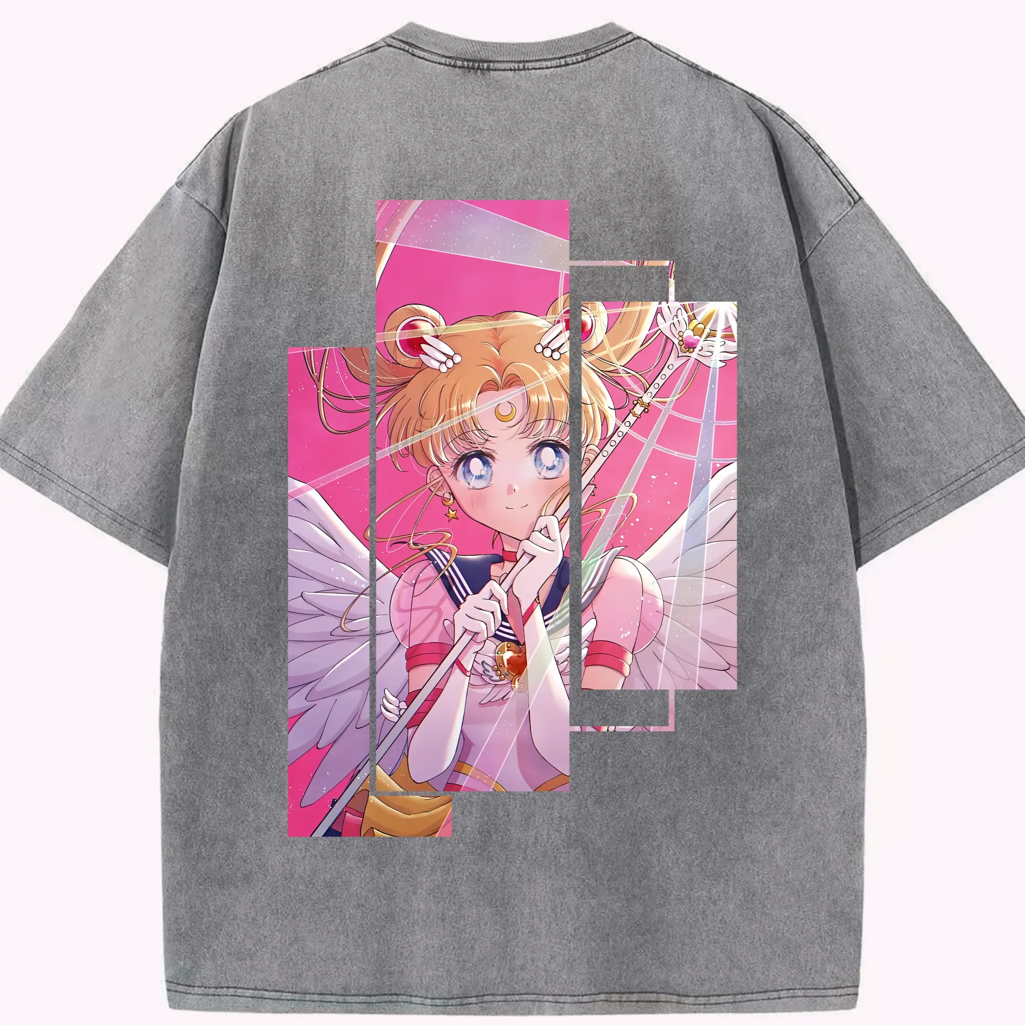 美少女戦士セーラームーン グッズ 月野 うさぎ - 綿100% ヴィンテージ風 半袖Tシャツ ・ フロントプリント ・ 柔らか肌触り ・ 通気性 快適 ・ スポーツ カジュアル 外出用