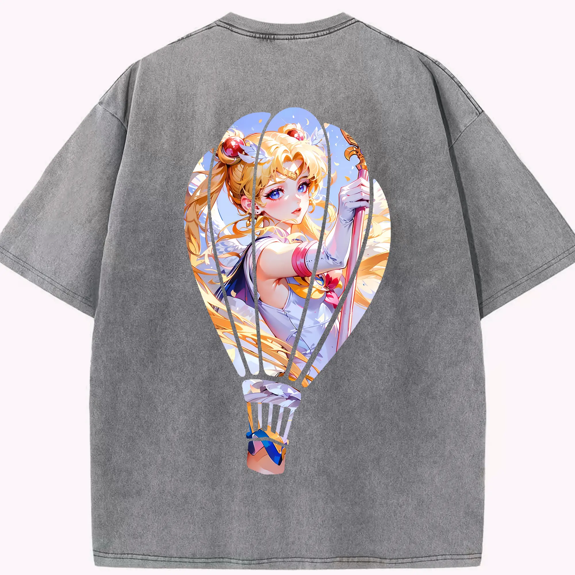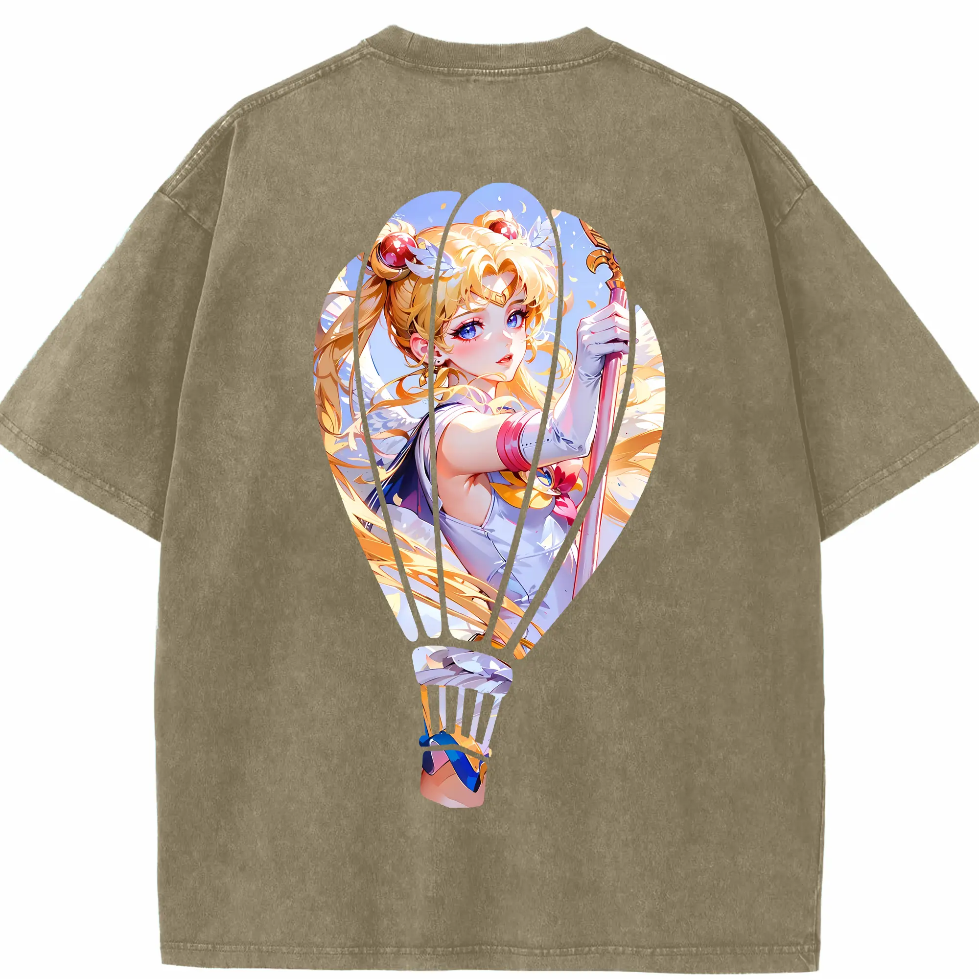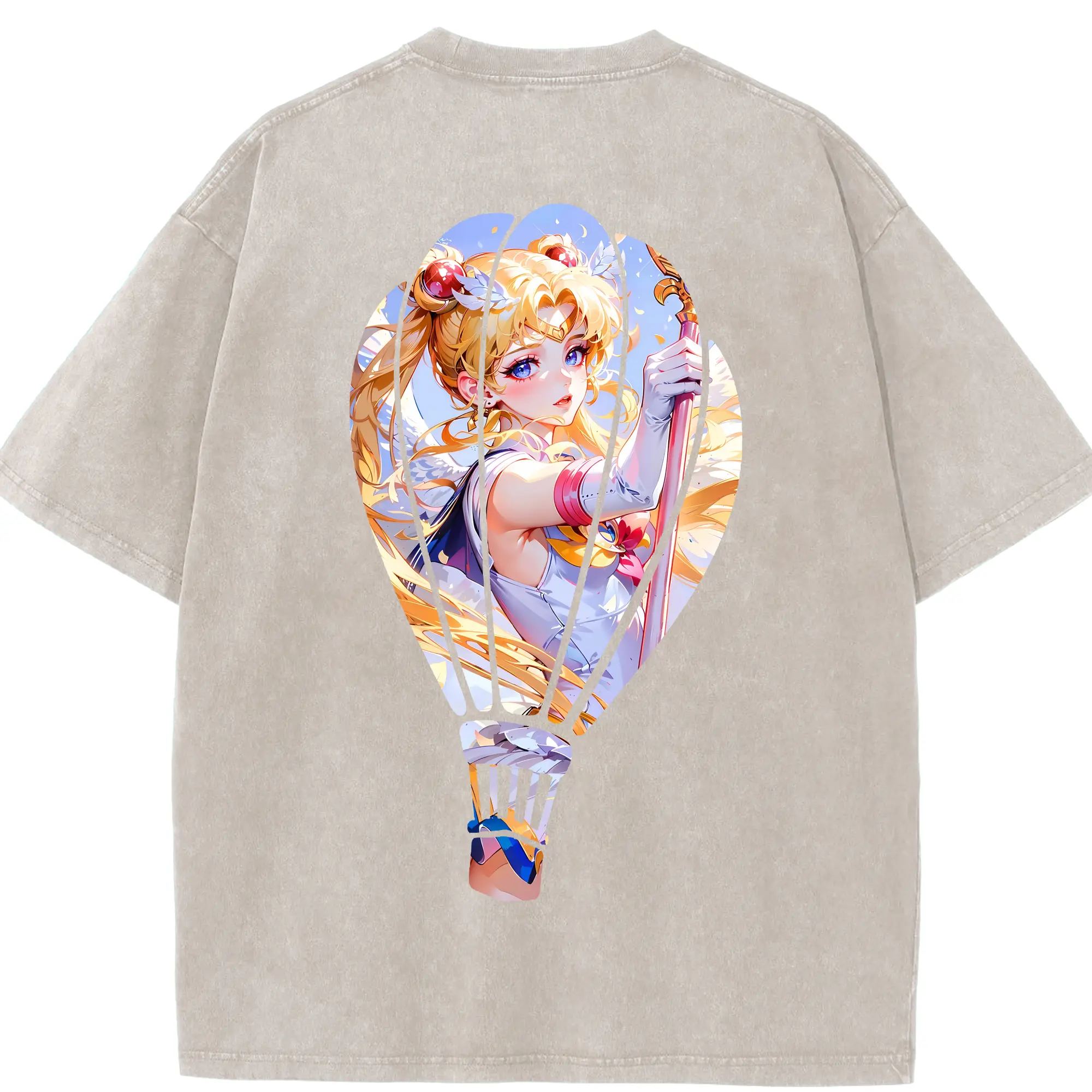 美少女戦士セーラームーン グッズ 月野 うさぎ - 綿100% ヴィンテージ風 半袖Tシャツ ・ フロントプリント ・ 柔らか肌触り ・ 通気性 快適 ・ スポーツ カジュアル 外出用