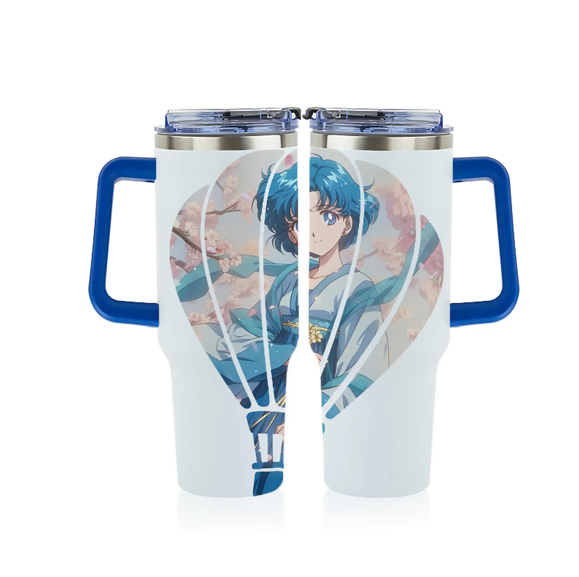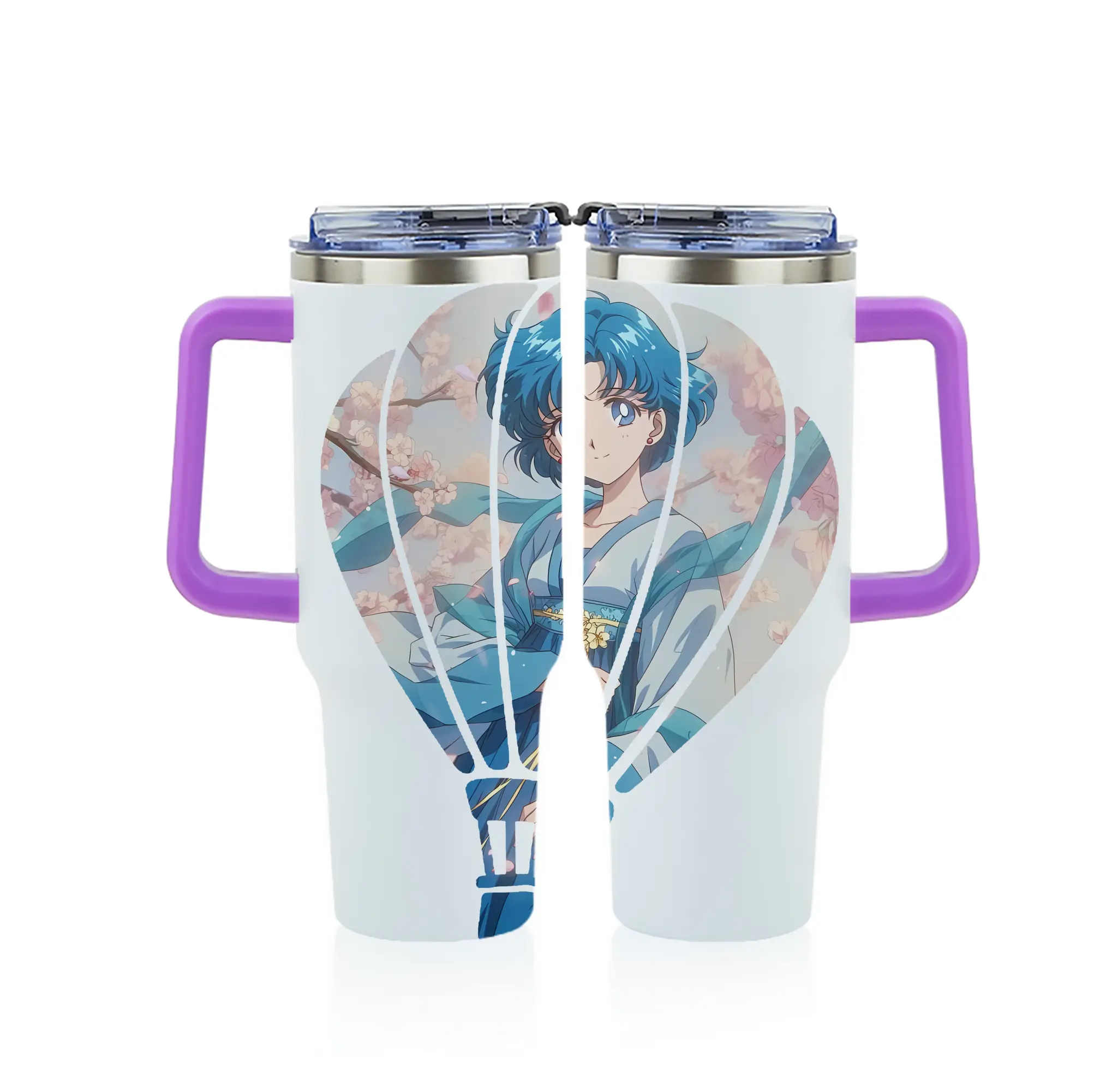 美少女戦士セーラームーン グッズ 水野 亜美 - 綿100% 半袖Tシャツ ・ フロントプリント ・ 快適 通気性 ・ 日常使い 散歩 スポーツ用