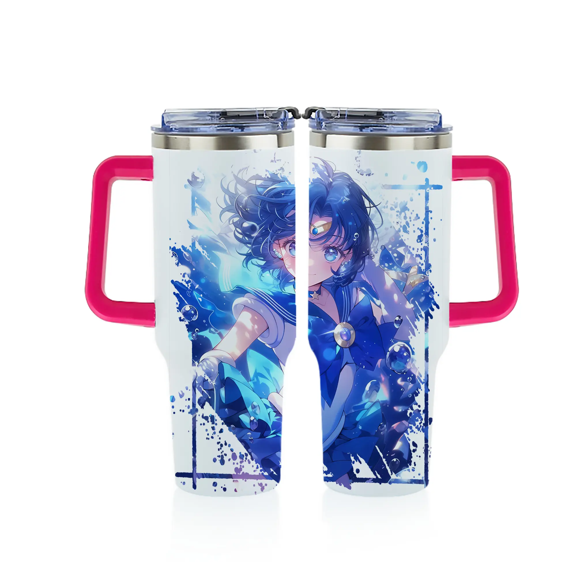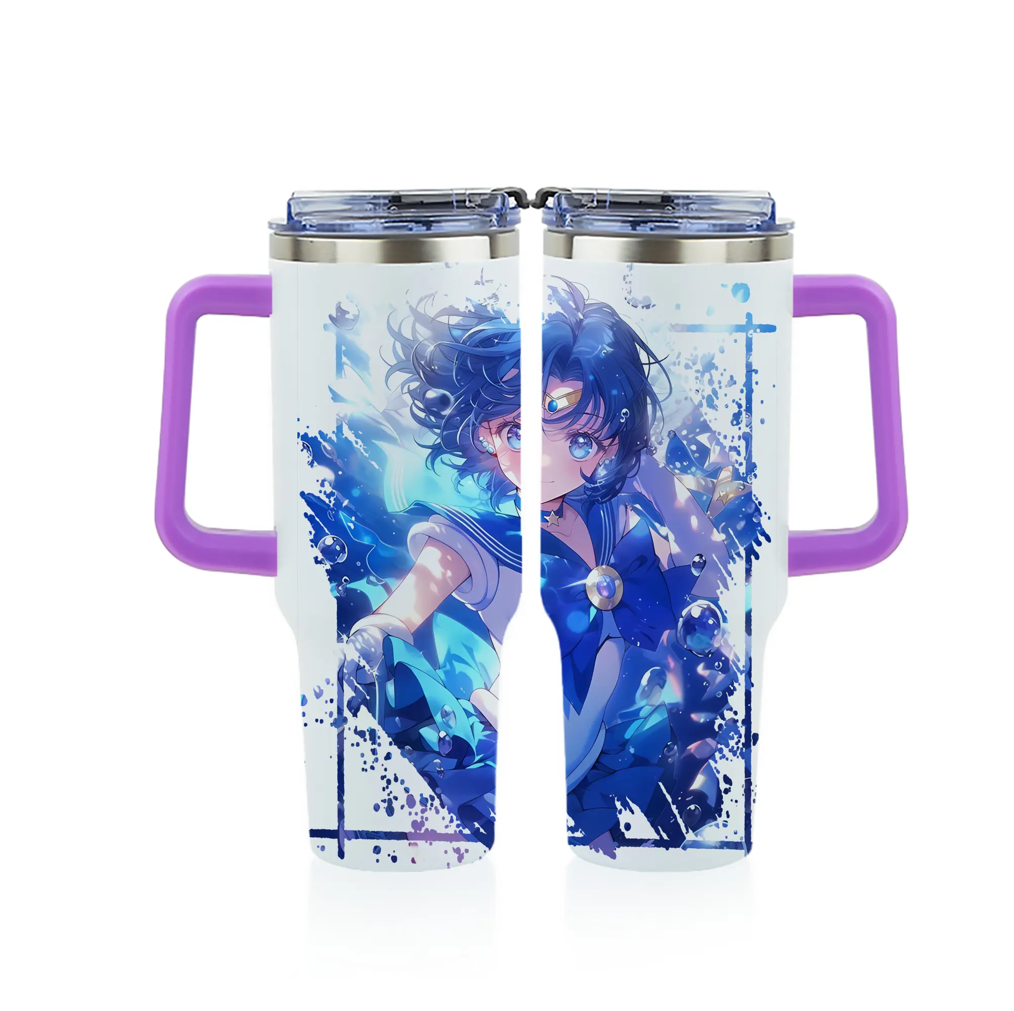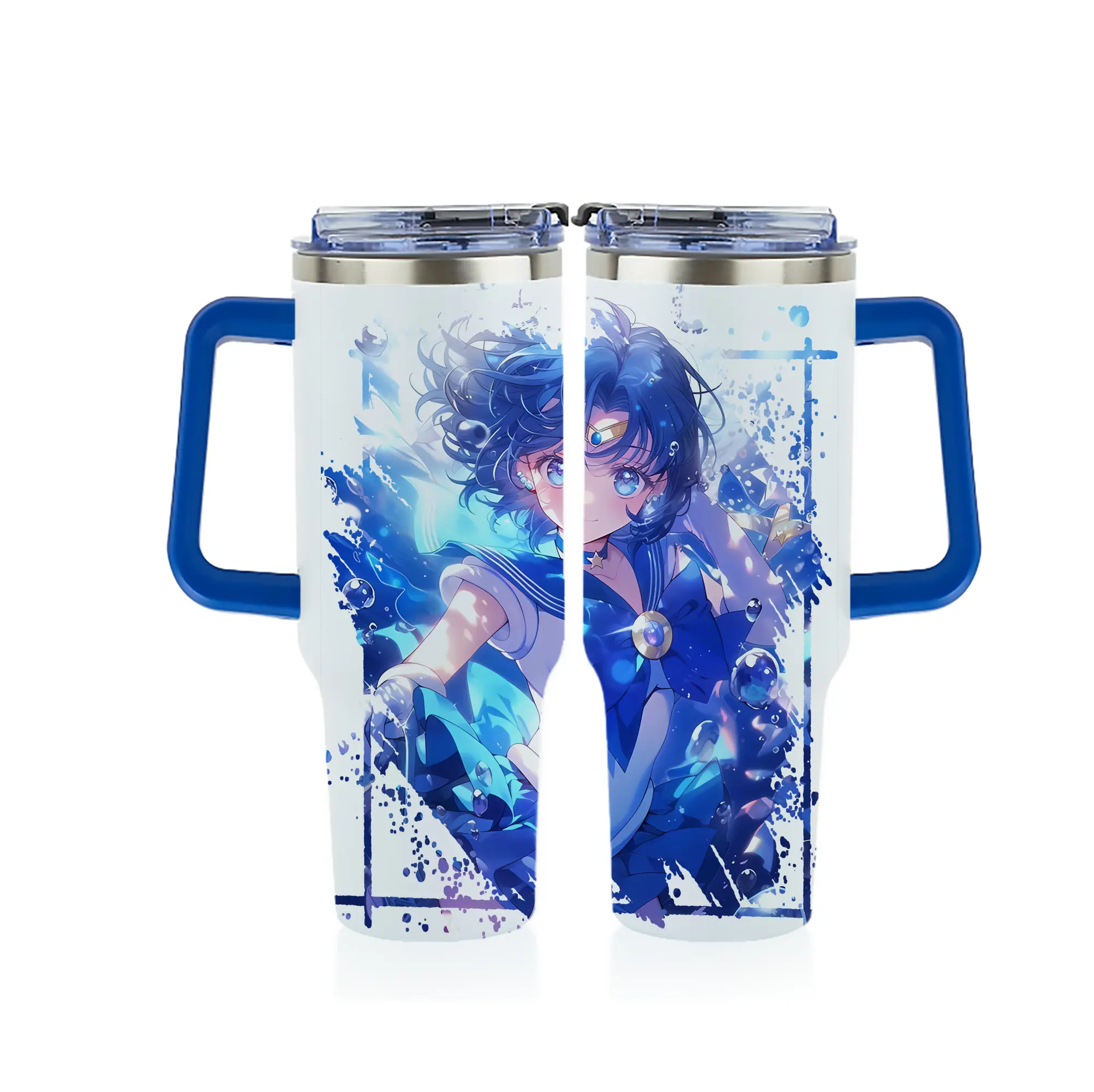 美少女戦士セーラームーン グッズ 水野 亜美 - 1200mL フルプリント車用タンブラー ・ 304ステンレス 内側 ・ 201ステンレス 外側 ・ 保温 保冷 ・ 通勤 ドライブ アウトドア用