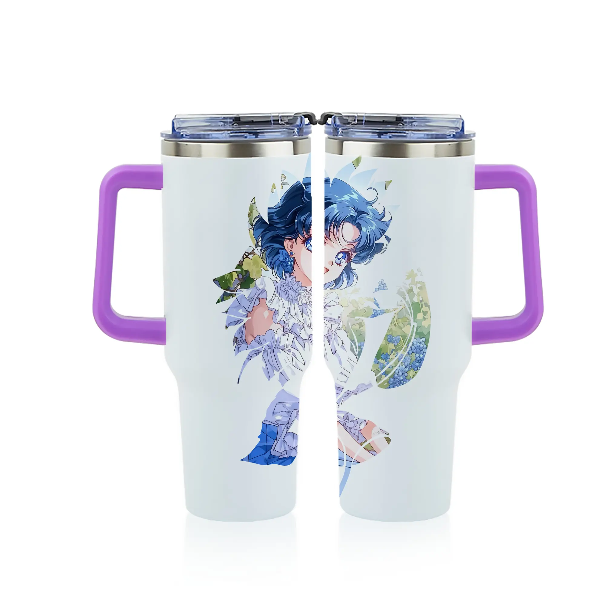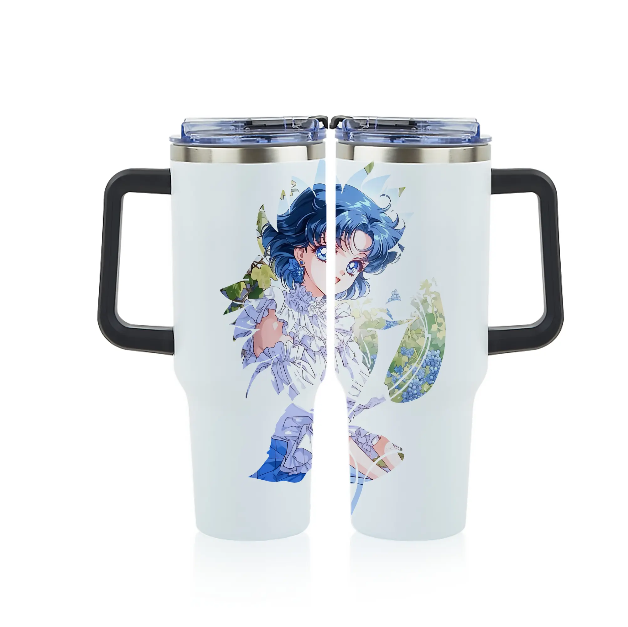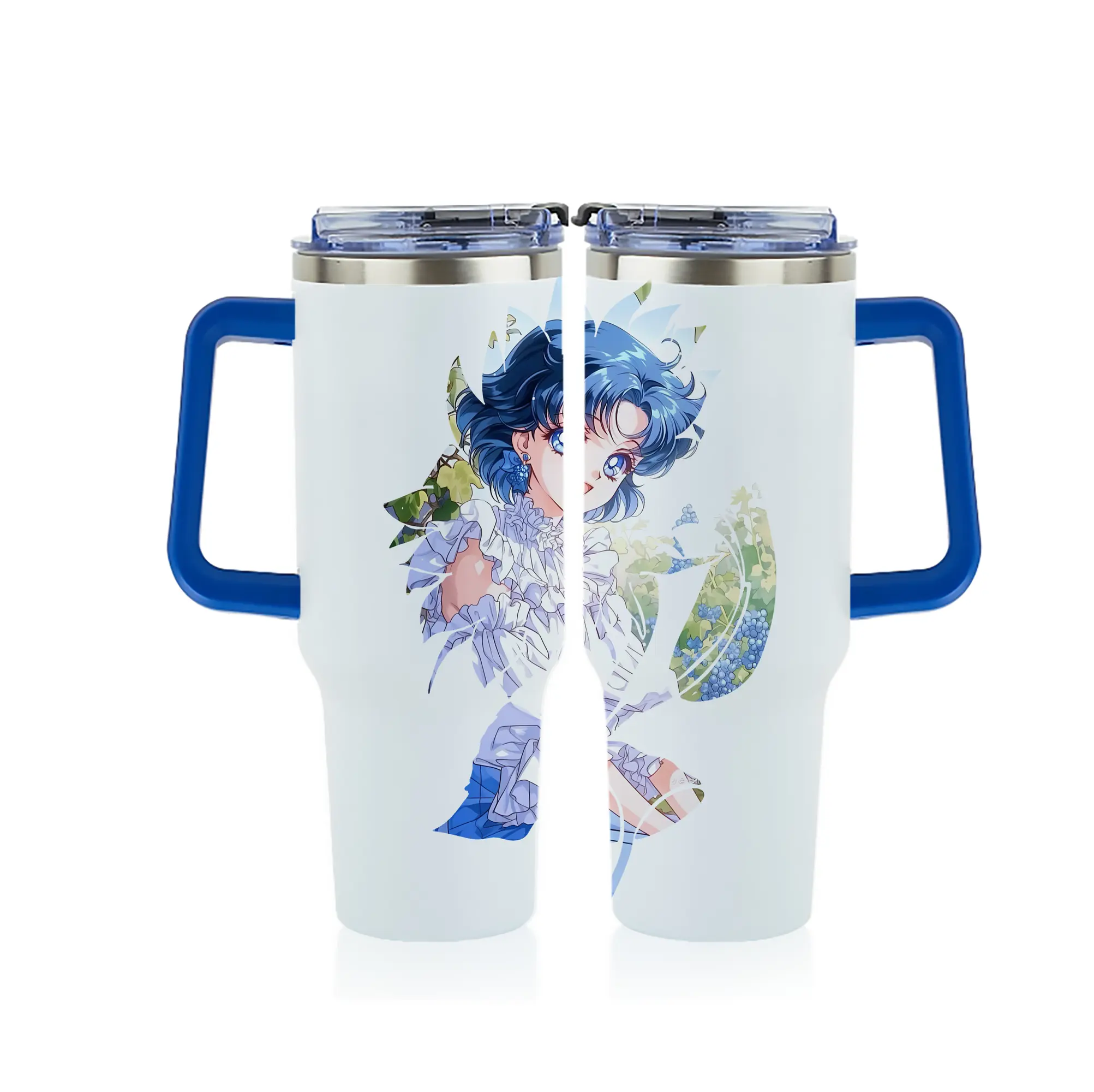 美少女戦士セーラームーン グッズ 水野 亜美 - 1200mL フルプリント車用タンブラー ・ 304ステンレス 内側 ・ 201ステンレス 外側 ・ 保温 保冷 ・ 通勤 ドライブ アウトドア用