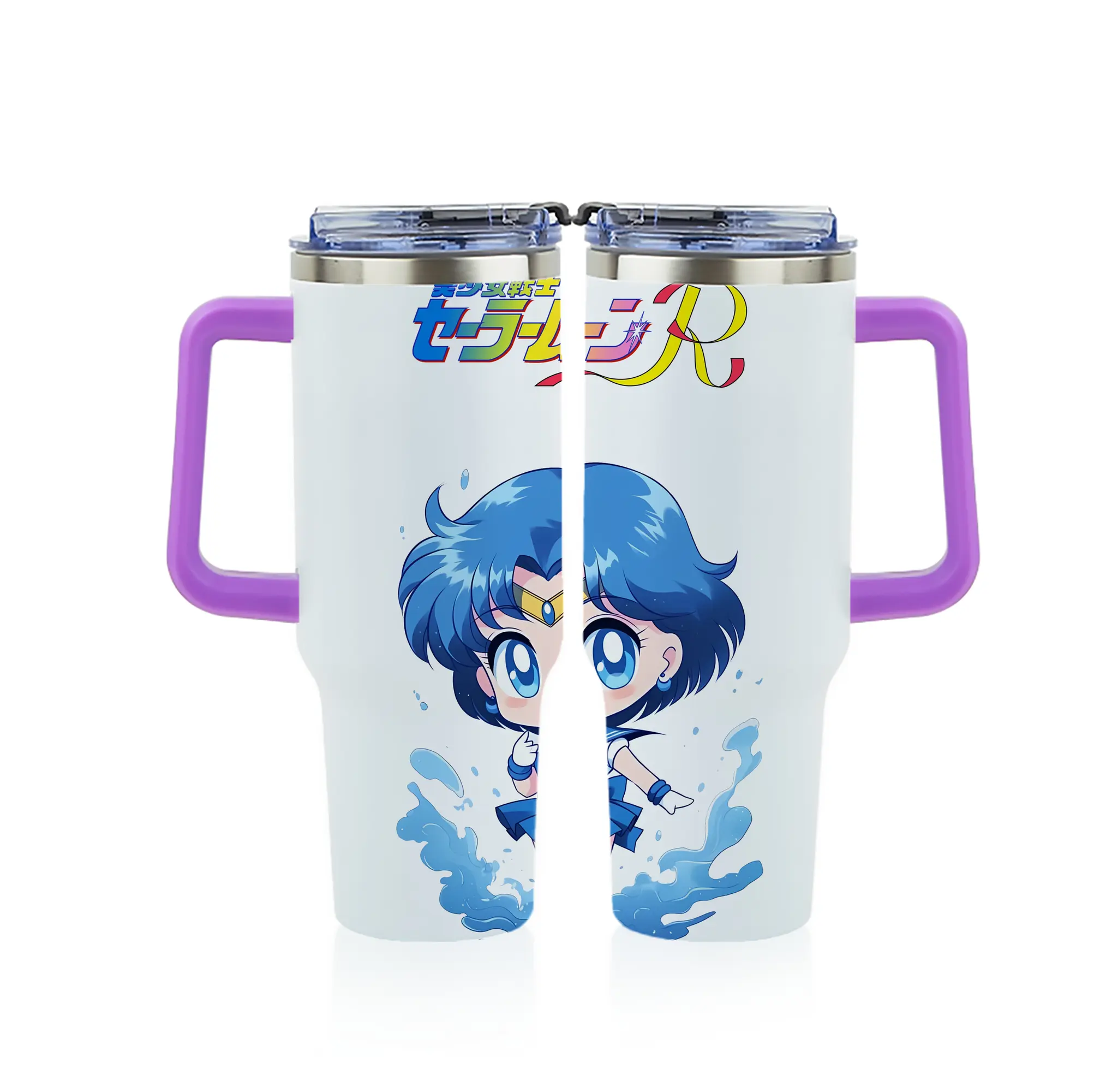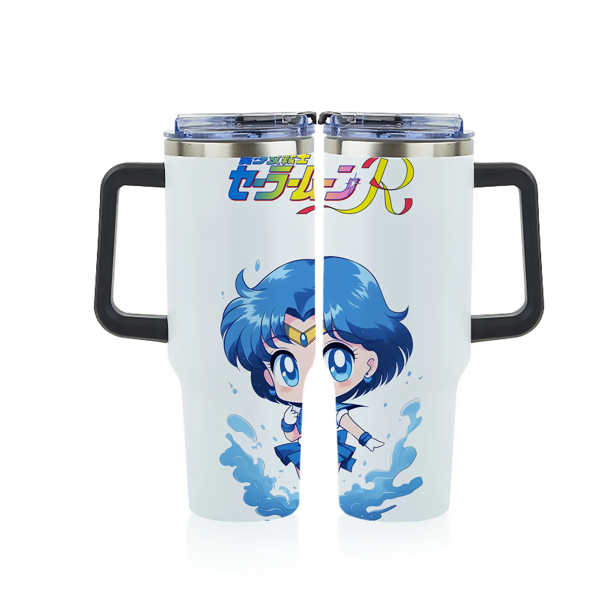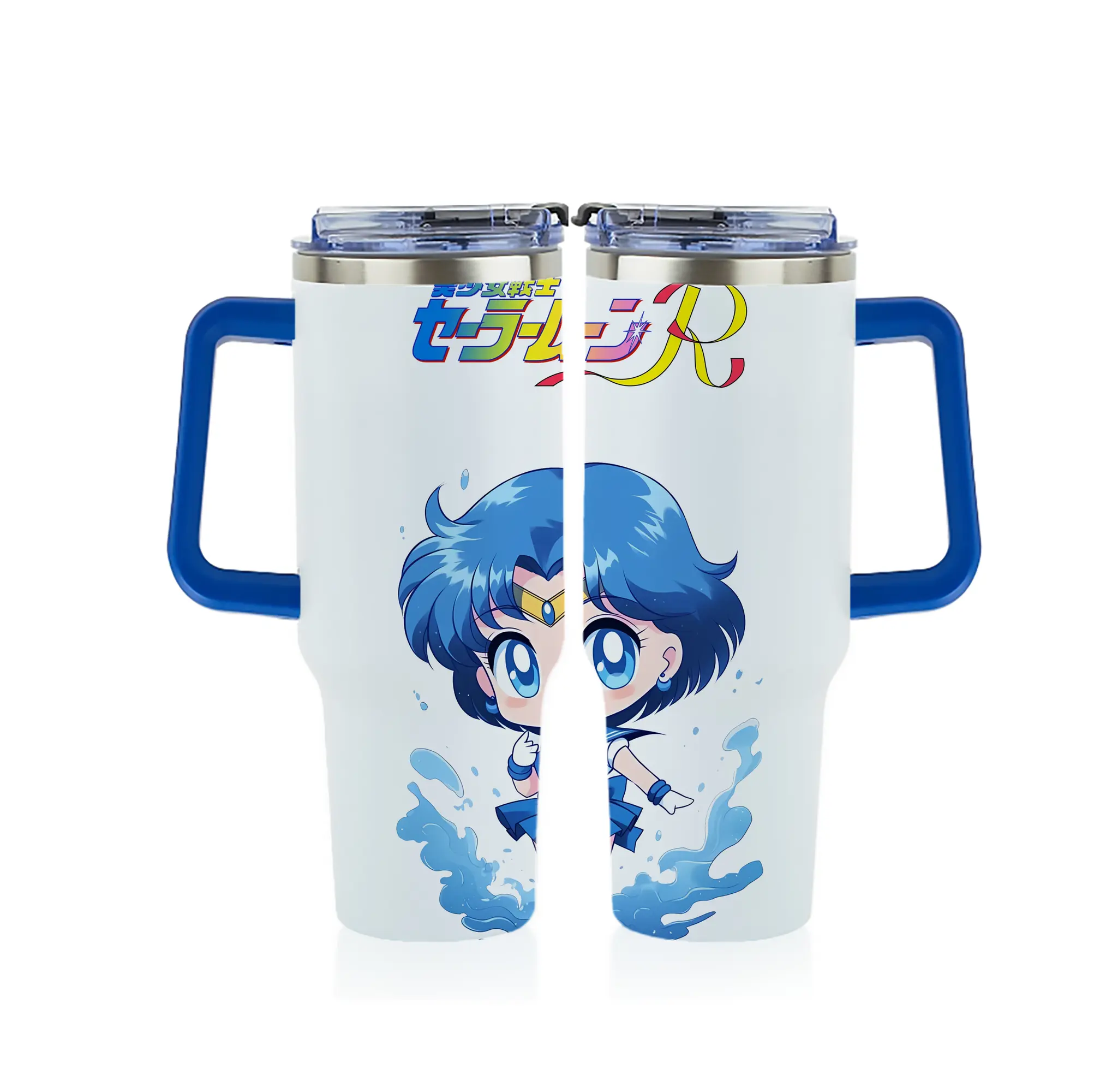 美少女戦士セーラームーン グッズ 水野 亜美 - 1200mL フルプリント車用タンブラー ・ 304ステンレス 内側 ・ 201ステンレス 外側 ・ 保温 保冷 ・ 通勤 ドライブ アウトドア用